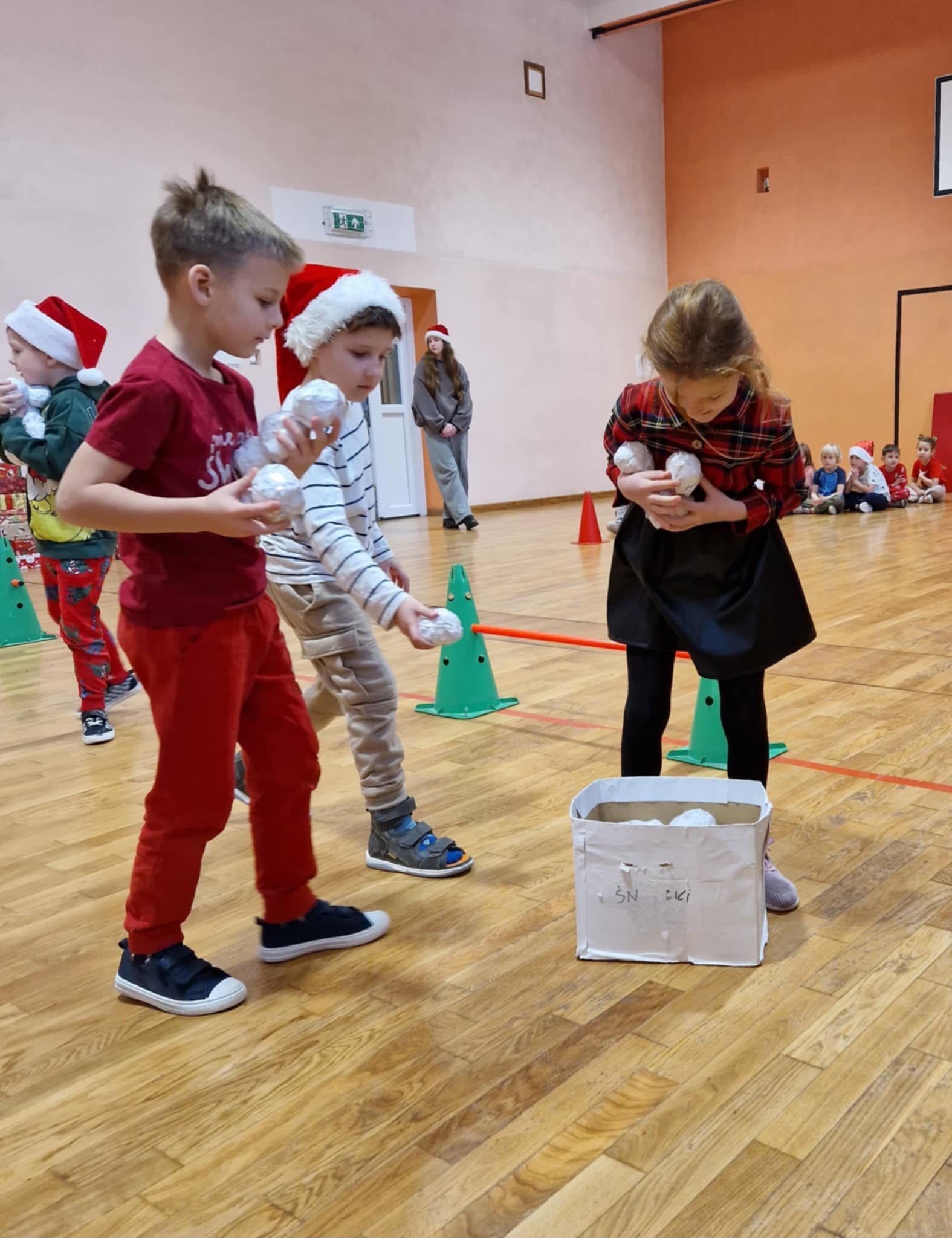 Starszaki na zaproszenie Szkoły Podstawowej nr 54 wziely udział w Turnieju mikołajkowym. Brały udział w zabawach ruchowych i zręcznościowych. Za każde wykonane zadanie otrzymywały punkty, uzyskując na koniec odznakę pomocników Świętego Mikołaja!