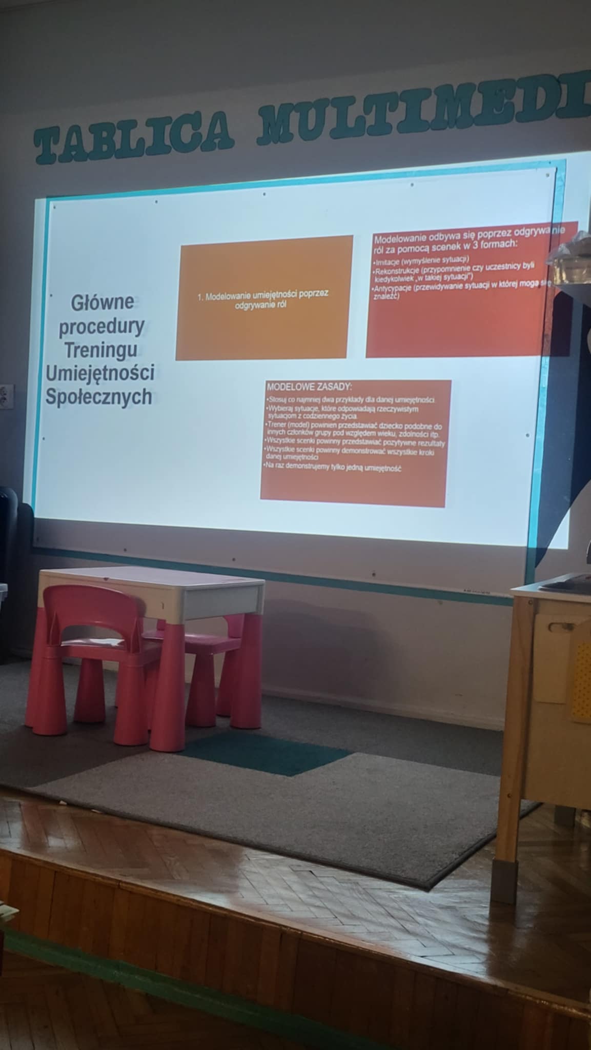 20-go listopada odbyła się w naszej placówce Rada Samokształceniowa, którą poprowadziła nasz specjalista oligofrenopedagog oraz trener TUS: p. Justyna Walenciak. Podczas spotkania przekazała istotne informacje dotyczące Treningu Umiejętności Społecznych z dziećmi w wieku przedszkolnym.