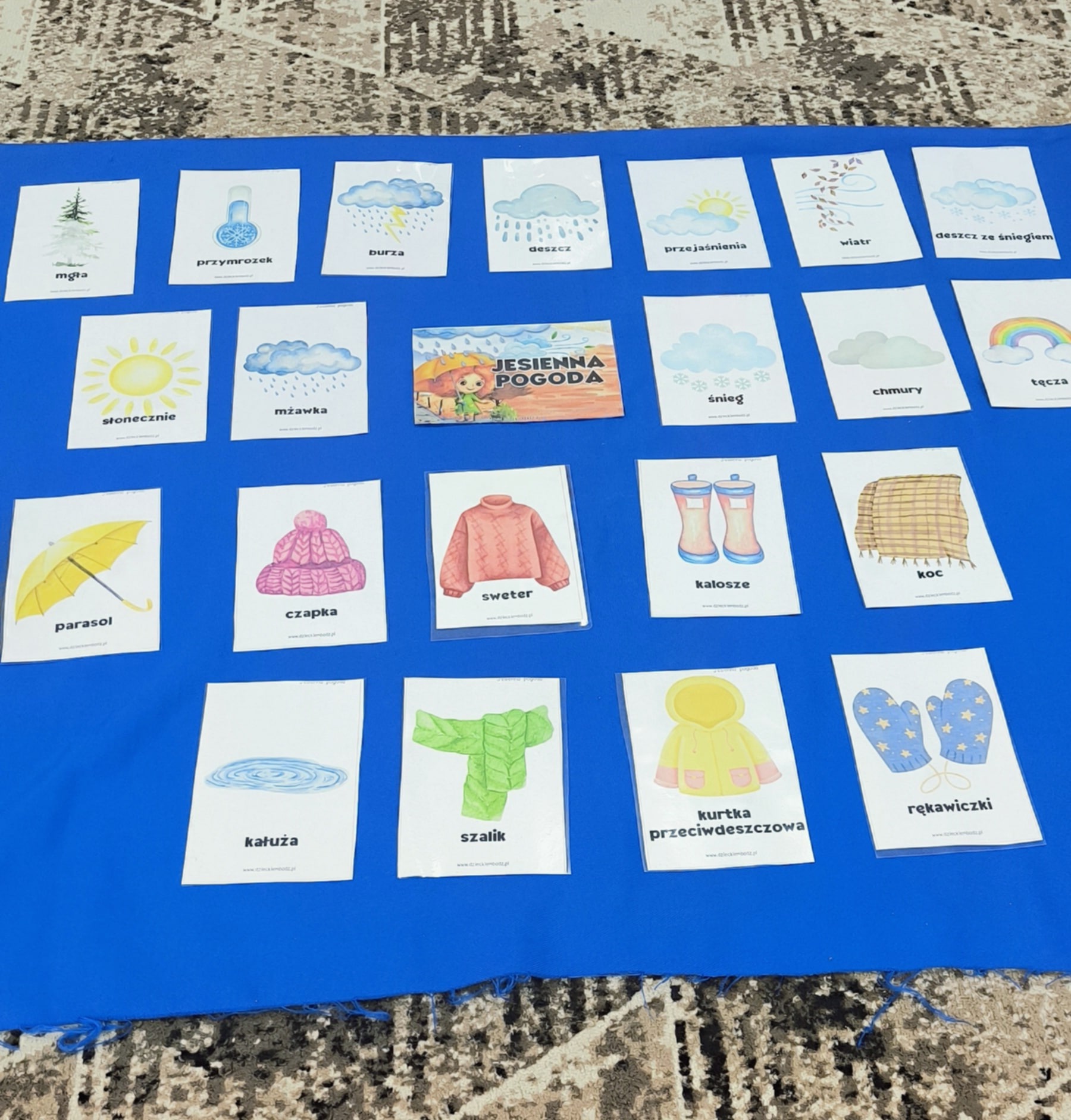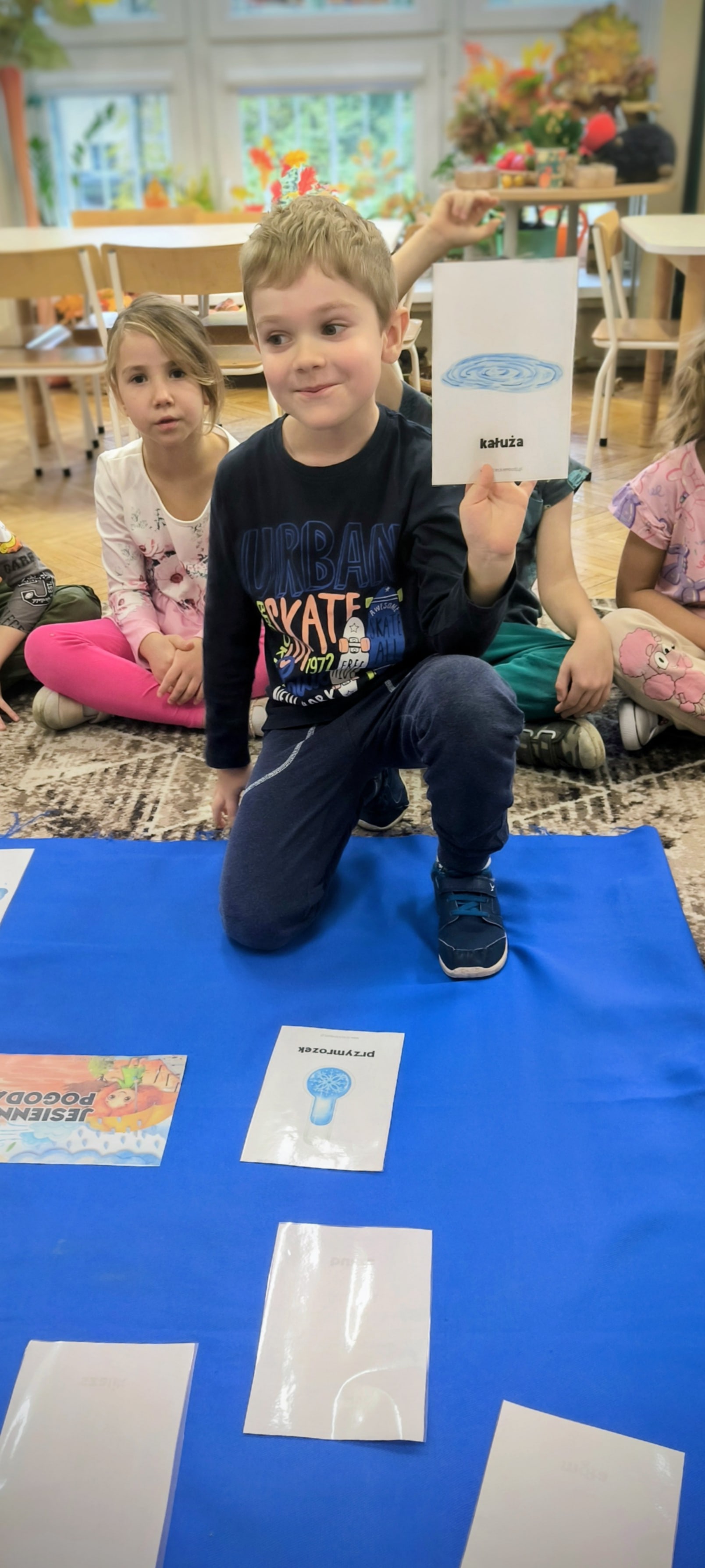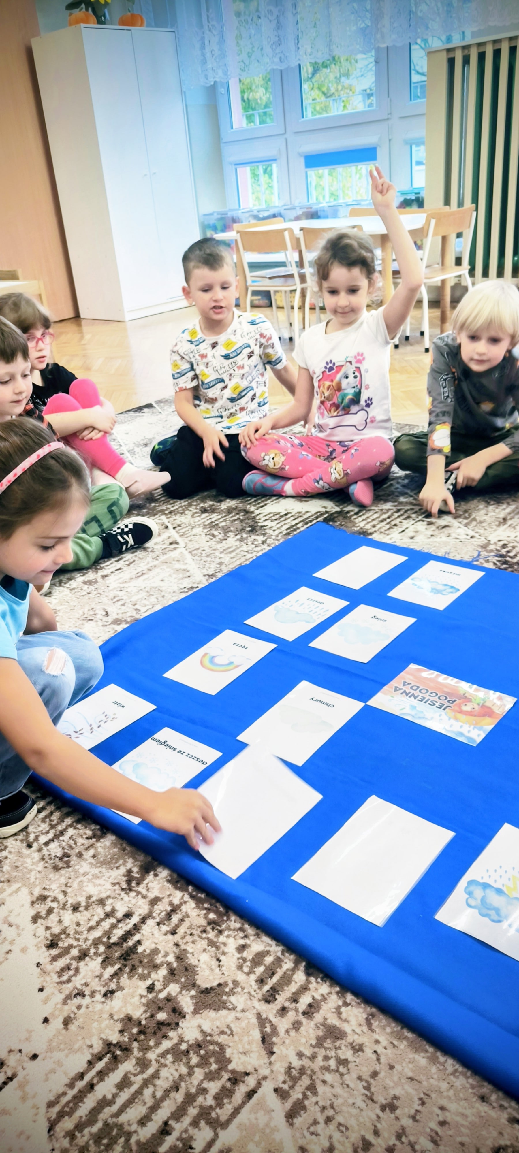 W tym tygodniu starszaki poznawały jesienne zjawiska pogodowe. Ćwiczyły zarówno umysł jak i ciało poprzez zabawy rozwijające logiczne myślenie, spostrzegawczość oraz sprawność ruchową.