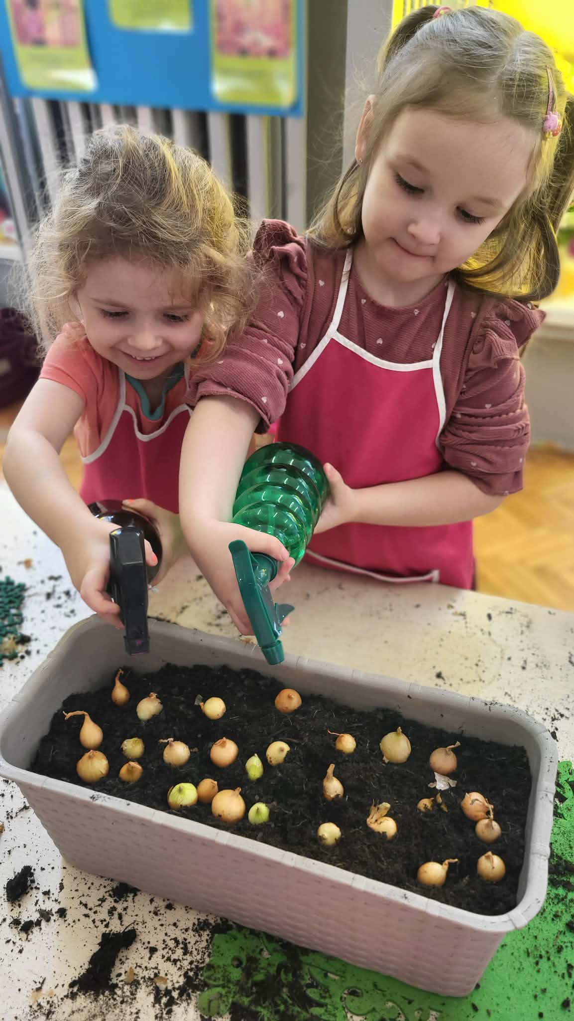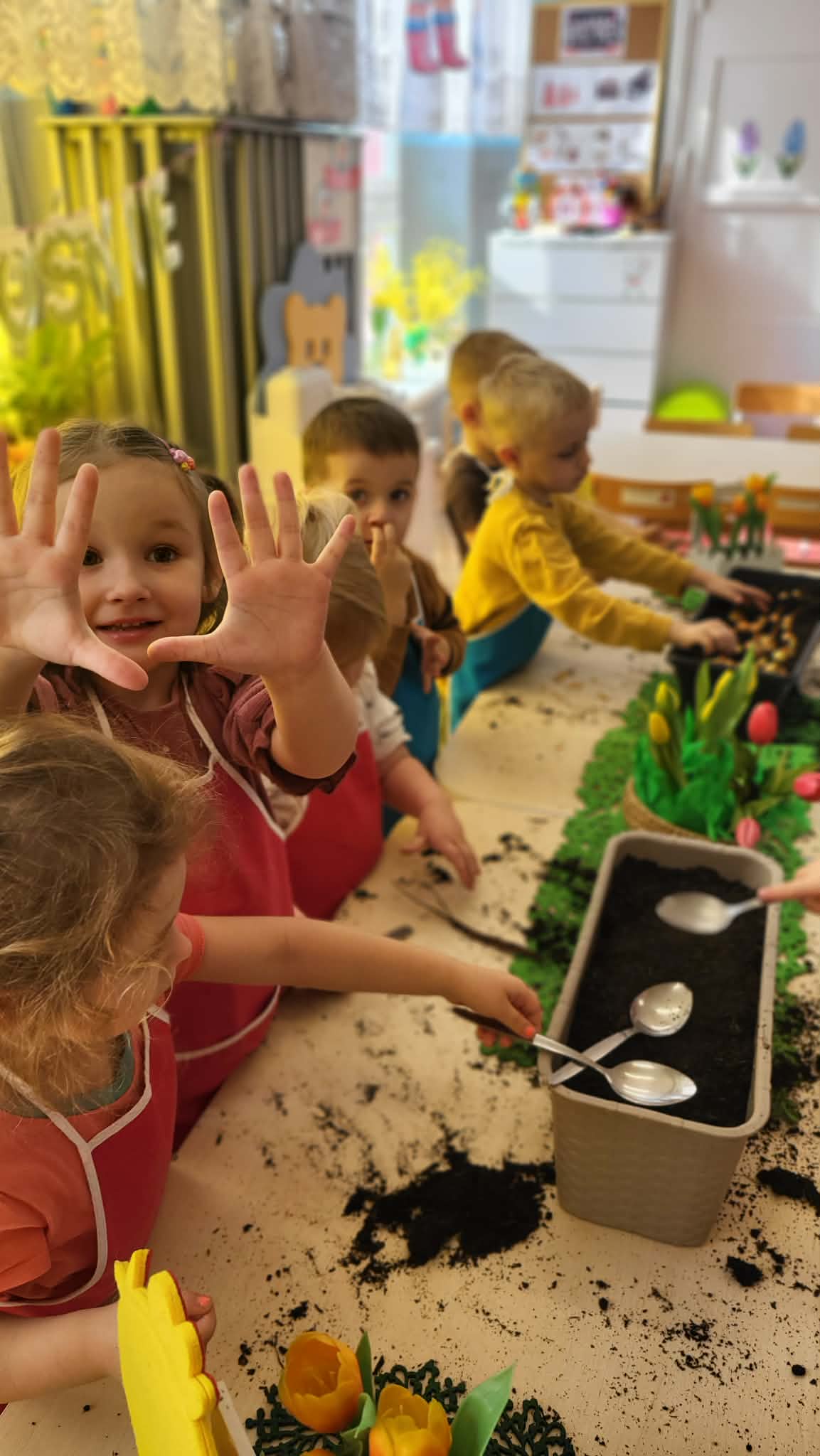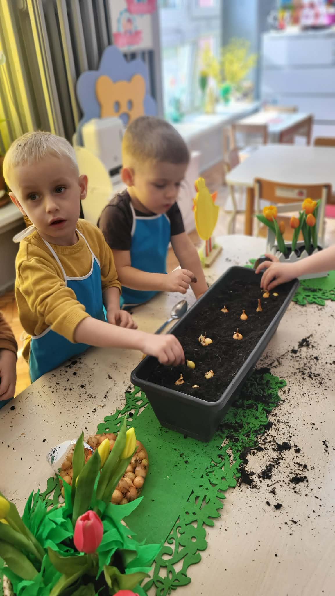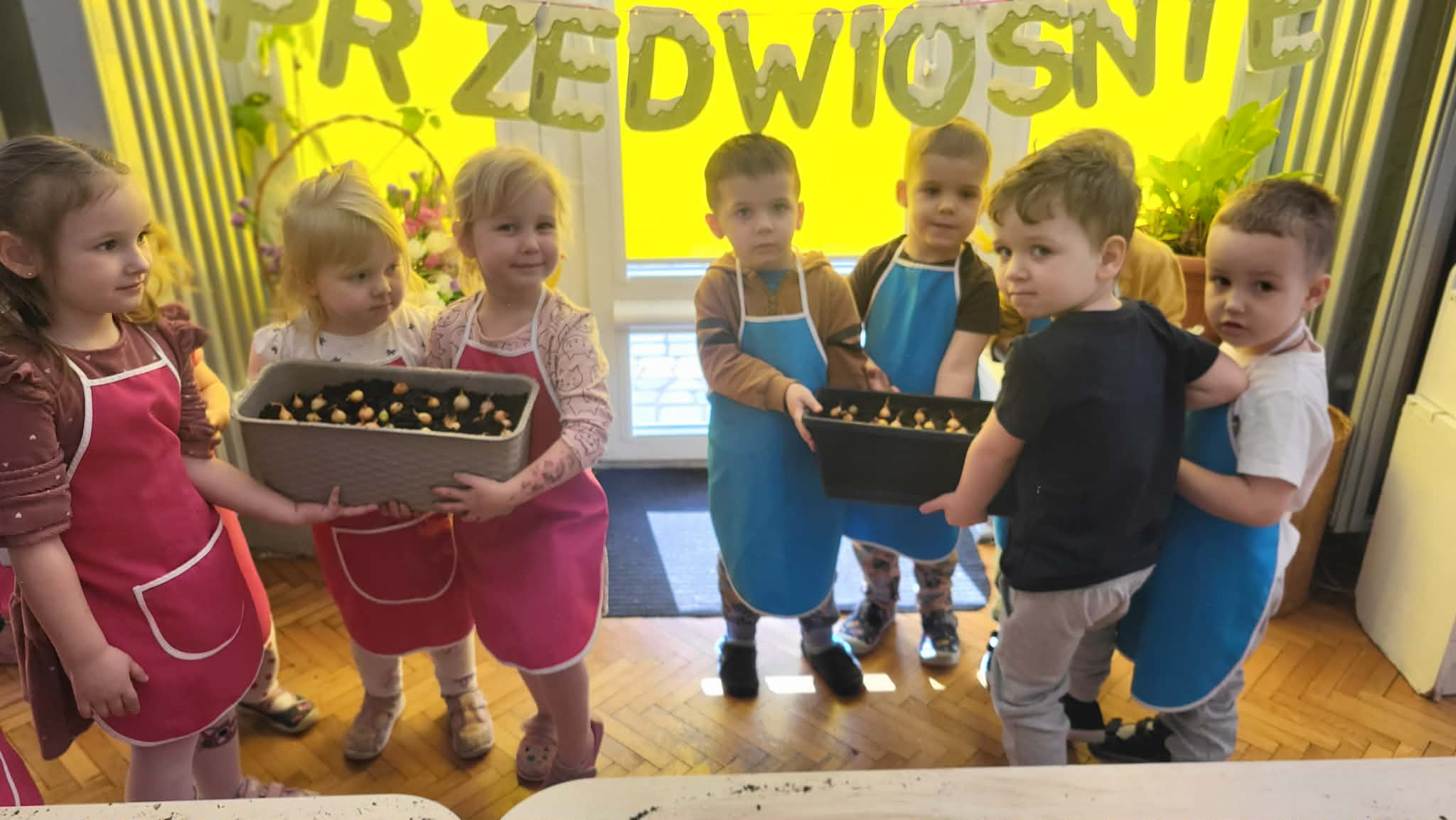 Podczas pracy przedszkolaki dowiedziały się, czego rośliny potrzebują do wzrostu- światła, wody i ciepła. Po posadzeniu cebulek dzieci podlewały je i doglądały.