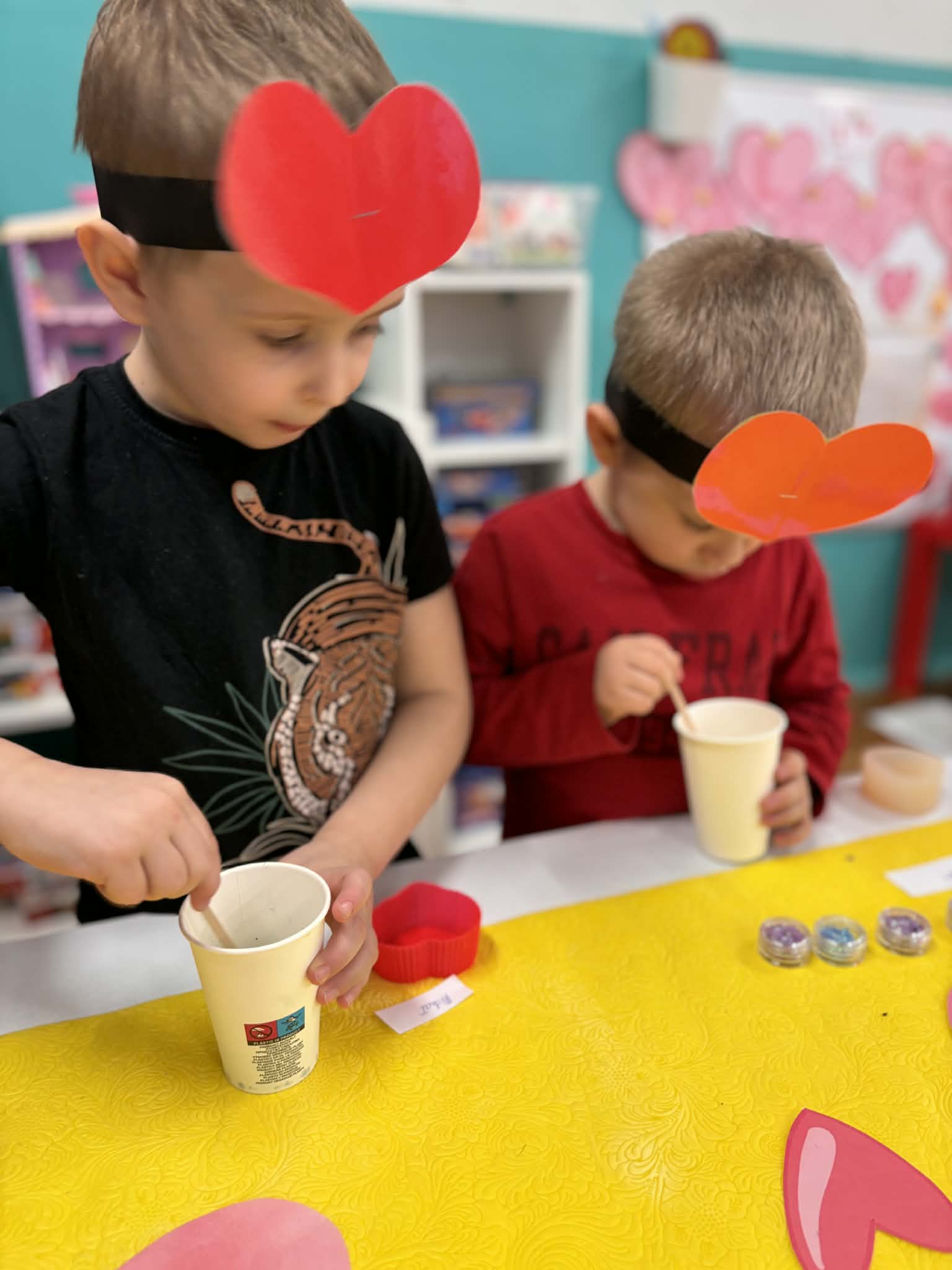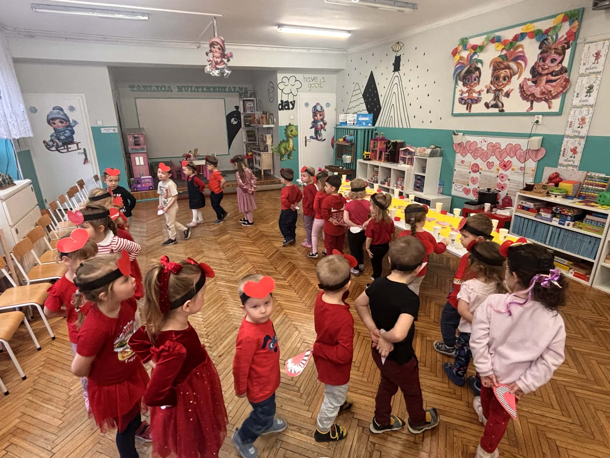 Walentynki w grupach 1 i 2 były pełne radości, tańca i… cudownych zapachów. Świętowaliśmy nie tylko dzień przyjaźni i sympatii, ale też czas karnawału, więc energii i uśmiechów nie brakowało. Były wspólne tańce, zabawy integracyjne, a także warsztaty tworzenia mydełek- dzieci wybierały kolory, zapachy i z ogromnym zaangażowaniem tworzyły swoje małe, pachnące dzieła. To był dzień pełen bliskości, kreatywności i wspaniałej zabawy.