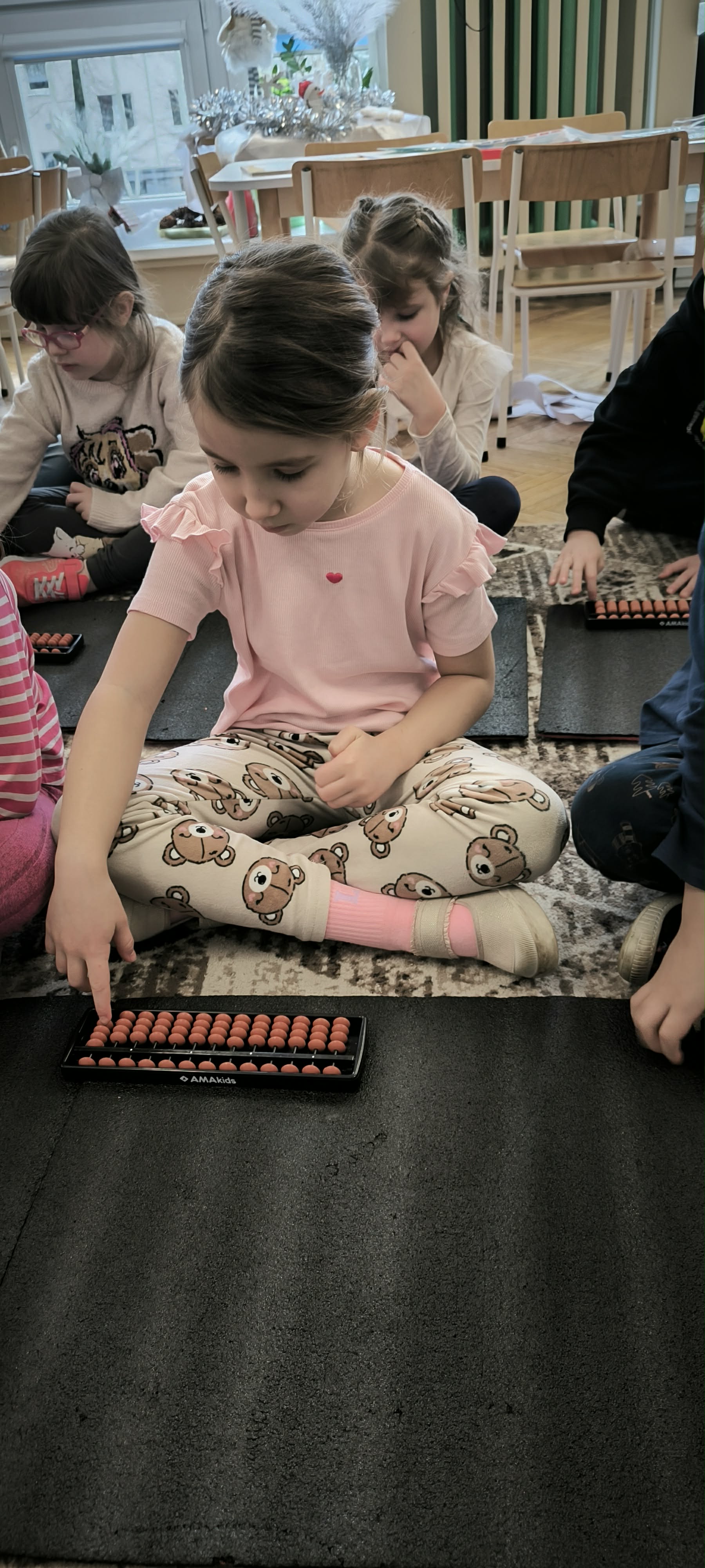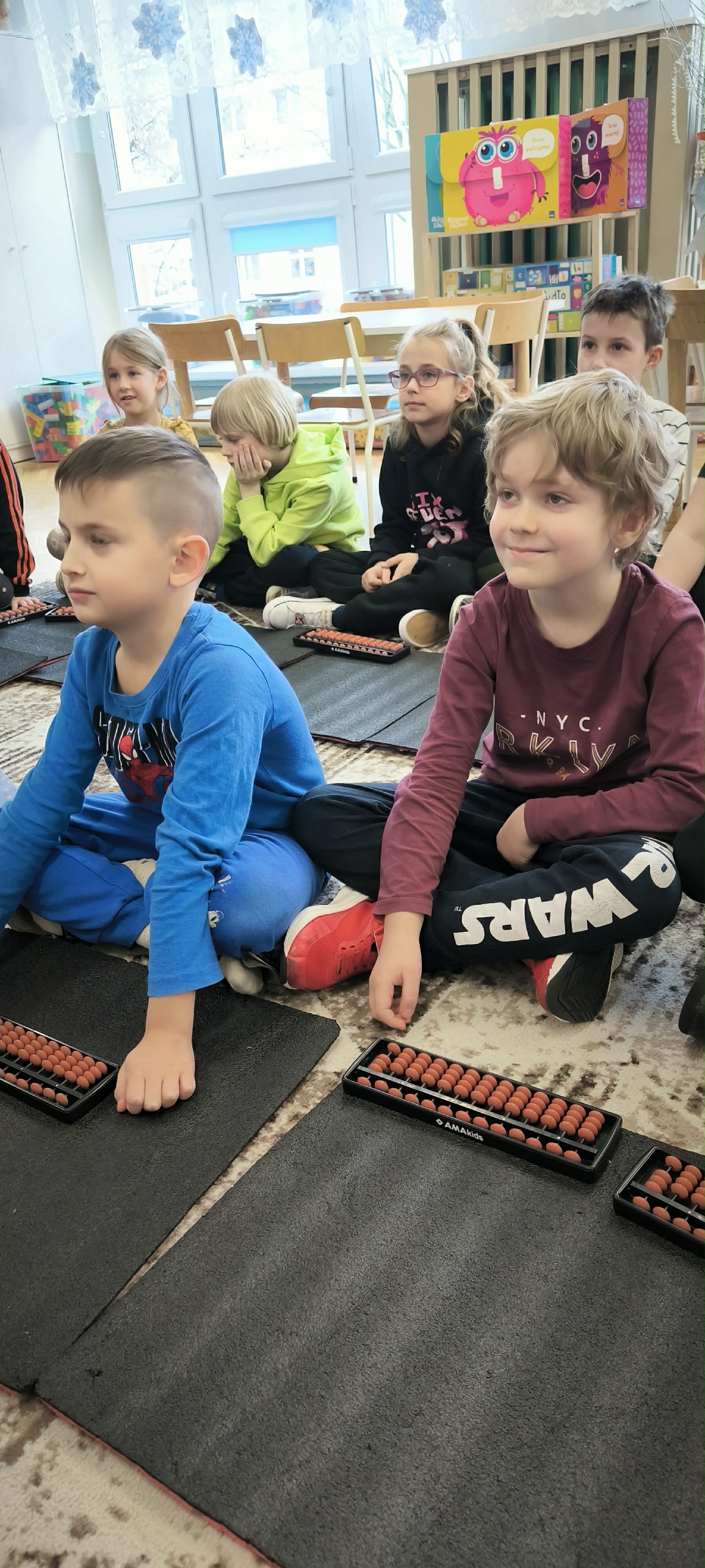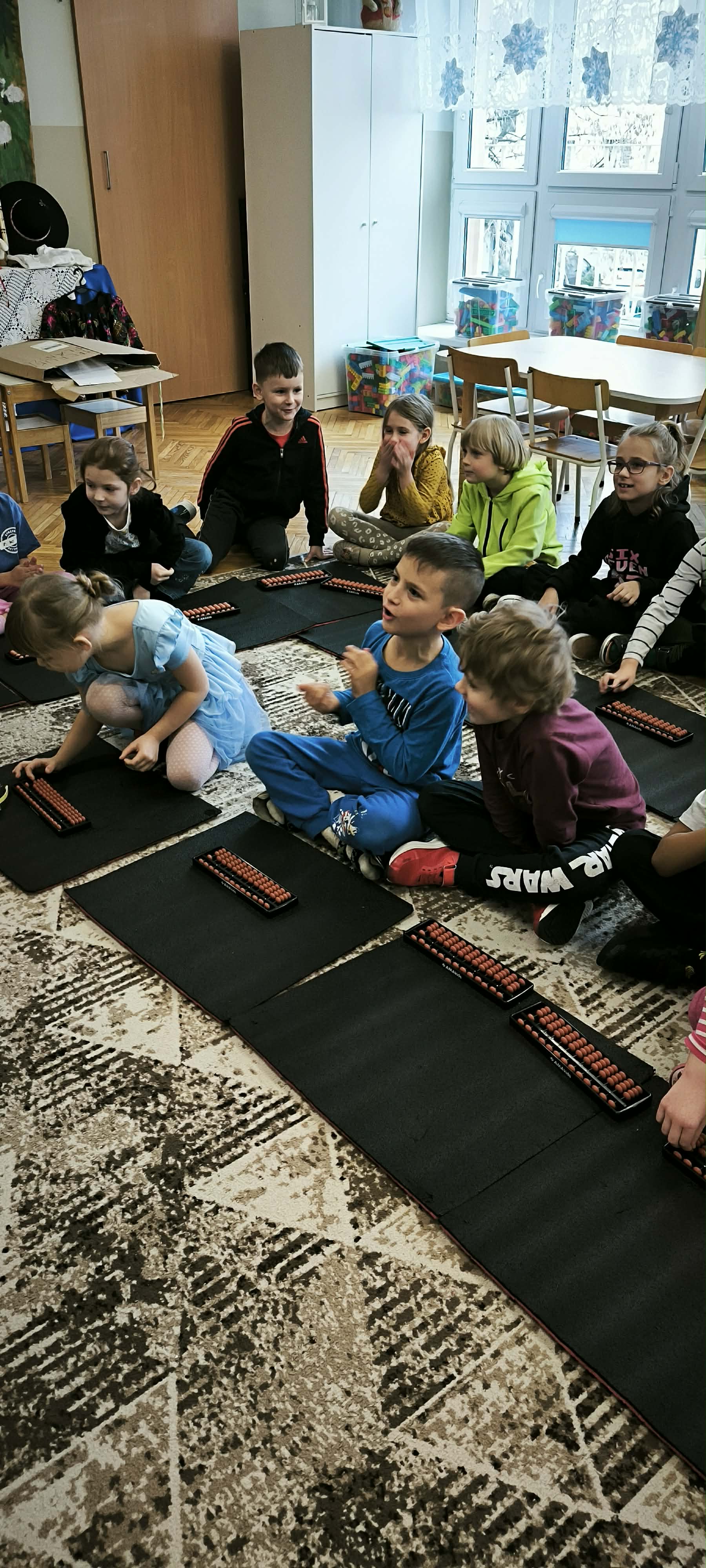 Starszaki wzięły udział w warsztatach wspierających rozwój myślenia i gotowości szkolnej z elementami arytmetyki mentalnej prowadzonych przez wykwalifikowanego trenera przedszkolnego z Grupy Edukacyjnej Velmark. Z pomocą liczydła Soroban używanego w arytmetyce mentalnej ćwiczyły koncentrację i pamięć operacyjną niezbędną do dalszej nauki. Poprzez angażujące zabawy rozwijały logiczne myślenie i rozwiązywały proste zadania problemowe.