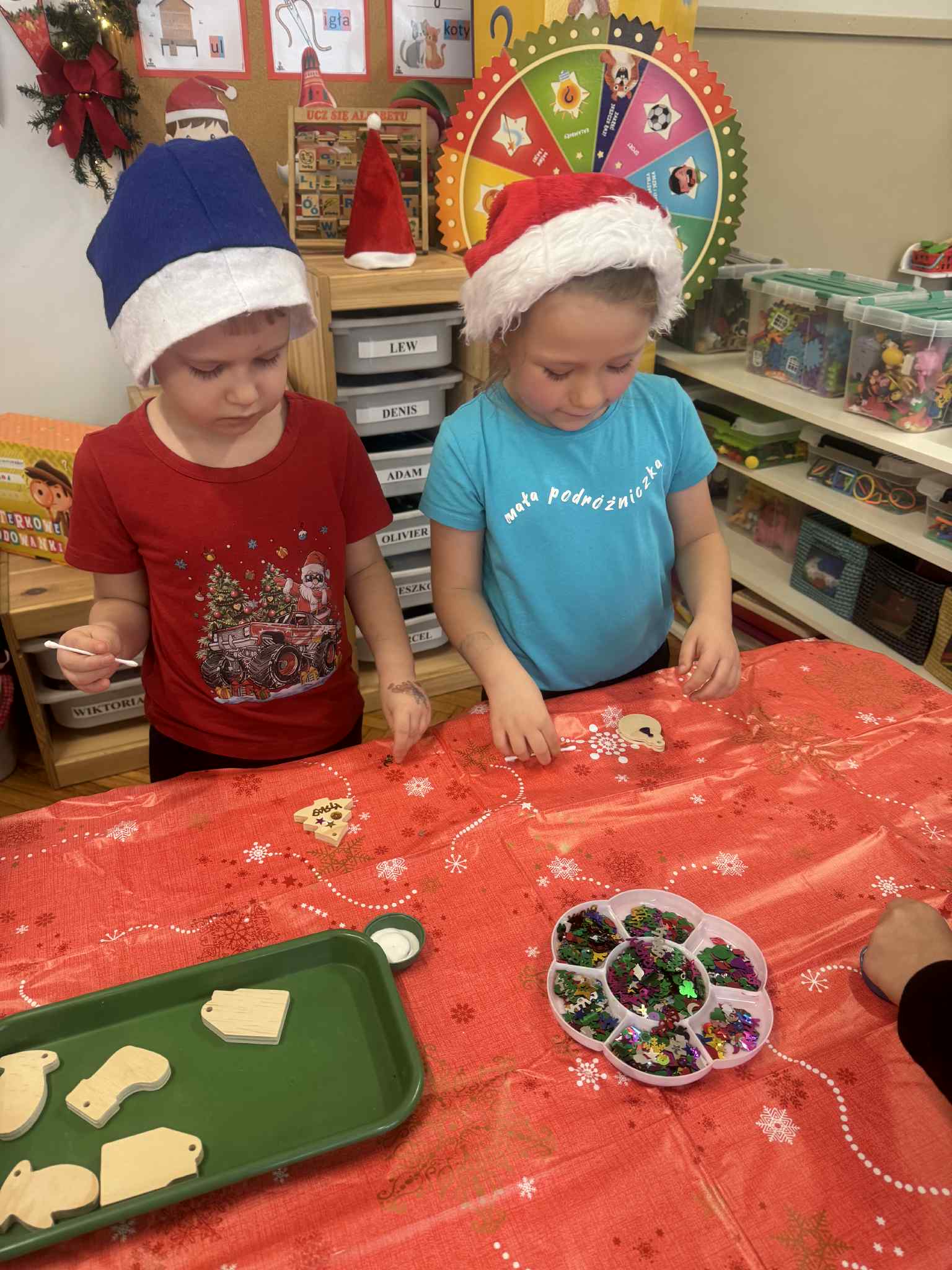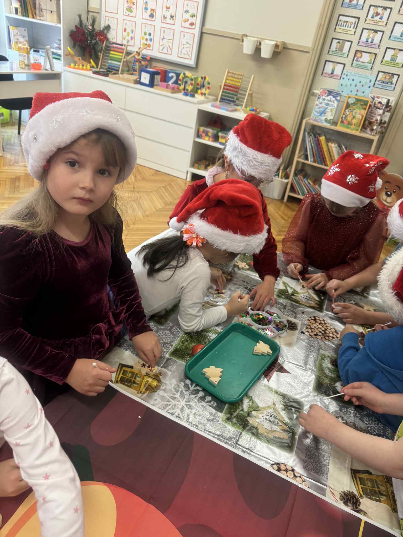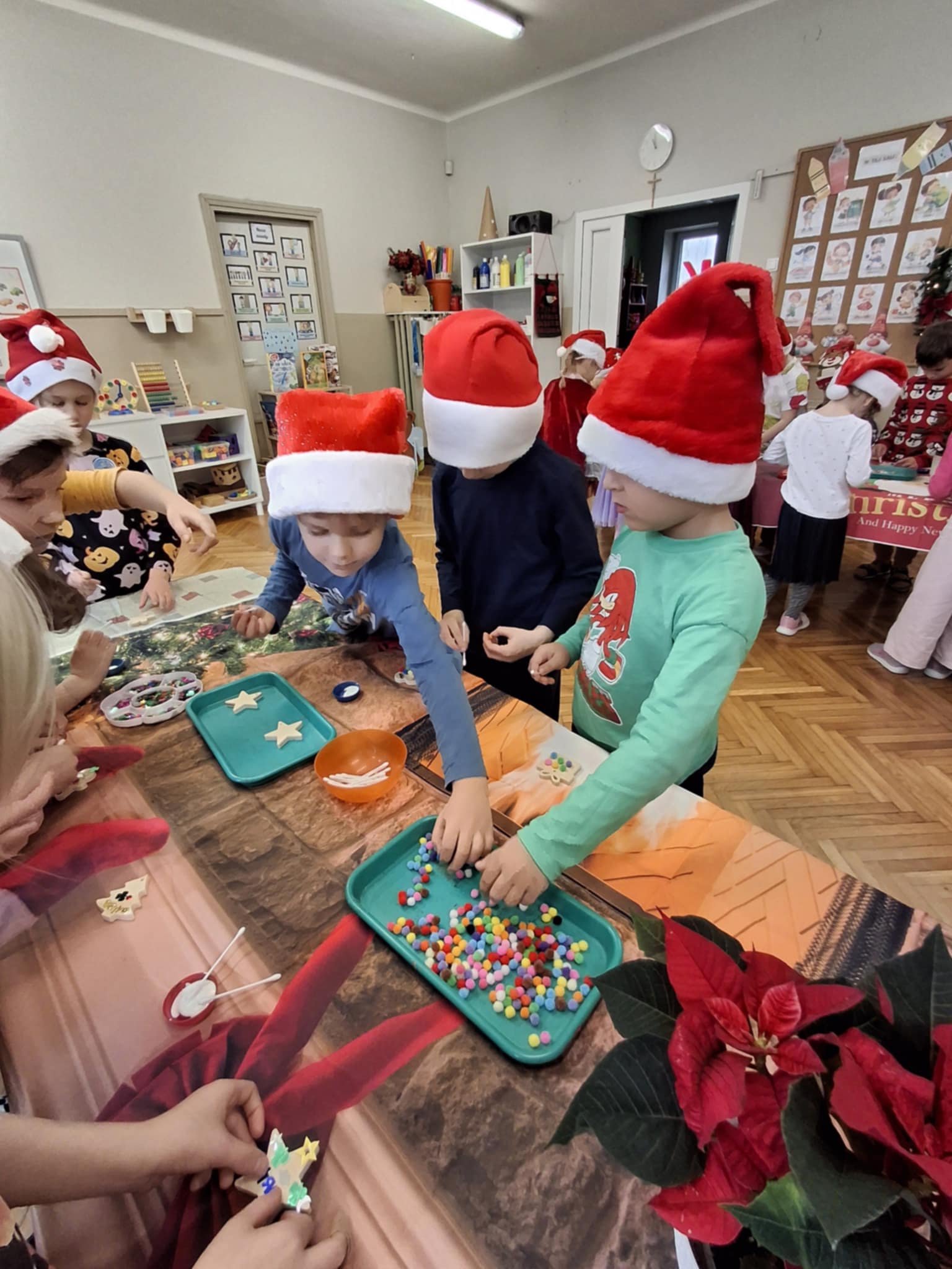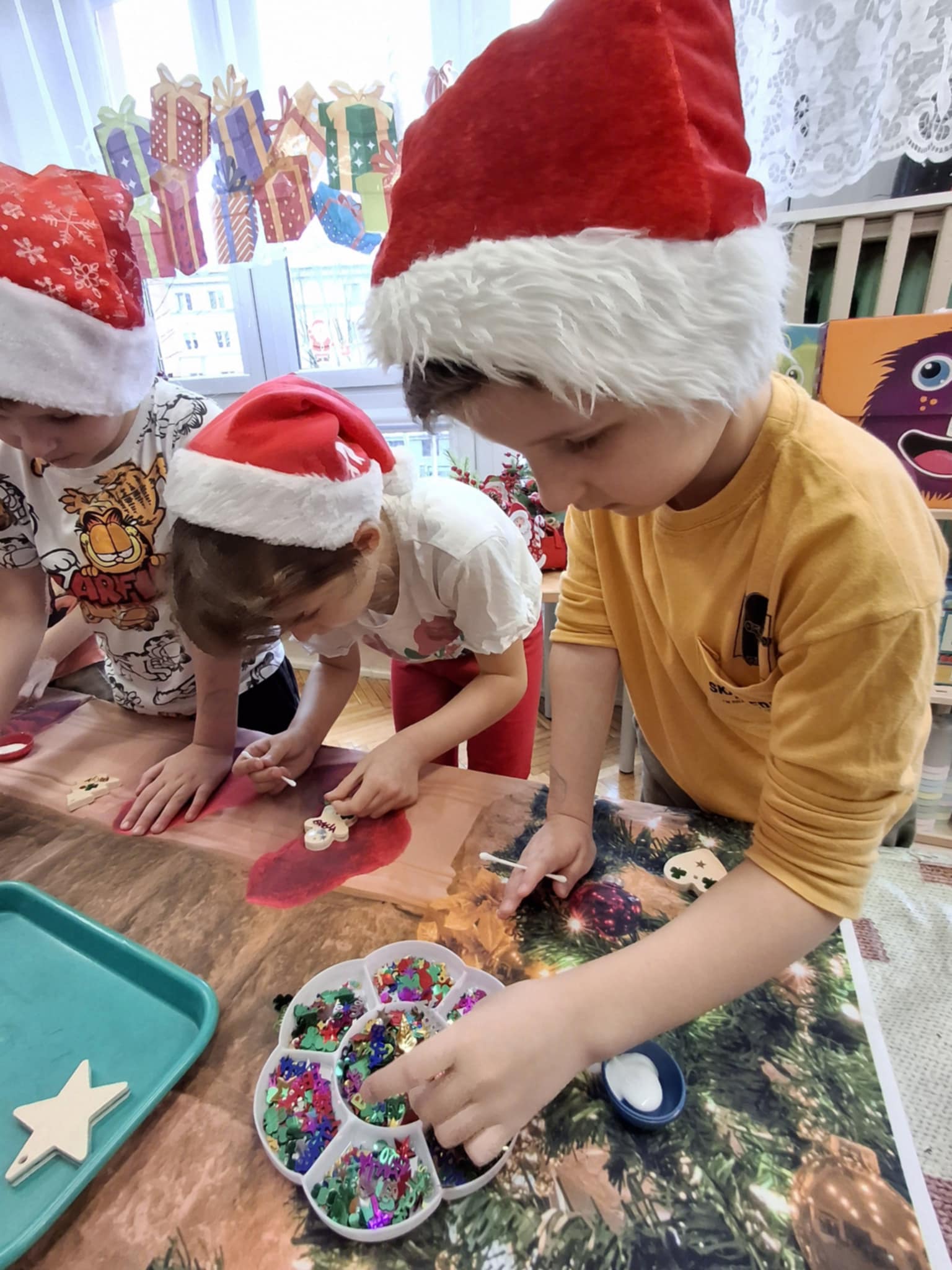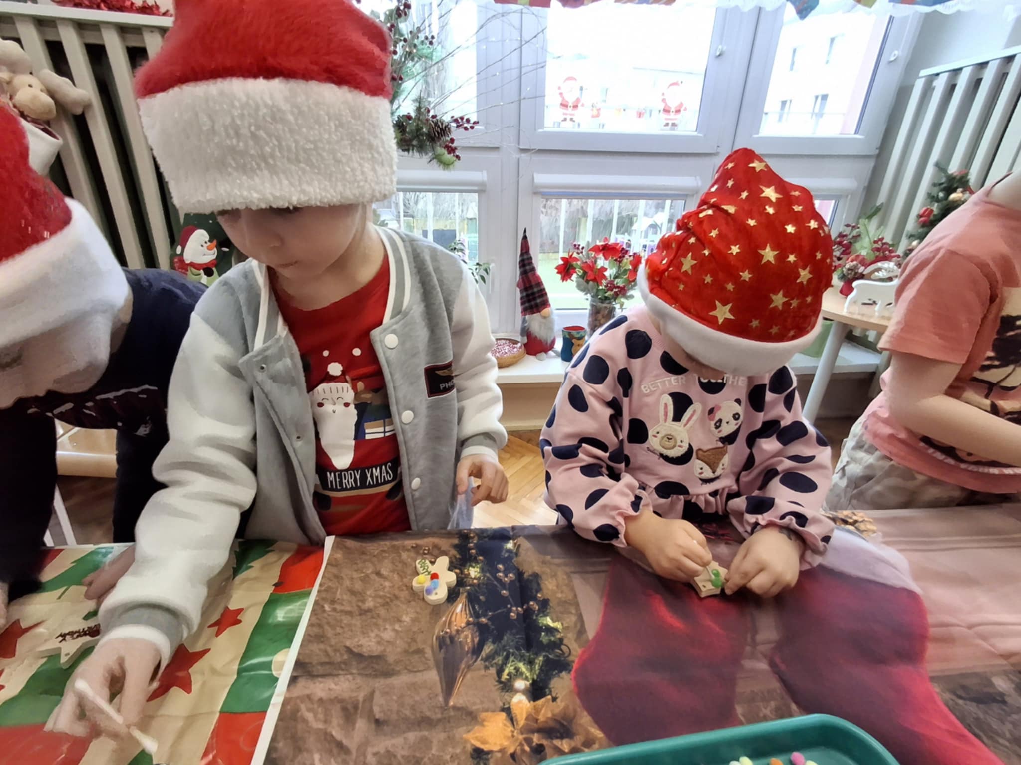 Magiczny czas Świąt Bożego Narodzenia zagościł w naszym przedszkolu. W miłej atmosferze odbyły się wspólne warsztaty grupy 3 i 4 pt.: WARSZTATY BOŻONARODZENIOWE. W atmosferze, radosci i oczekiwania powstały pełne uroku drewniane ozdoby na choinkę. Dzieci zamieniły się w prawdziwych artystów. Sądzimy, że Mikołaj będzie bardzo zadowolony z przygotowanych przez dzieci bombeczek.