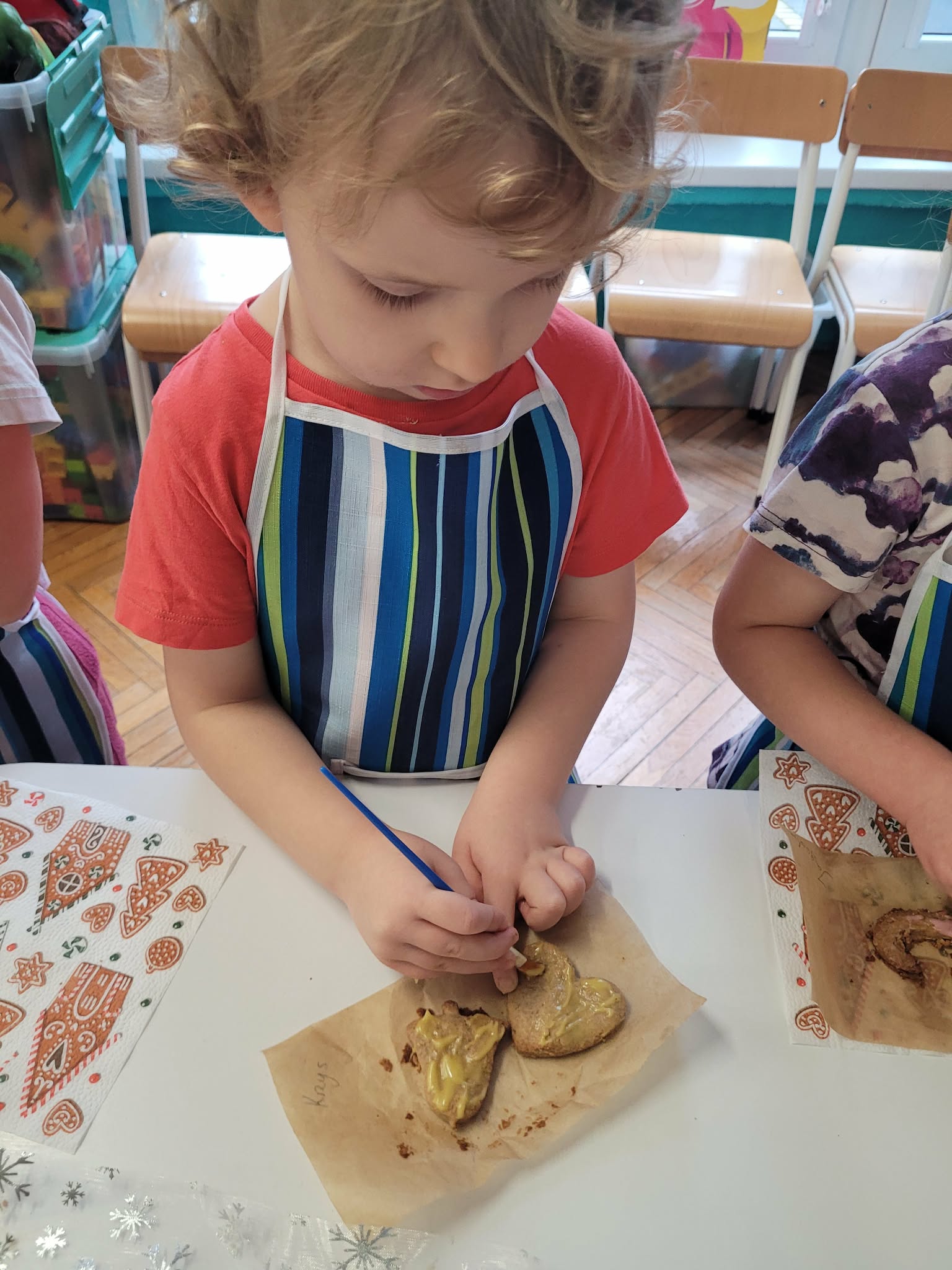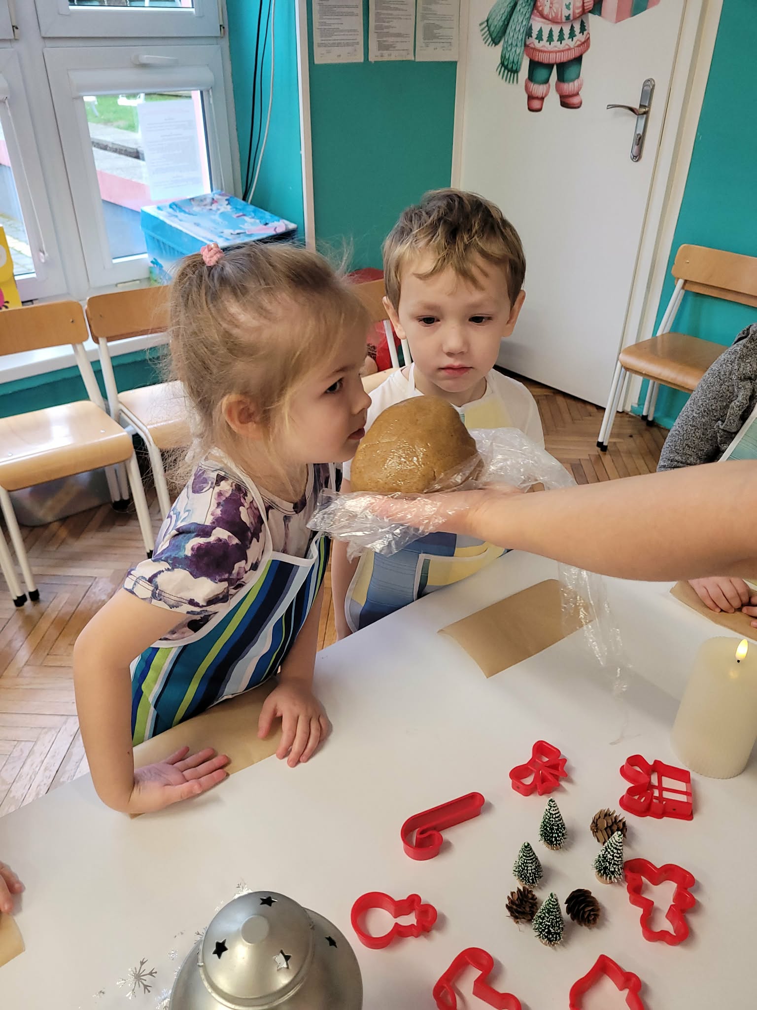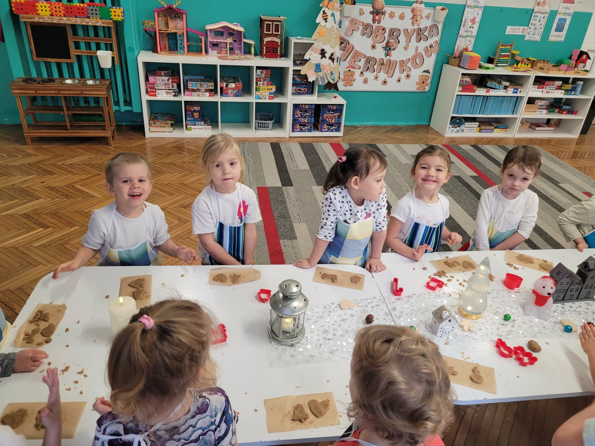 Święta Bożego Narodzenia zbliżają się wielkimi krokami. Nieodzownym elementem tych świat jest osoba Świętego Mikołaja. Nikt go jednak nie widział jak podklada prezenty pod choinke, ale... Każde dziecko wie, że to prawdziwy łasuch i nie potrafi odmówić sobie czegoś słodkiego i szklaneczki mleczka. Dzieci podczas warsztatów z grupa I miały okazję poznac rezepturę na pyszne pierniczki. Same ugniatały ciasto, szablonami wycinaly kształ,ty oraz własnoręcznie lukrowały i ozdabiały. Święty Mikołaj na pewno będzie zadowowlony z prezentu dla niego pod choinką.
