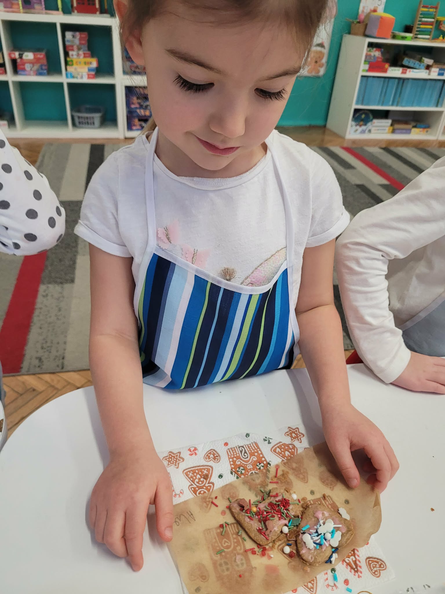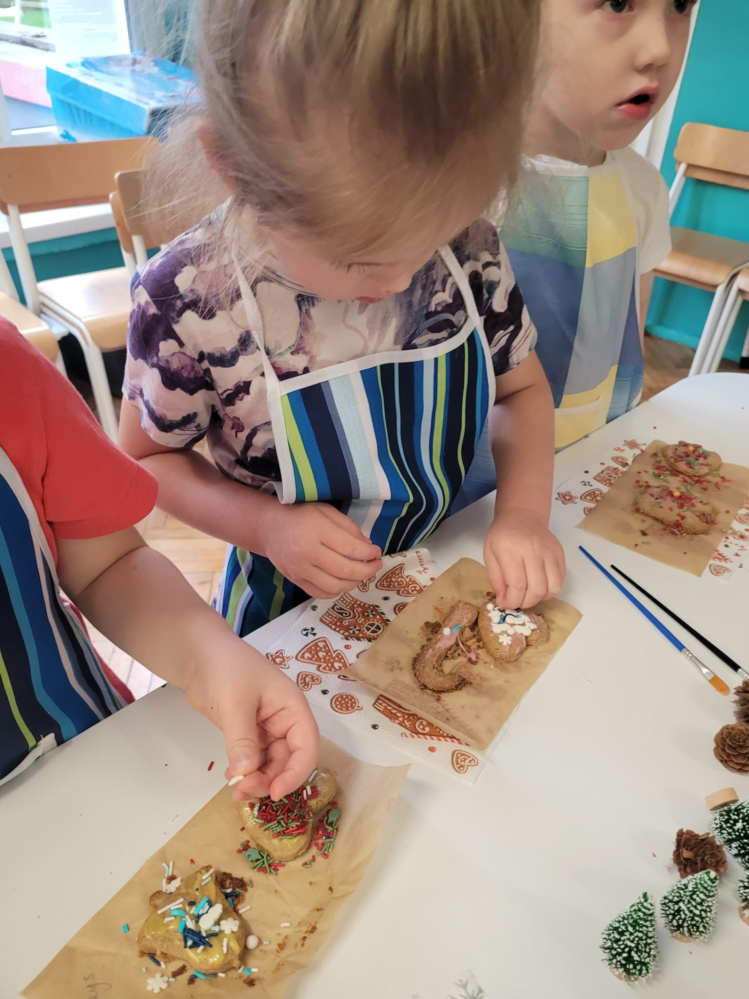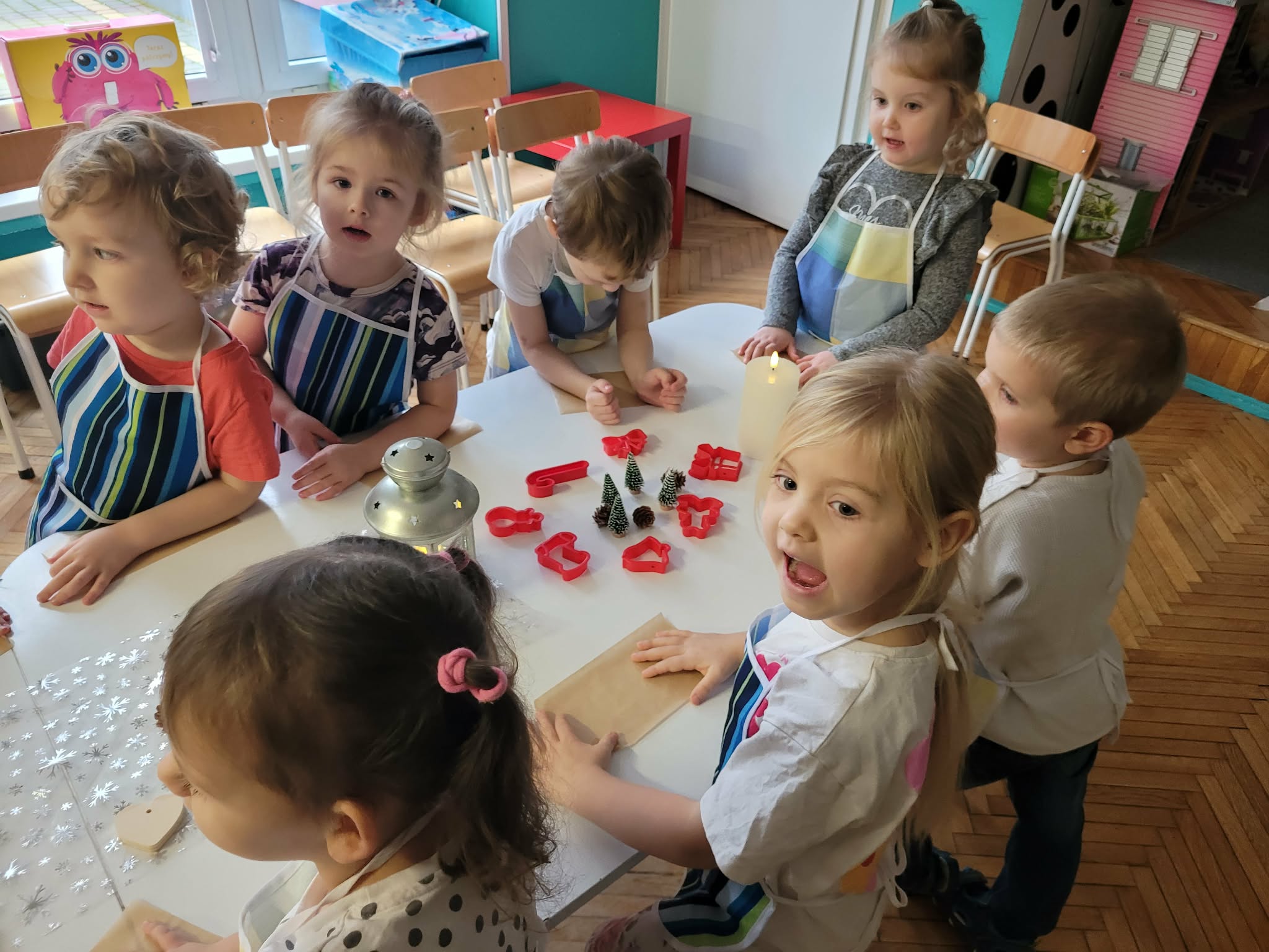 Święta Bożego Narodzenia zbliżają się wielkimi krokami. Nieodzownym elementem tych świat jest osoba Świętego Mikołaja. Nikt go jednak nie widział jak podklada prezenty pod choinke, ale... Każde dziecko wie, że to prawdziwy łasuch i nie potrafi odmówić sobie czegoś słodkiego i szklaneczki mleczka. Dzieci podczas warsztatów z grupa I miały okazję poznac rezepturę na pyszne pierniczki. Same ugniatały ciasto, szablonami wycinaly kształ,ty oraz własnoręcznie lukrowały i ozdabiały. Święty Mikołaj na pewno będzie zadowowlony z prezentu dla niego pod choinką.