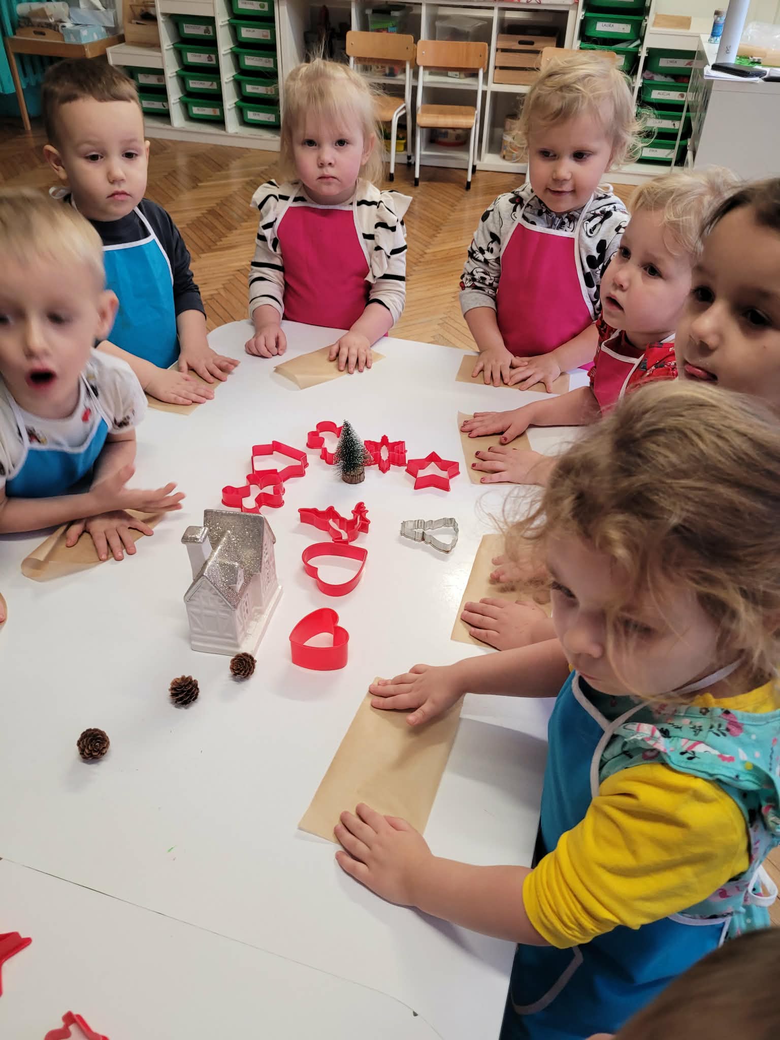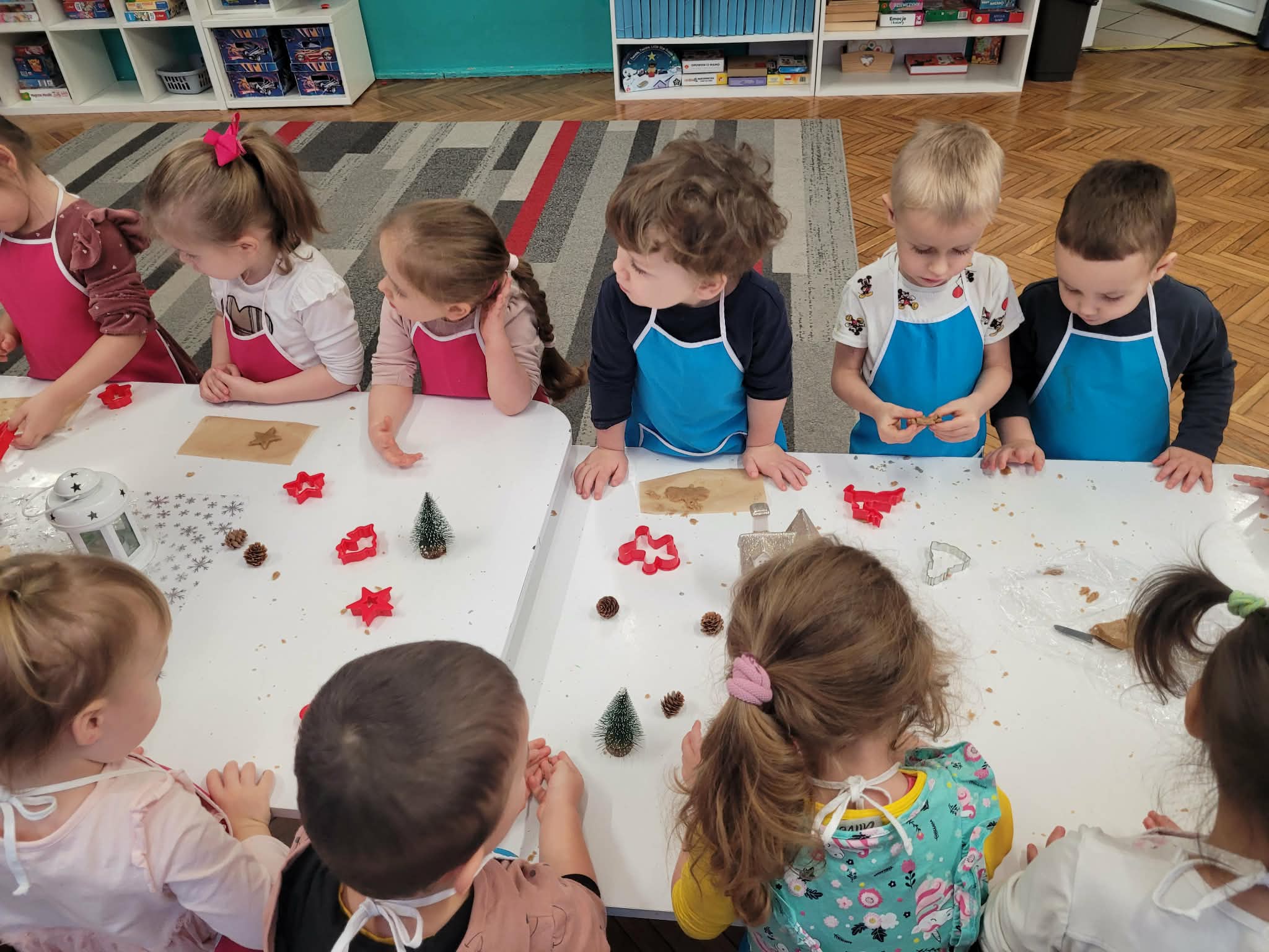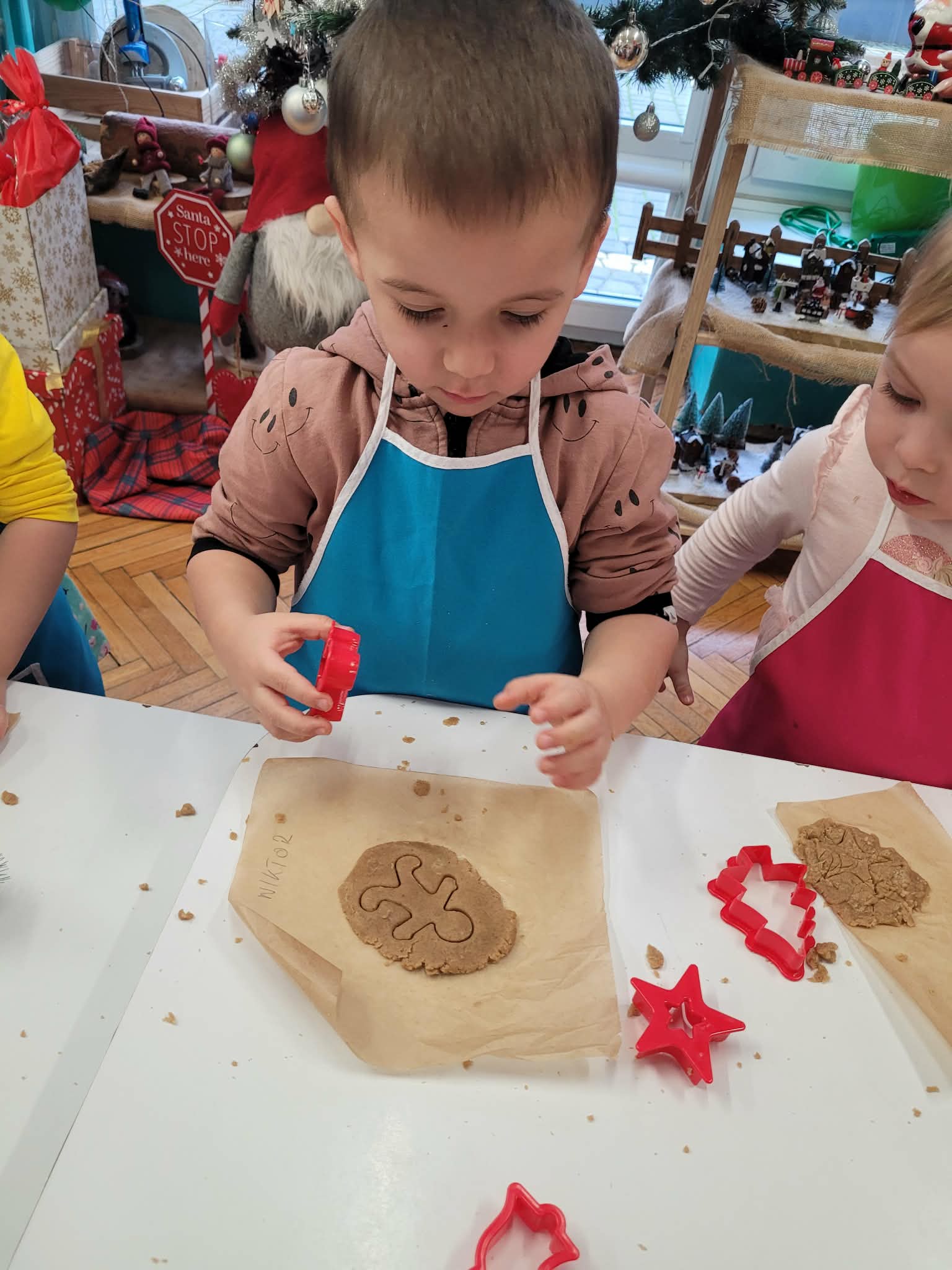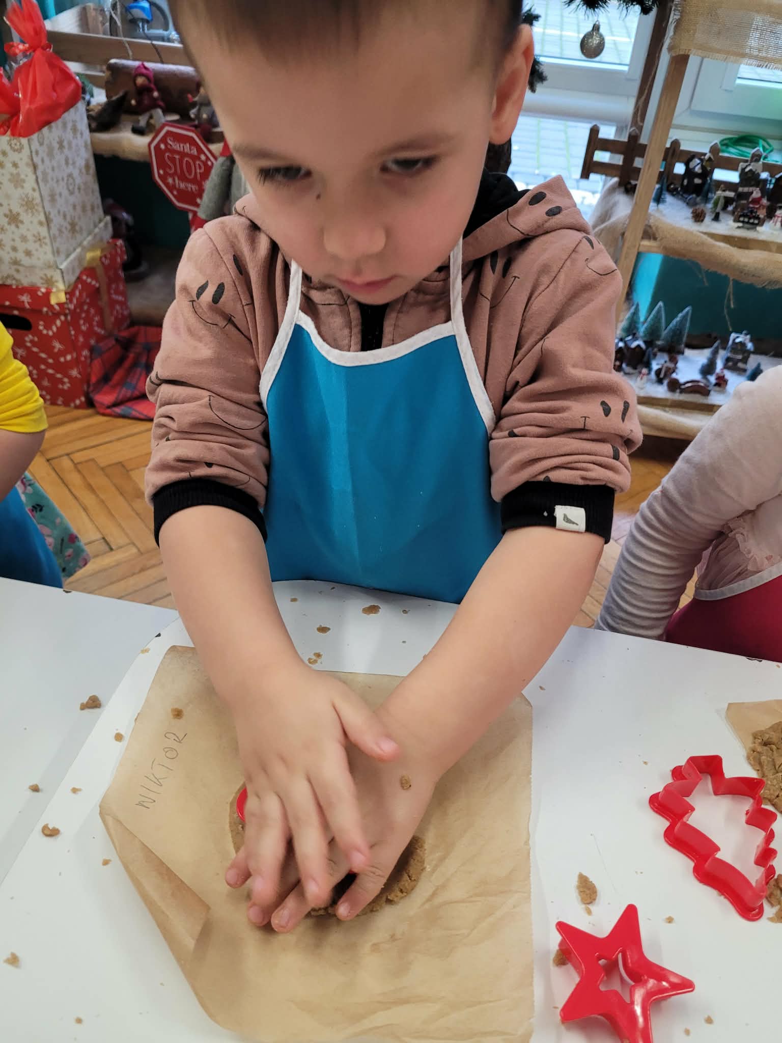 Święta Bożego Narodzenia zbliżają się wielkimi krokami. Nieodzownym elementem tych świat jest osoba Świętego Mikołaja. Nikt go jednak nie widział jak podklada prezenty pod choinke, ale... Każde dziecko wie, że to prawdziwy łasuch i nie potrafi odmówić sobie czegoś słodkiego i szklaneczki mleczka. Dzieci podczas warsztatów z grupa II miały okazję poznac rezepturę na pyszne pierniczki. Same ugniatały ciasto, szablonami wycinaly kształ,ty oraz własnoręcznie lukrowały i ozdabiały. Święty Mikołaj na pewno będzie zadowowlony z prezentu dla niego pod choinką.