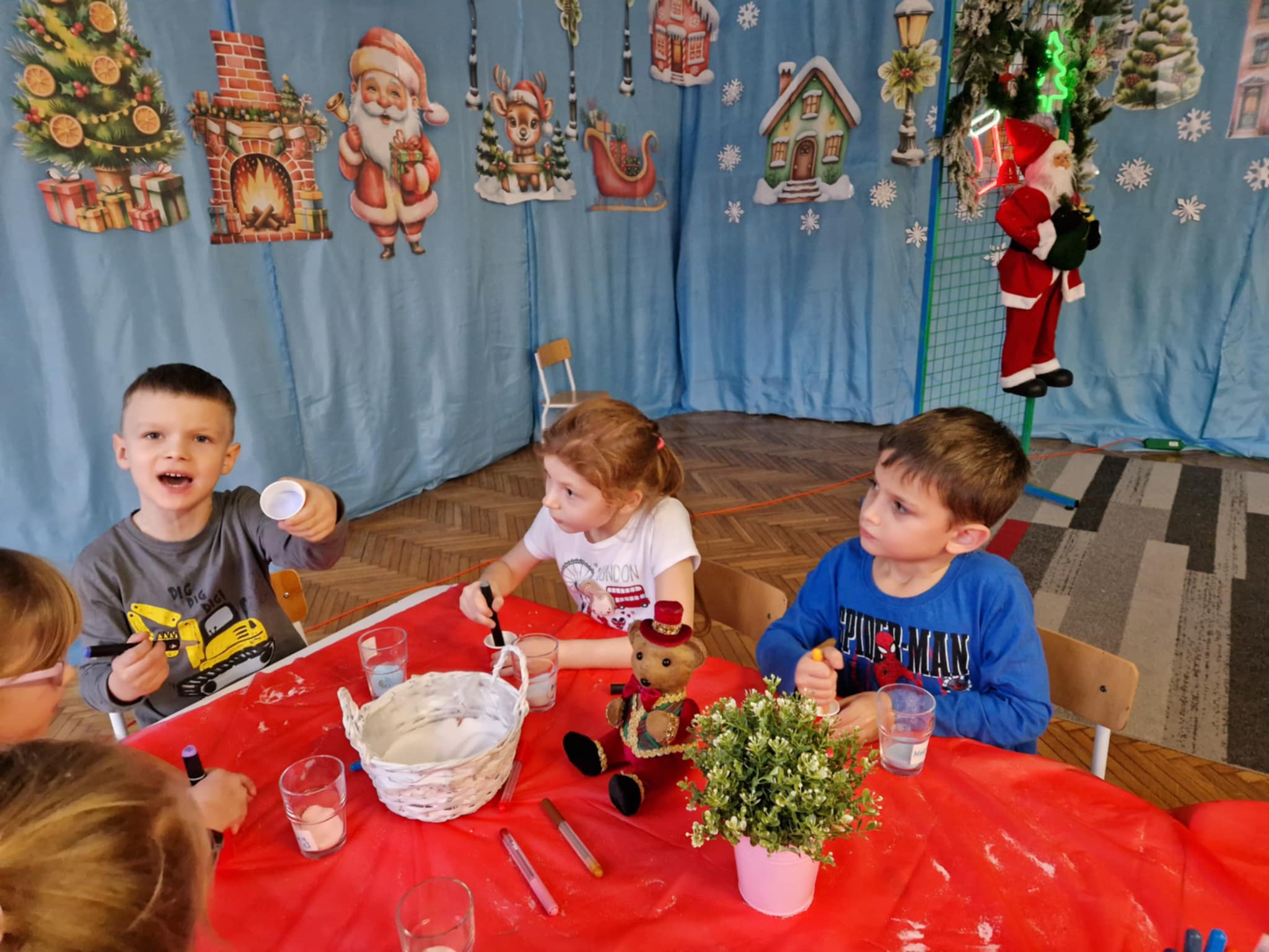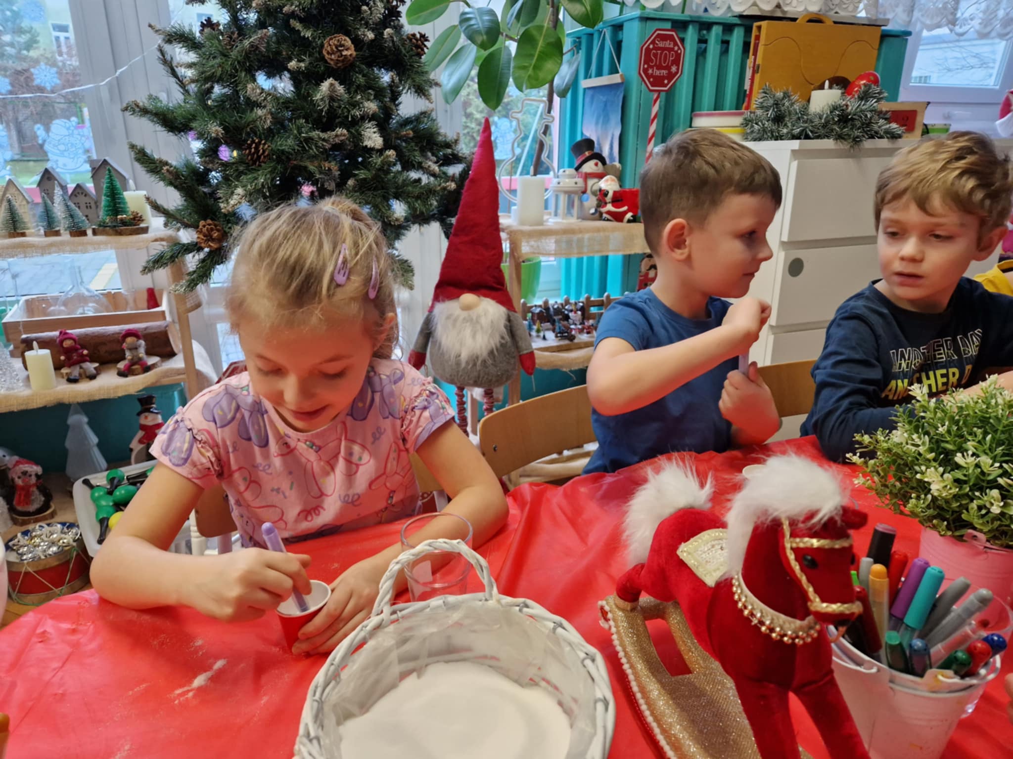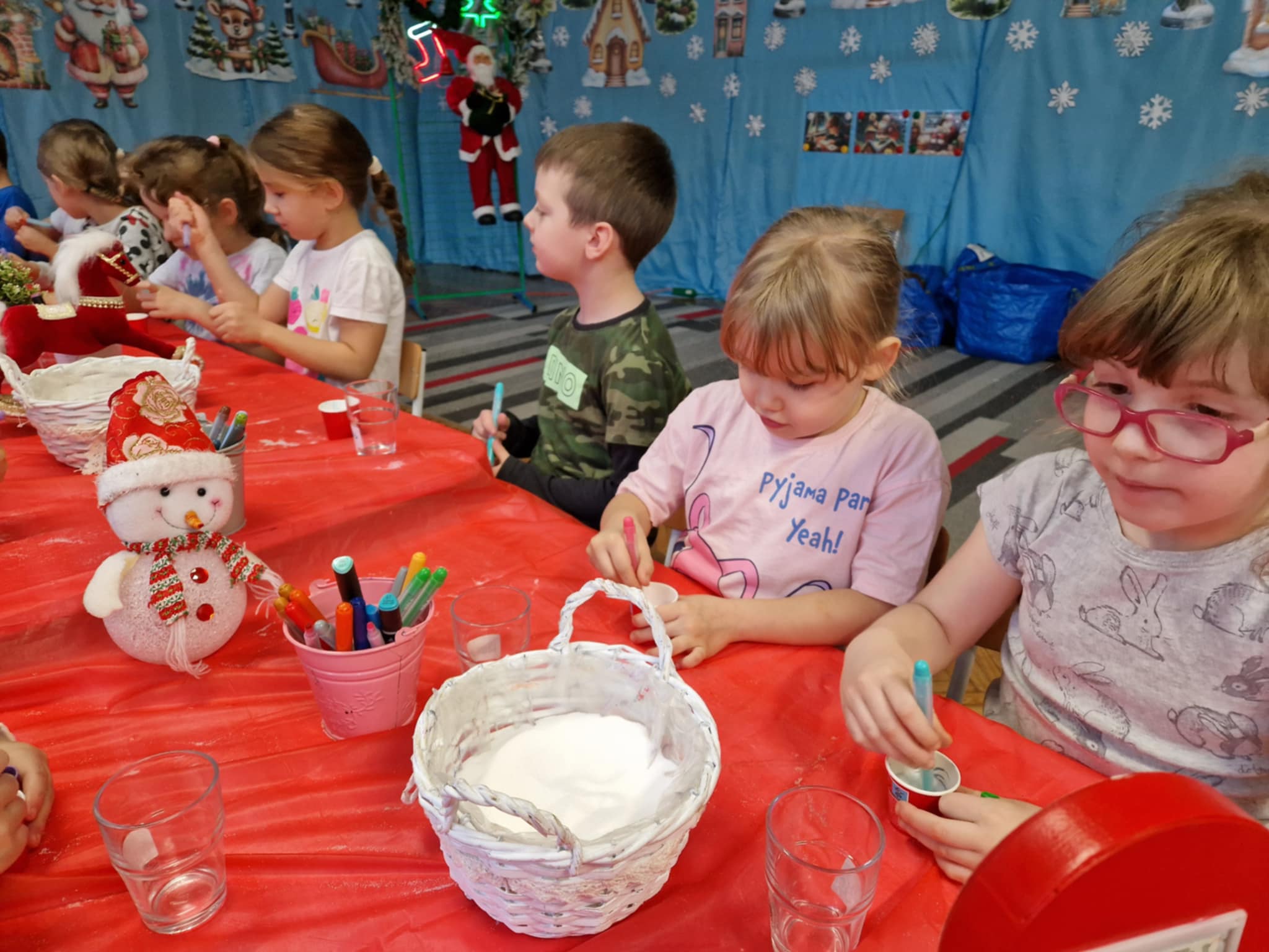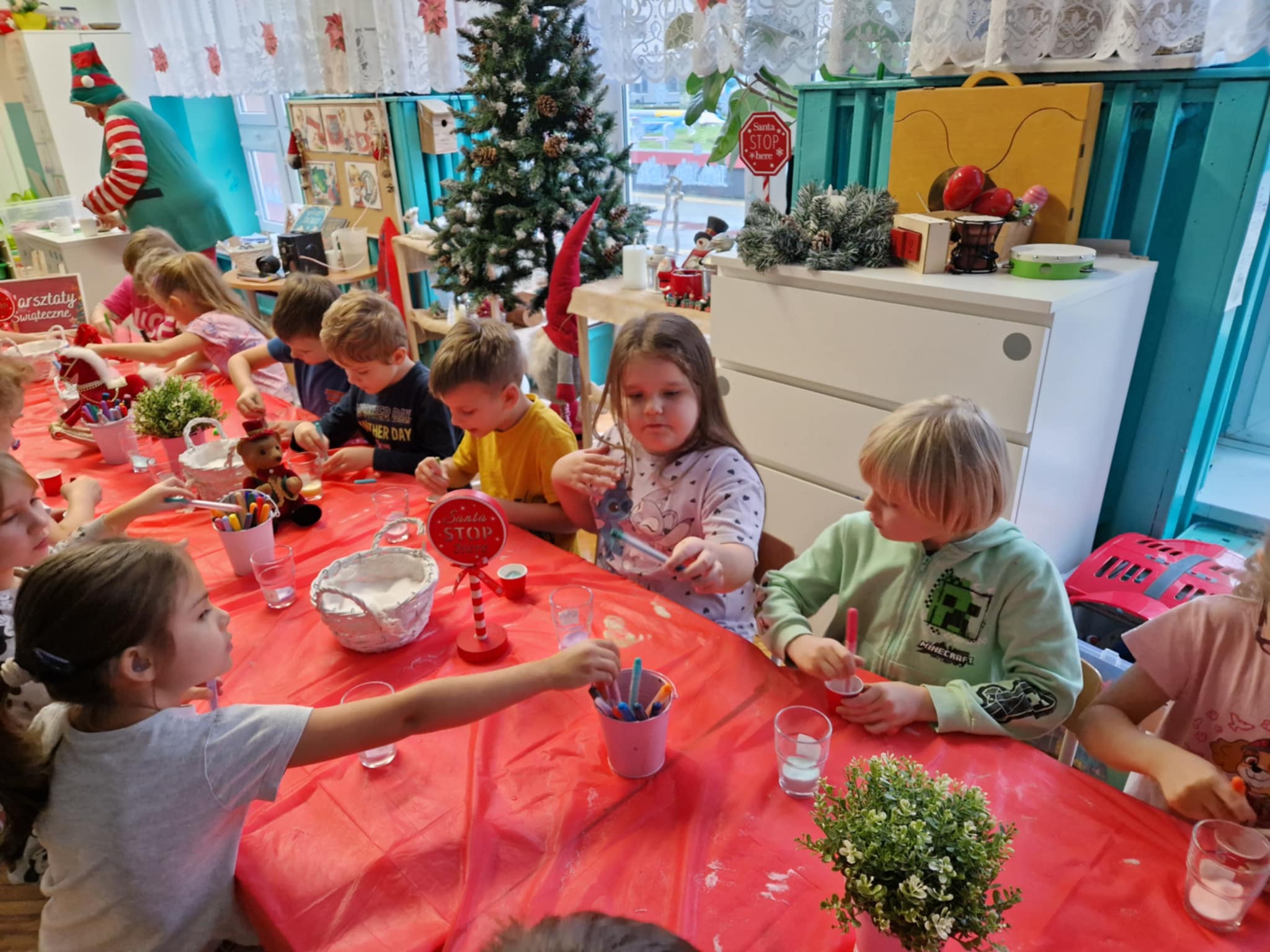 Z okazji Mikołajek dzieci wzięły udzial w Warsztatach świątecznych, podczas których wykonały ozdobne świece. W zadaniu pomagały przyjazne Elfy i odwiedził nas sam Święty Mikołaj.