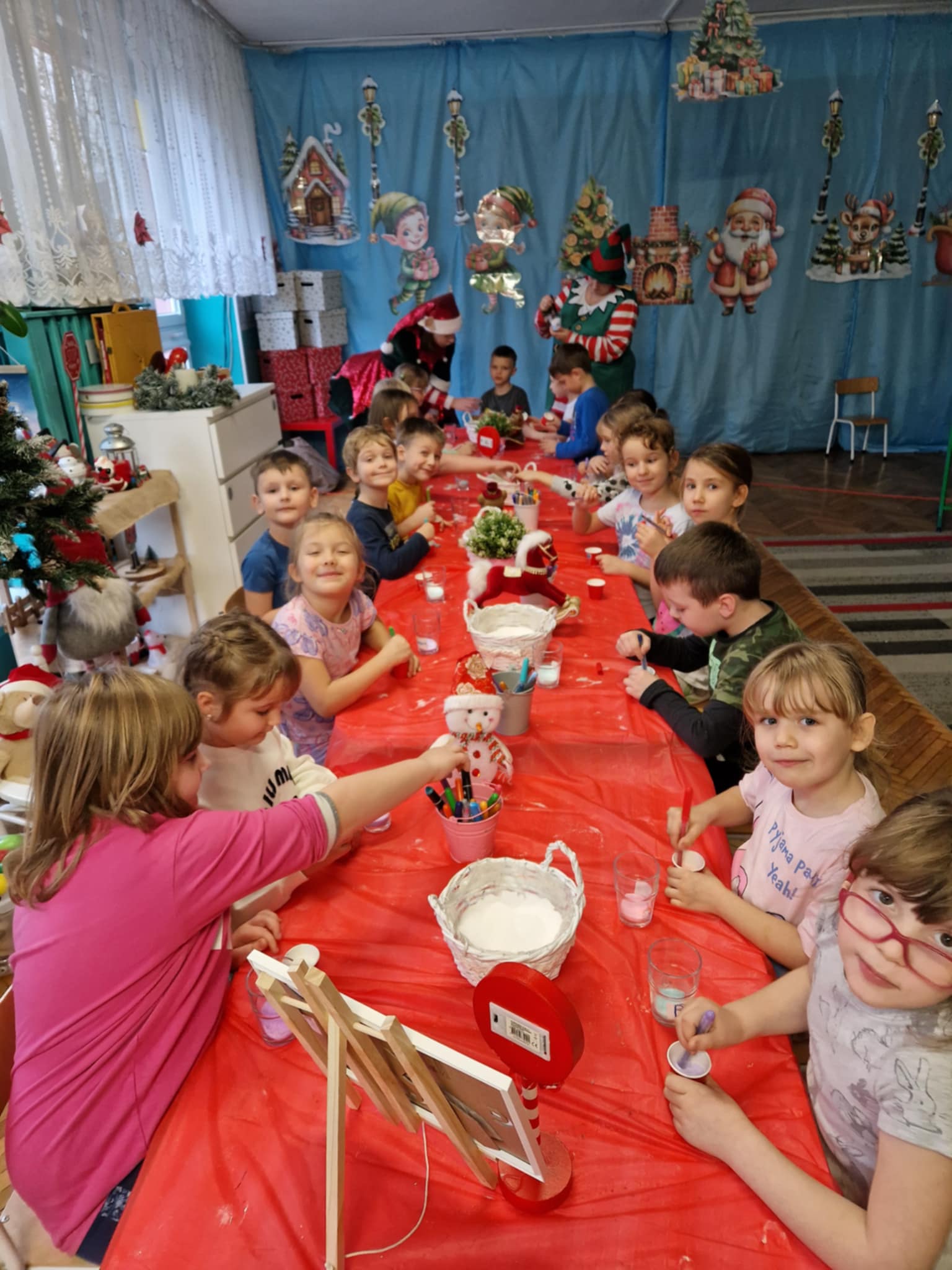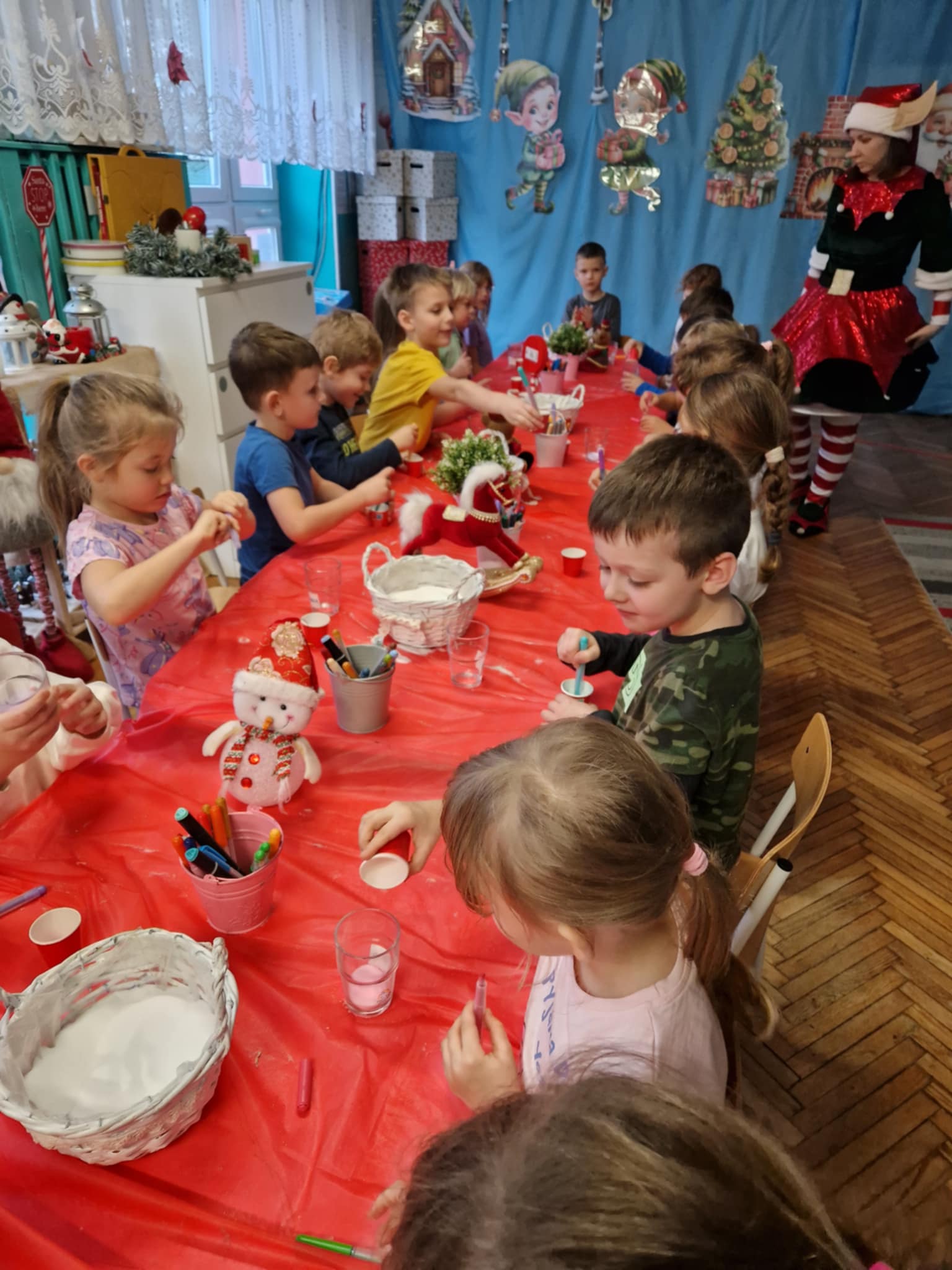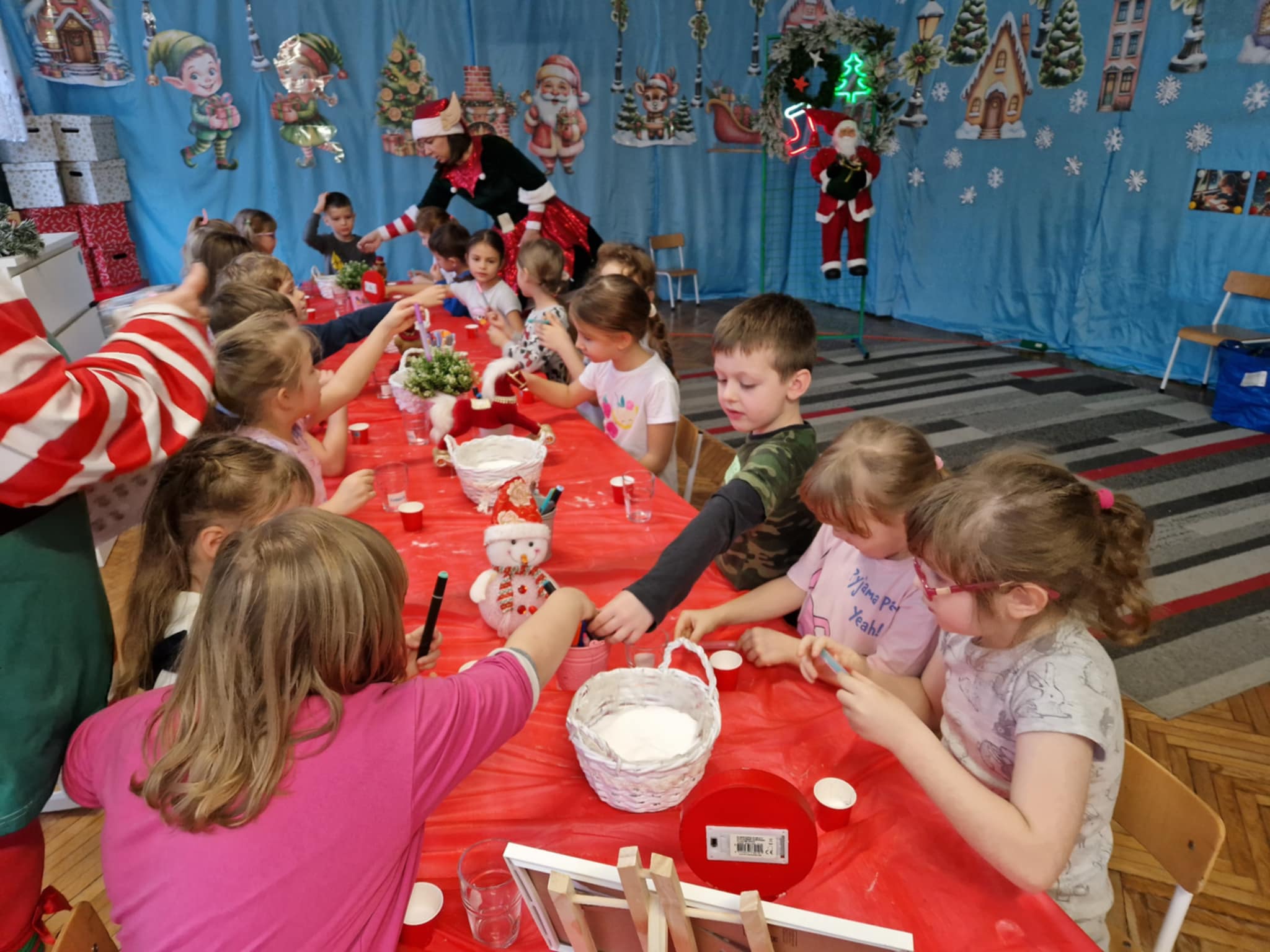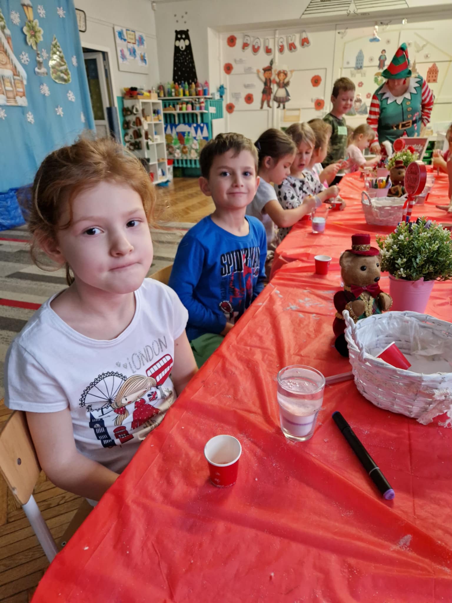 Z okazji Mikołajek dzieci wzięły udzial w Warsztatach świątecznych, podczas których wykonały ozdobne świece. W zadaniu pomagały przyjazne Elfy i odwiedził nas sam Święty Mikołaj.