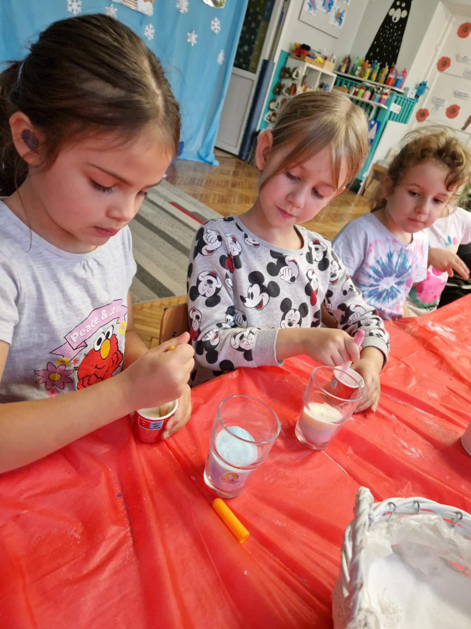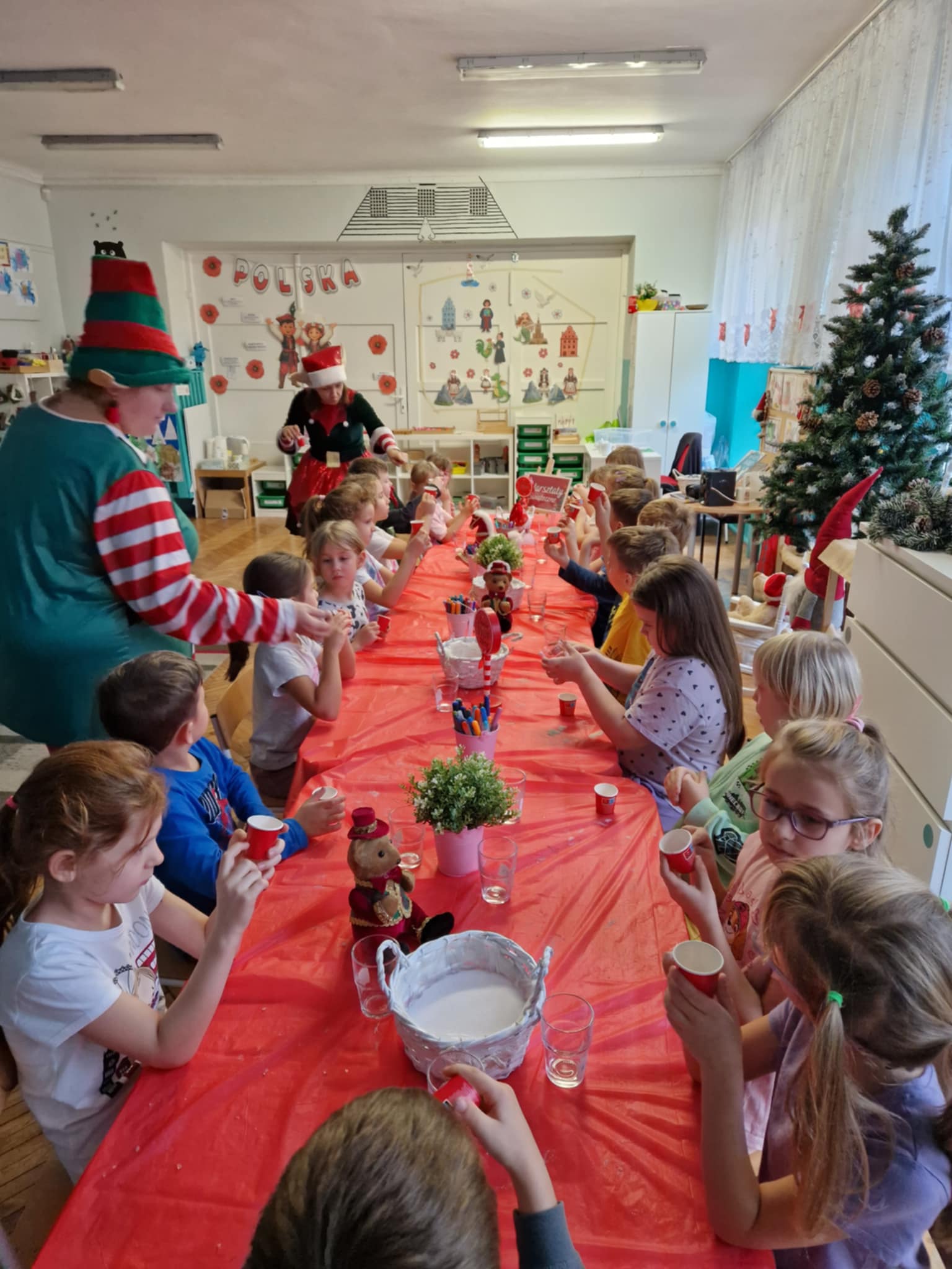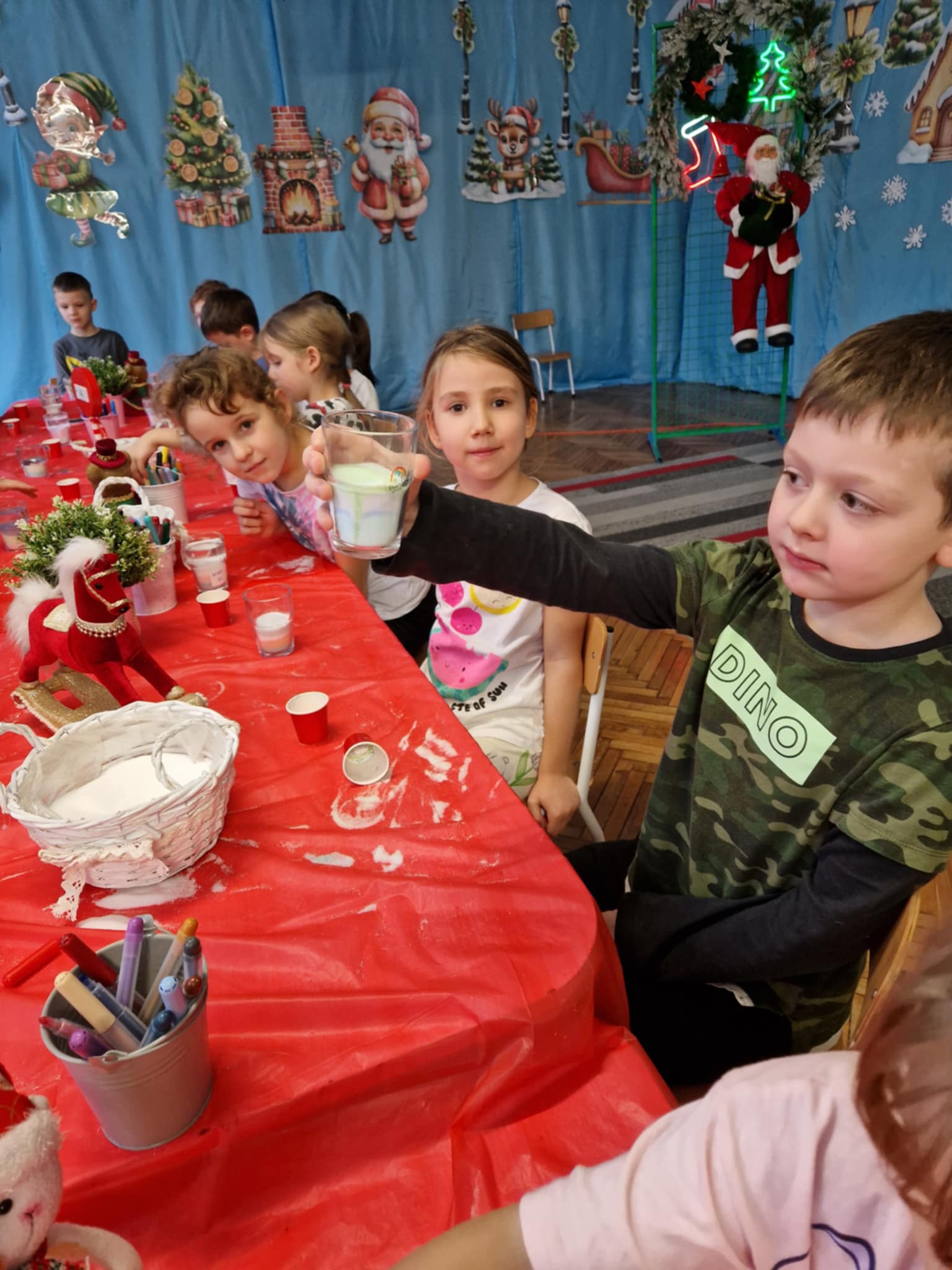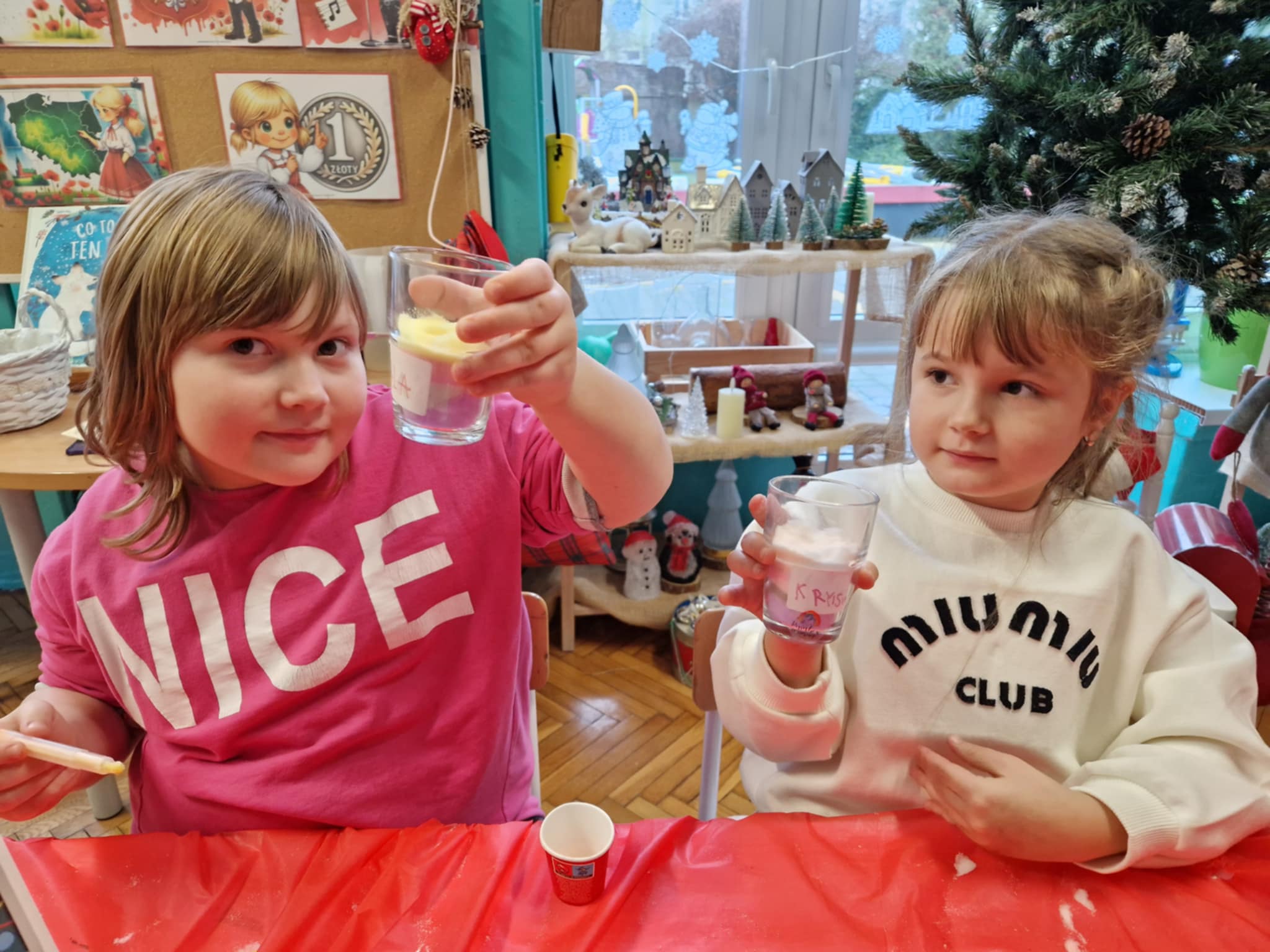 Z okazji Mikołajek dzieci wzięły udzial w Warsztatach świątecznych, podczas których wykonały ozdobne świece. W zadaniu pomagały przyjazne Elfy i odwiedził nas sam Święty Mikołaj.