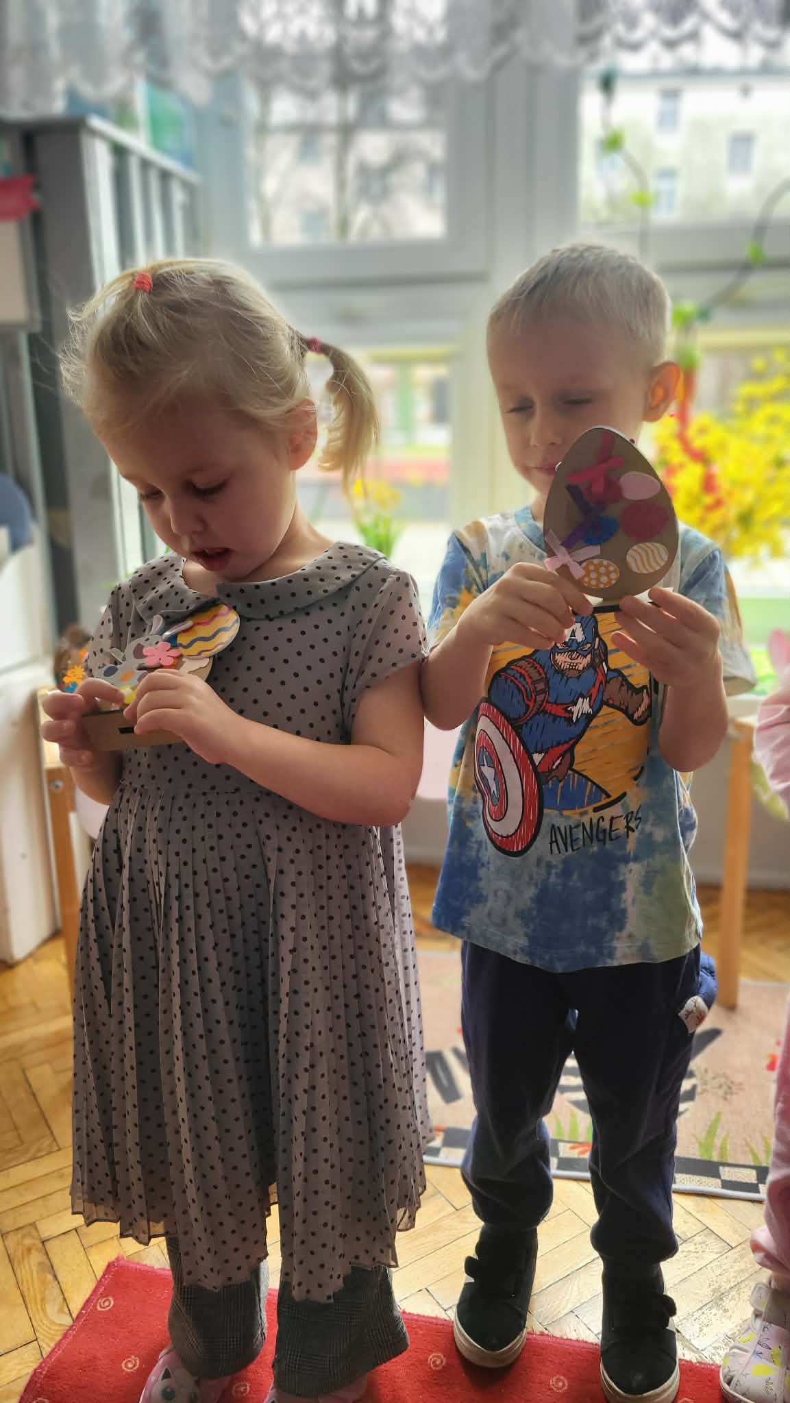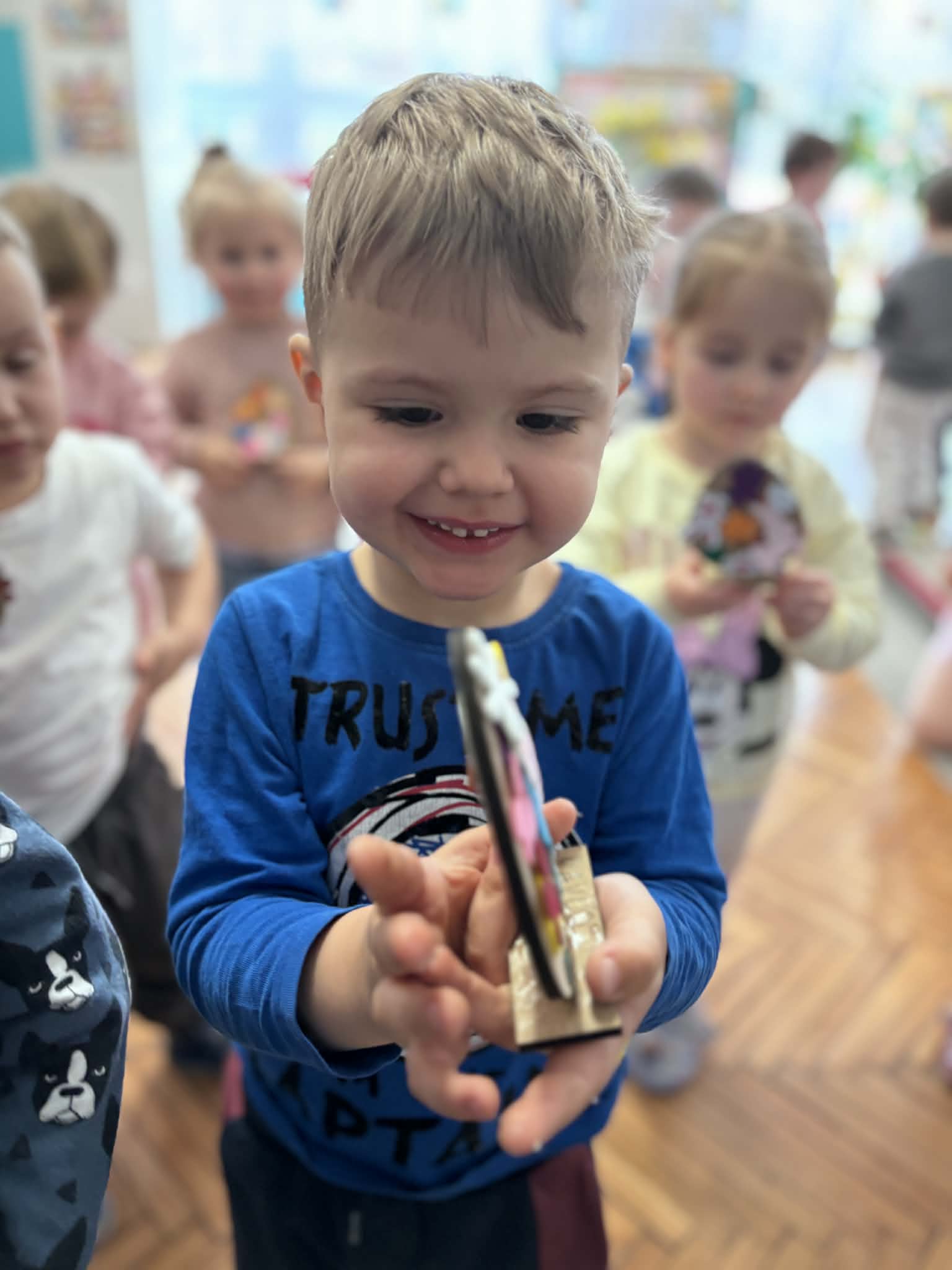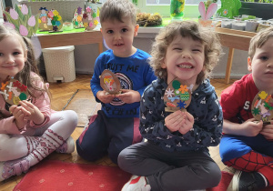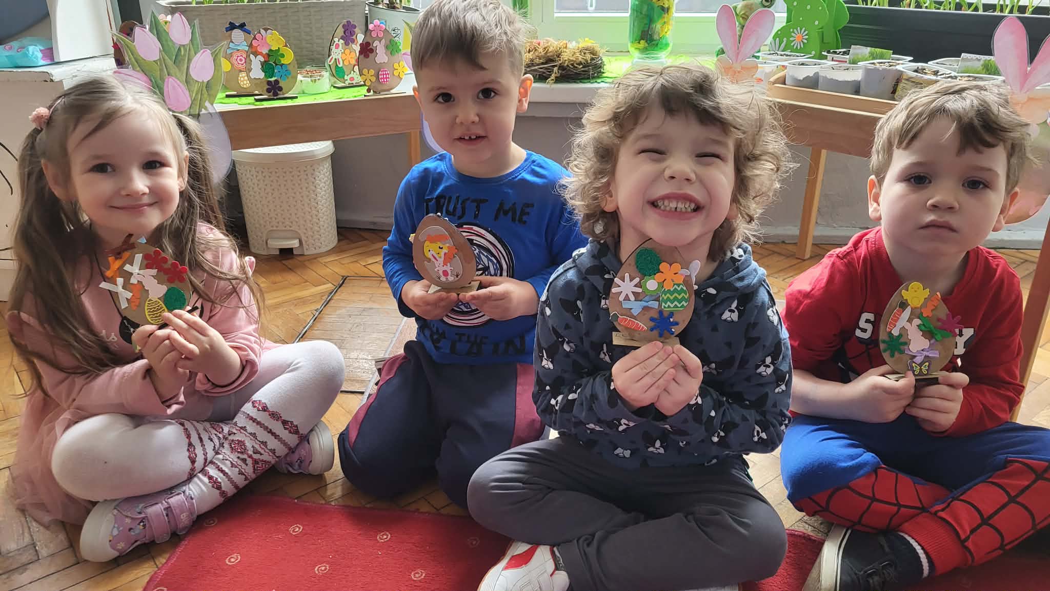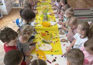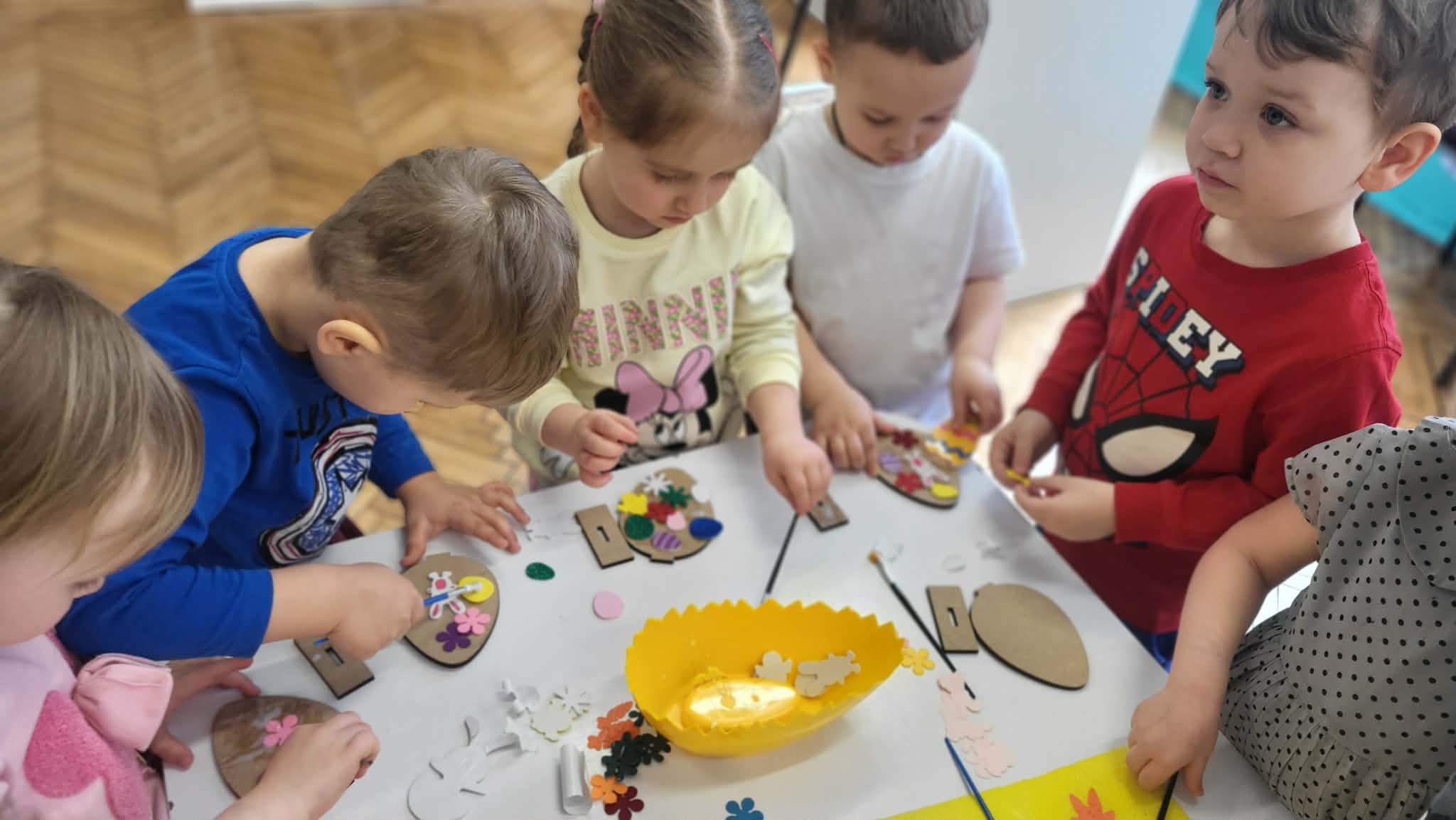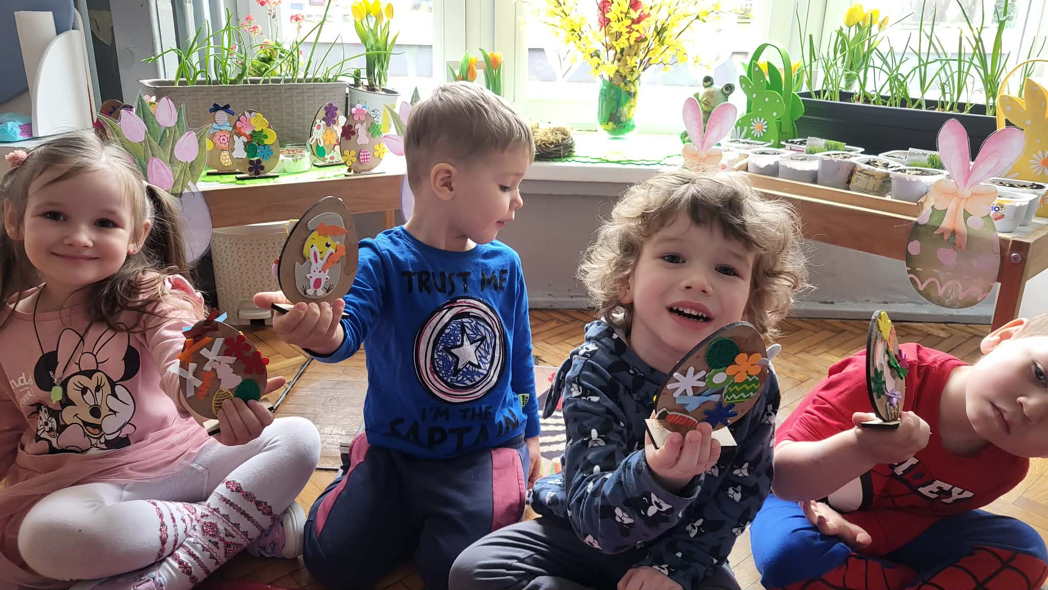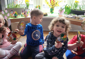 Dzieci z pierwszej grupy zamieniły się w prawdziwych artystów. Z nieukrywaną przyjemnością i zaangażowaniem tworzyły przepiękne wielkanocne ozdoby – kolorowe jajeczka pełne wiosennych motywów. Było mnóstwo radości, kreatywności i dumy z własnoręcznie wykonanych prac. Każda ozdoba jest wyjątkowa i niepowtarzalna– tak jak nasi mali twórcy. Dziękujemy za wspólnie spędzony, twórczy czas.