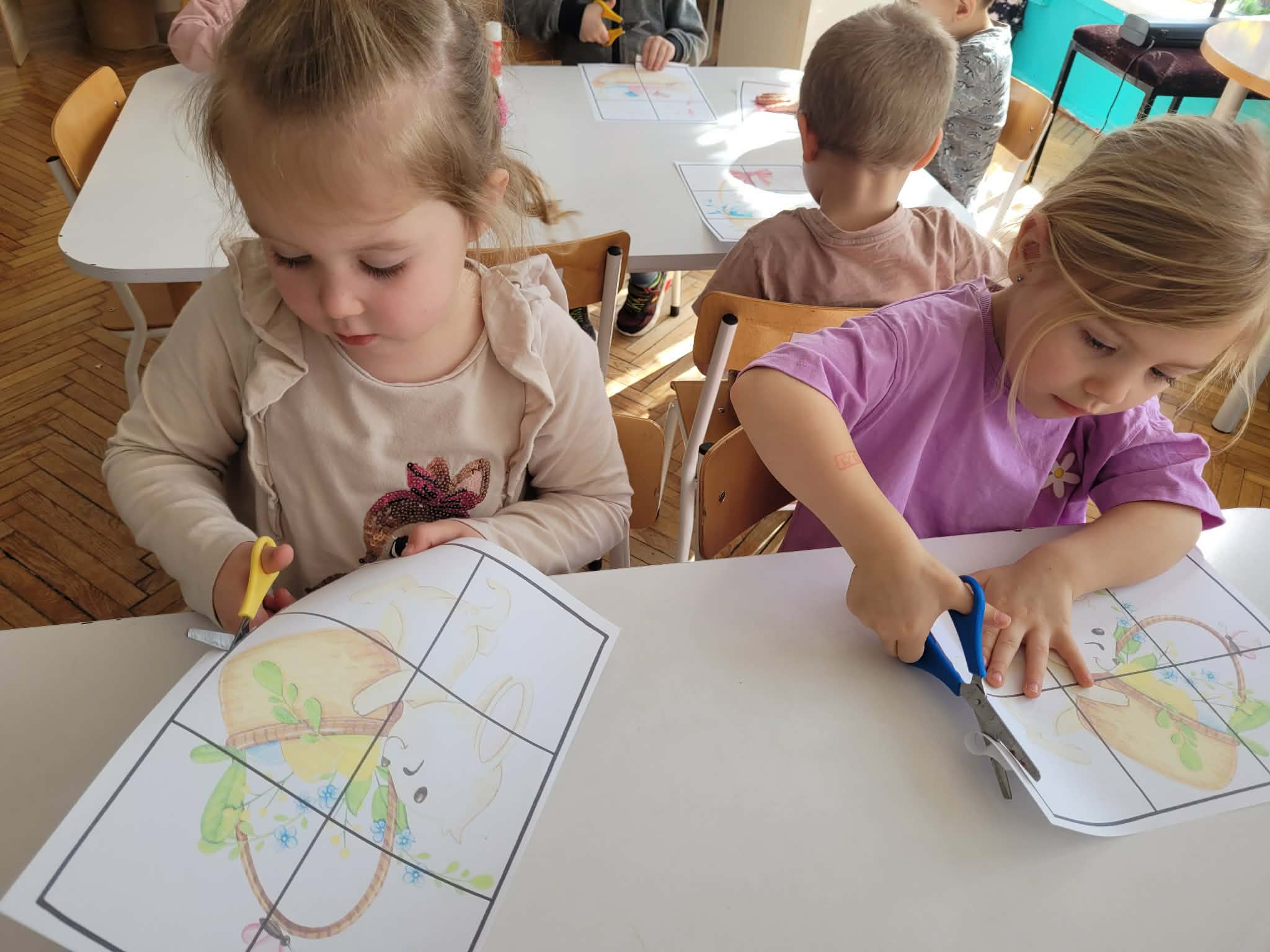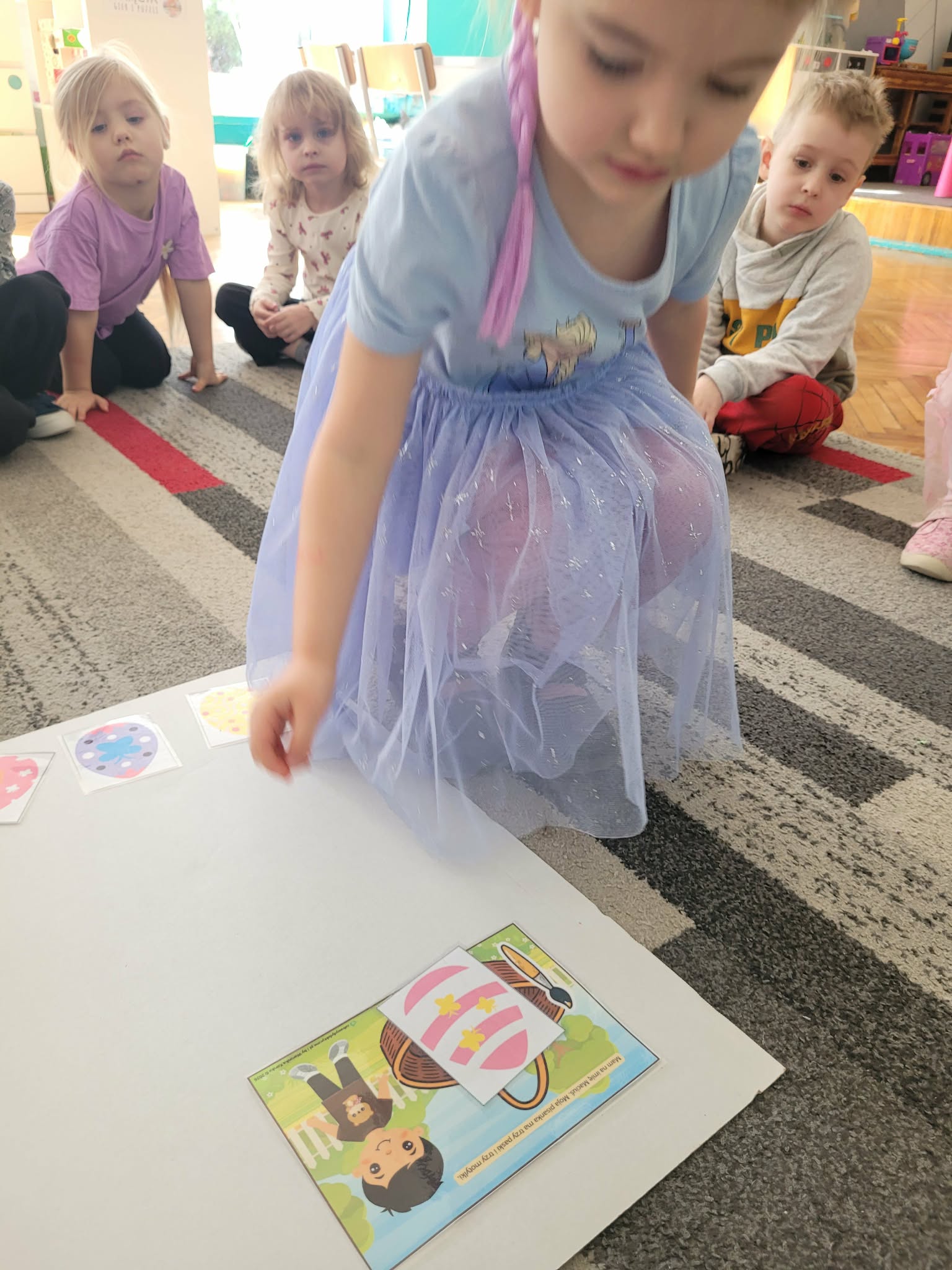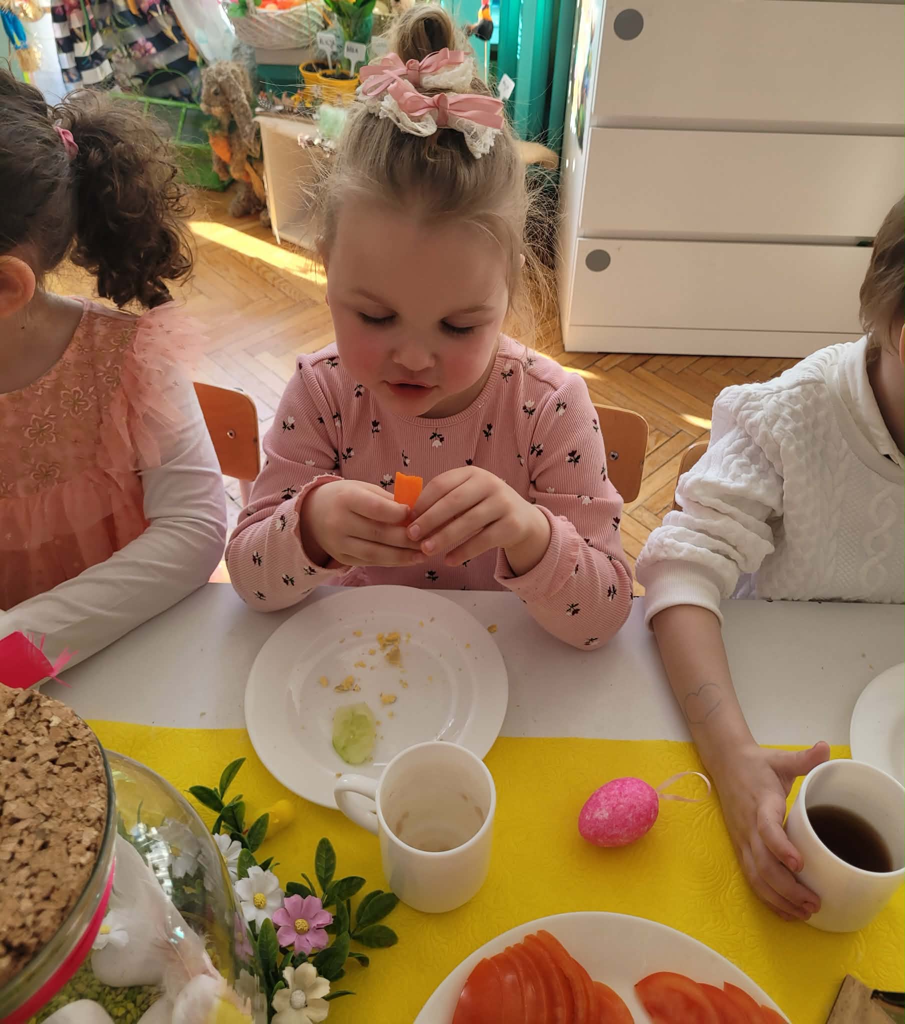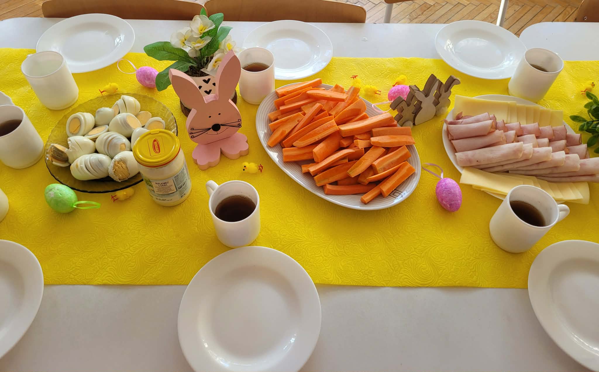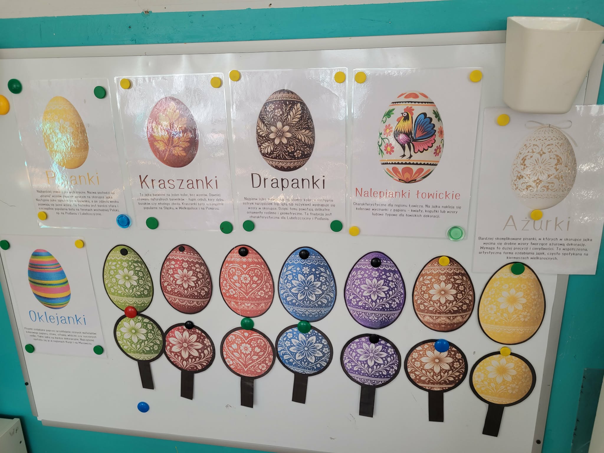 Dzieci dowiedziały się jakie mamy ludowe rodzaje barwienia jaj. Są pisanki, kraszanki, drapanki itp.;, które w wybranych rejonach Polski są do dziś wykonywane. Dzieci rozwiązywały zagadki związane z pisankami, układały puzzle. Na podsumowanie tematu zjadły pyszne śniadanie wielkanocne. Dziękujemy rodzicom za przyniesienie dań wielkanocnych.