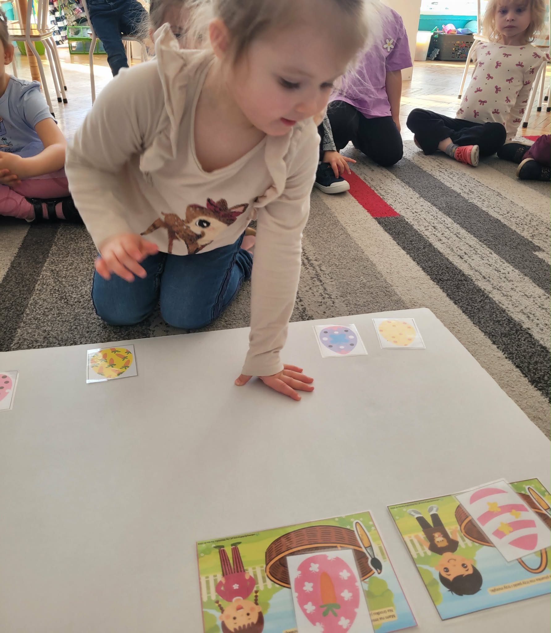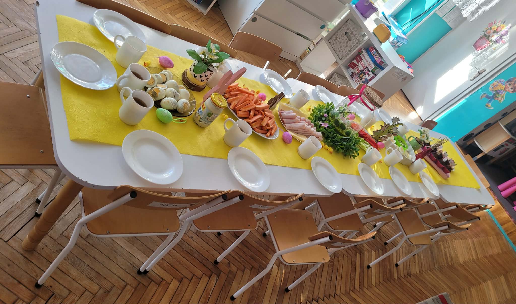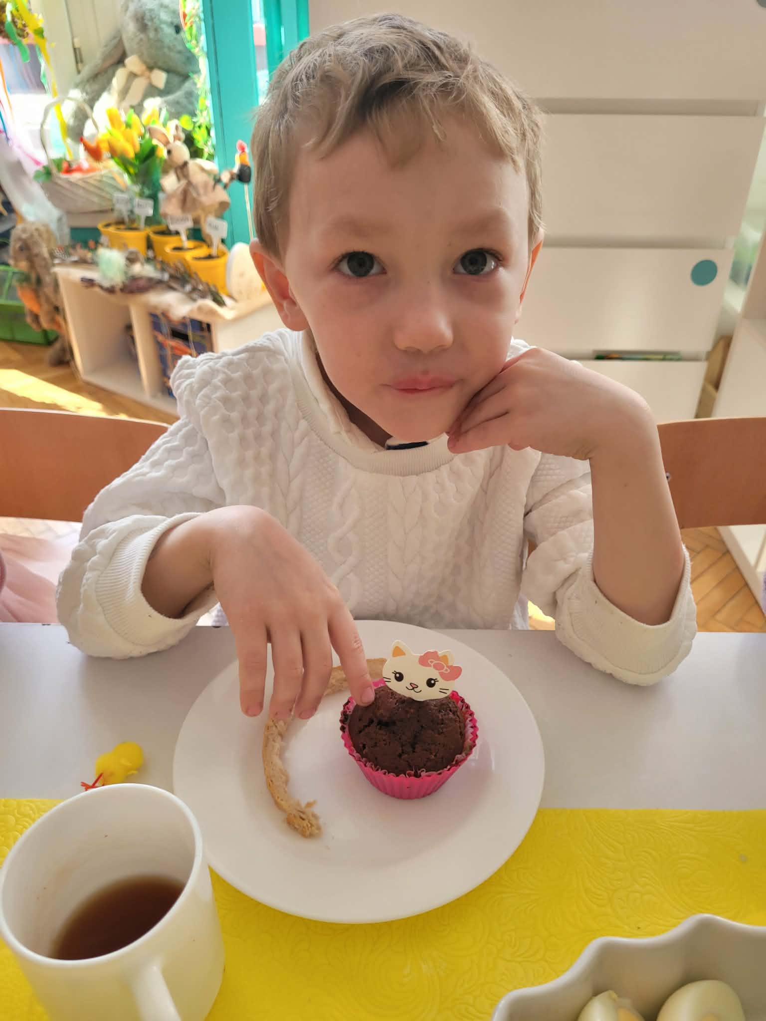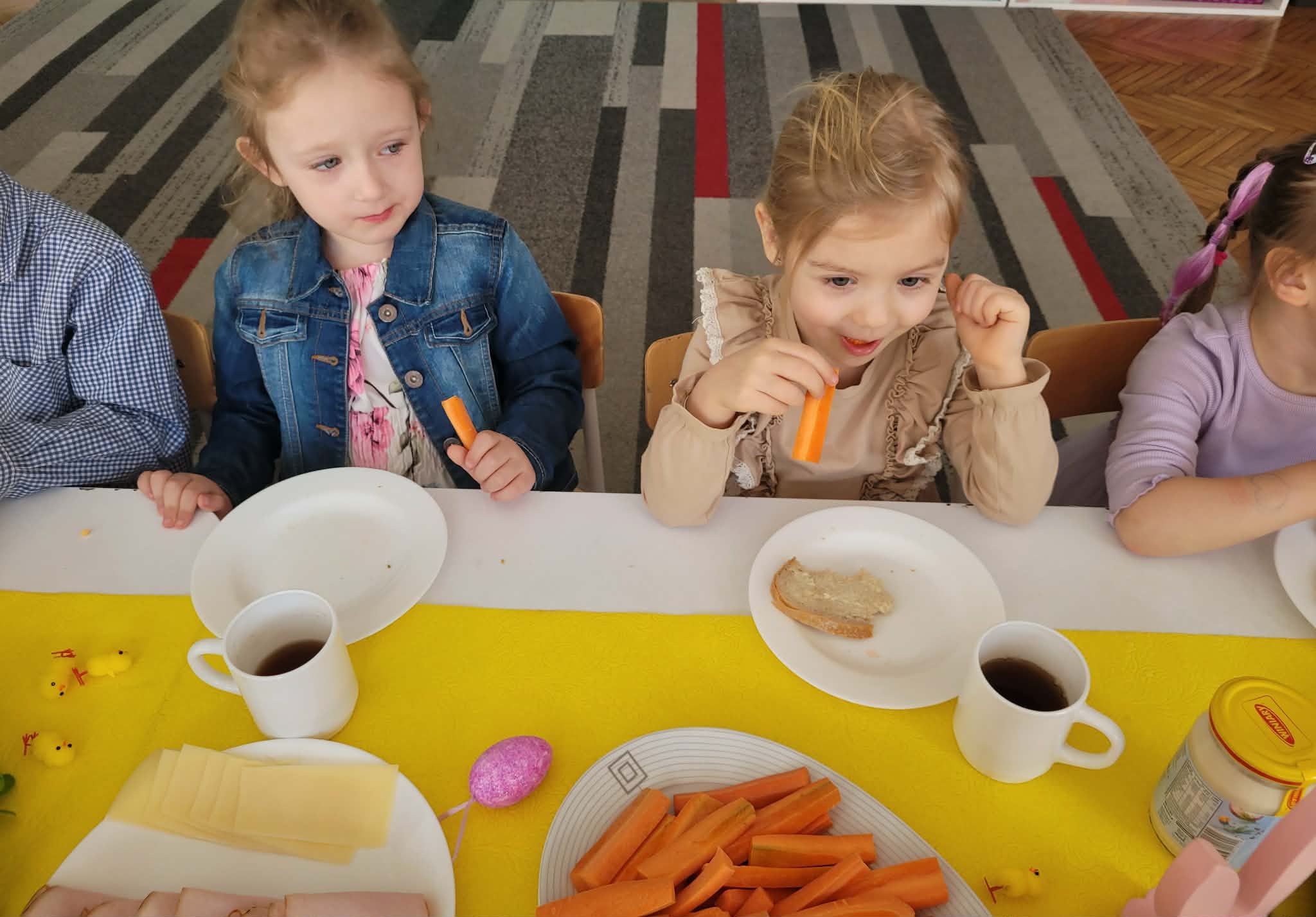 Dzieci dowiedziały się jakie mamy ludowe rodzaje barwienia jaj. Są pisanki, kraszanki, drapanki itp.;, które w wybranych rejonach Polski są do dziś wykonywane. Dzieci rozwiązywały zagadki związane z pisankami, układały puzzle. Na podsumowanie tematu zjadły pyszne śniadanie wielkanocne. Dziękujemy rodzicom za przyniesienie dań wielkanocnych.