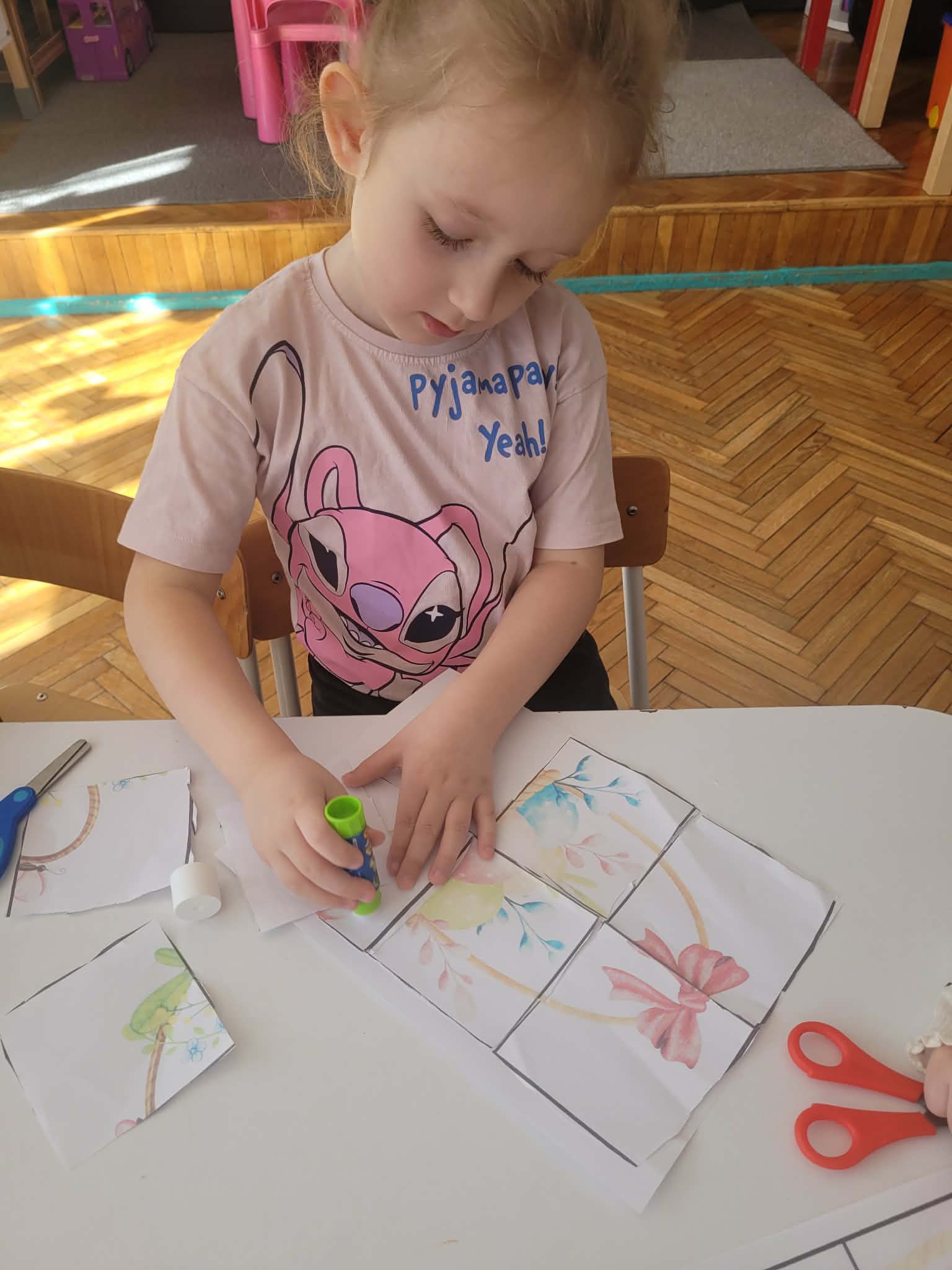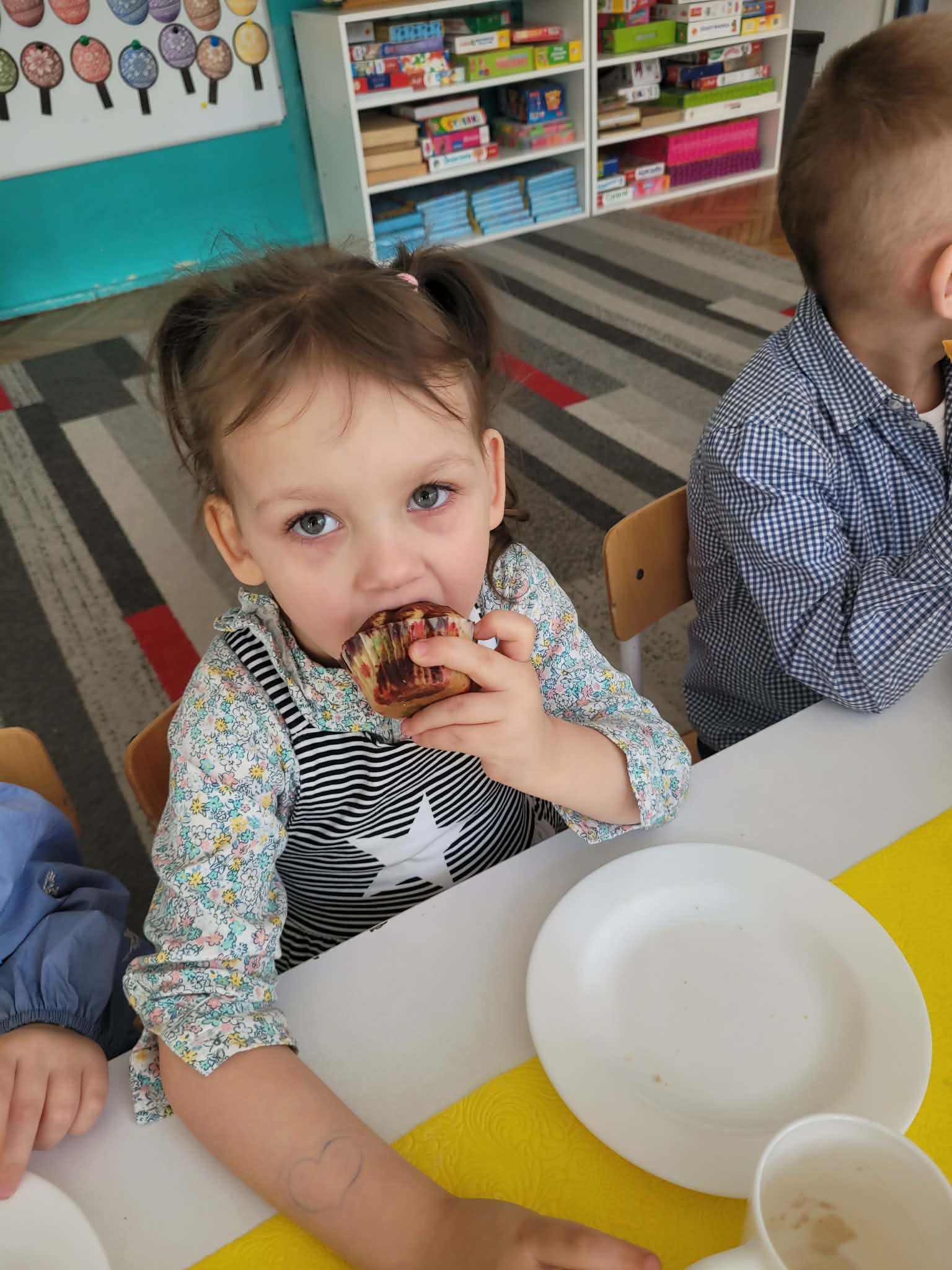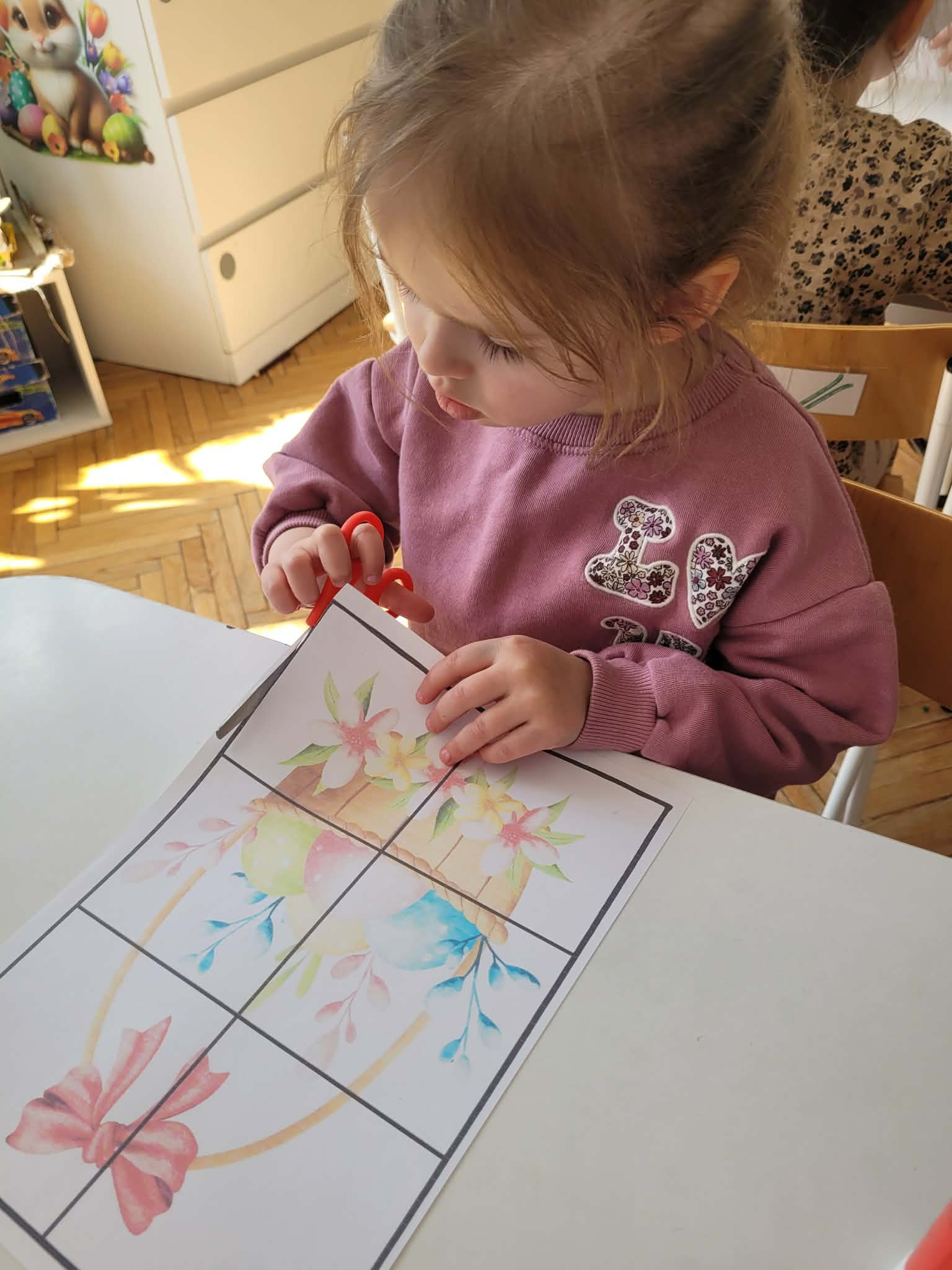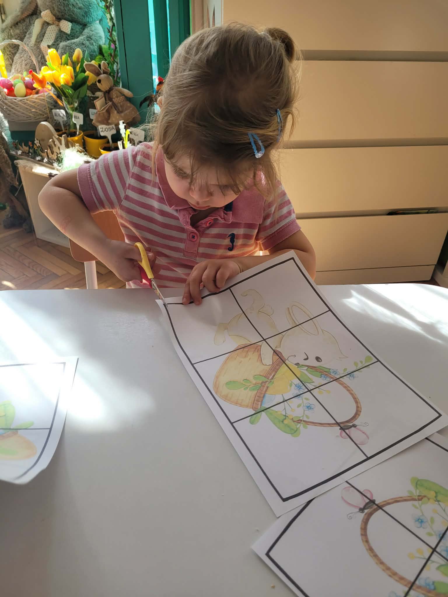 Dzieci dowiedziały się jakie mamy ludowe rodzaje barwienia jaj. Są pisanki, kraszanki, drapanki itp.;, które w wybranych rejonach Polski są do dziś wykonywane. Dzieci rozwiązywały zagadki związane z pisankami, układały puzzle. Na podsumowanie tematu zjadły pyszne śniadanie wielkanocne. Dziękujemy rodzicom za przyniesienie dań wielkanocnych.