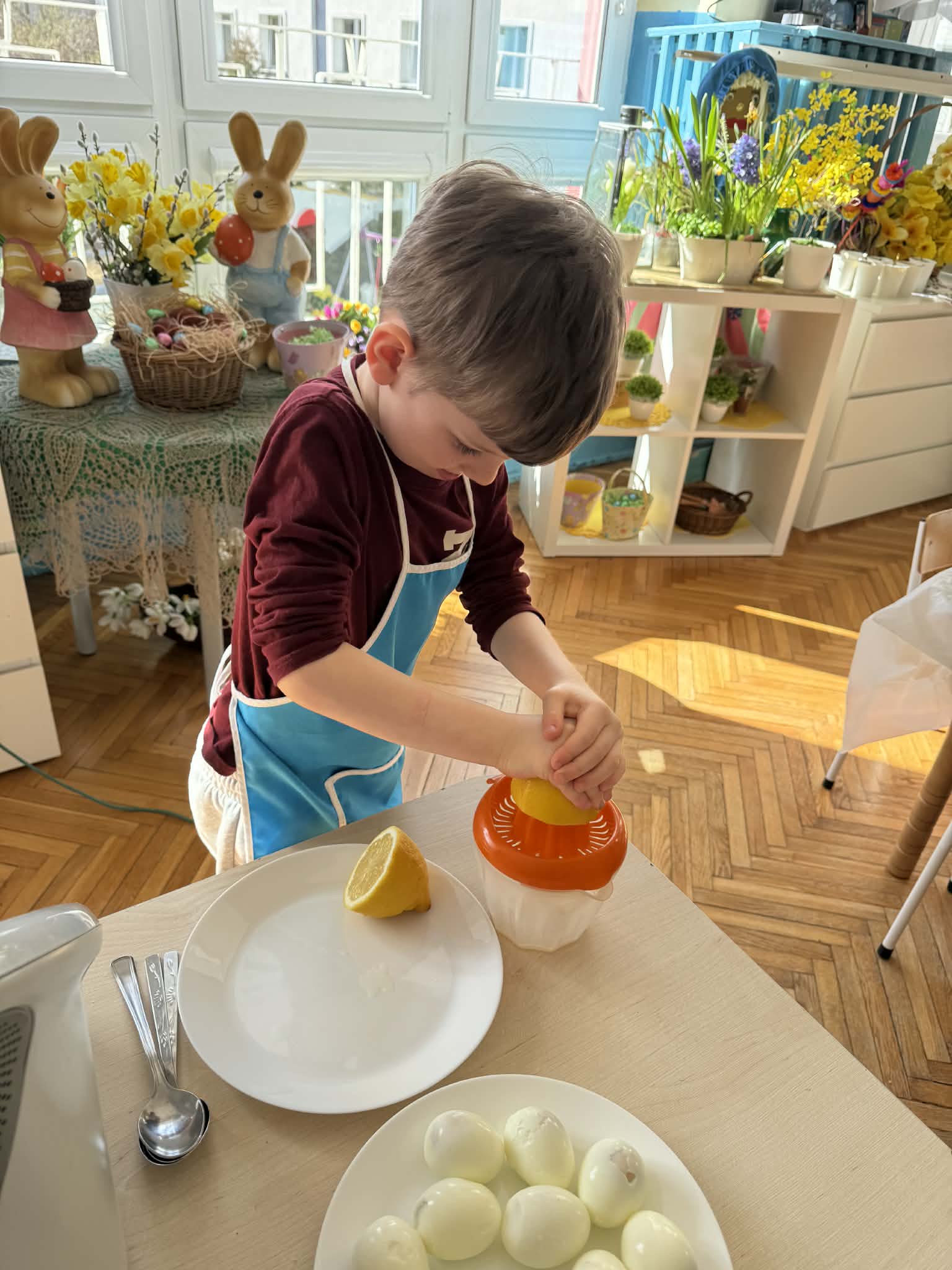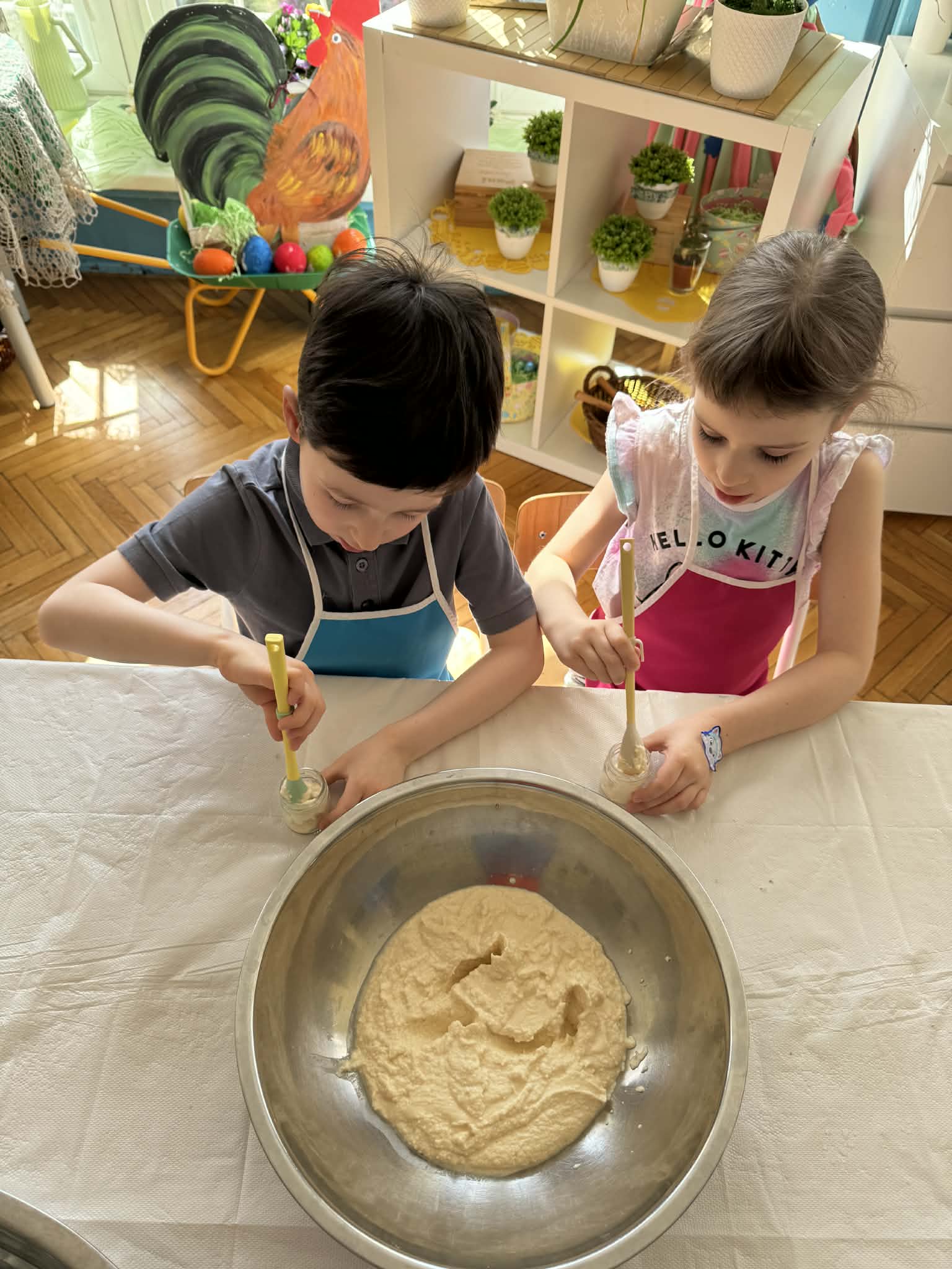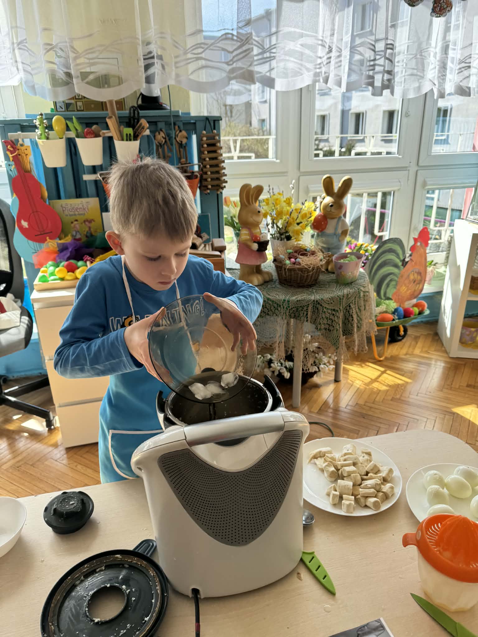Dziś nasze przedszkolaki zamieniły się w małych kucharzy i z ogromnym zaangażowaniem przygotowywały tradycyjny chrzan na kiermasz wielkanocny. Dzieci z ciekawością poznawały zapach i smak chrzanu, uczyły się, skąd się bierze i jak ważnym elementem jest w świątecznej kuchni. Nie zabrakło śmiechu, odrobiny łez (bo chrzan potrafi być naprawdę ostry! i przede wszystkim świetnej zabawy. Przygotowane słoiczki będą dostępne na naszym kiermaszu – to nie tylko pyszny dodatek do wielkanocnych potraw, ale też efekt pracy i serca włożonego przez dzieci