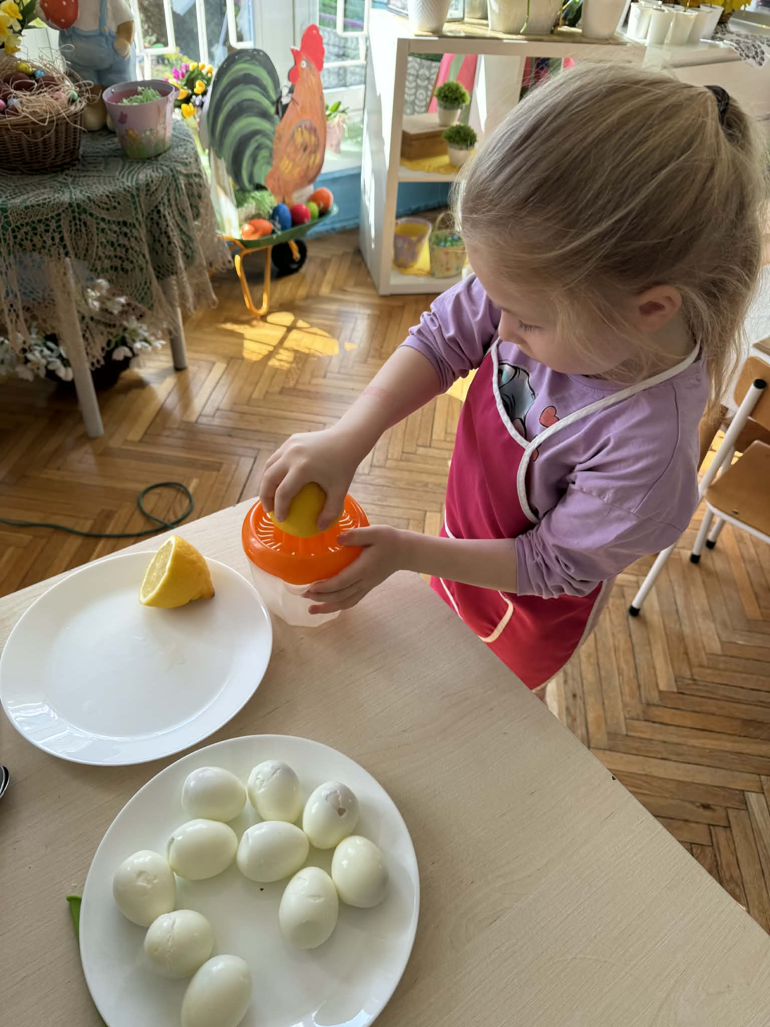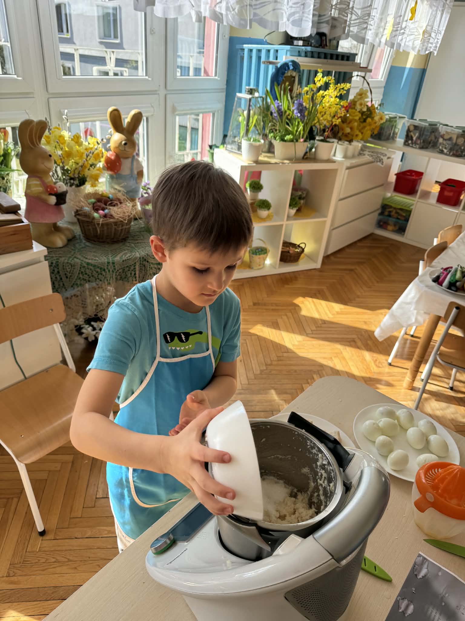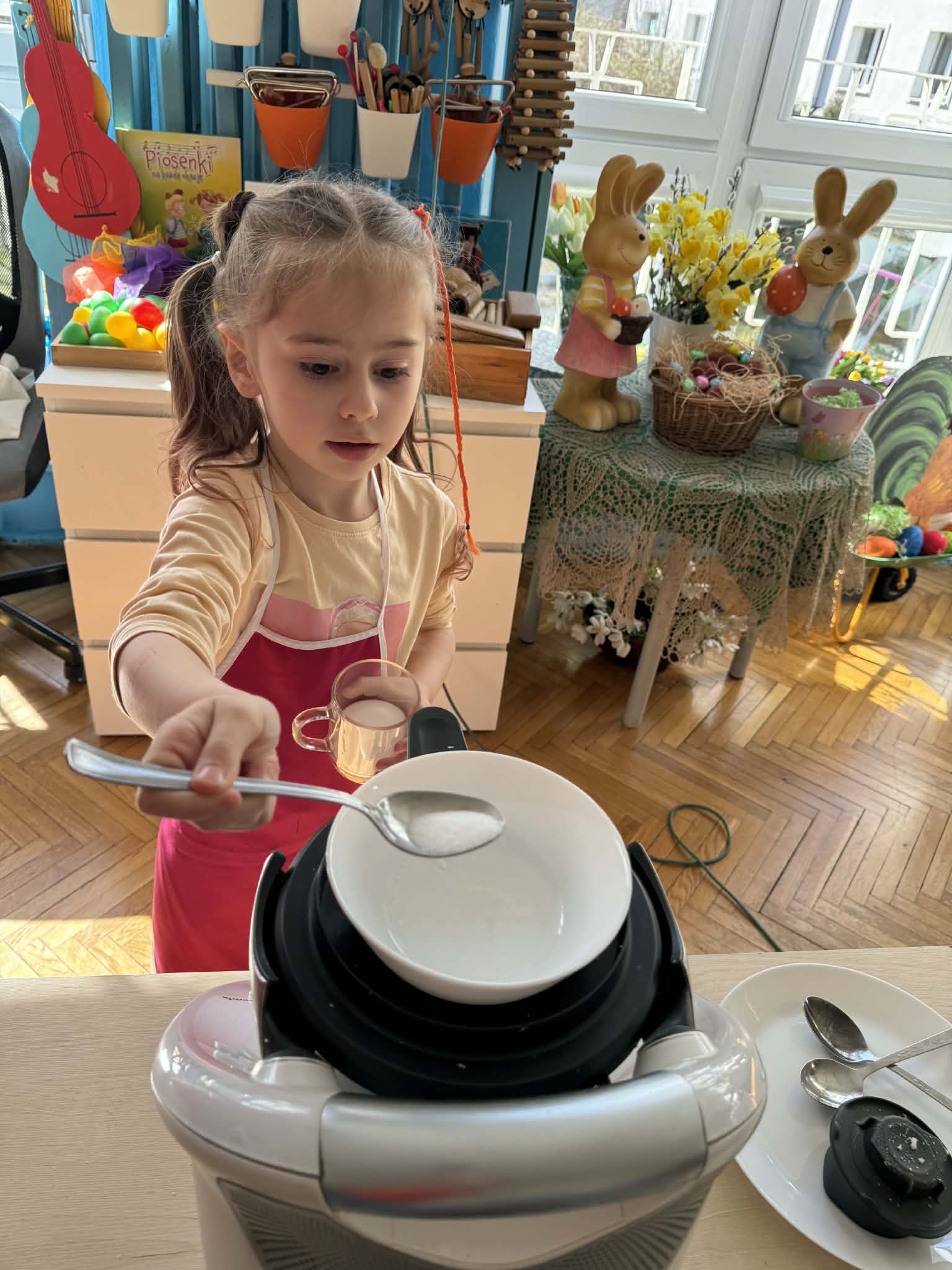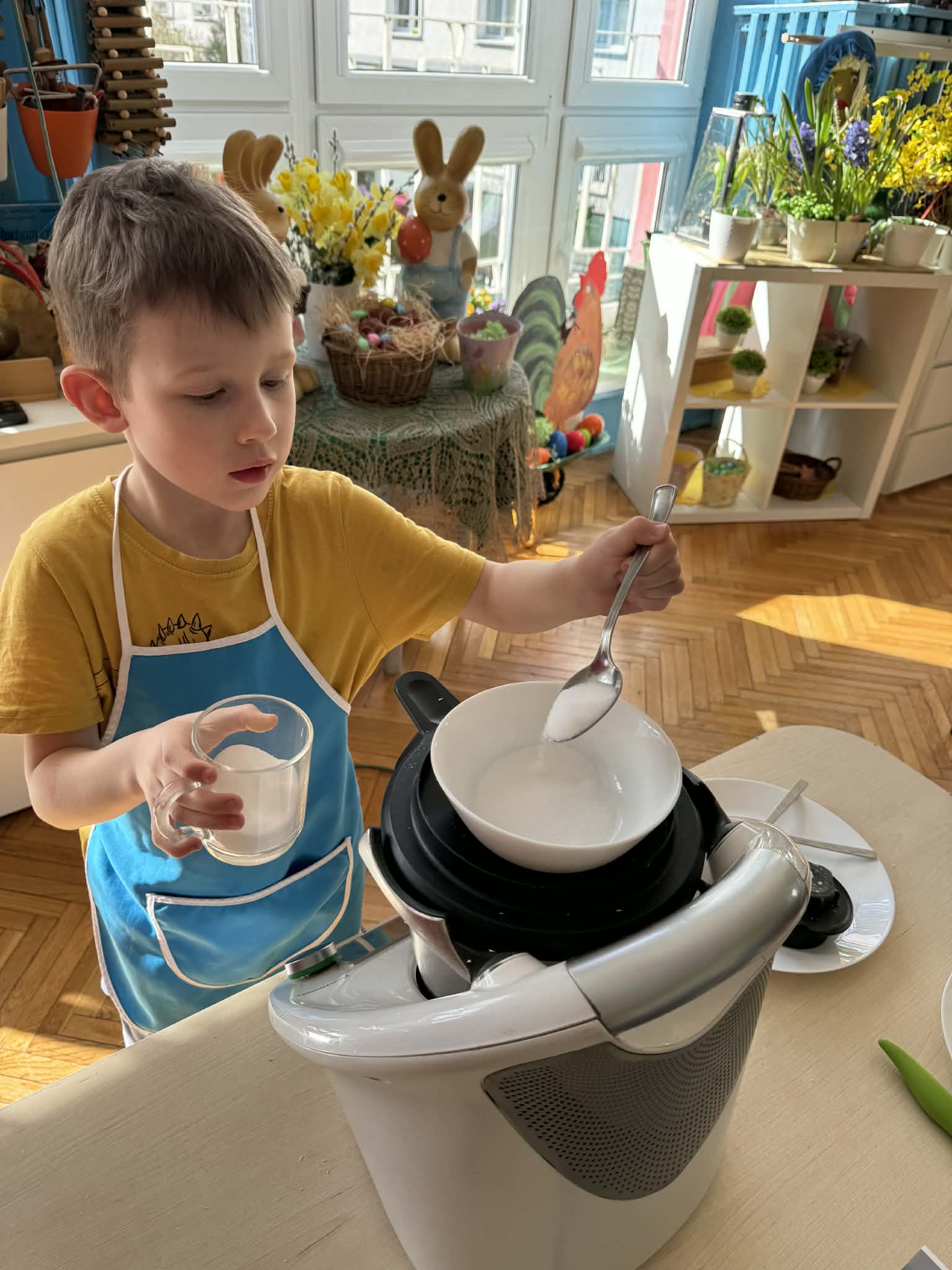 Dziś nasze przedszkolaki zamieniły się w małych kucharzy i z ogromnym zaangażowaniem przygotowywały tradycyjny chrzan na kiermasz wielkanocny. Dzieci z ciekawością poznawały zapach i smak chrzanu, uczyły się, skąd się bierze i jak ważnym elementem jest w świątecznej kuchni. Nie zabrakło śmiechu, odrobiny łez (bo chrzan potrafi być naprawdę ostry! i przede wszystkim świetnej zabawy. Przygotowane słoiczki będą dostępne na naszym kiermaszu – to nie tylko pyszny dodatek do wielkanocnych potraw, ale też efekt pracy i serca włożonego przez dzieci