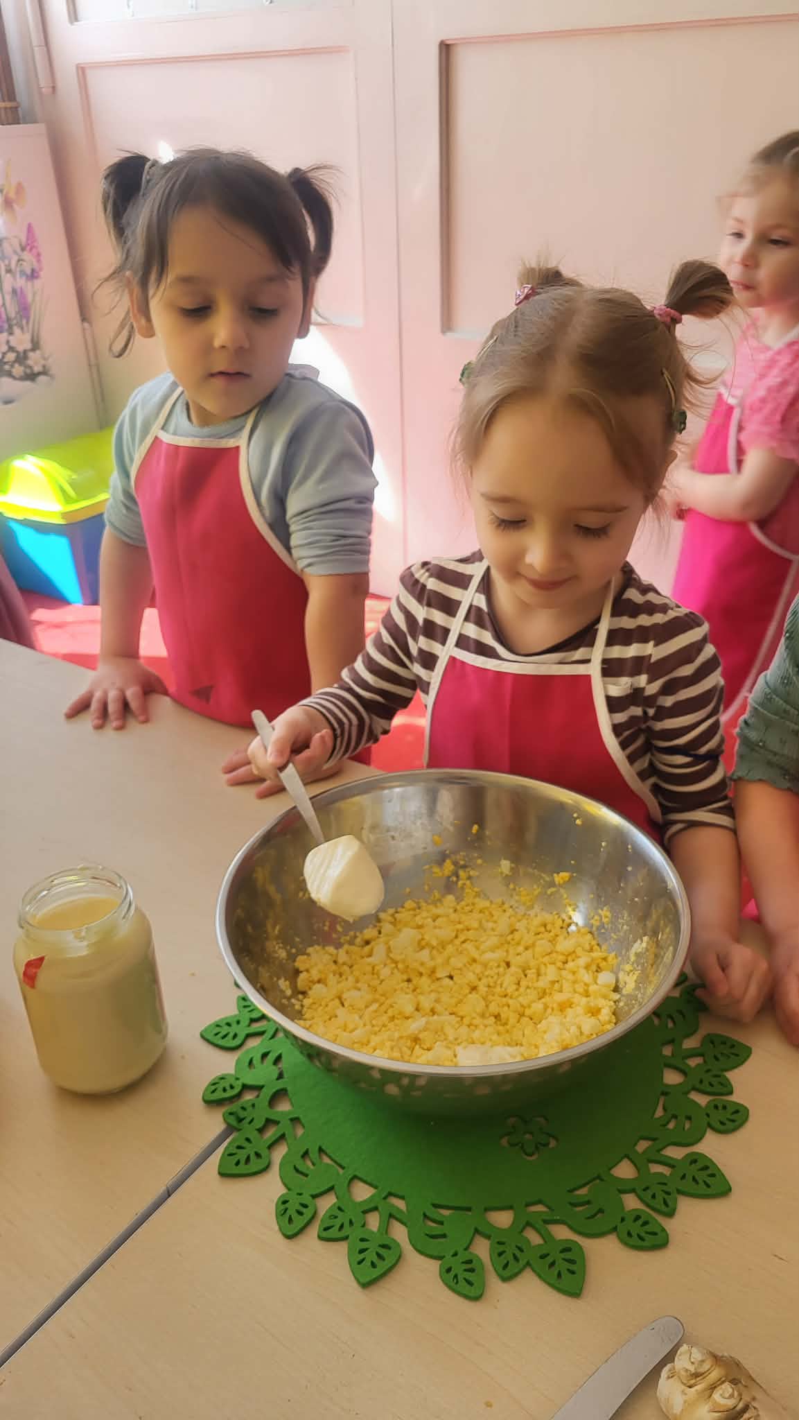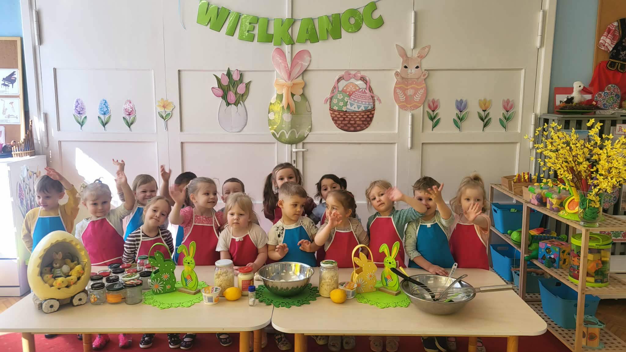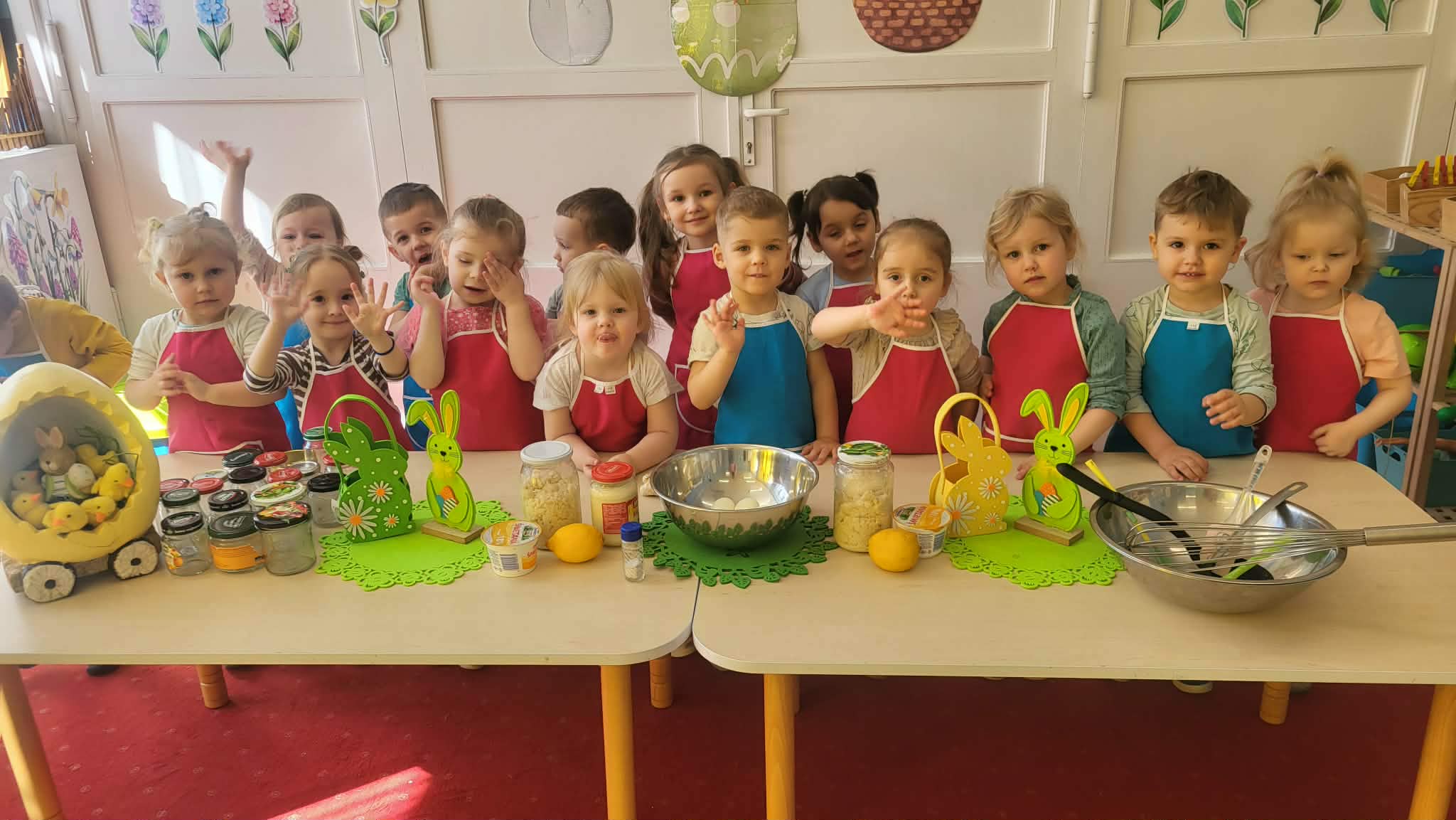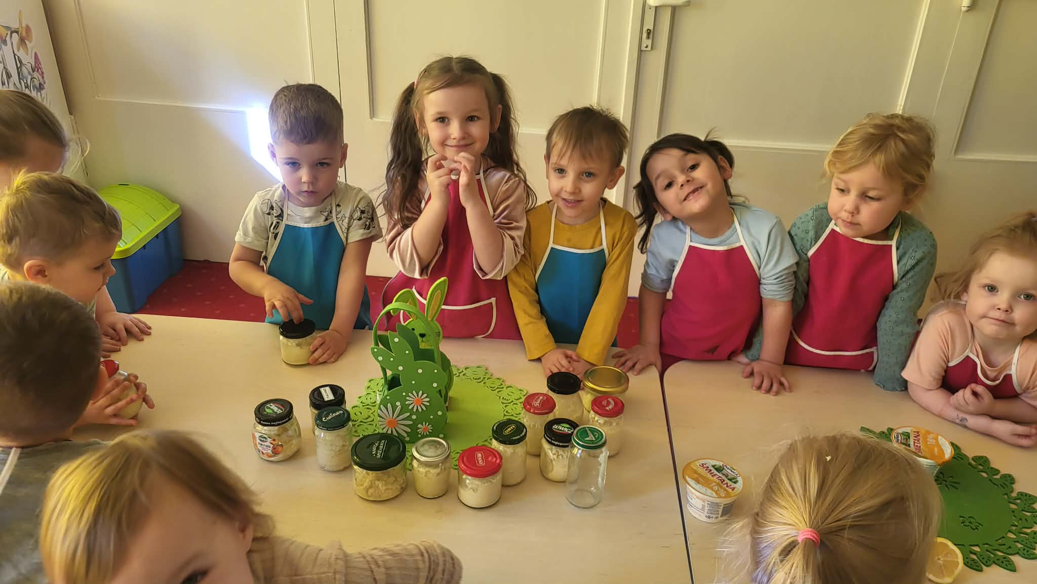 Dziś w przedszkolu wielkie poruszenie. Nasze Maluszki przygotowały kremowy sos chrzanowy z okazji zbliżających się świąt Wielkiej Nocy. Słoiczki dostępne są na naszym Kiermaszu Wielkanocnym.