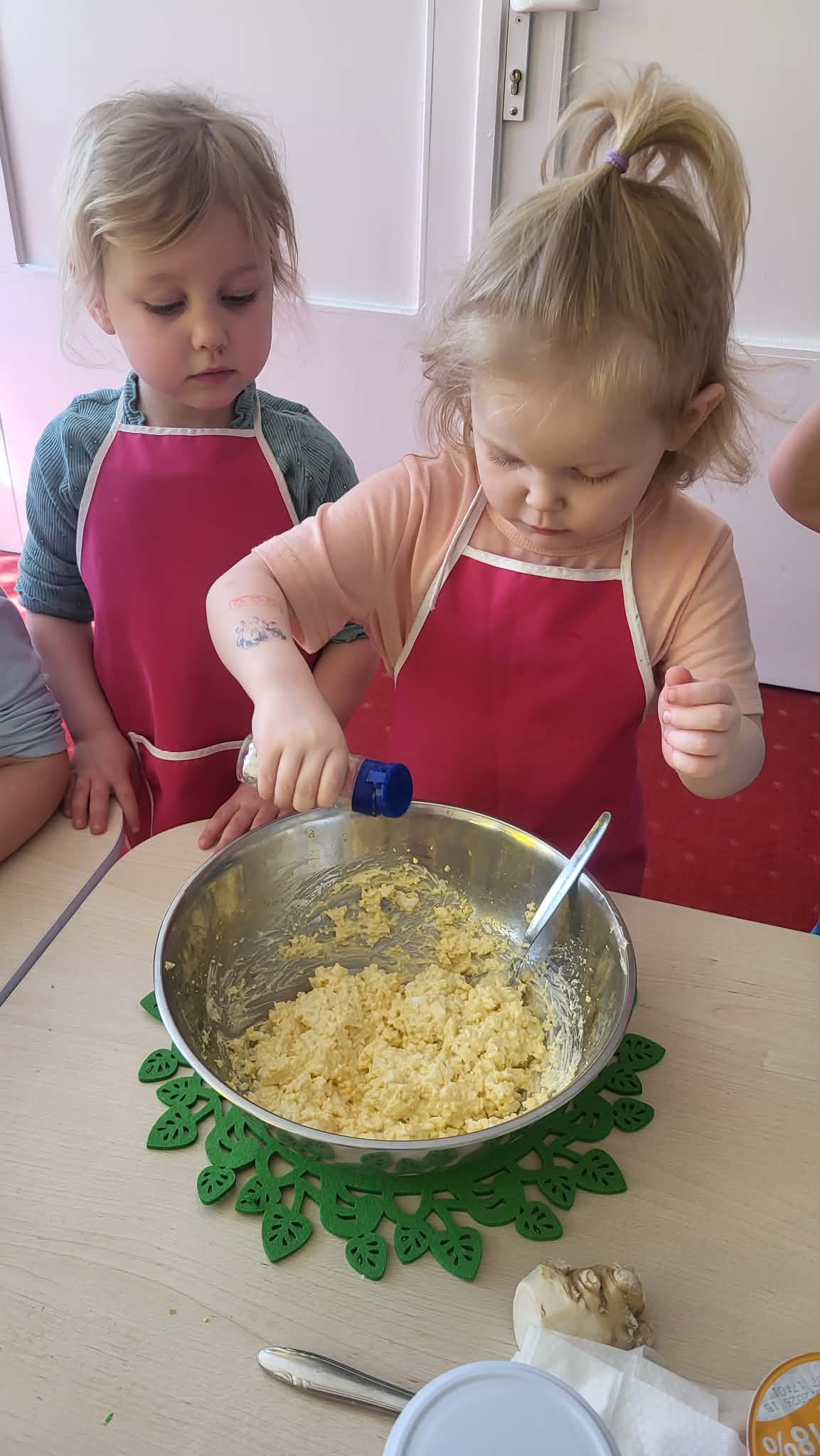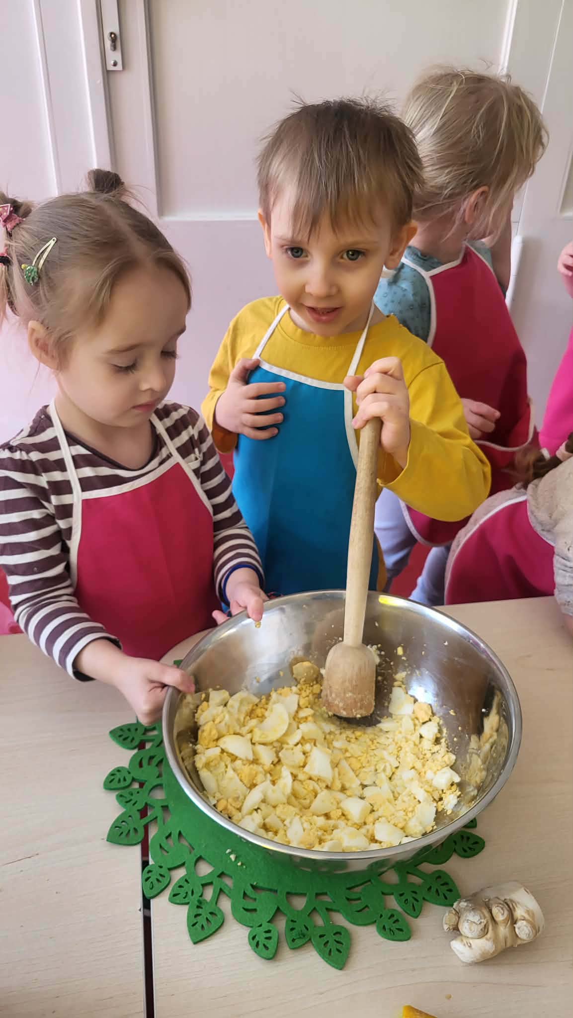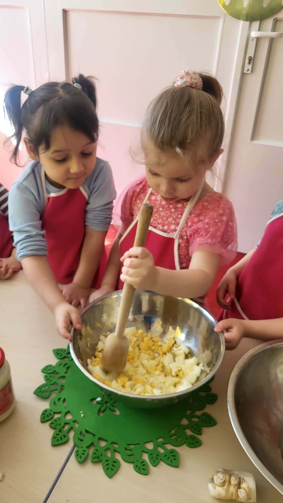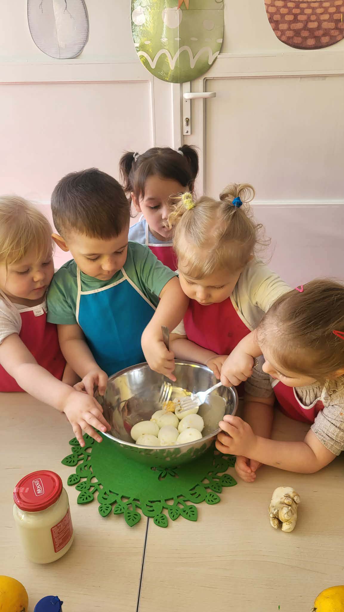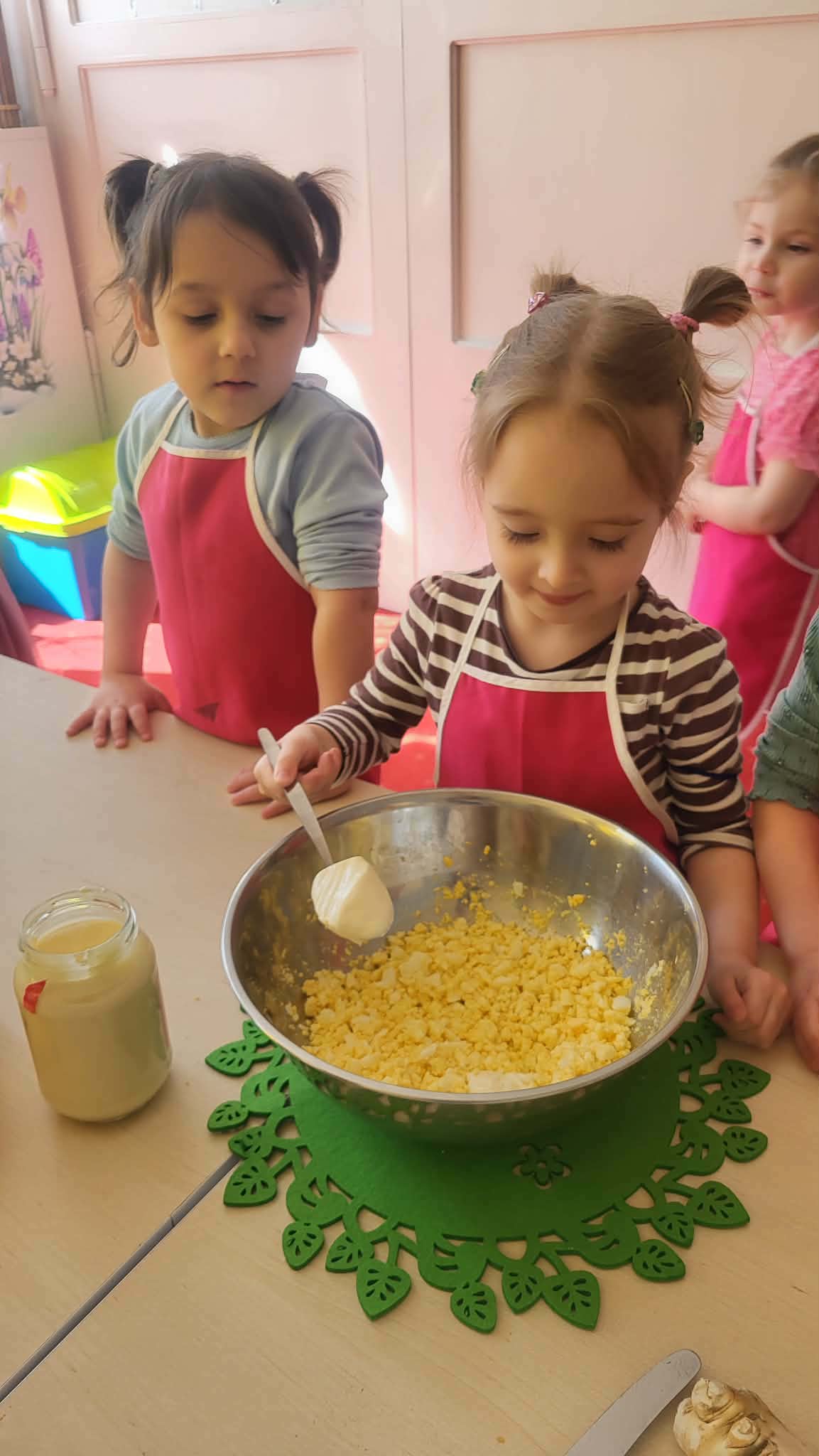 Dziś w przedszkolu wielkie poruszenie. Nasze Maluszki przygotowały kremowy sos chrzanowy z okazji zbliżających się świąt Wielkiej Nocy. Słoiczki dostępne są na naszym Kiermaszu Wielkanocnym.