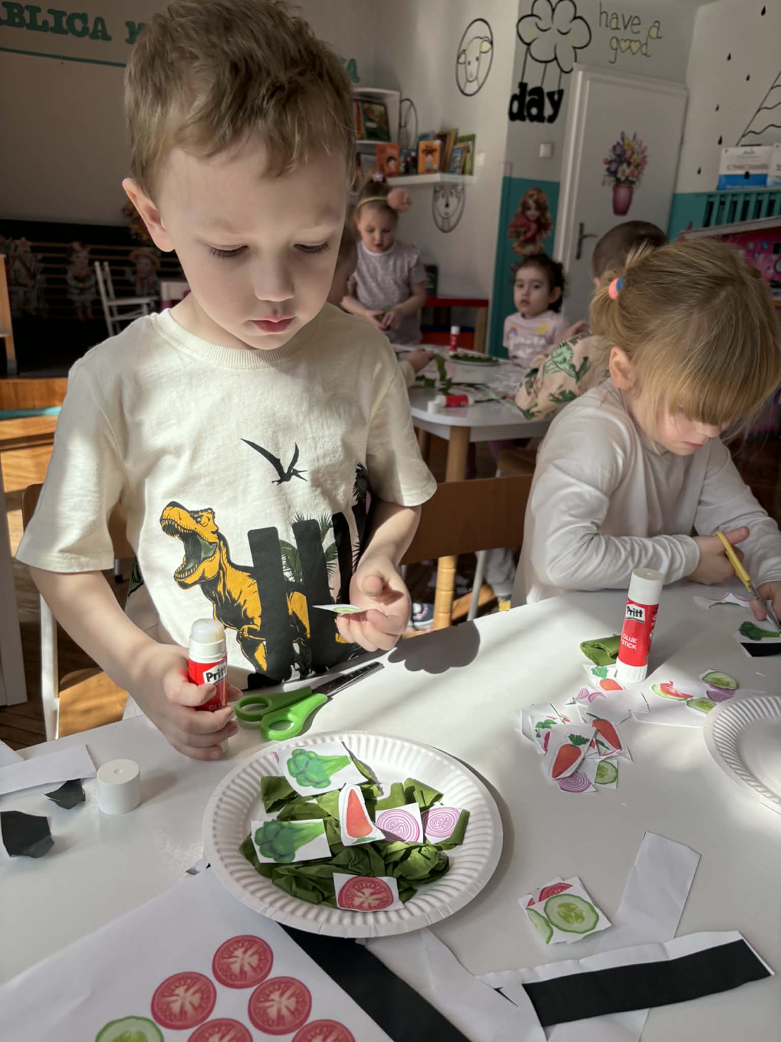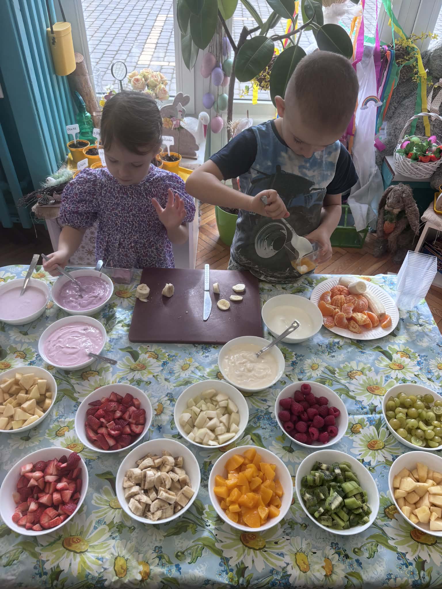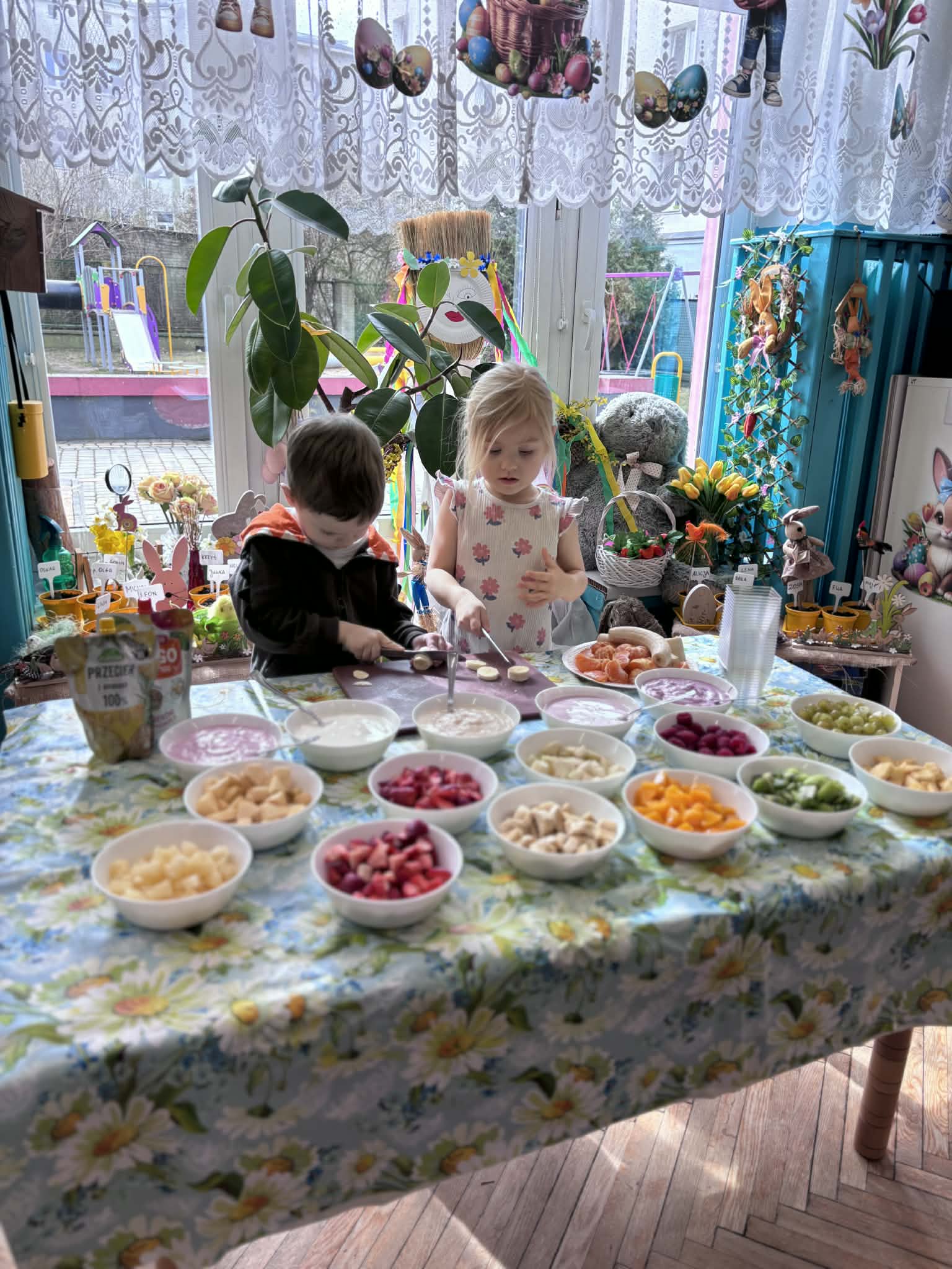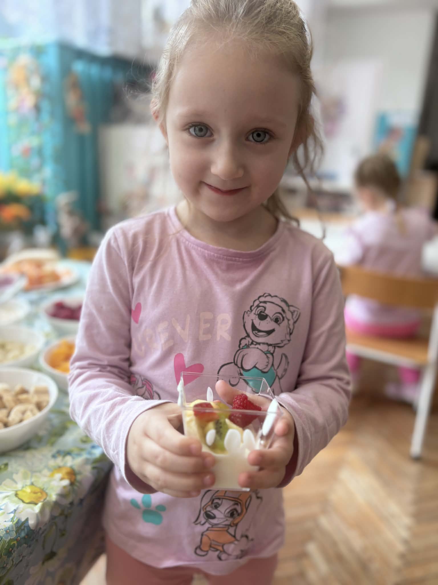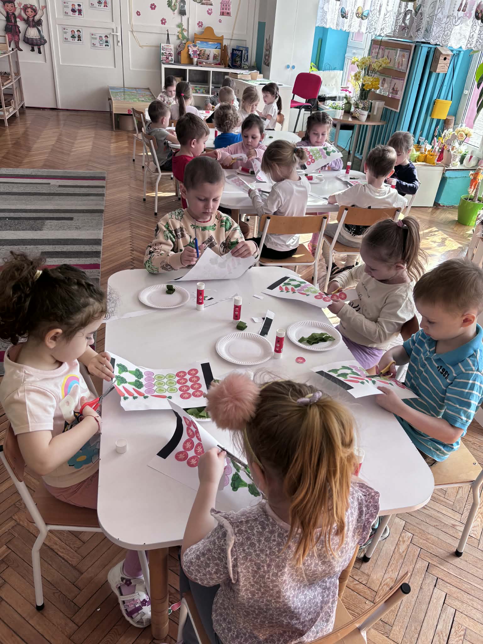 Wiosna to idealny czas, by zadbać o zdrowie… i właśnie tak spędziliśmy nasze zajęcia. Rozmawialiśmy o tym, co jeść, aby mieć siłę do zabawy i nauki, poznaliśmy piramidę żywienia i odkryliśmy, jak ważne są dobre nawyki. Nie zabrakło też ruchu i śmiechu- podczas kalamburów odgadywaliśmy różne dyscypliny sportowe. Było dużo energii i świetnej zabawy. Następnie stworzyliśmy kolorowe prace plastyczne „Sałatka na talerzu”- pełne witamin i dziecięcej wyobraźni. A na koniec… coś pysznego- warsztaty kulinarne i własnoręcznie przygotowane deserki jogurtowe z owocami.