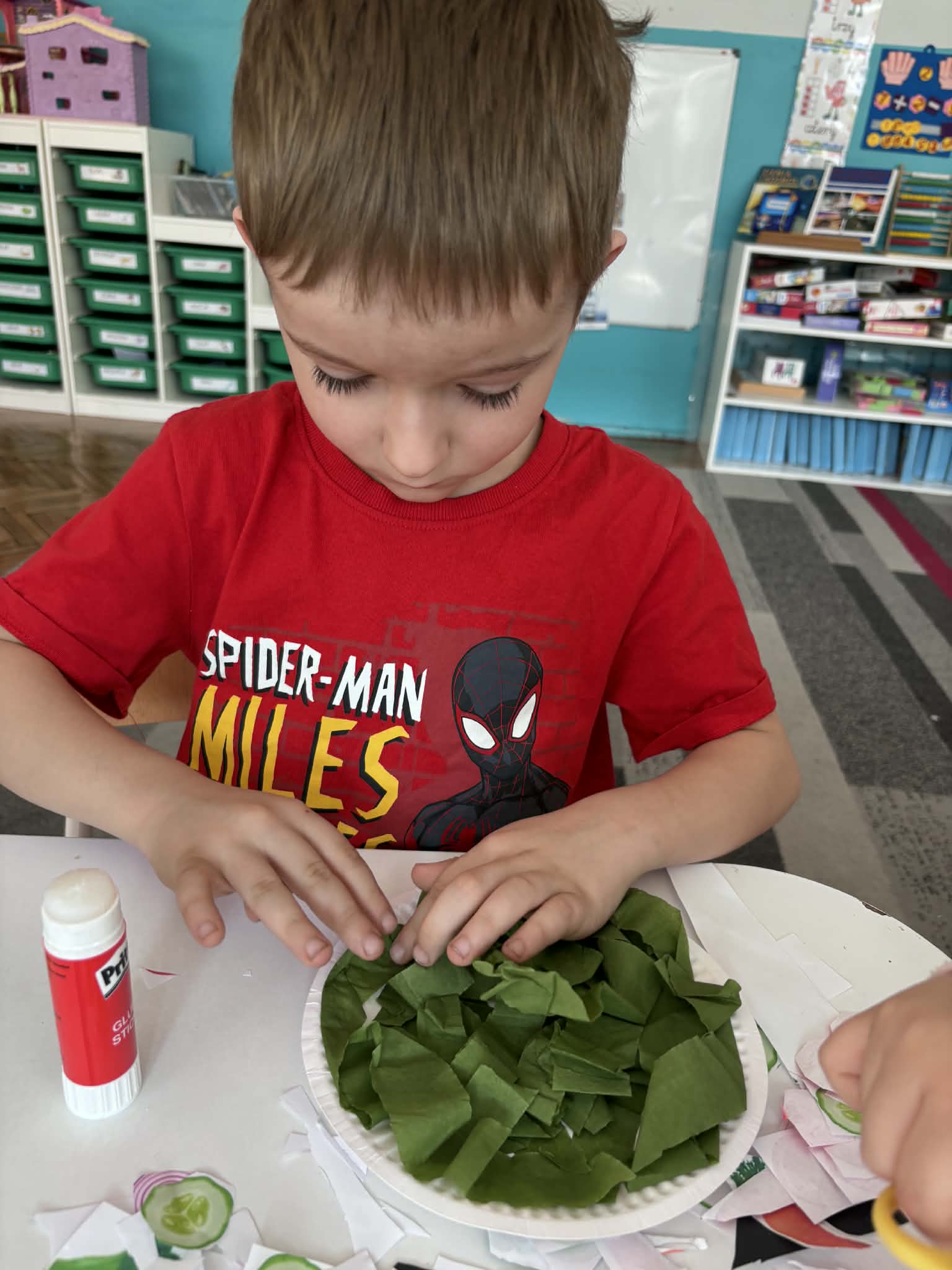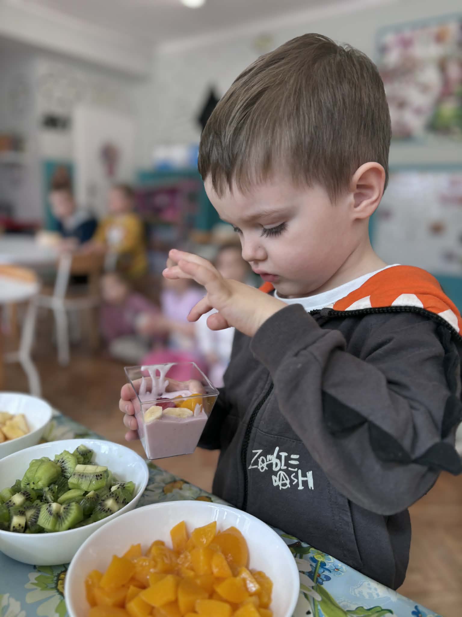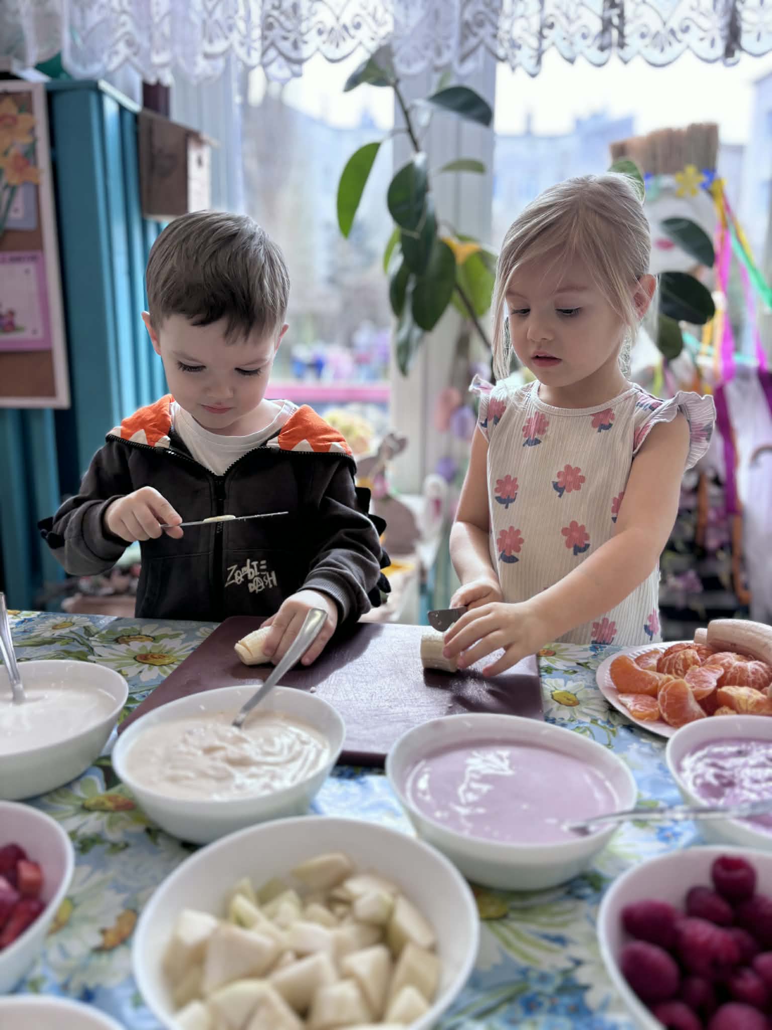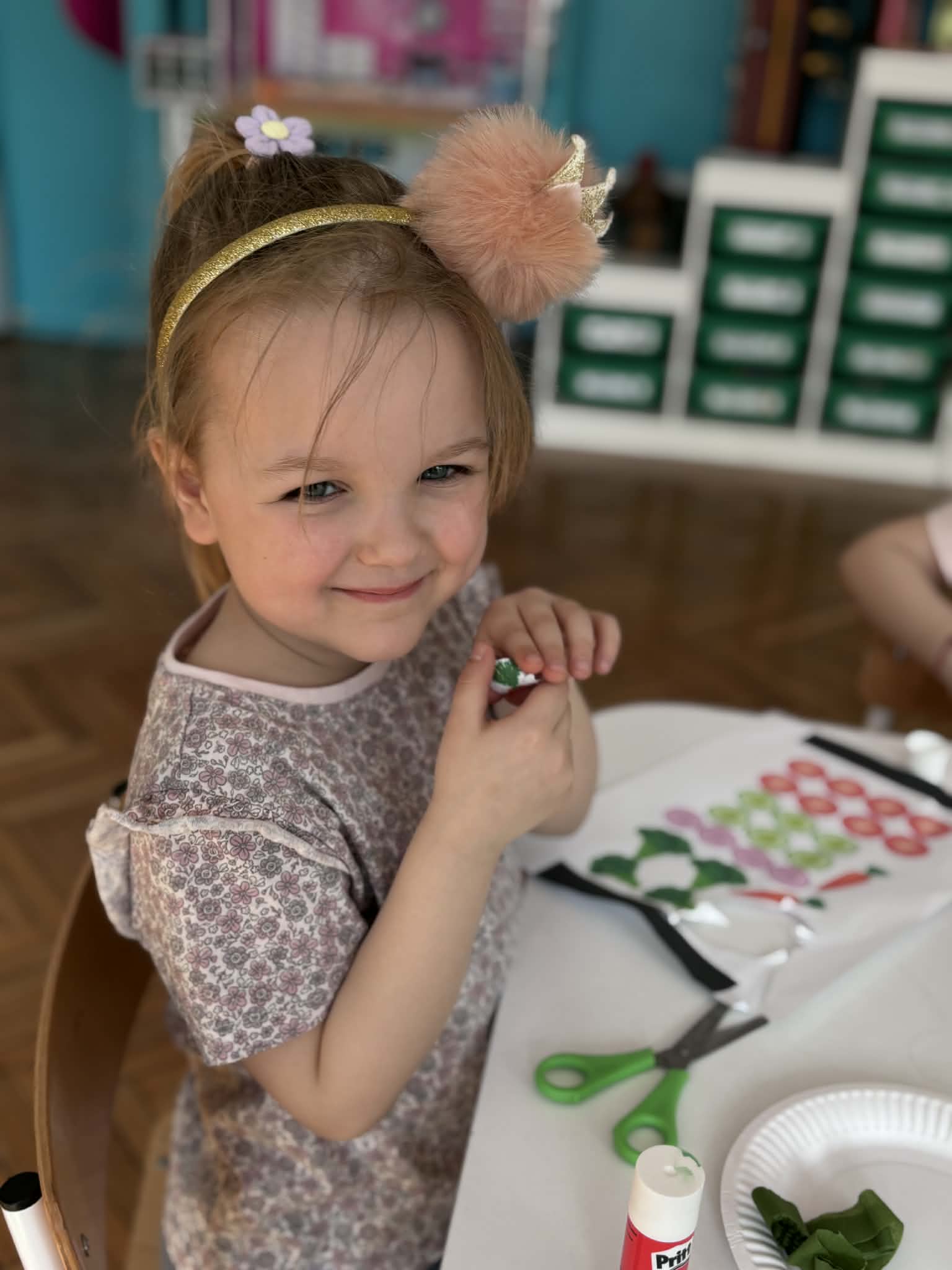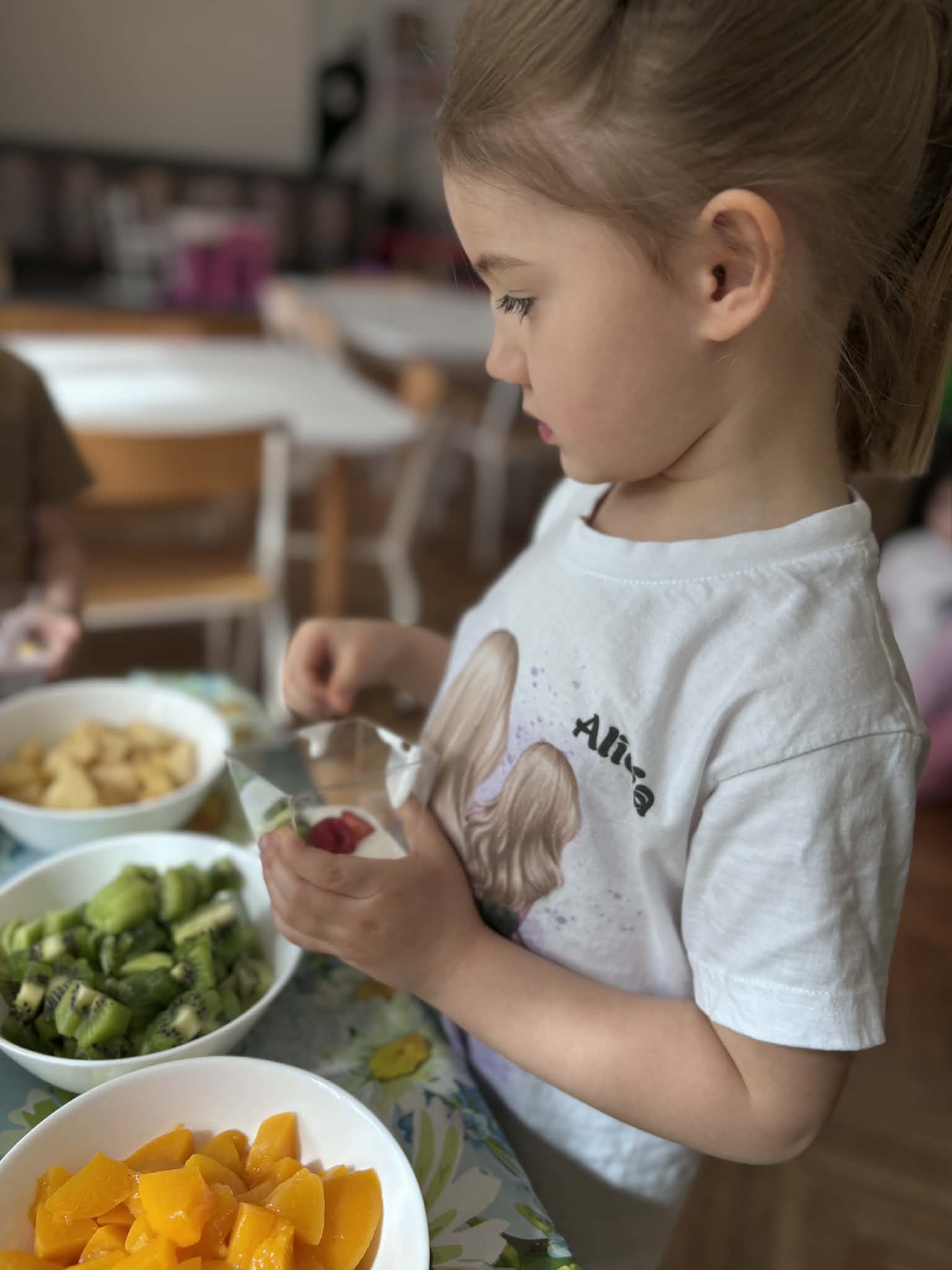 Wiosna to idealny czas, by zadbać o zdrowie… i właśnie tak spędziliśmy nasze zajęcia. Rozmawialiśmy o tym, co jeść, aby mieć siłę do zabawy i nauki, poznaliśmy piramidę żywienia i odkryliśmy, jak ważne są dobre nawyki. Nie zabrakło też ruchu i śmiechu- podczas kalamburów odgadywaliśmy różne dyscypliny sportowe. Było dużo energii i świetnej zabawy. Następnie stworzyliśmy kolorowe prace plastyczne „Sałatka na talerzu”- pełne witamin i dziecięcej wyobraźni. A na koniec… coś pysznego- warsztaty kulinarne i własnoręcznie przygotowane deserki jogurtowe z owocami.