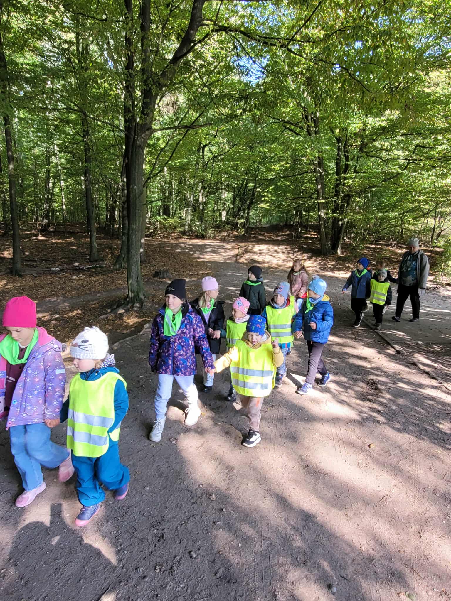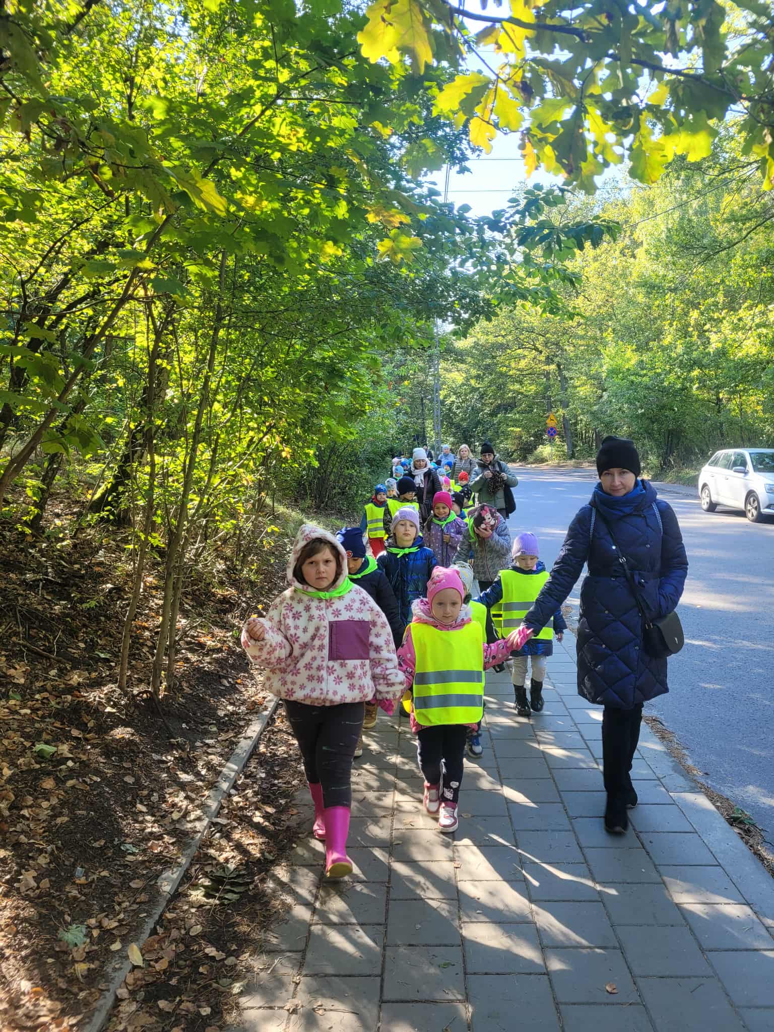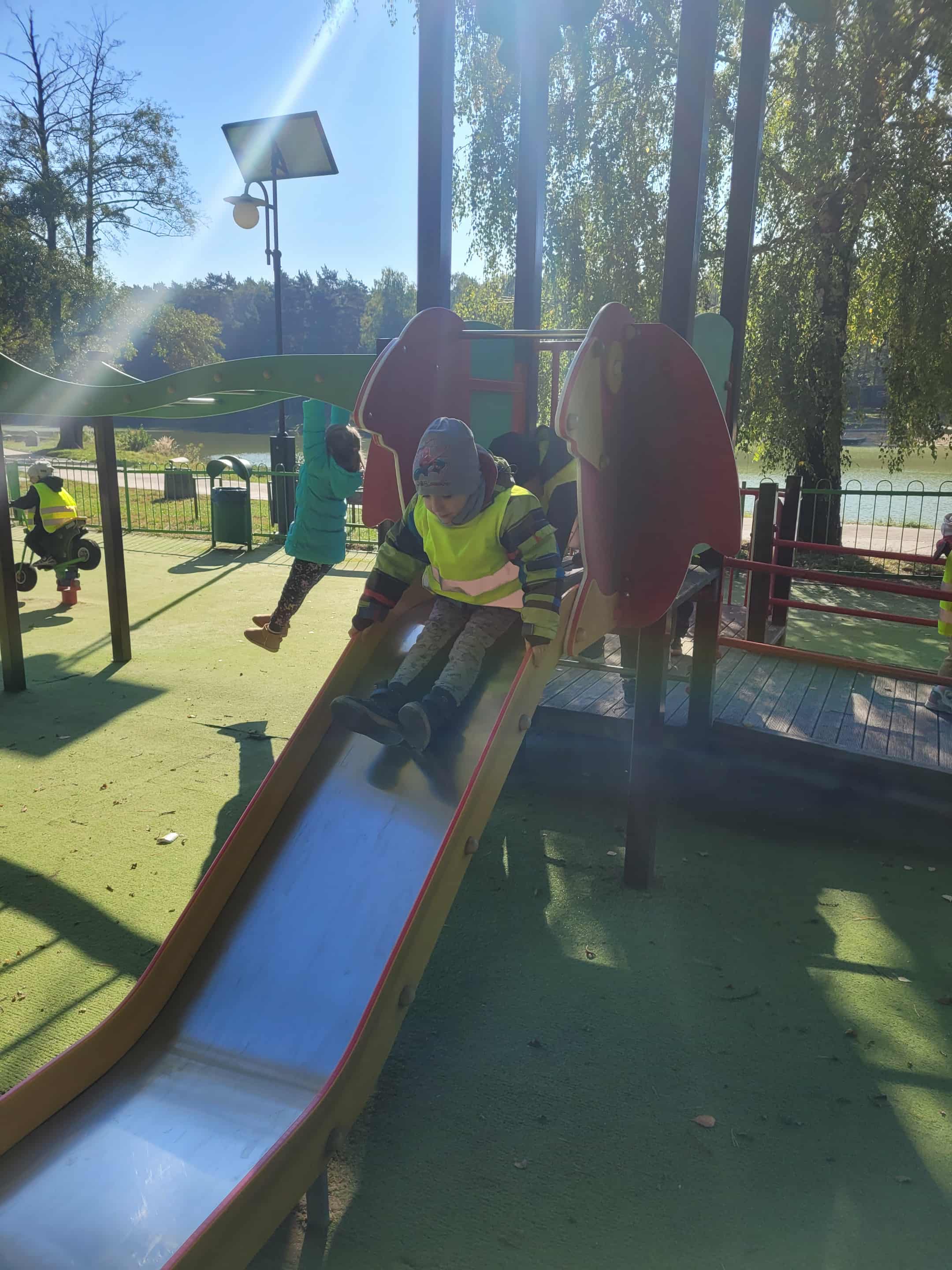 Dzieci z grupy 2, 3 i 4 wyruszyły na wycieczkę do Arturówka. Chodziliśmy pośród drzew pięknymi alejkami przy zbiorniku wodnym, na którym pływały kaczki. Piękna słoneczna pogoda sprzyjała spacerom. Udało nam się również pobawić na placu zabaw. Wróciliśmy do przedszkola w wesołych nastrojach.