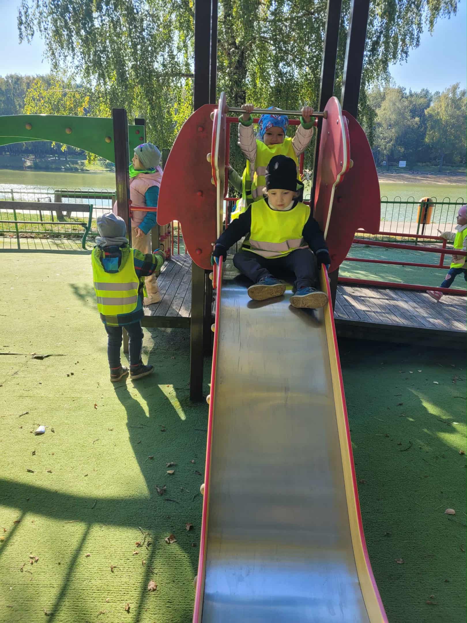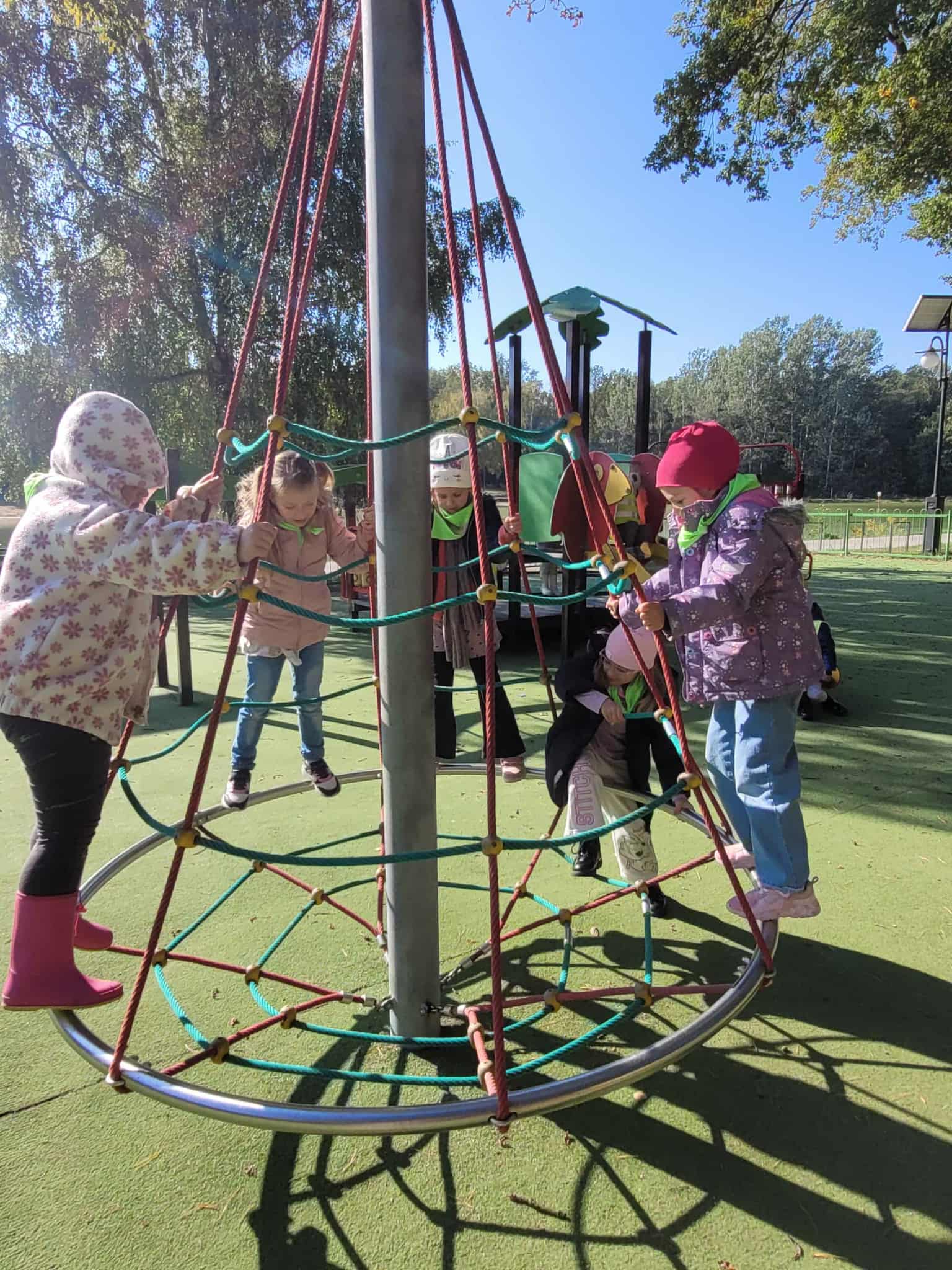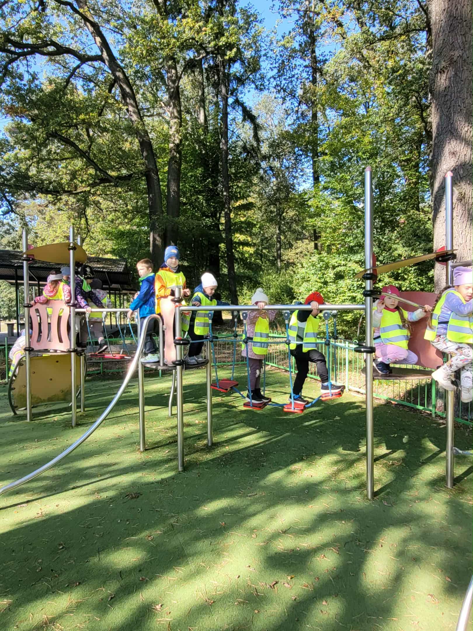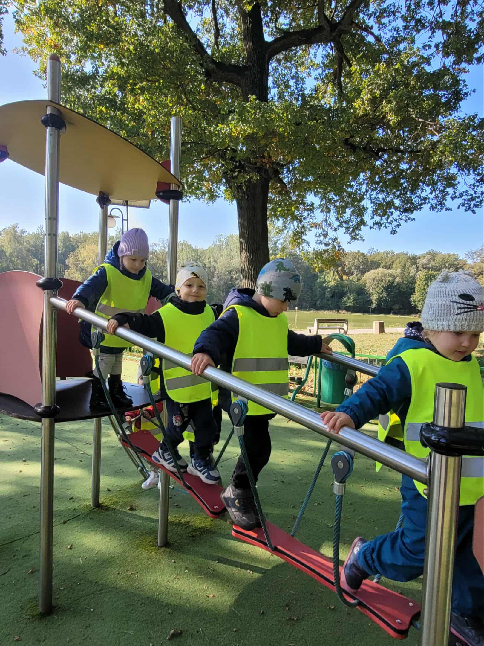 Dzieci z grupy 2, 3 i 4 wyruszyły na wycieczkę do Arturówka. Chodziliśmy pośród drzew pięknymi alejkami przy zbiorniku wodnym, na którym pływały kaczki. Piękna słoneczna pogoda sprzyjała spacerom. Udało nam się również pobawić na placu zabaw. Wróciliśmy do przedszkola w wesołych nastrojach.