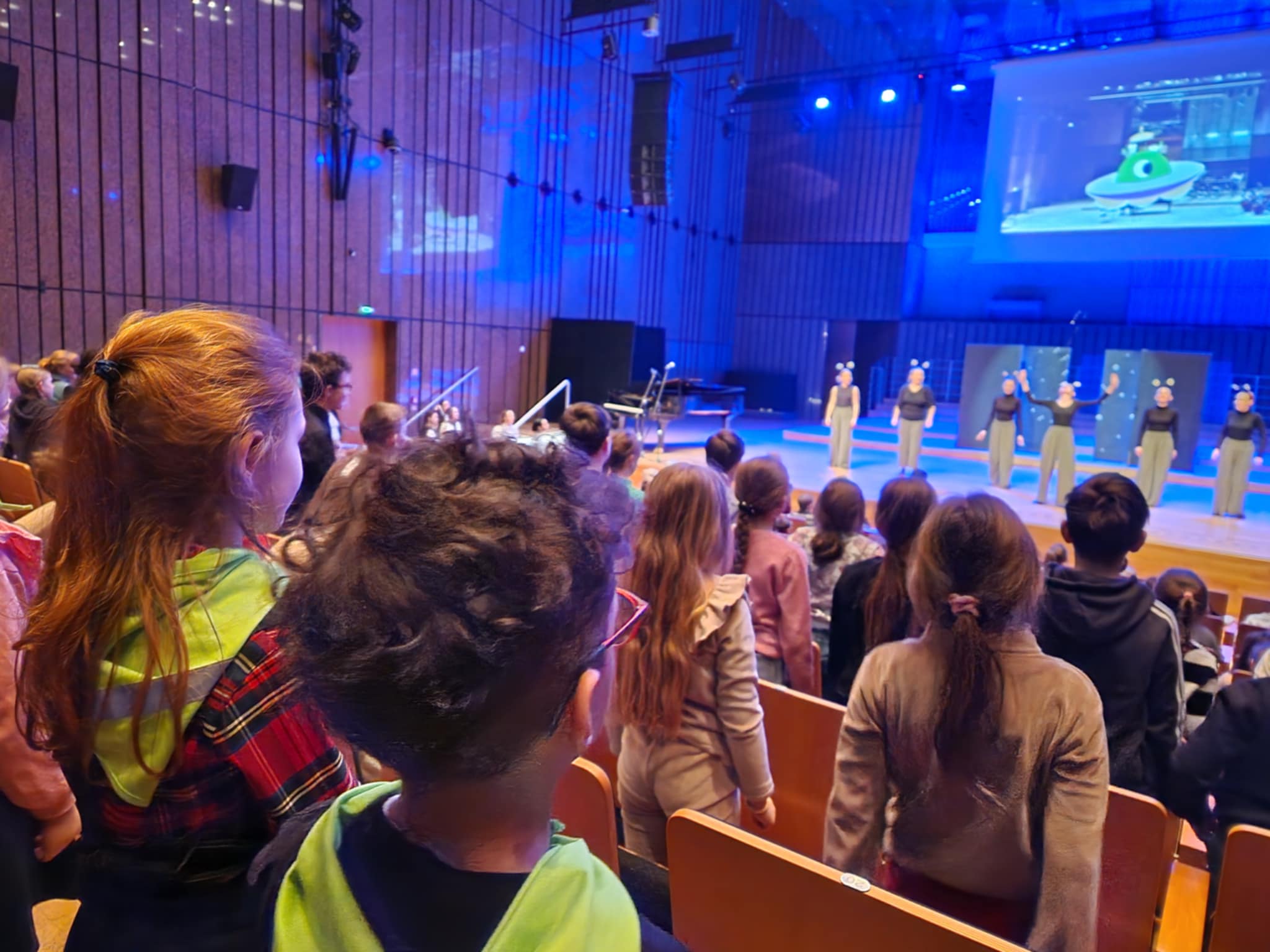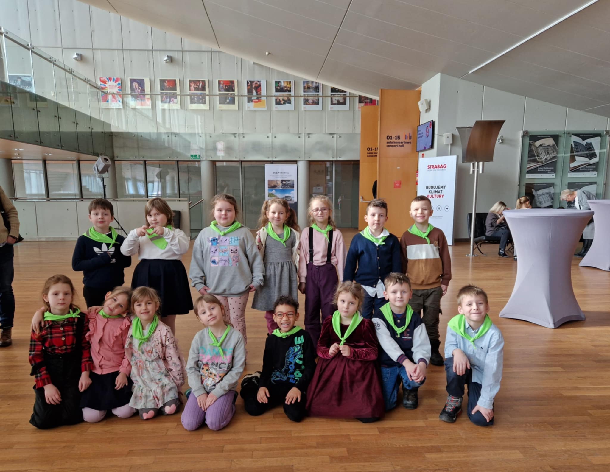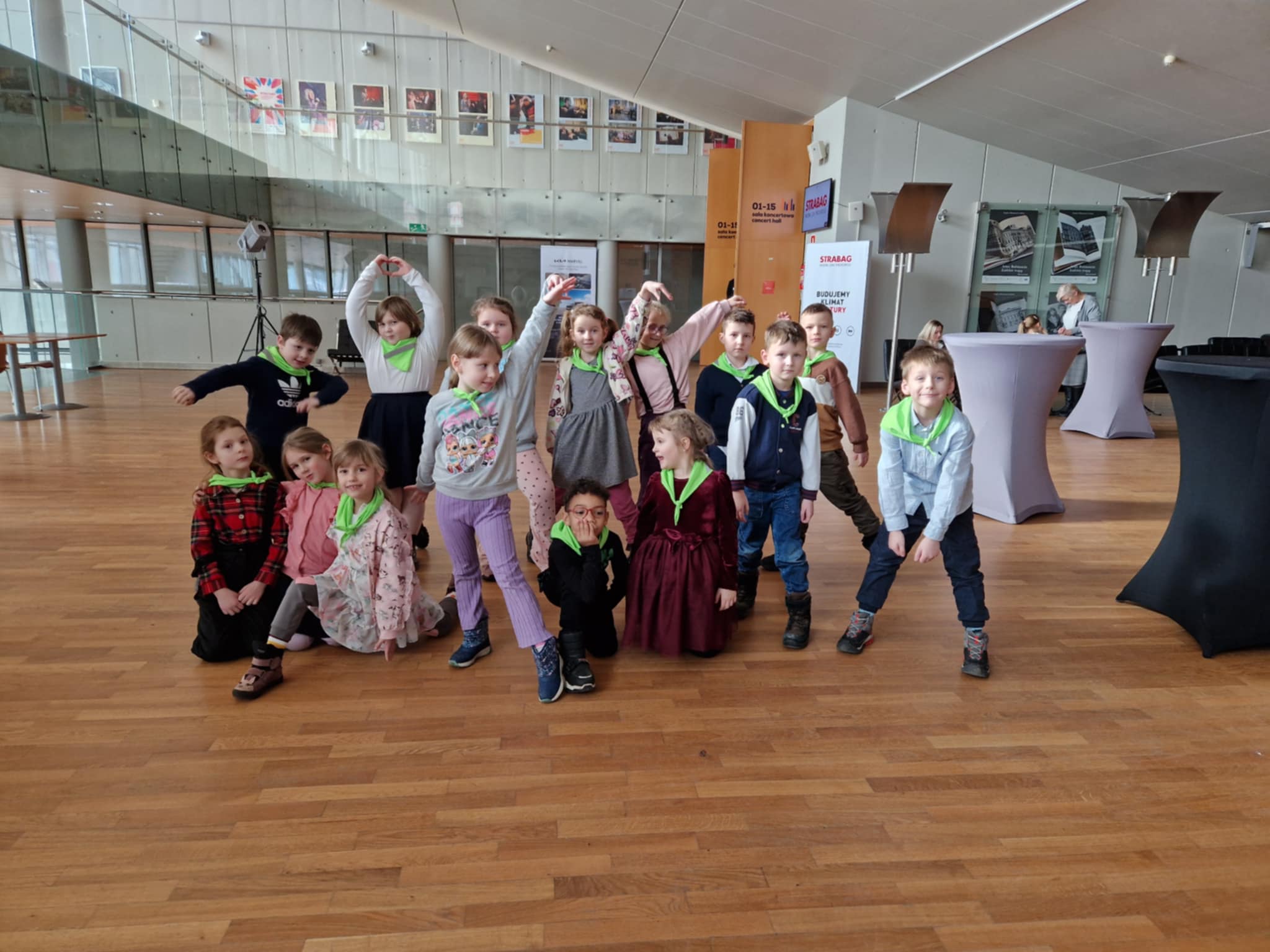 Starszaki uczestniczyły dzisiaj w wyjątkowym koncercie edukacyjnym w Filharmonii Łódzkiej, gdzie większość z nich była pierwszy raz w życiu. Koncert pt. "Z planety Swiatłodźwieku na planetę Ziemię" przygotowany przez studentów Rytmiki z Akademii Muzycznej w Łodzi.Uczestnicy koncertu aktywnie słuchali muzyki, zachęceni do wspólnego działania. Dzieci poznały pracę kompozytora, zostali zaproszeni do wspólnego tańca, obejrzały miniatury muzyczno-ruchowe, a także nauczyły się piosenki. Publiczność była aktywizowana i włączana do działań, co umożliwiło pełniejsze doświadczenie przekazu muzycznego.