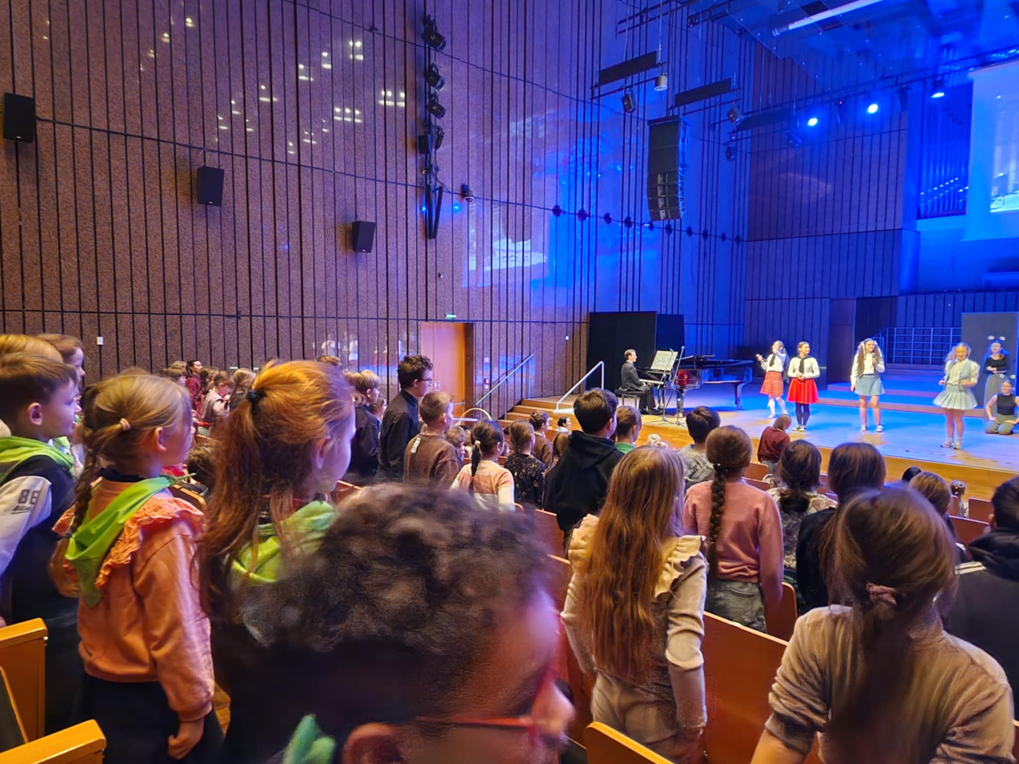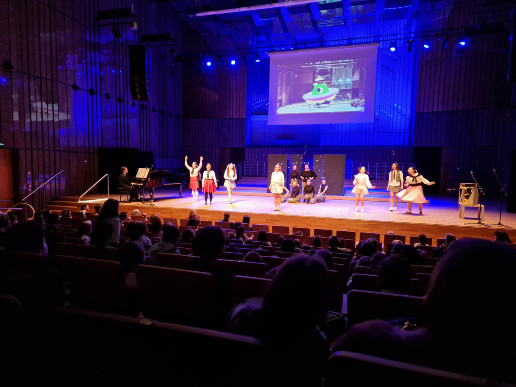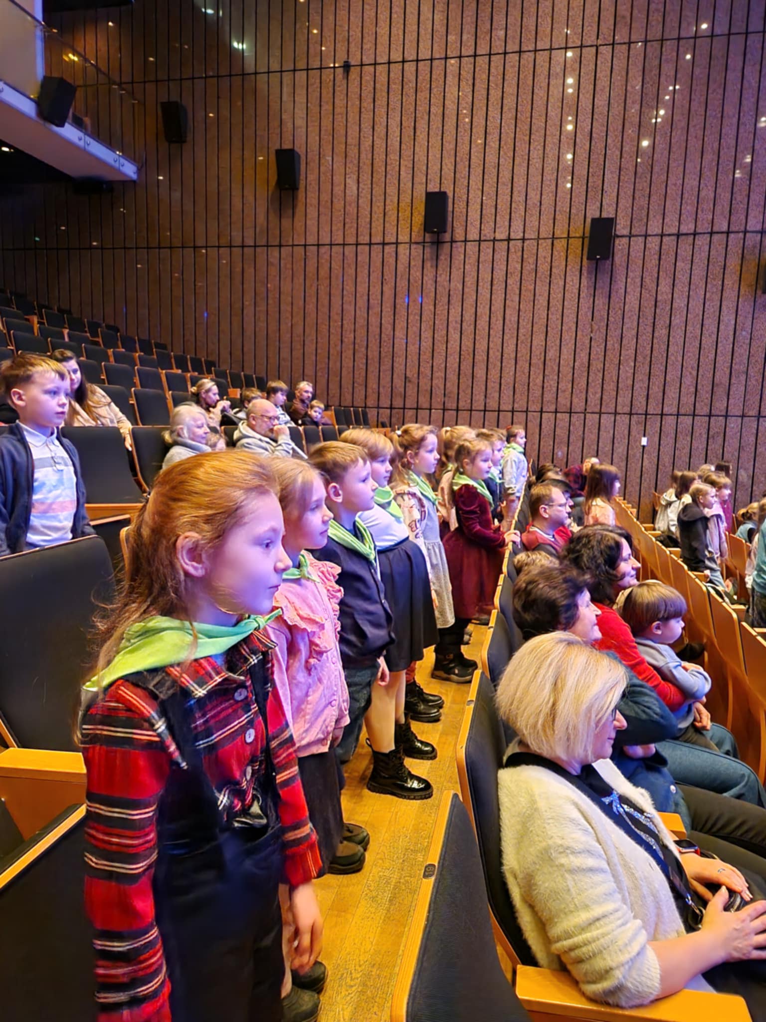 Starszaki uczestniczyły dzisiaj w wyjątkowym koncercie edukacyjnym w Filharmonii Łódzkiej, gdzie większość z nich była pierwszy raz w życiu. Koncert pt. "Z planety Swiatłodźwieku na planetę Ziemię" przygotowany przez studentów Rytmiki z Akademii Muzycznej w Łodzi.Uczestnicy koncertu aktywnie słuchali muzyki, zachęceni do wspólnego działania. Dzieci poznały pracę kompozytora, zostali zaproszeni do wspólnego tańca, obejrzały miniatury muzyczno-ruchowe, a także nauczyły się piosenki. Publiczność była aktywizowana i włączana do działań, co umożliwiło pełniejsze doświadczenie przekazu muzycznego.