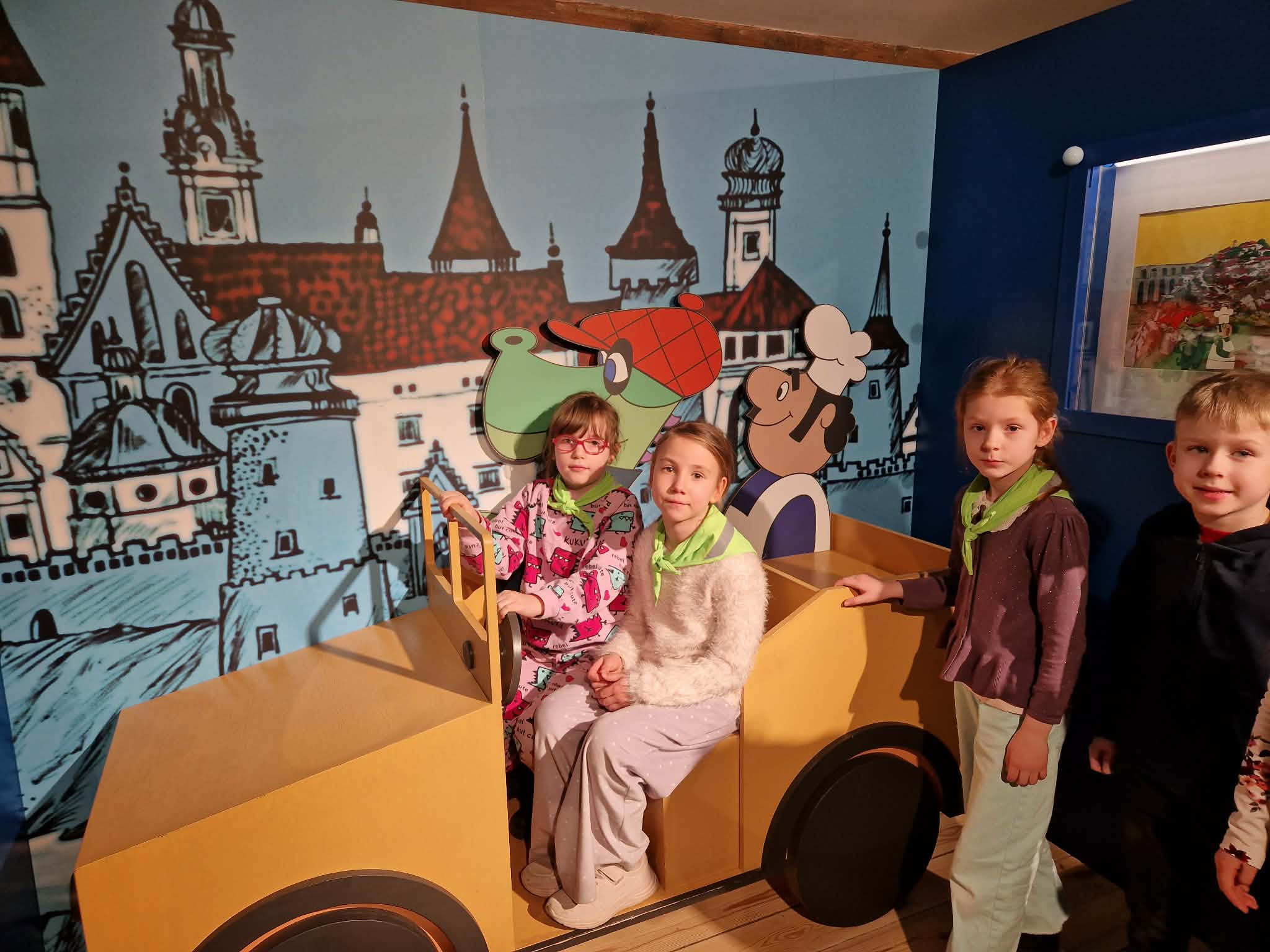 Starszaki odwiedziły Muzeum Kinematografii w Łodzi, gdzie wzięły udział w warsztatach i zwiedzały przepiękna, interaktywną wystawę "Pałac pełen bajek". Dzieci poznały kulisy powstawania bajek poprzez puzzle, zagadki, rymowane quizy oraz prezentację oryginalnych lalek łódzkiego studia Se-ma-for m.in. Miś Uszatek, Muminki, Pingwin Pik-Pok.