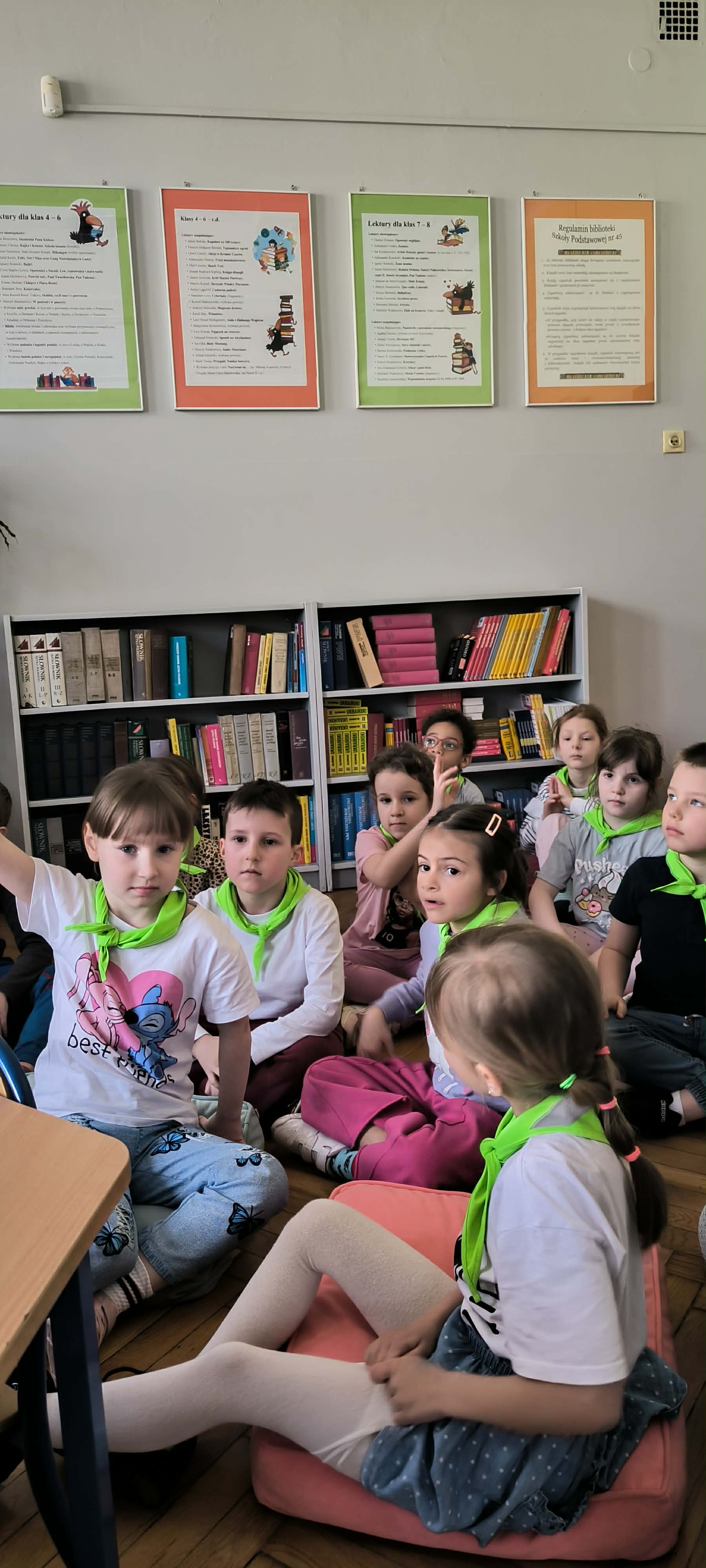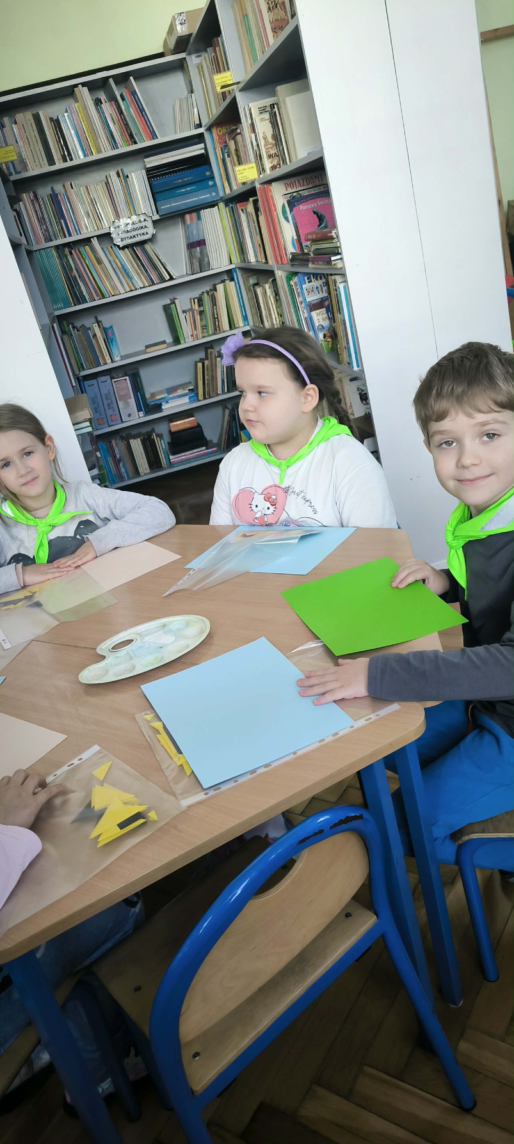W poniedziałek starszaki miały przyjemność gościć w Szkole Podstawowej nr 45, która jest naszą szkołą rejonową. We wrześniu niektóre dzieci staną się uczniami właśnie tej szkoły. Grupa miała okazję spotkać się ze swoimi kolegami,którzy dwa lata temu opuścili mury naszego przedszkola. Drugoklasiści zaprezentowali przedstawienie "Królewna Śnieżka i siedmiu krasnoludków". Następnie starszaki zostały zaproszone do szkolnej biblioteki na warsztaty plastyczne.