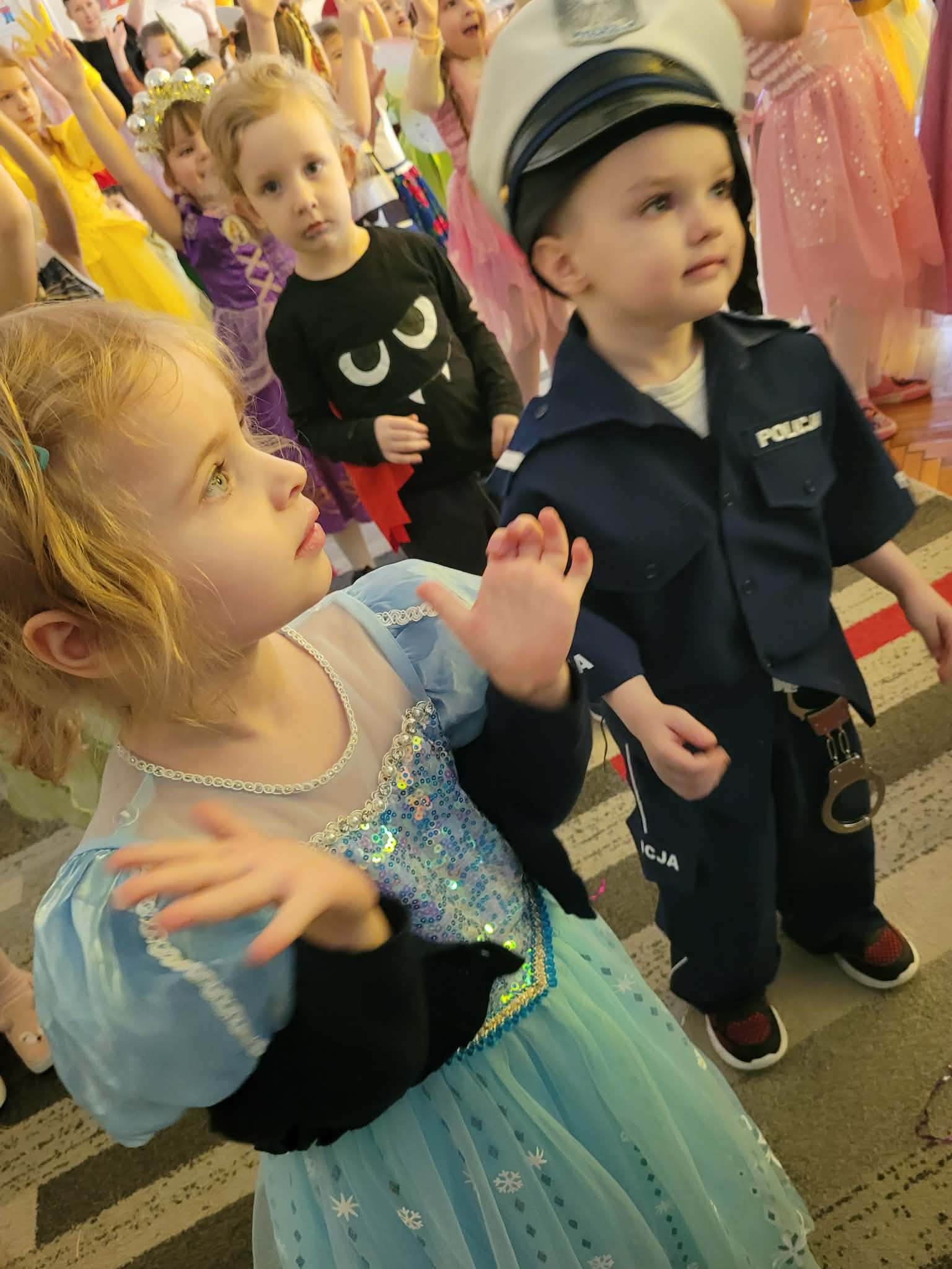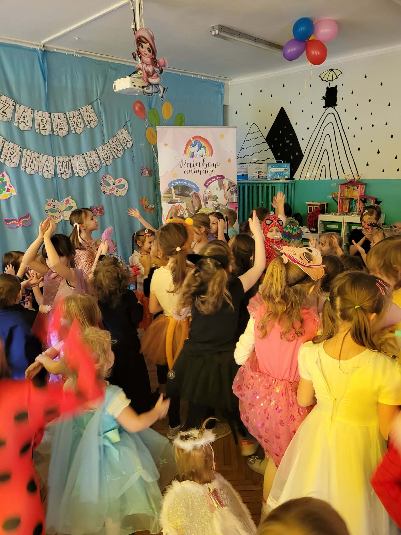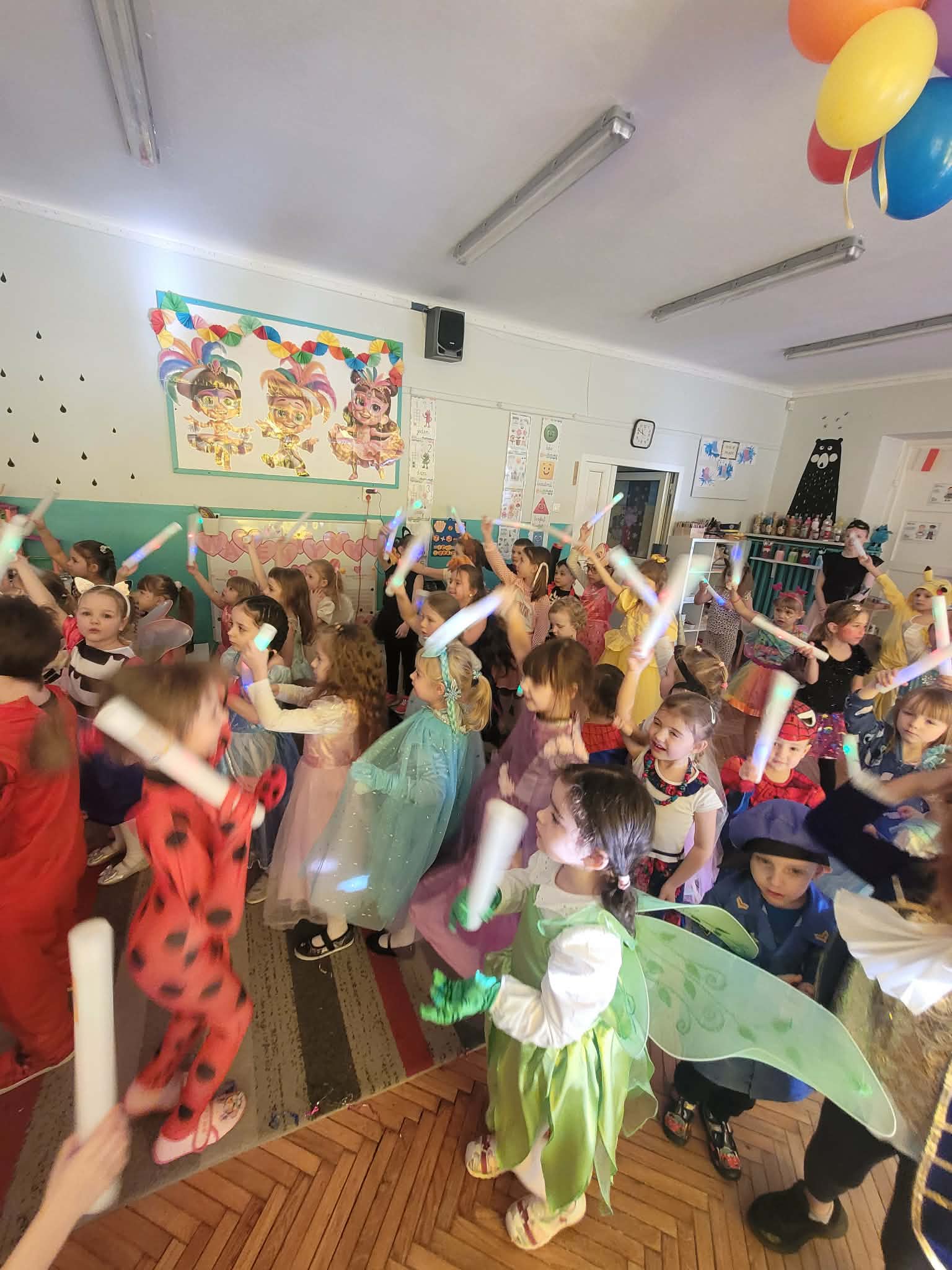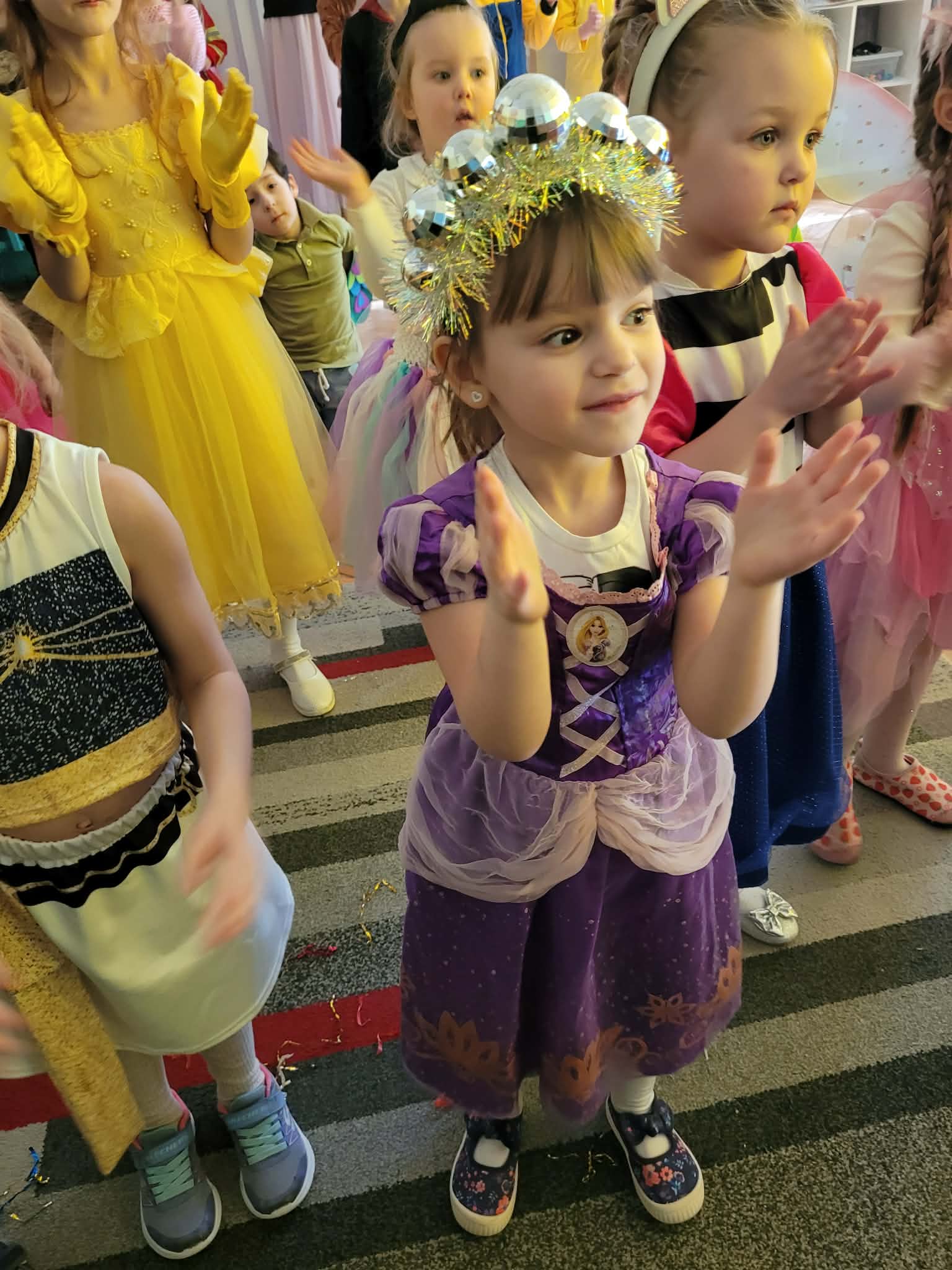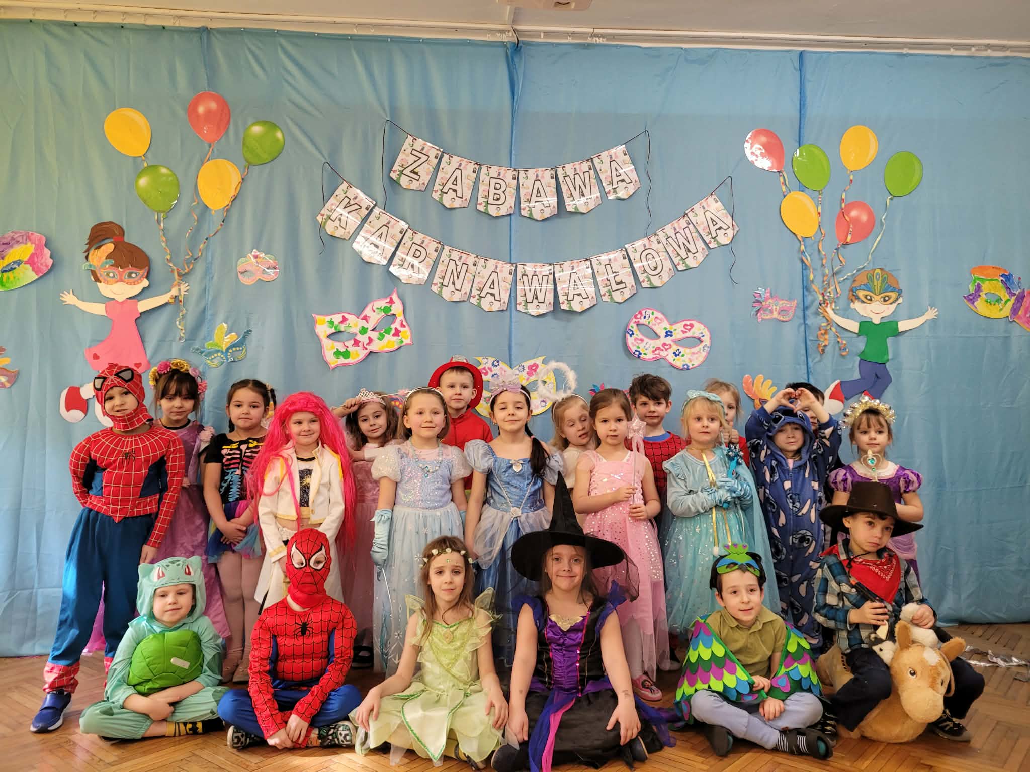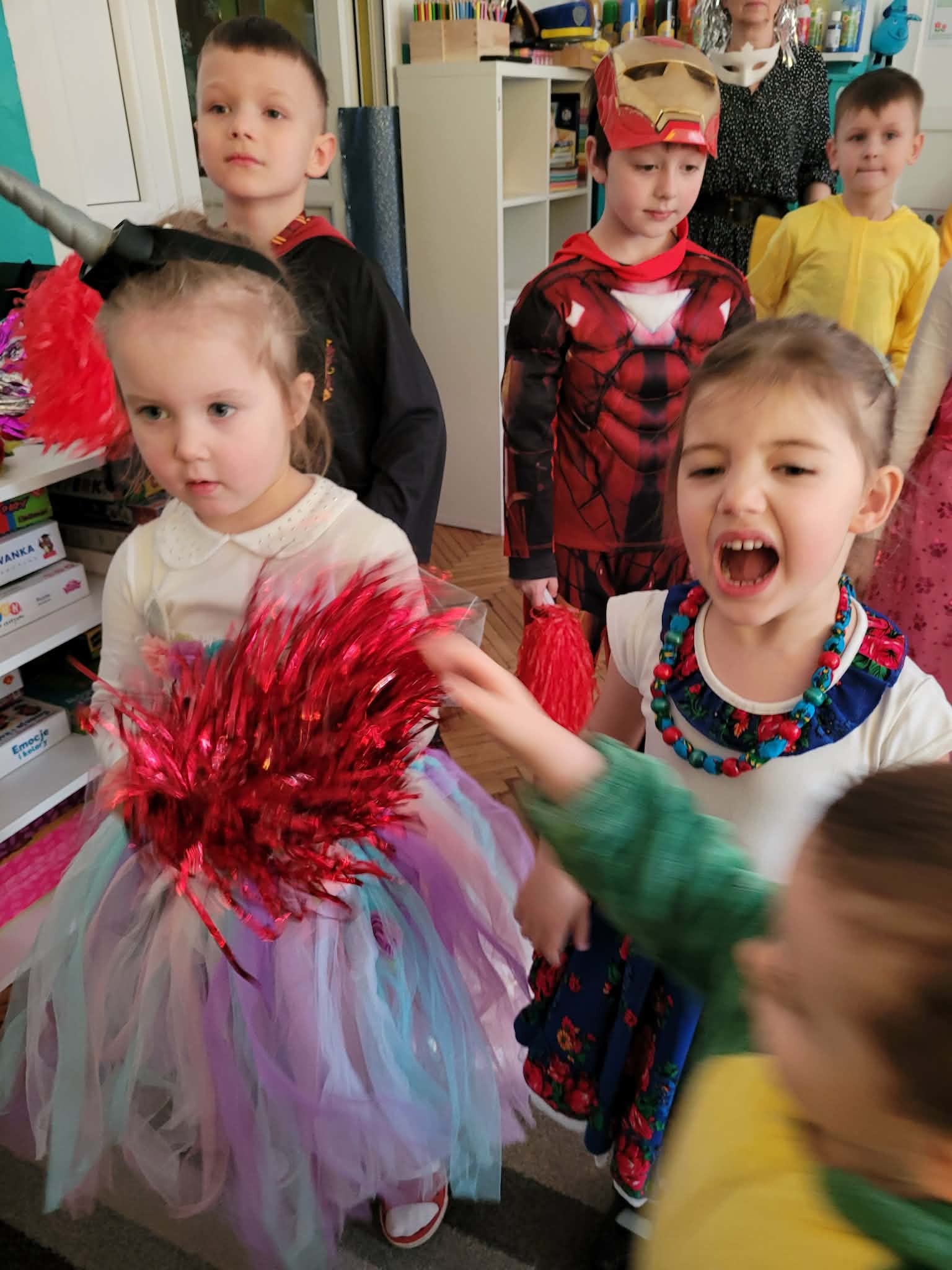 Tak też było u nas. W dniu 16.02.2026r. w naszym przedszkolu odbył się bal karnawałowy. Tego dnia już od rana w przedszkolu pojawiały się kolorowe postacie. Dzieci przebrane były za bohaterów znanych bajek. Rozpoznać dzieci było bardzo trudno. Dzieci świetnie się bawiły podczas balu prowadzonego przez animatorki z firmy Rainbow (sponsorowany z Rady rodziców). Na sali podczas pląsów robiło się kolorowo, wszyscy bawili się wesoło, uśmiech nie znikał z twarzy mimo chwilowego zmęczenia. Bal umożliwił dzieciom i wychowawcom spędzenie czasu w miłej atmosferze. Wspólna zabawa przyniosła wiele radości naszym wychowankom, a to było głównym celem tego balu.