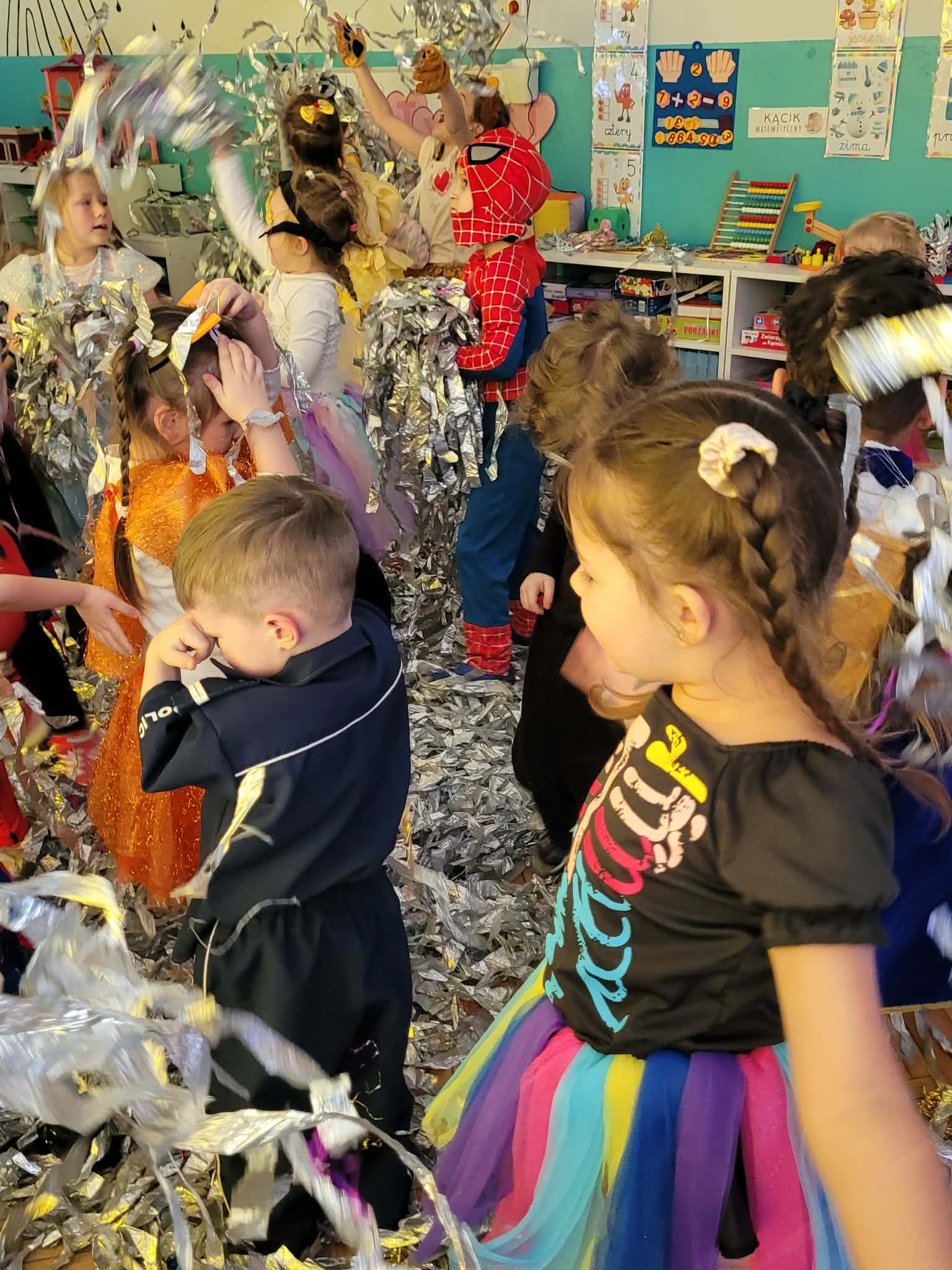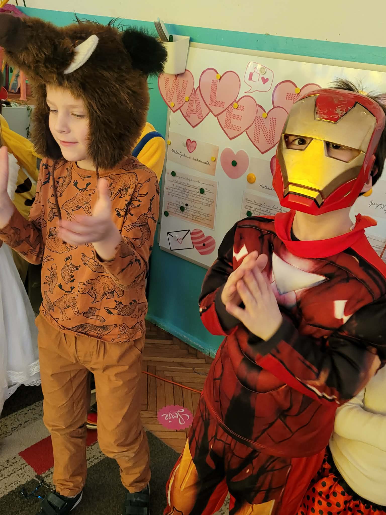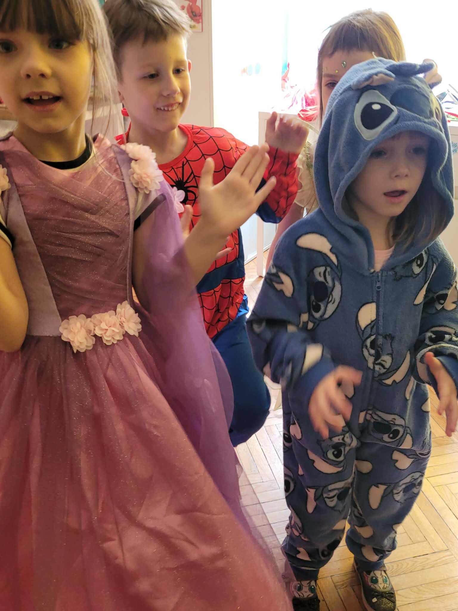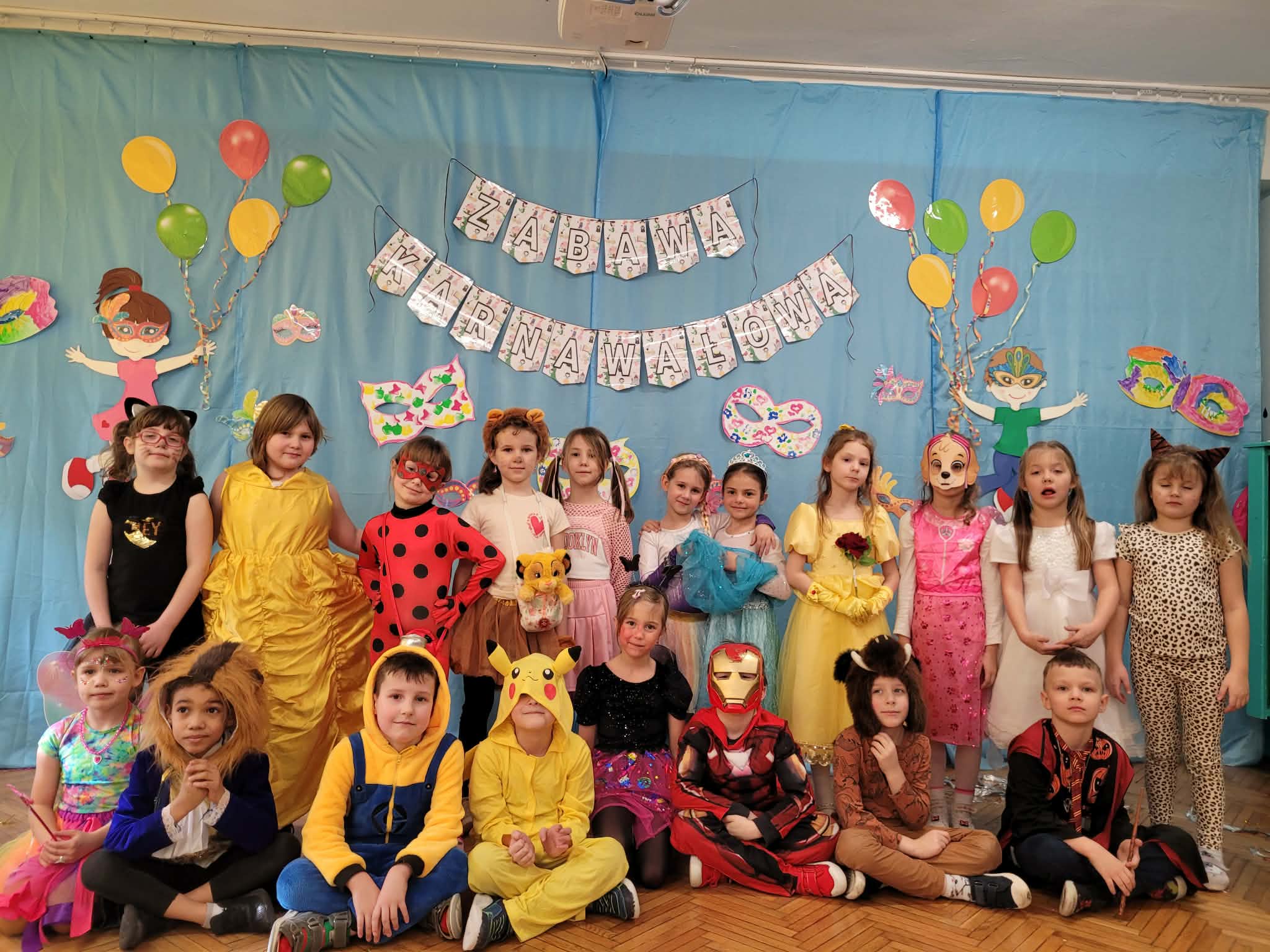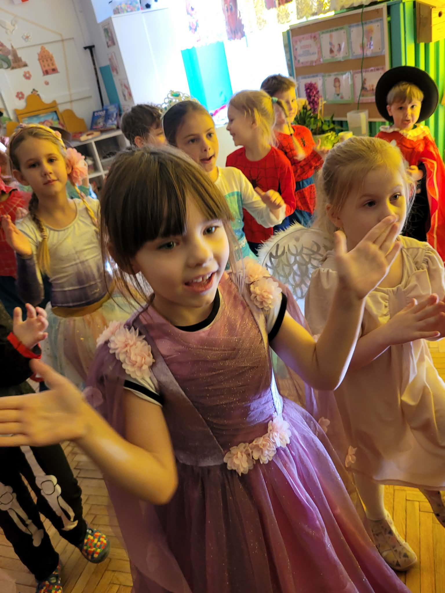 Tak też było u nas. W dniu 16.02.2026r. w naszym przedszkolu odbył się bal karnawałowy. Tego dnia już od rana w przedszkolu pojawiały się kolorowe postacie. Dzieci przebrane były za bohaterów znanych bajek. Rozpoznać dzieci było bardzo trudno. Dzieci świetnie się bawiły podczas balu prowadzonego przez animatorki z firmy Rainbow (sponsorowany z Rady rodziców). Na sali podczas pląsów robiło się kolorowo, wszyscy bawili się wesoło, uśmiech nie znikał z twarzy mimo chwilowego zmęczenia. Bal umożliwił dzieciom i wychowawcom spędzenie czasu w miłej atmosferze. Wspólna zabawa przyniosła wiele radości naszym wychowankom, a to było głównym celem tego balu.