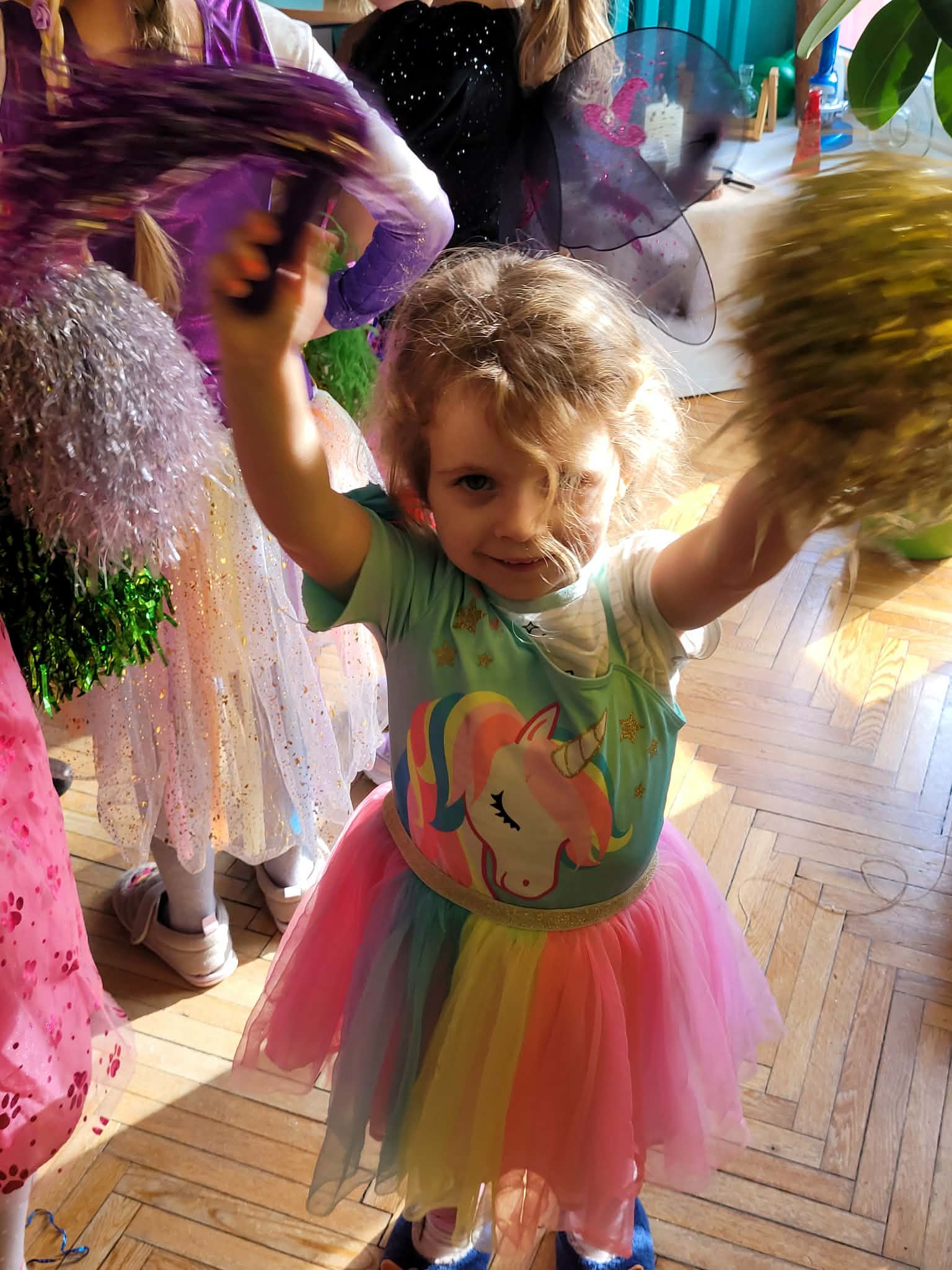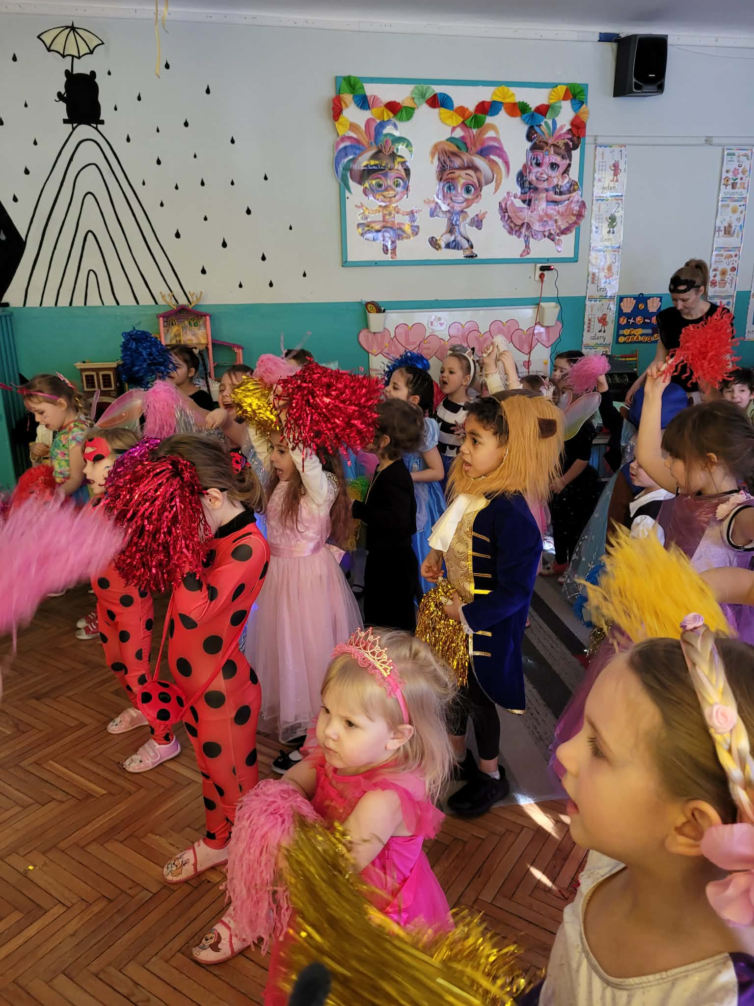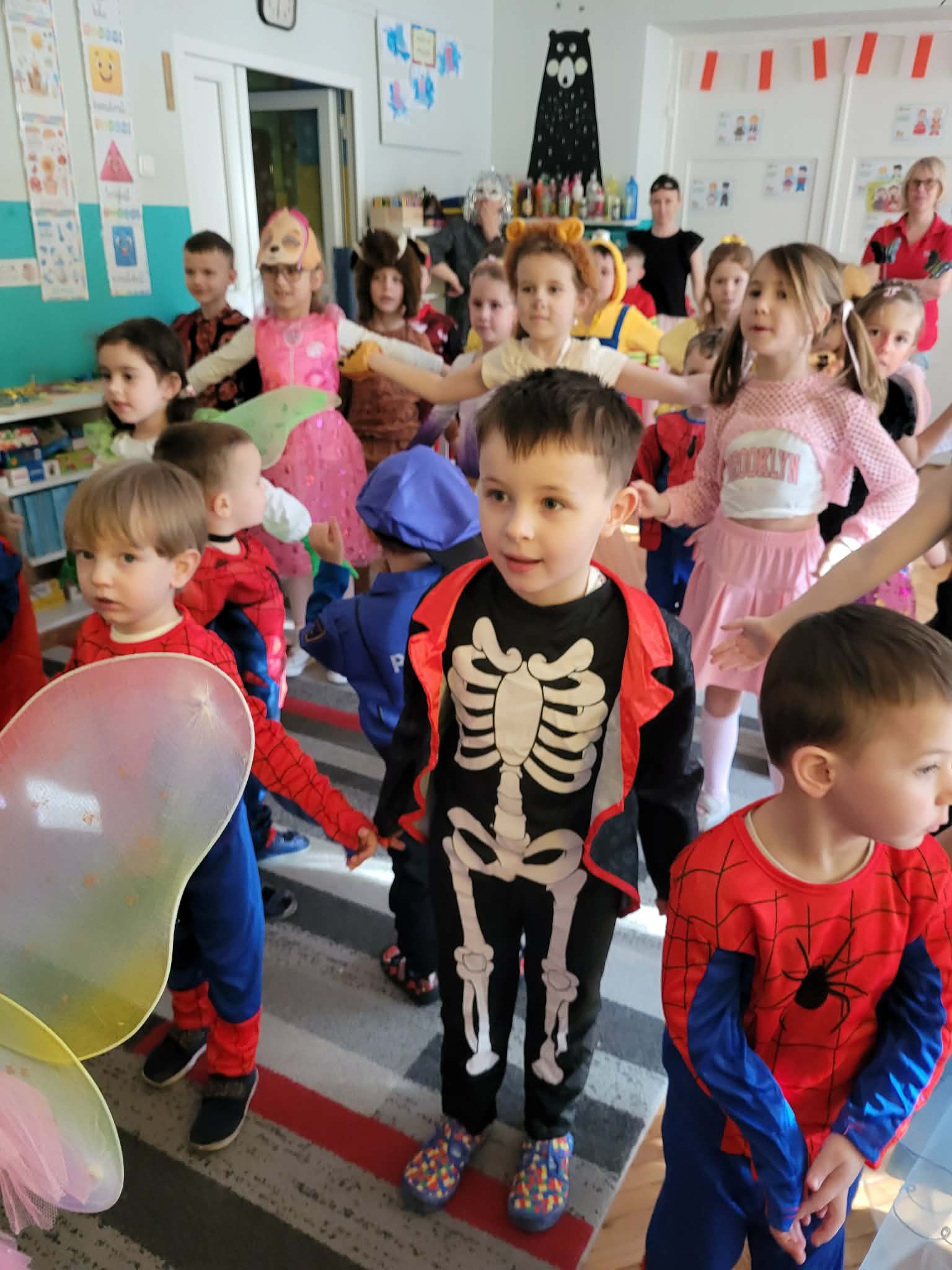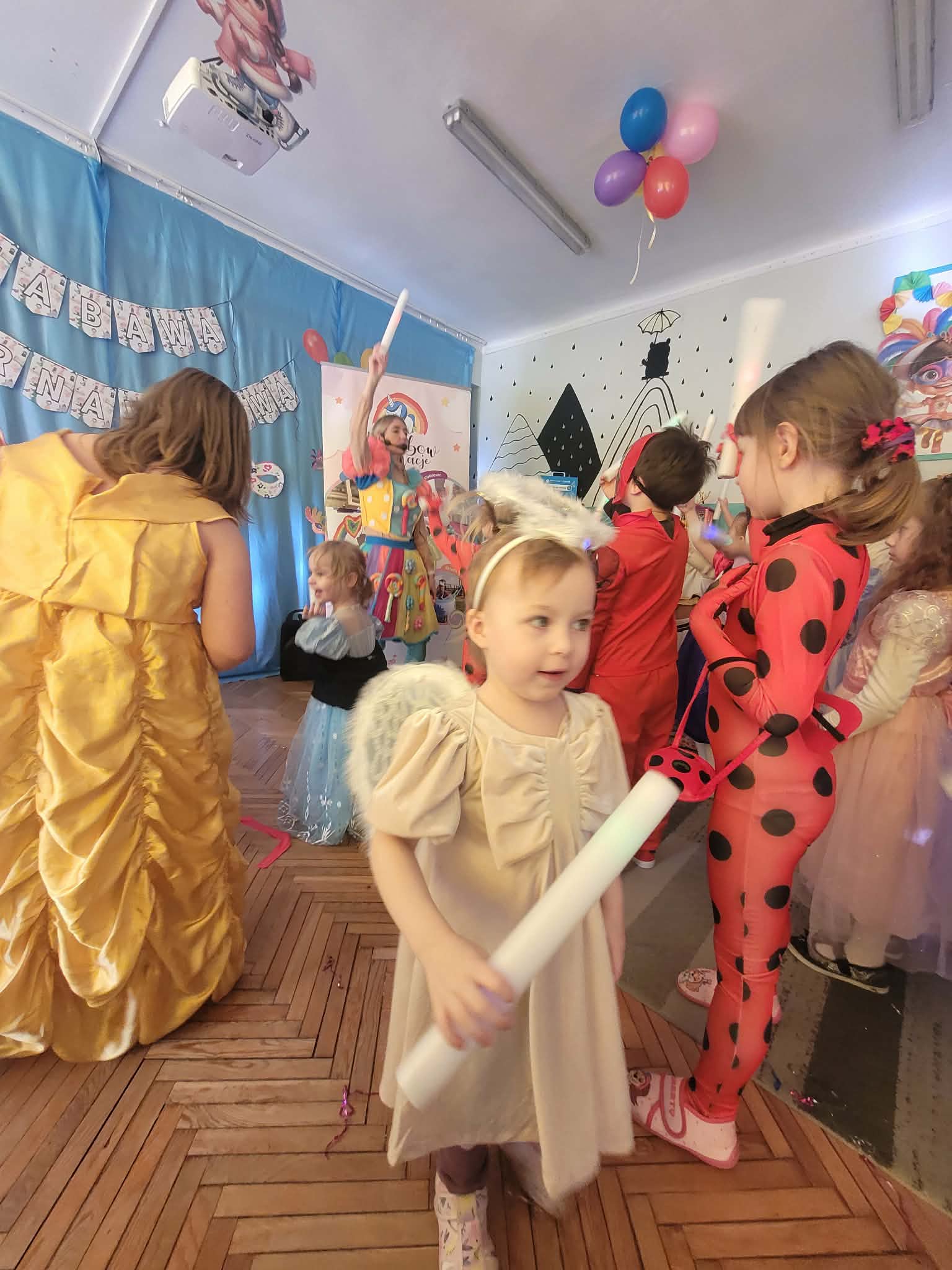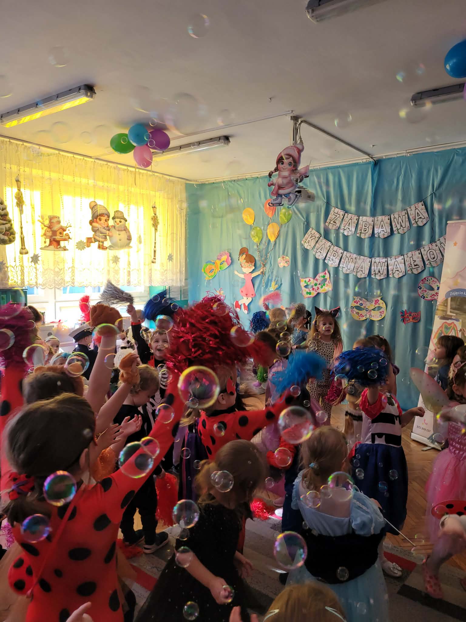 Tak też było u nas. W dniu 16.02.2026r. w naszym przedszkolu odbył się bal karnawałowy. Tego dnia już od rana w przedszkolu pojawiały się kolorowe postacie. Dzieci przebrane były za bohaterów znanych bajek. Rozpoznać dzieci było bardzo trudno. Dzieci świetnie się bawiły podczas balu prowadzonego przez animatorki z firmy Rainbow (sponsorowany z Rady rodziców). Na sali podczas pląsów robiło się kolorowo, wszyscy bawili się wesoło, uśmiech nie znikał z twarzy mimo chwilowego zmęczenia. Bal umożliwił dzieciom i wychowawcom spędzenie czasu w miłej atmosferze. Wspólna zabawa przyniosła wiele radości naszym wychowankom, a to było głównym celem tego balu.