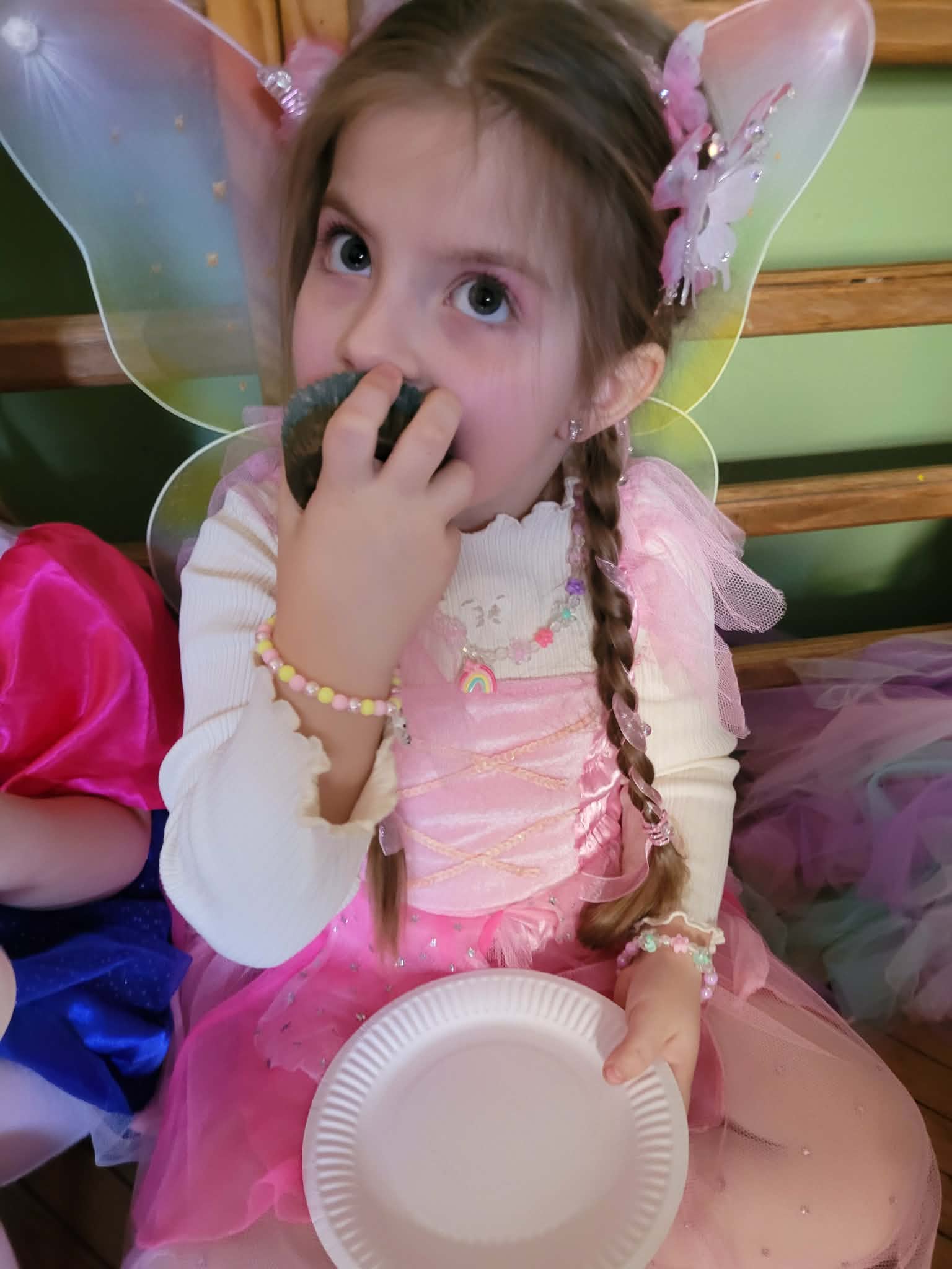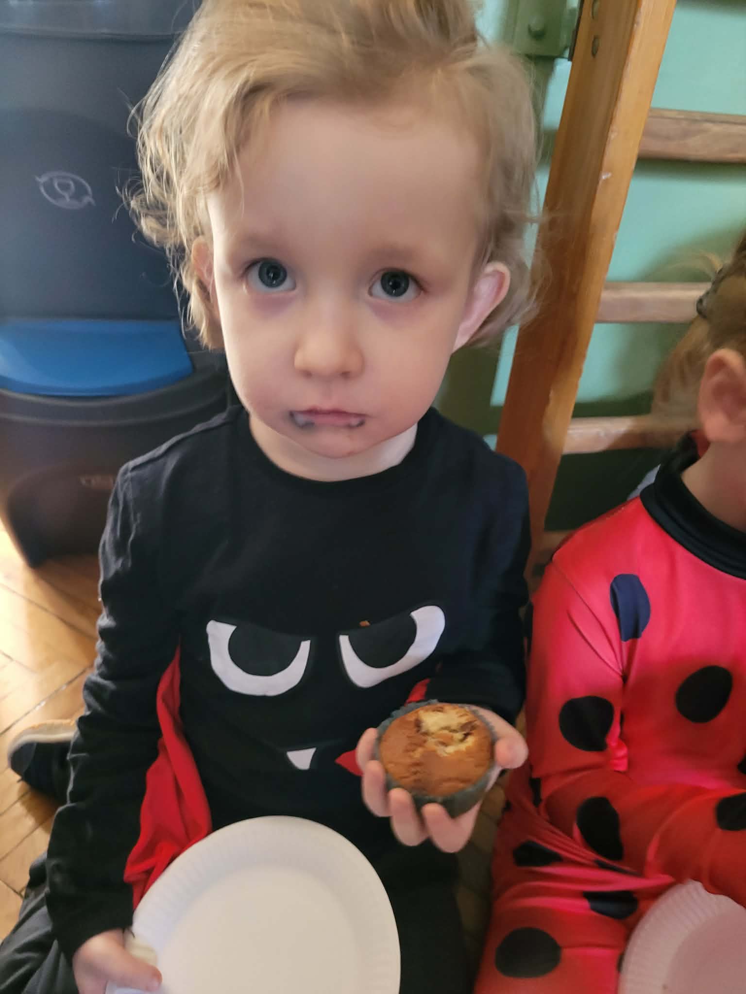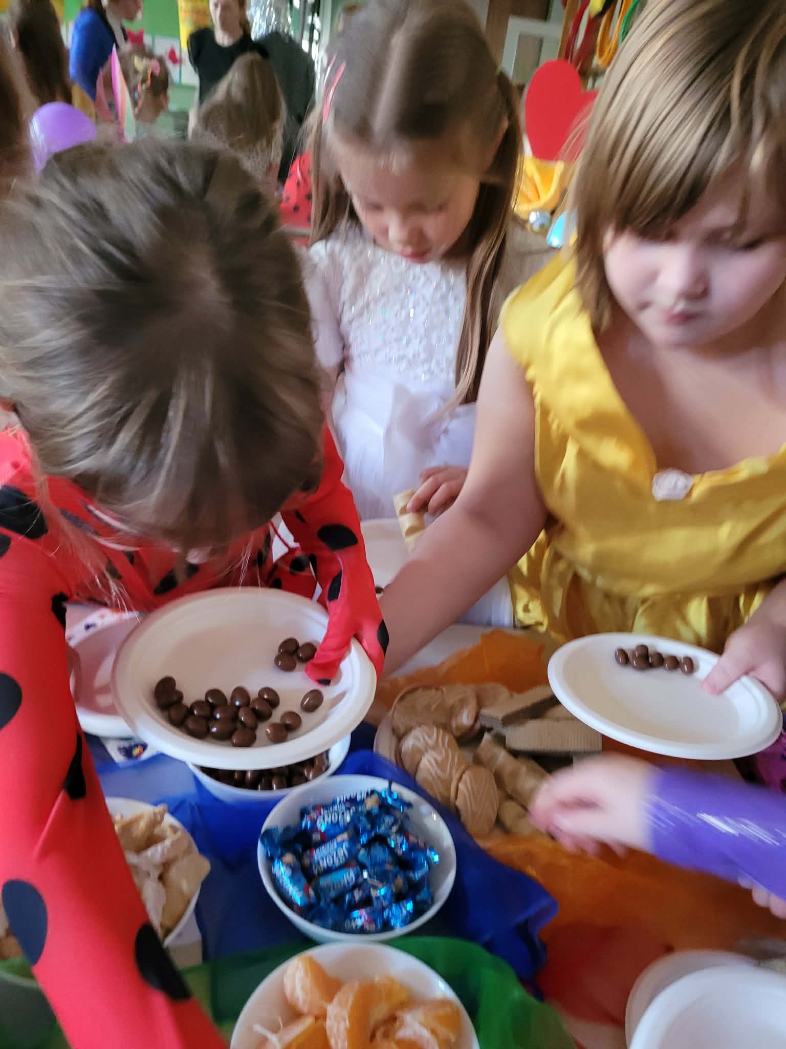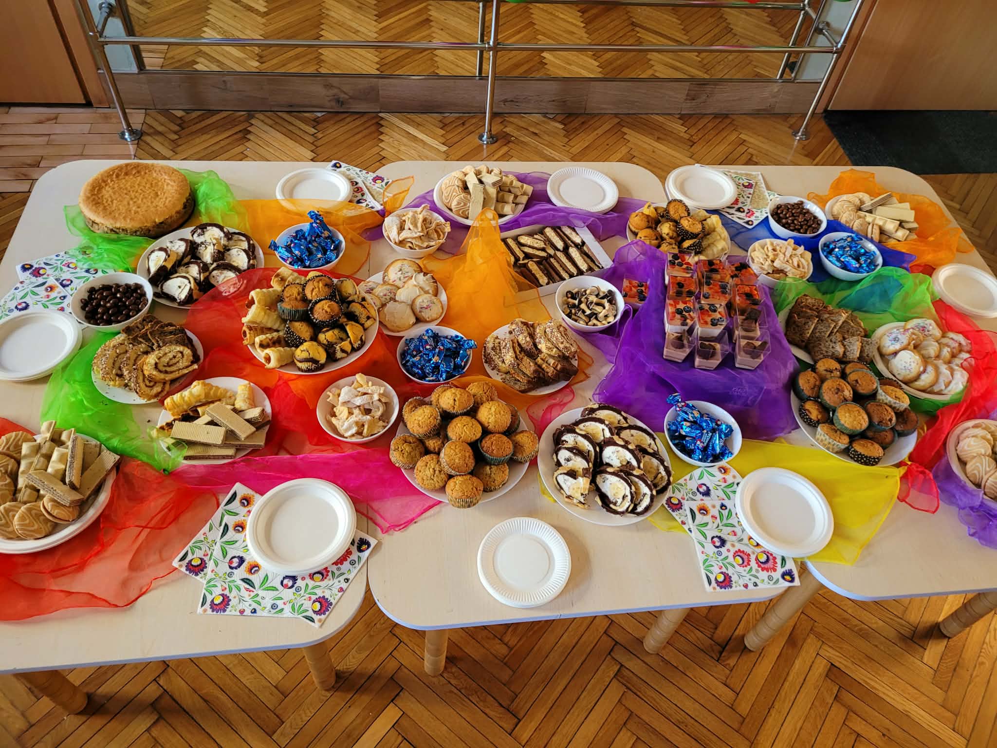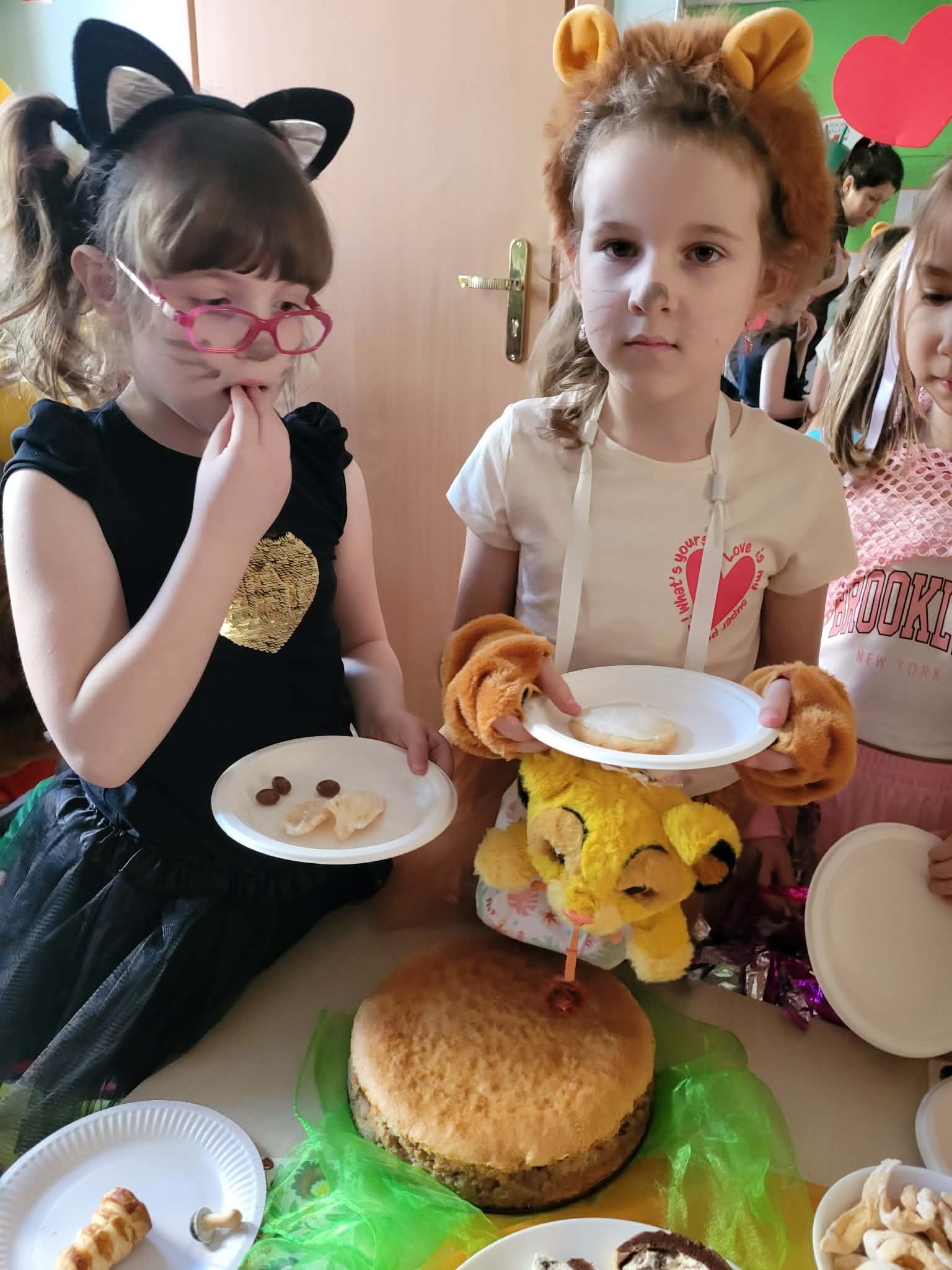 Po udanych zabawach i tańcach, dzieci zgłodniały a na nich czekał już słodki poczęstunek przygotowany przez rodziców. Były babeczki, ciasta, ciasteczka, galaretka, owoce. wszystko smakowało i znikło bardzo szybko