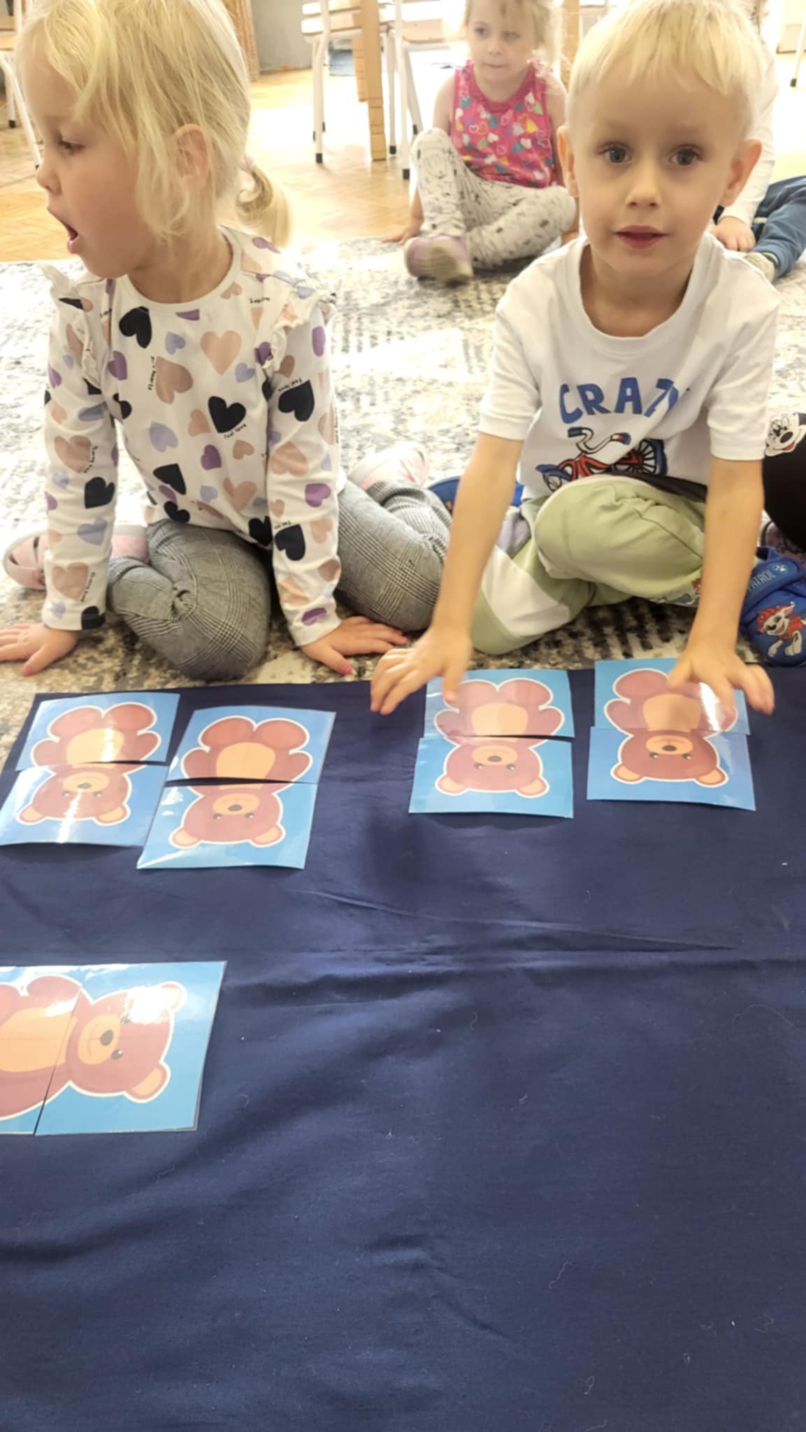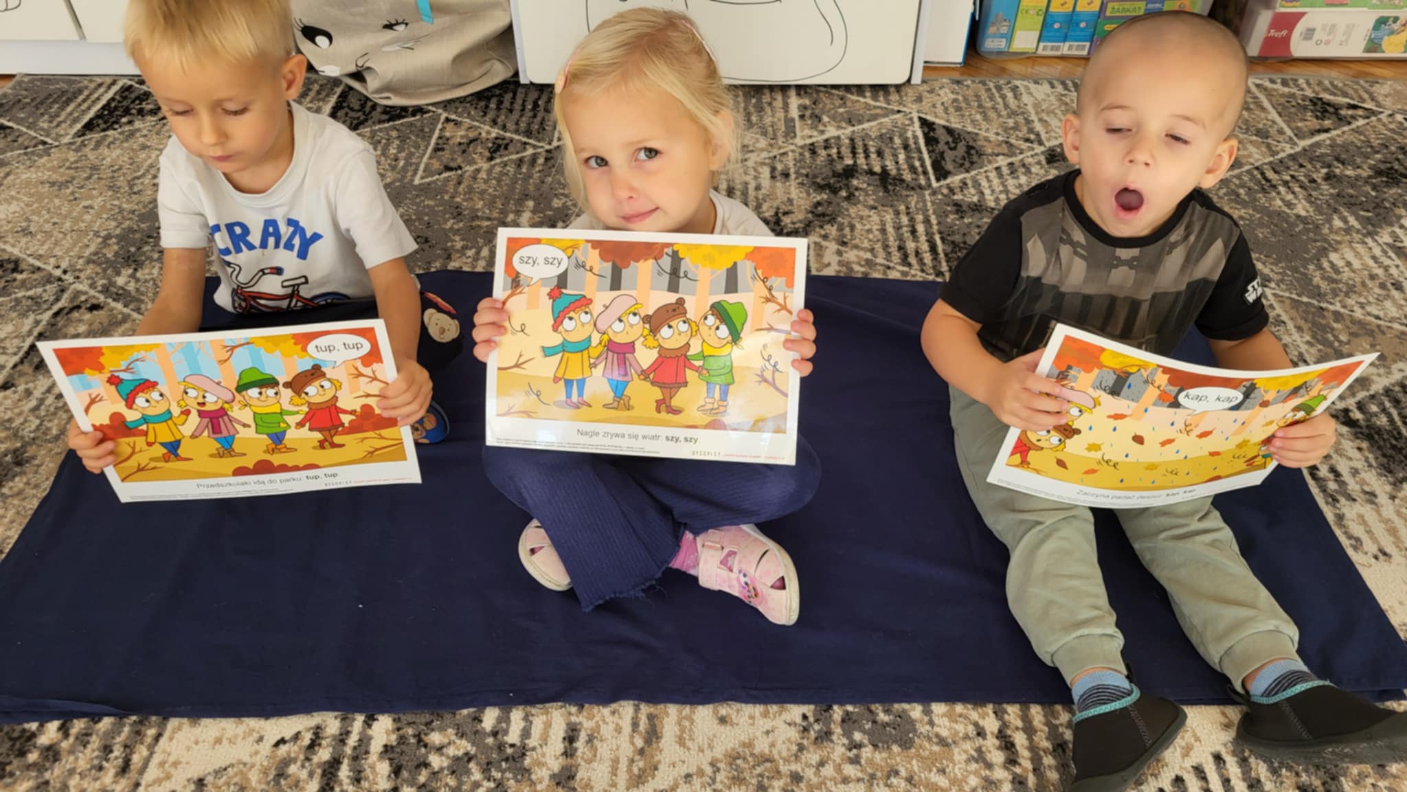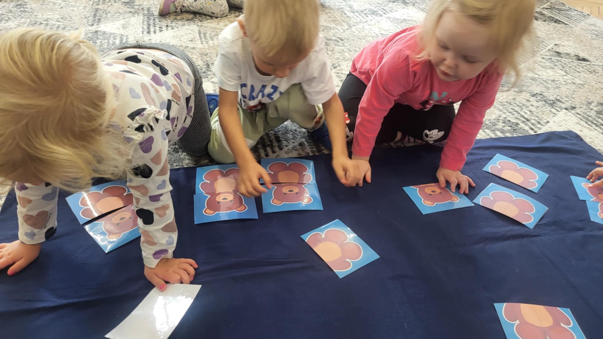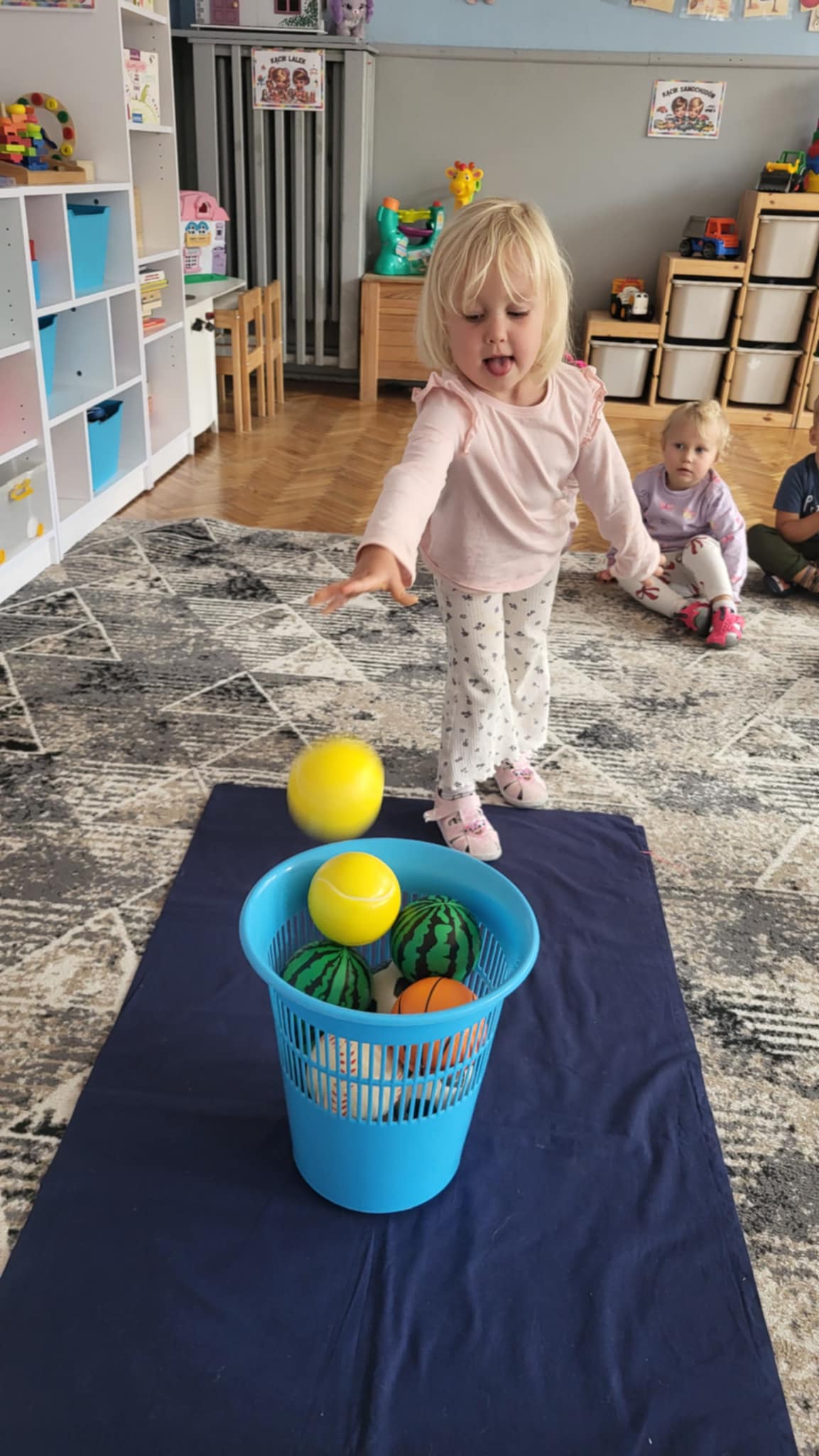 Nasze Maluszki dzielnie ćwiczą różne umiejętności. W tym tygodniu oprócz spacerów i poznawania warzyw, ćwiczyły rzuty do celu, układanie puzzli z 2-óch elementów oraz rozróżnianie i dobieranie kolorów podstawowych używając przy tym niekonwencjonalnych pomocy tj. spinaczy do prania oraz puszków. A najlepiej bawiły się przy dźwiękach jesiennych piosenek oraz ćwiczeń rytmicznych przy tamburynie.