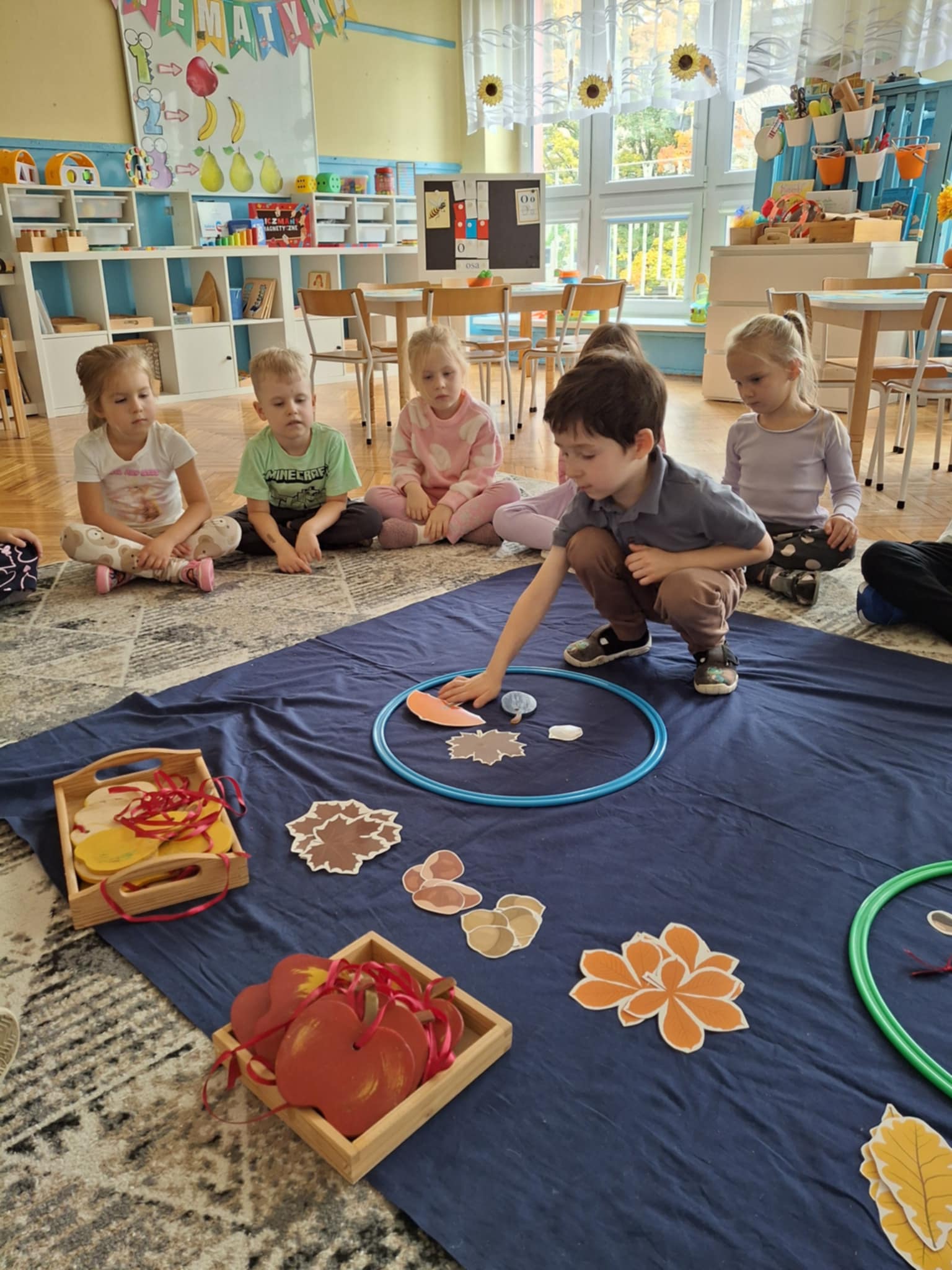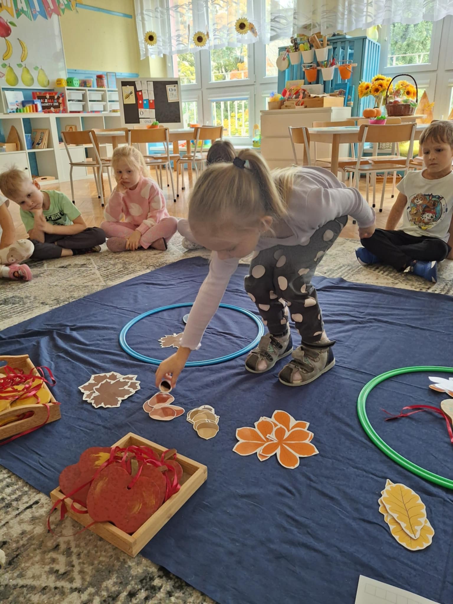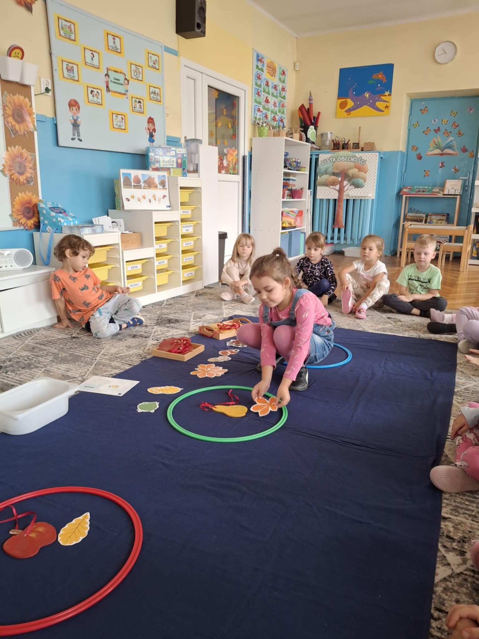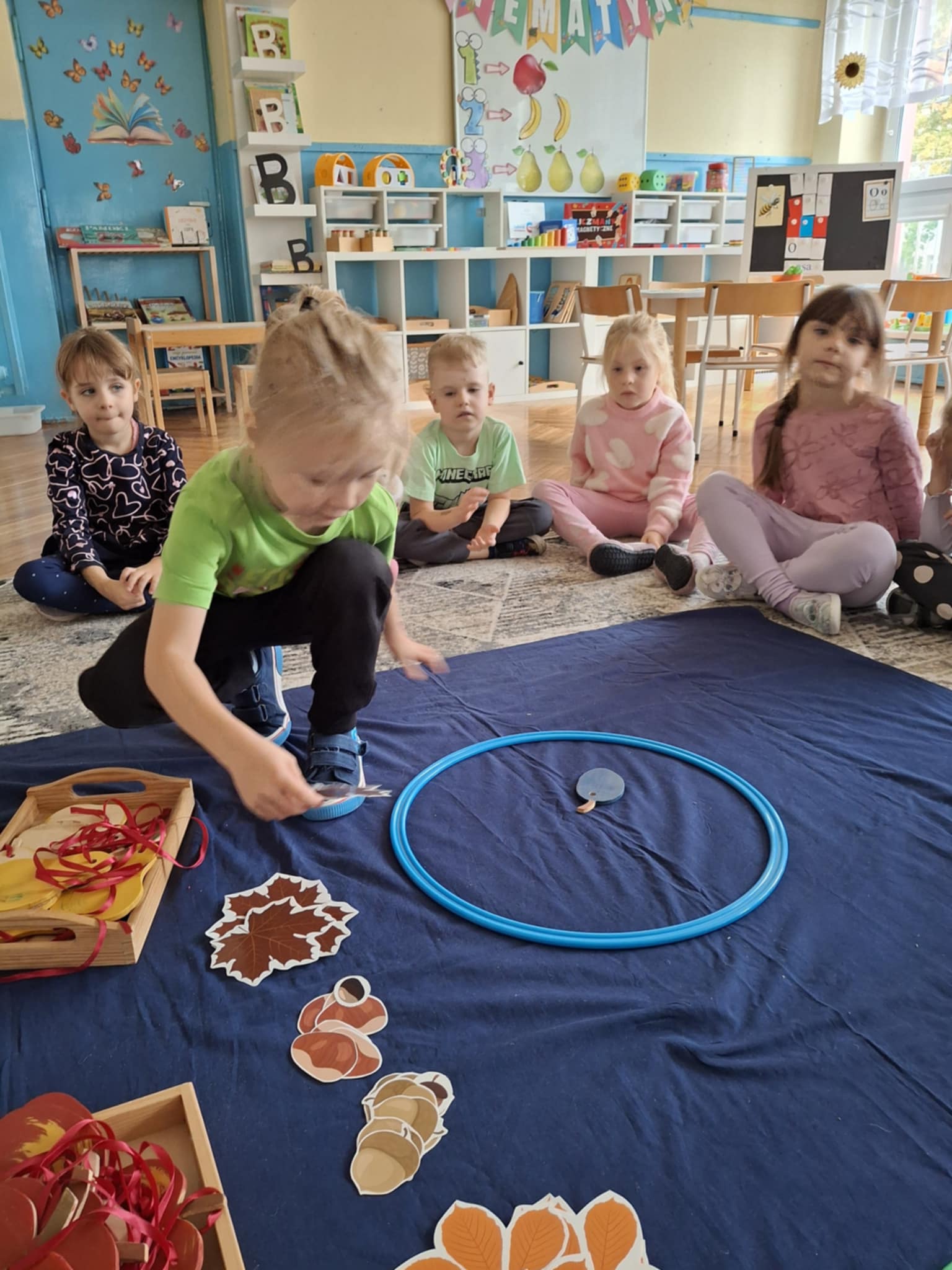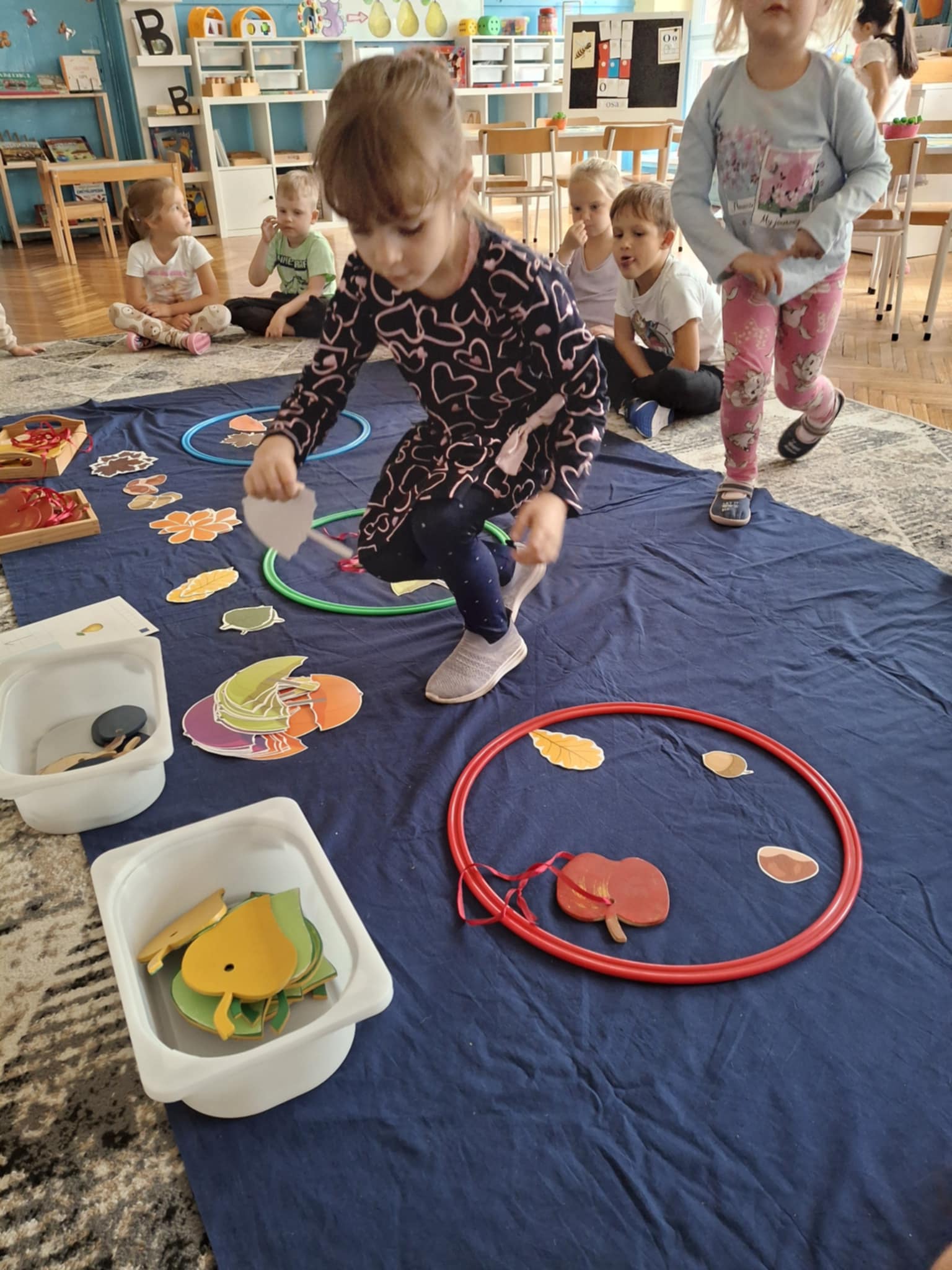 Zabawy matematyczne to ulubione działania dzieci. Można tworzyć zbiory, przeliczać ptaszki, listki.Układać liczmany stosujac pojecia nad, na, pod. Dzieci rownież rozmawiały o ptakach, uciekających przed zimą do ciepłych krajów