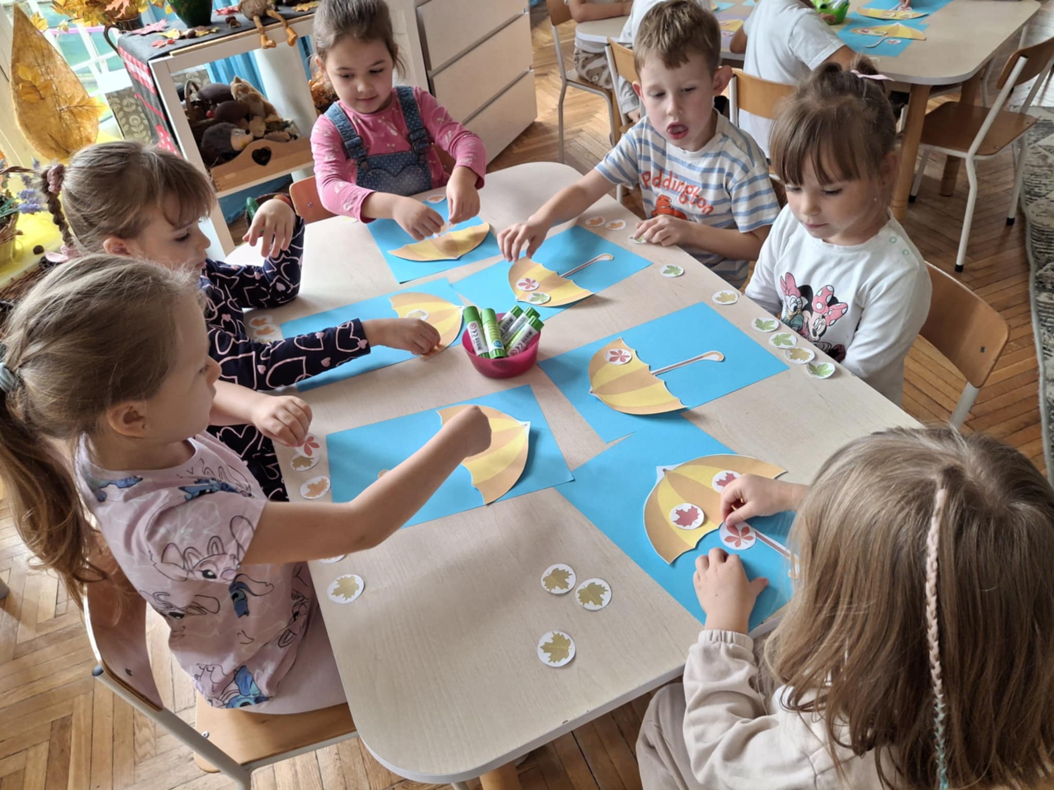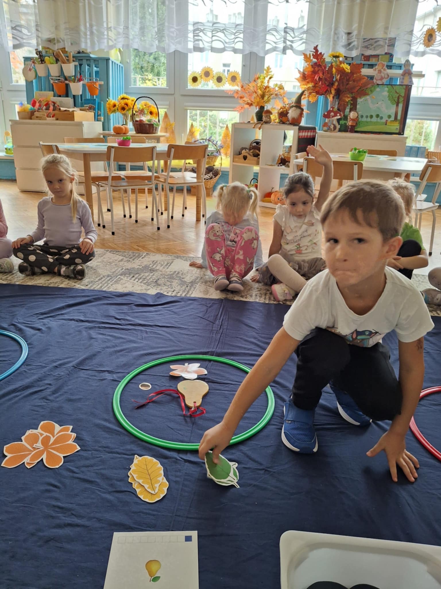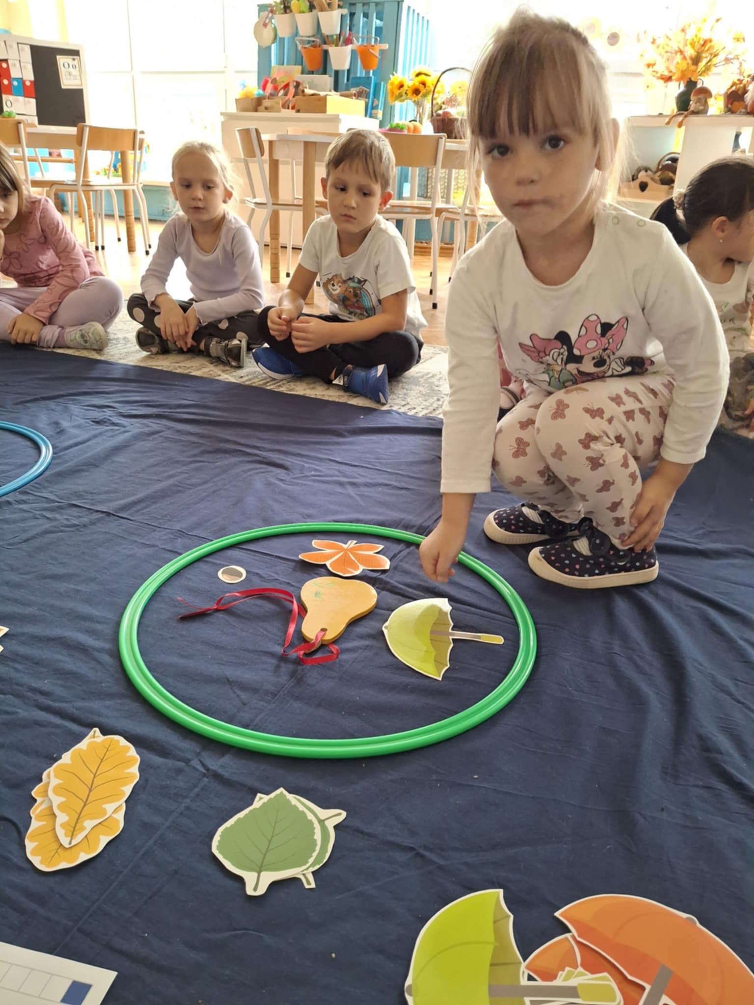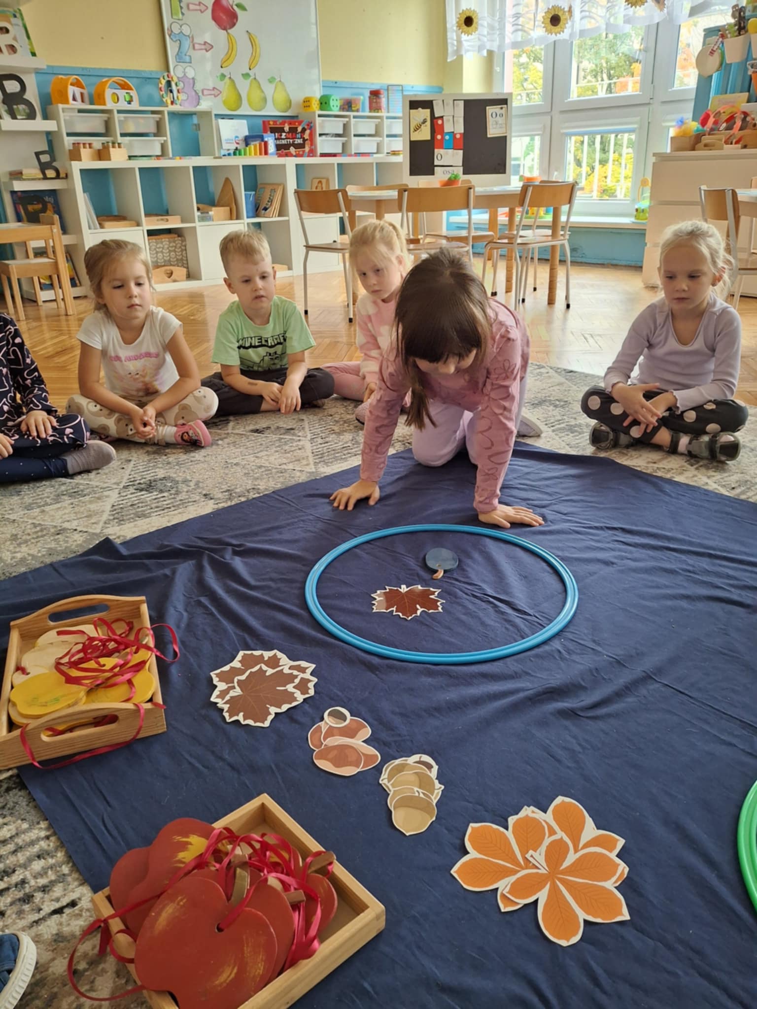 Zabawy matematyczne to ulubione działania dzieci. Można tworzyć zbiory, przeliczać ptaszki, listki.Układać liczmany stosujac pojecia nad, na, pod. Dzieci rownież rozmawiały o ptakach, uciekających przed zimą do ciepłych krajów