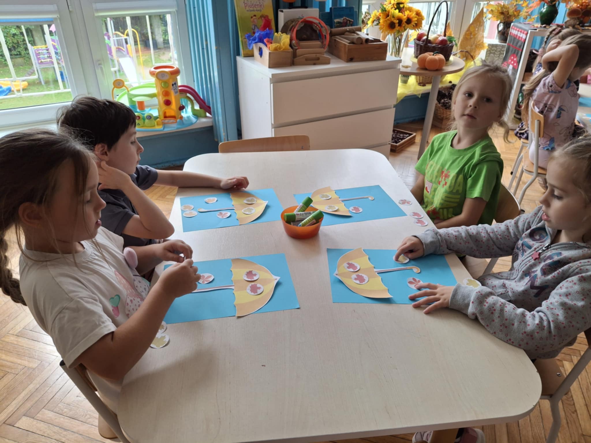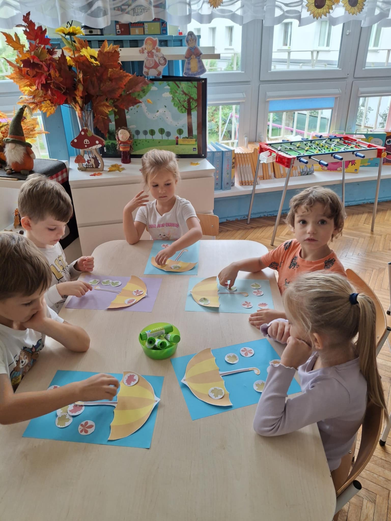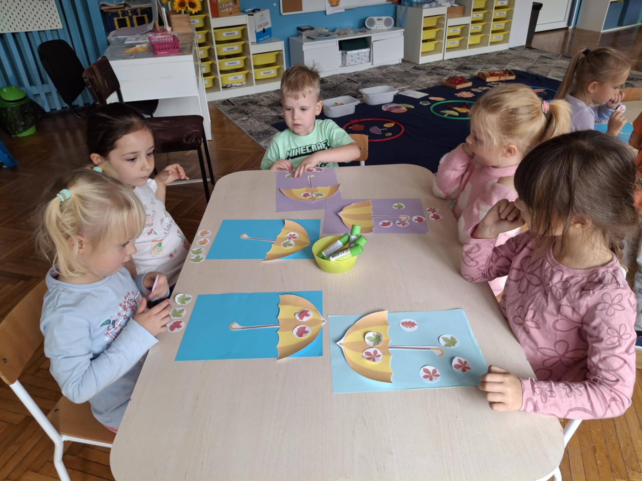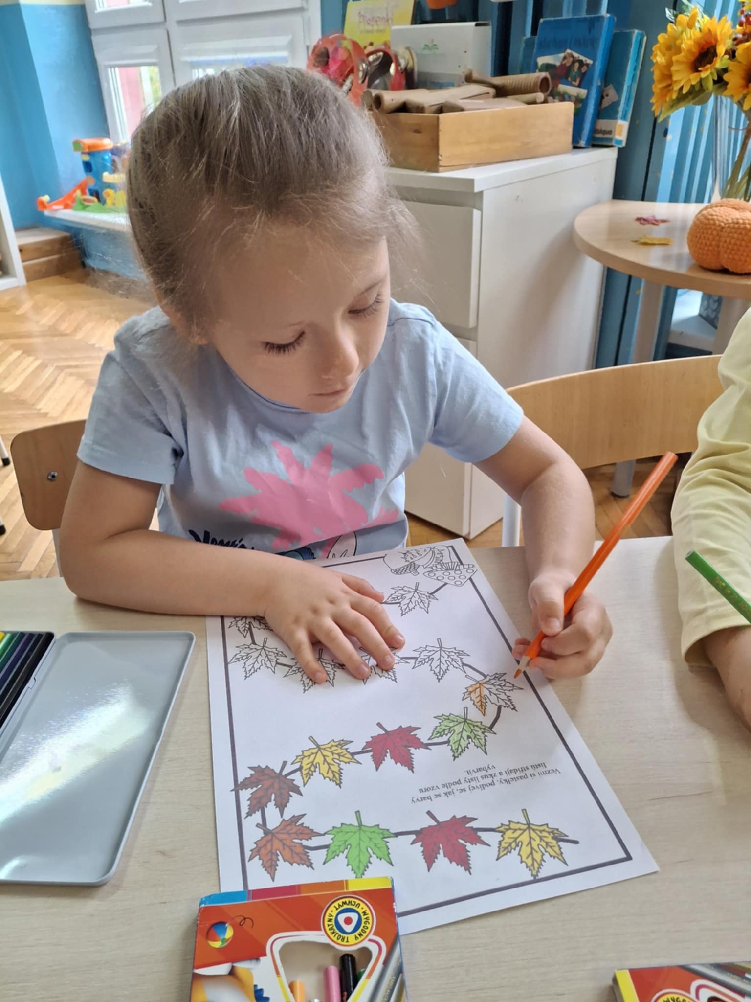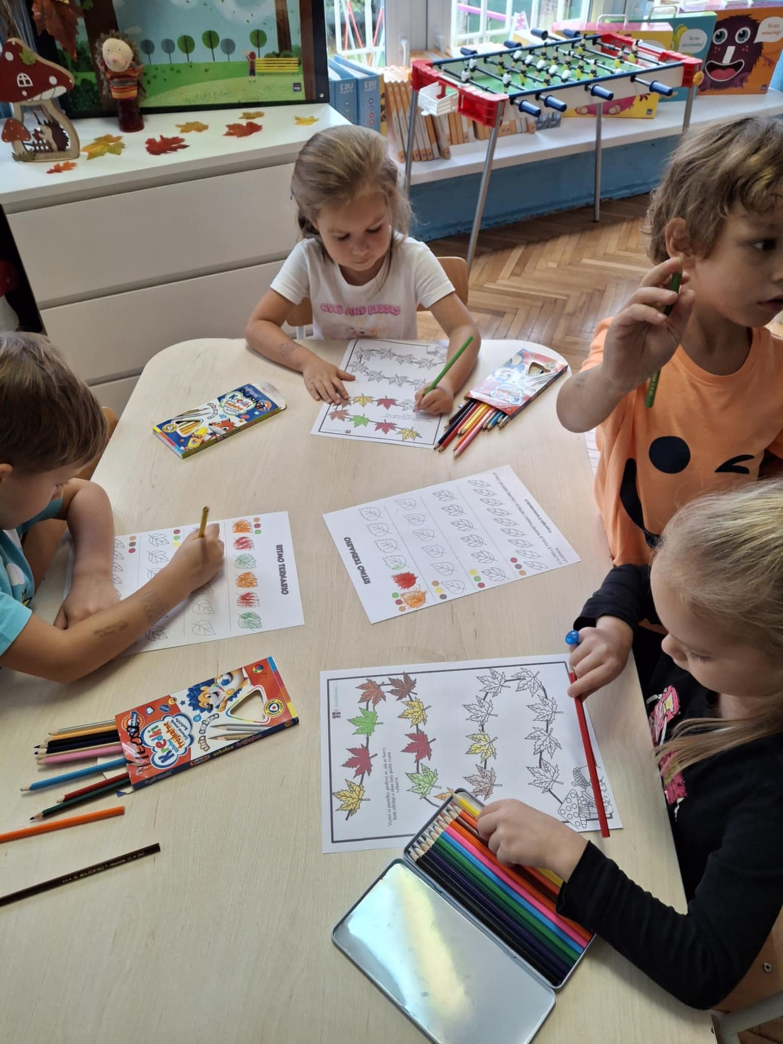 Zabawy matematyczne to ulubione działania dzieci. Można tworzyć zbiory, przeliczać ptaszki, listki.Układać liczmany stosujac pojecia nad, na, pod. Dzieci rownież rozmawiały o ptakach, uciekających przed zimą do ciepłych krajów