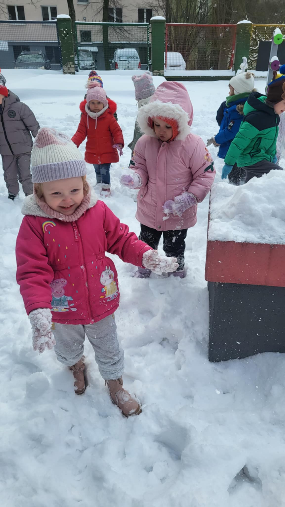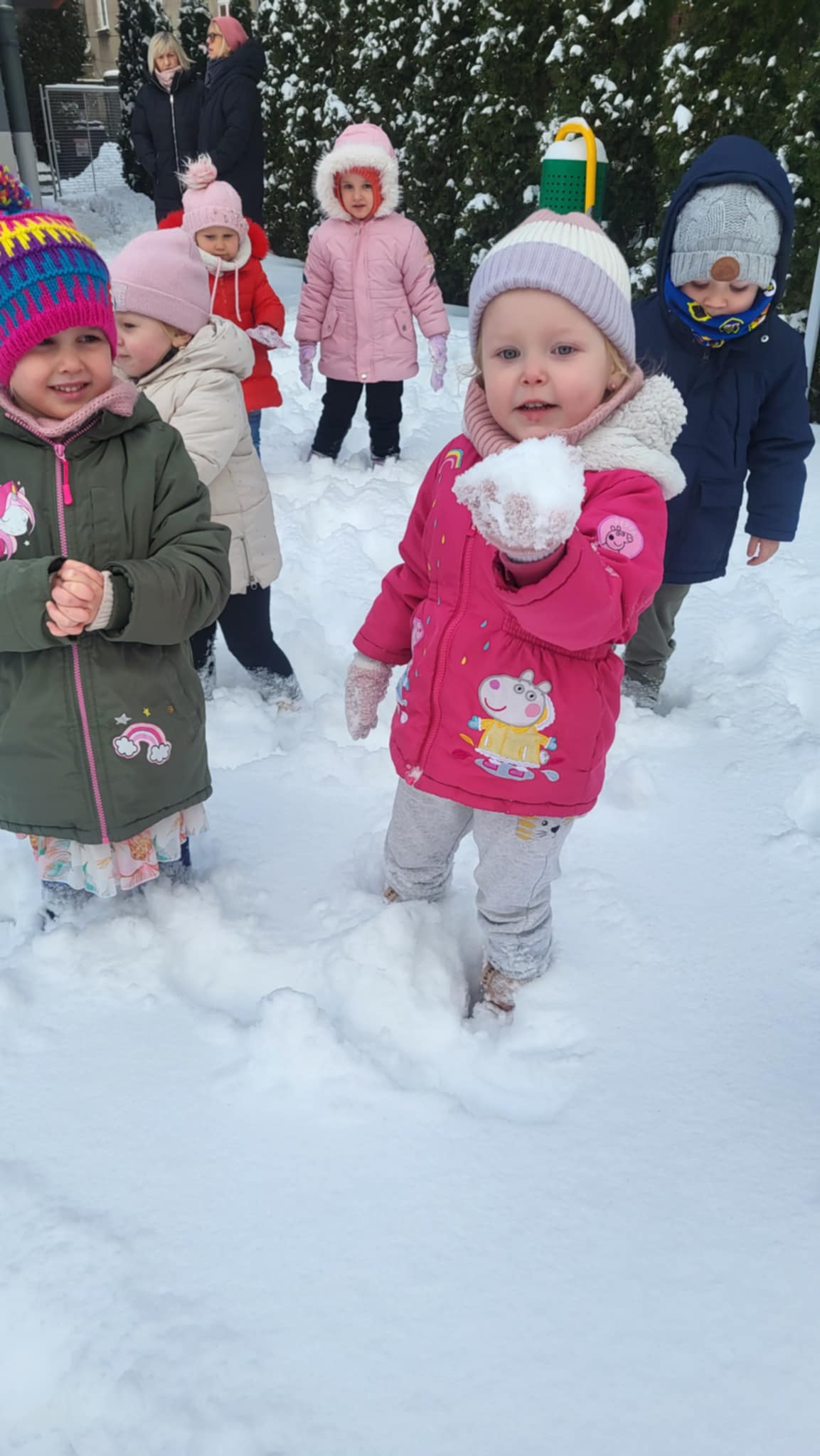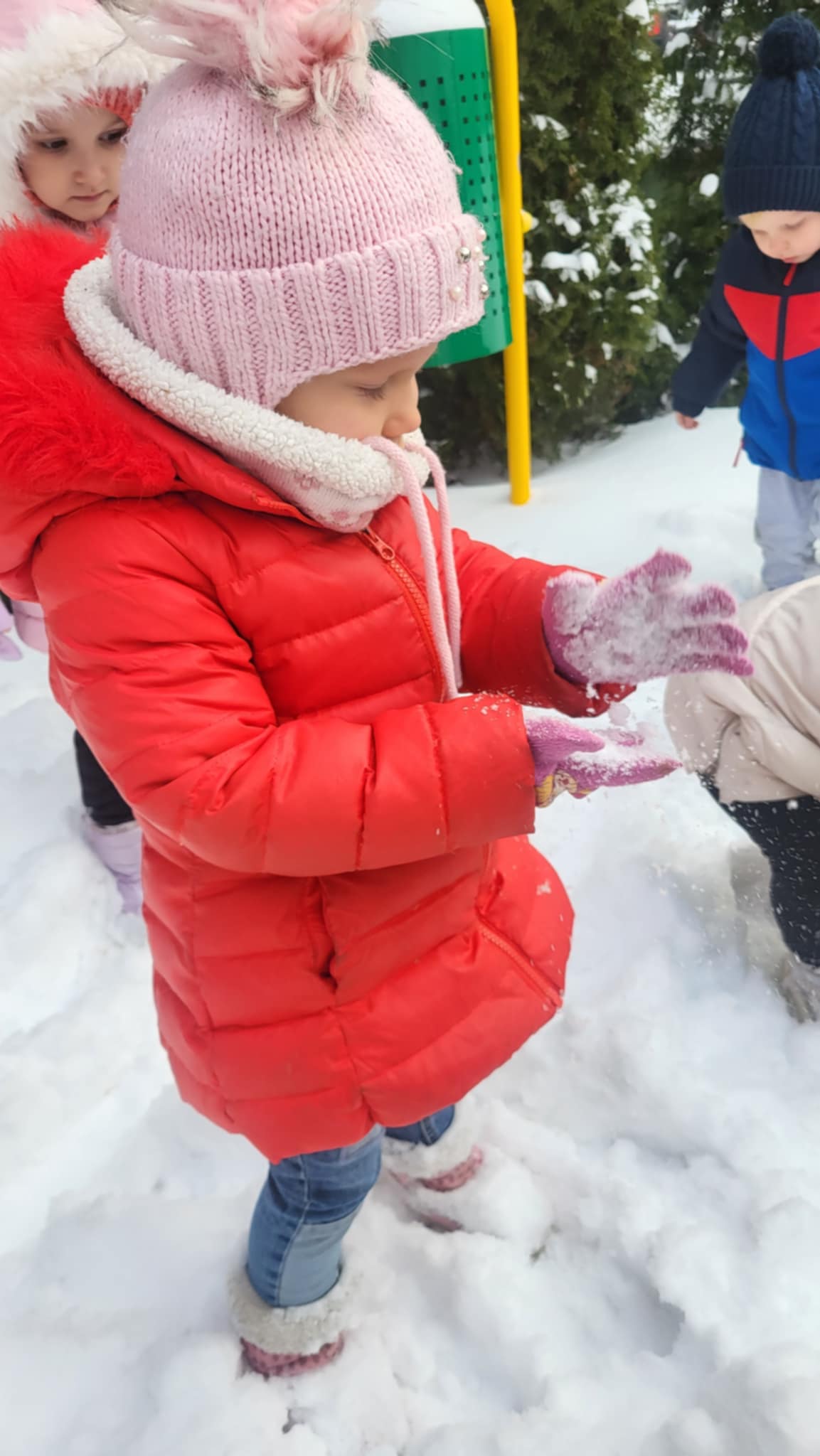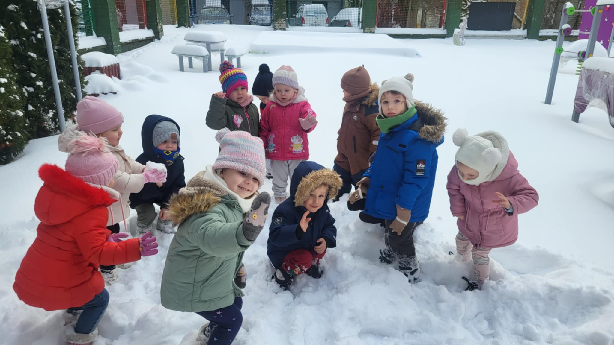 Przyszedł najdłużej oczekiwany czas, gdy każde dziecko może bawić się na śniegu. Dlatego, gdy na dworze biały puch, nasze Maluszki wybrały się do ogródka, by ze śniegu lepić kule,biegać, skakać i świetnie się bawić.