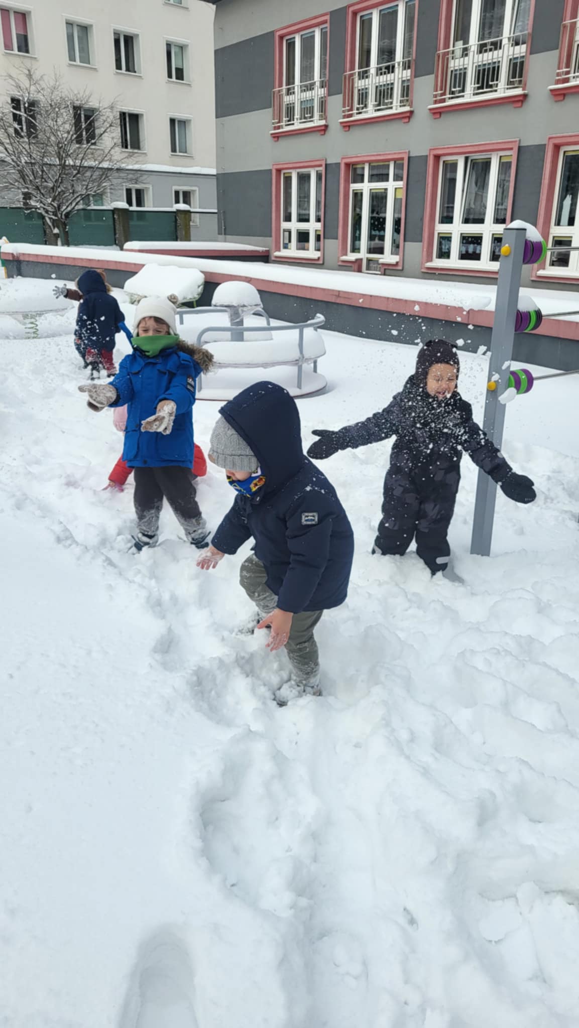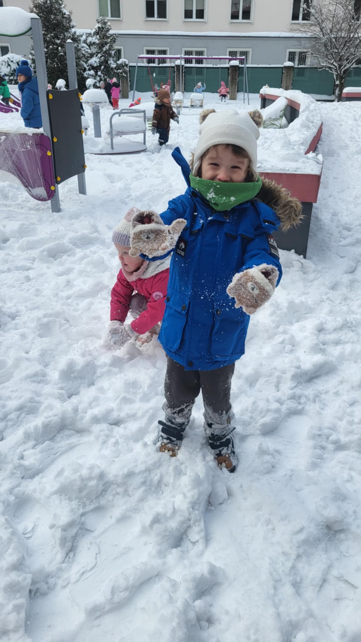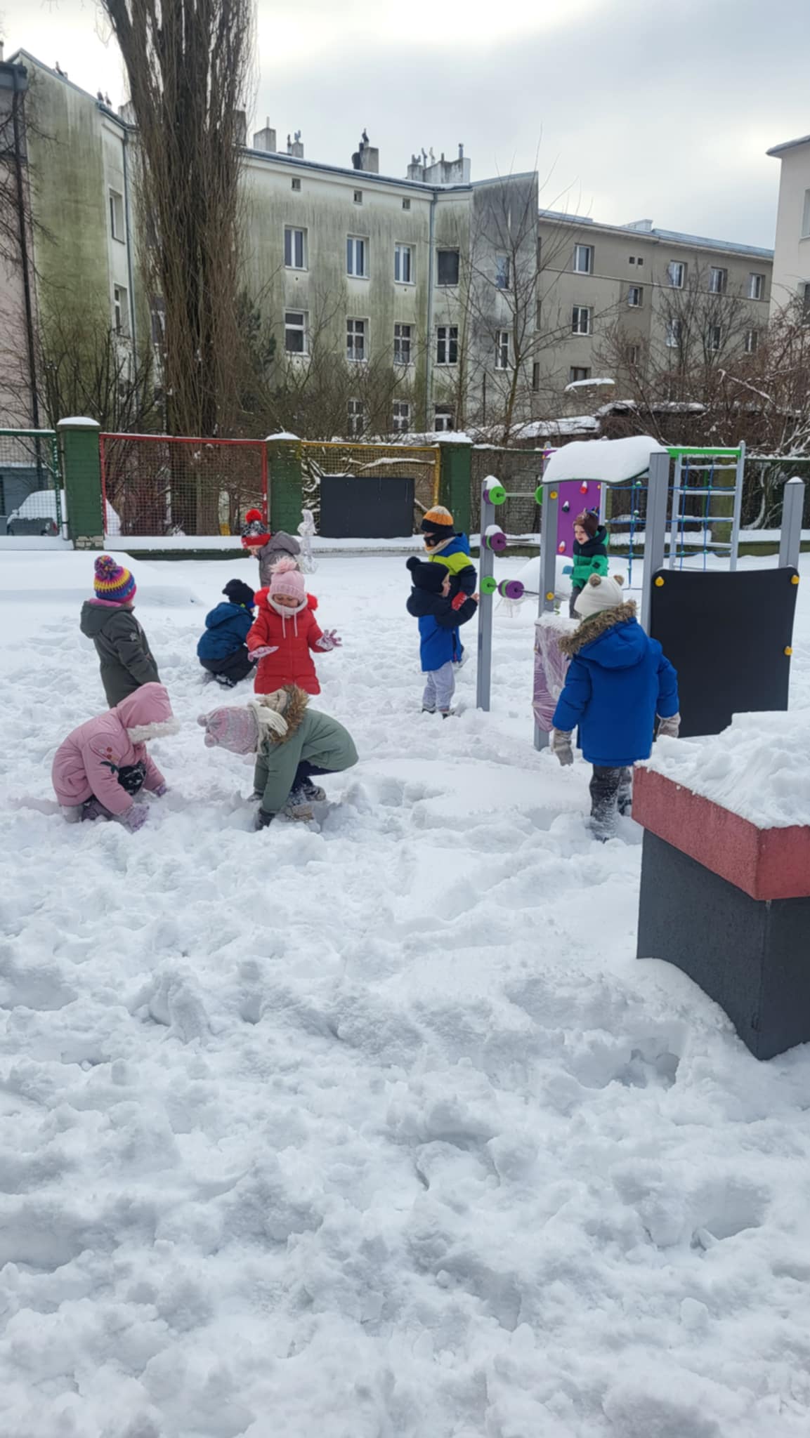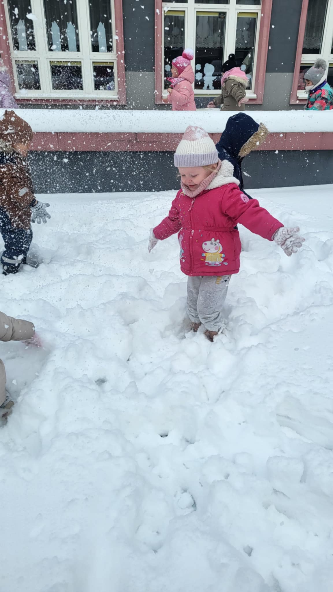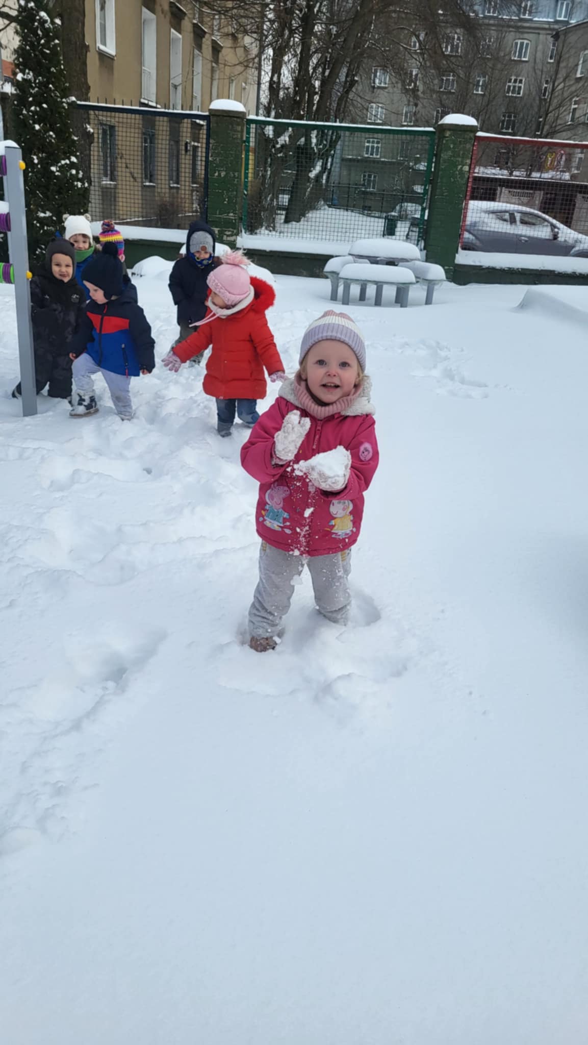 Przyszedł najdłużej oczekiwany czas, gdy każde dziecko może bawić się na śniegu. Dlatego, gdy na dworze biały puch, nasze Maluszki wybrały się do ogródka, by ze śniegu lepić kule,biegać, skakać i świetnie się bawić.