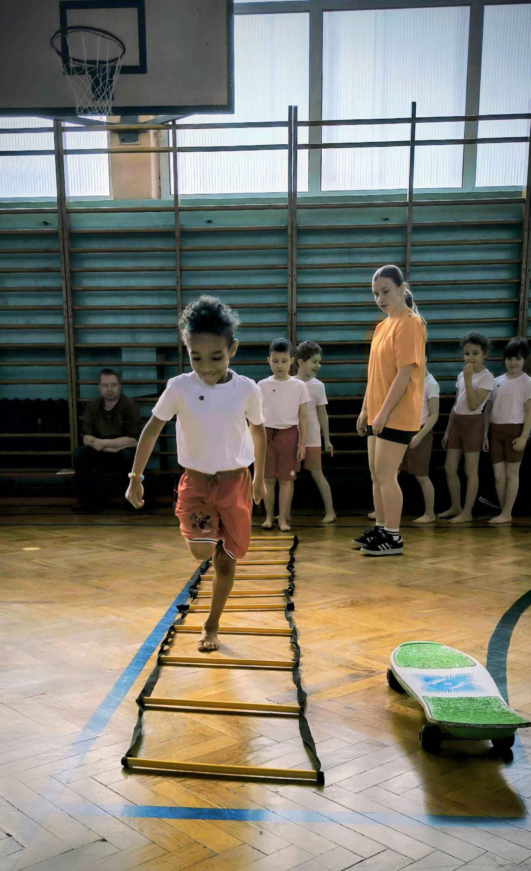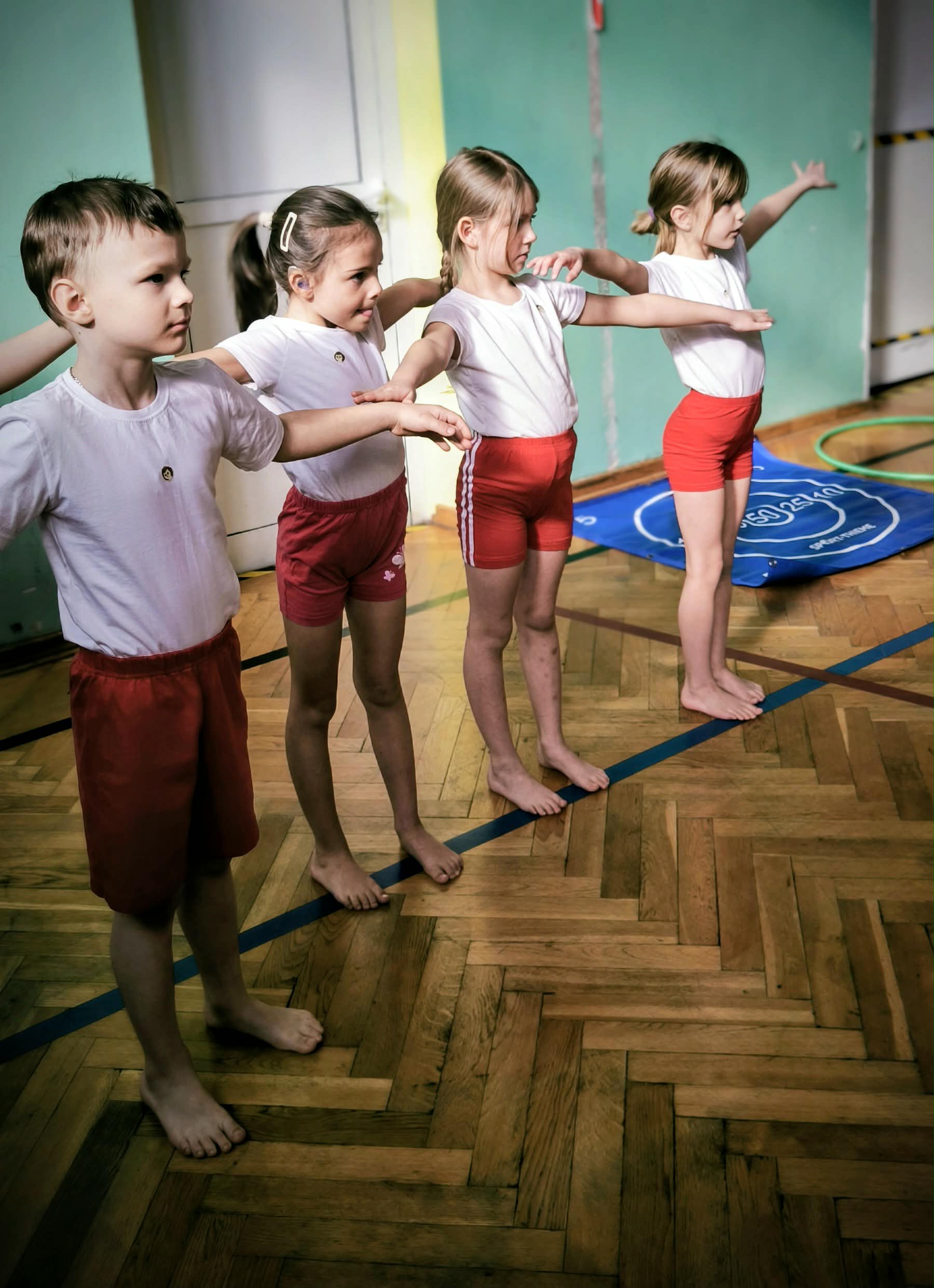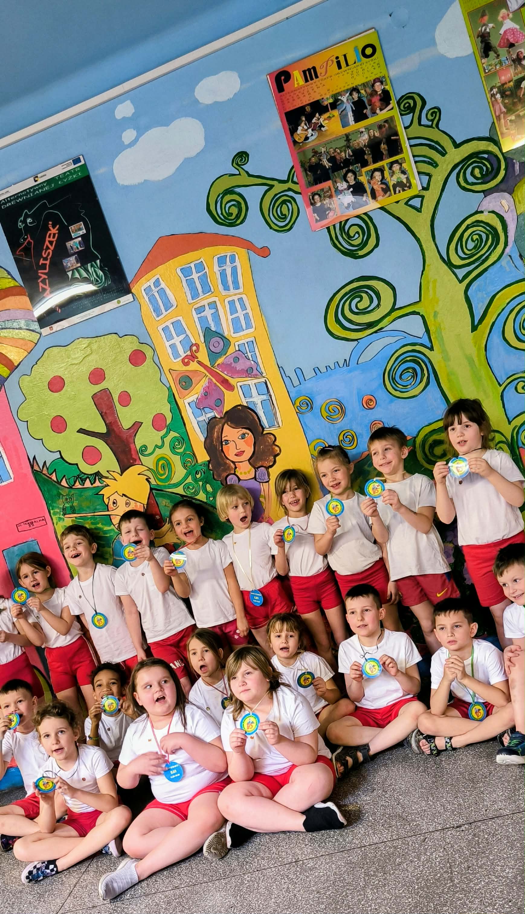 Współpraca ze środowiskiem lokalnym a szczególnie z innymi placówkami oświatowymi jest bardzo ważna w pracy przedszkola. Starszaki biorą udział w różnych przedsięwzięciach organizowanych przez lokalne przedszkola i szkoły podstawowe. Po raz kolejny dzieci były gośćmi Szkoły Podstawowej nr 175, w której nauczycielki edukacji wczesnoszkolnej zorganizowały zajęcia sportowe dla zaprzyjaźnionych przedszkoli.