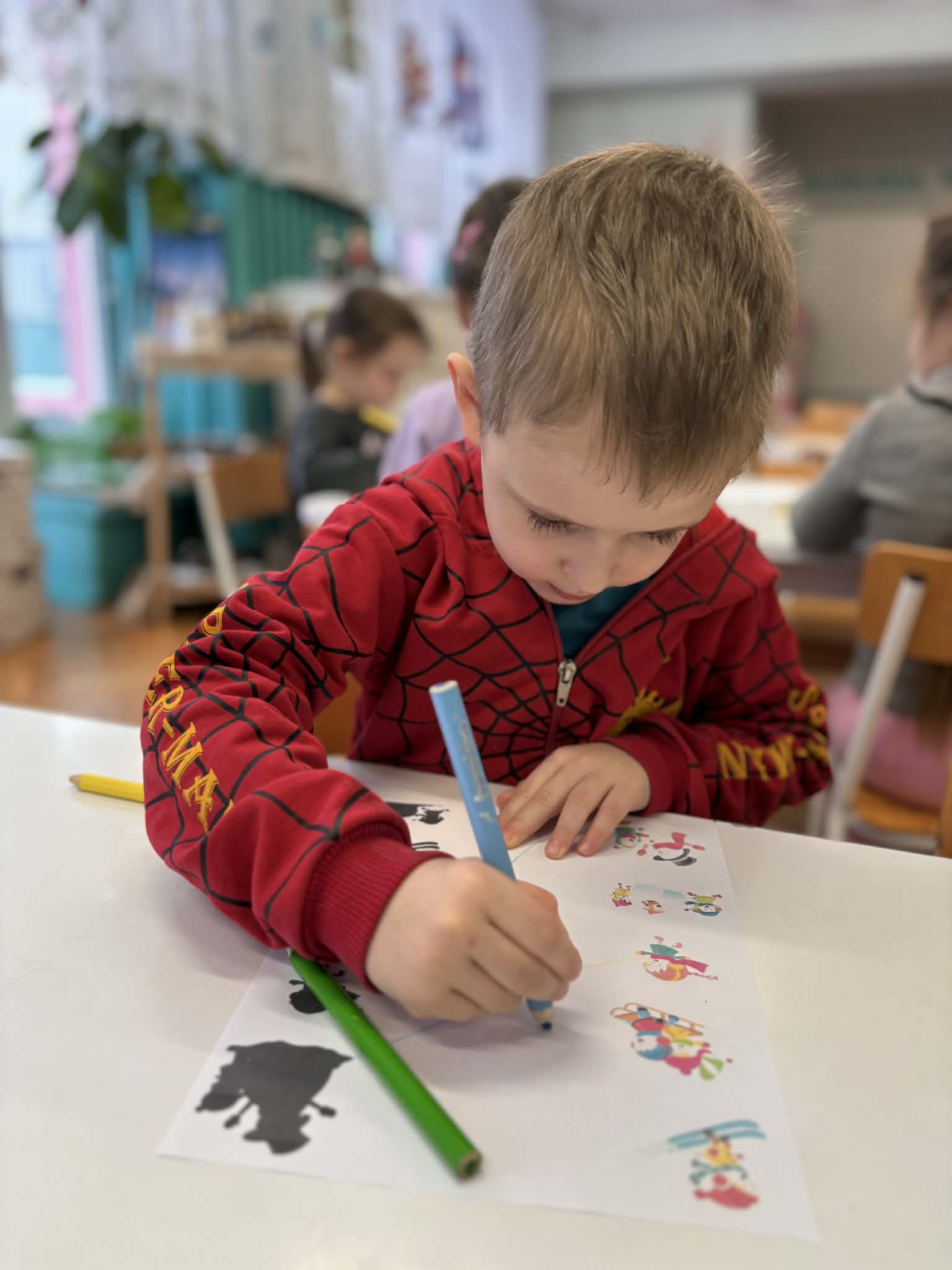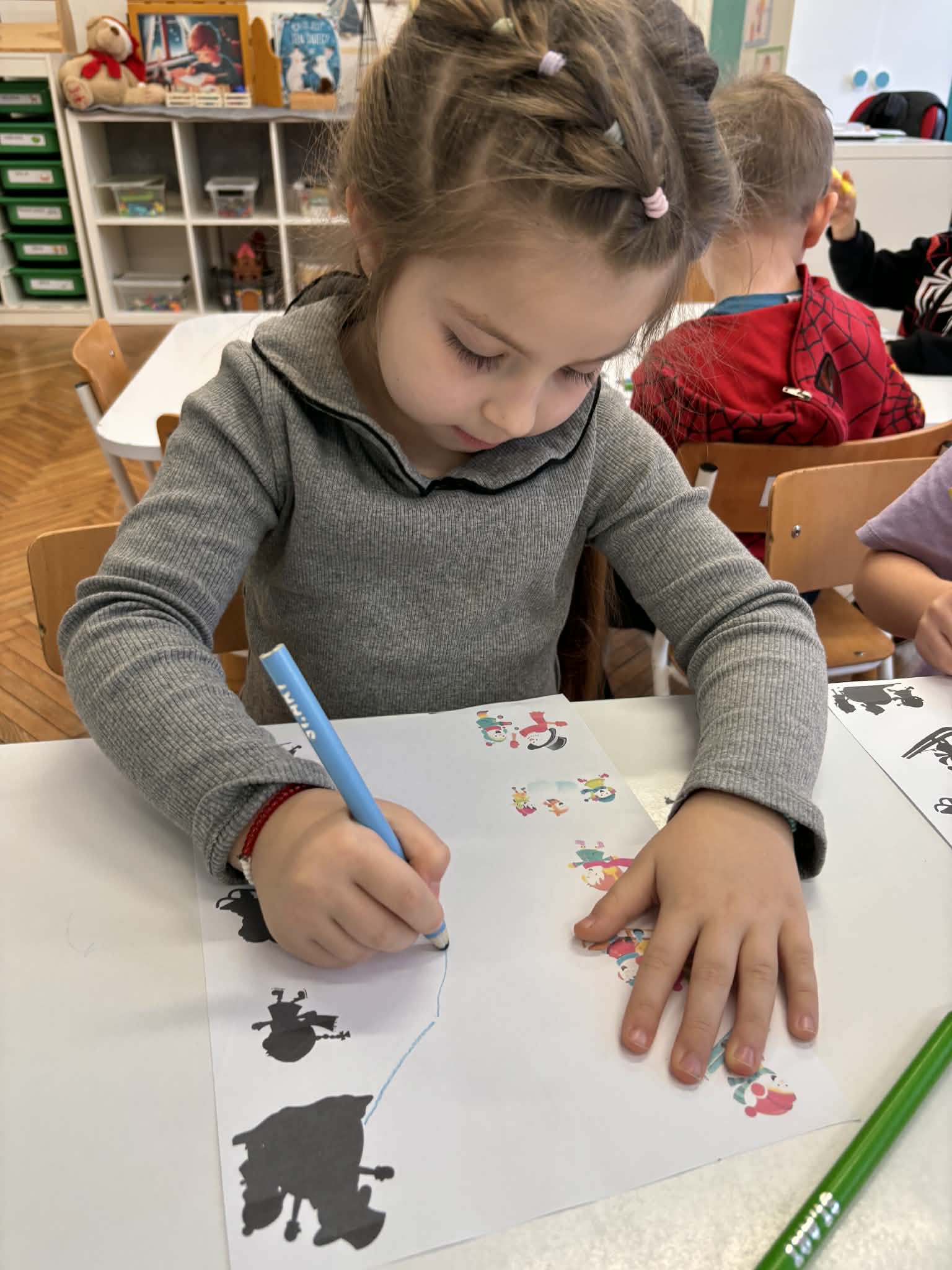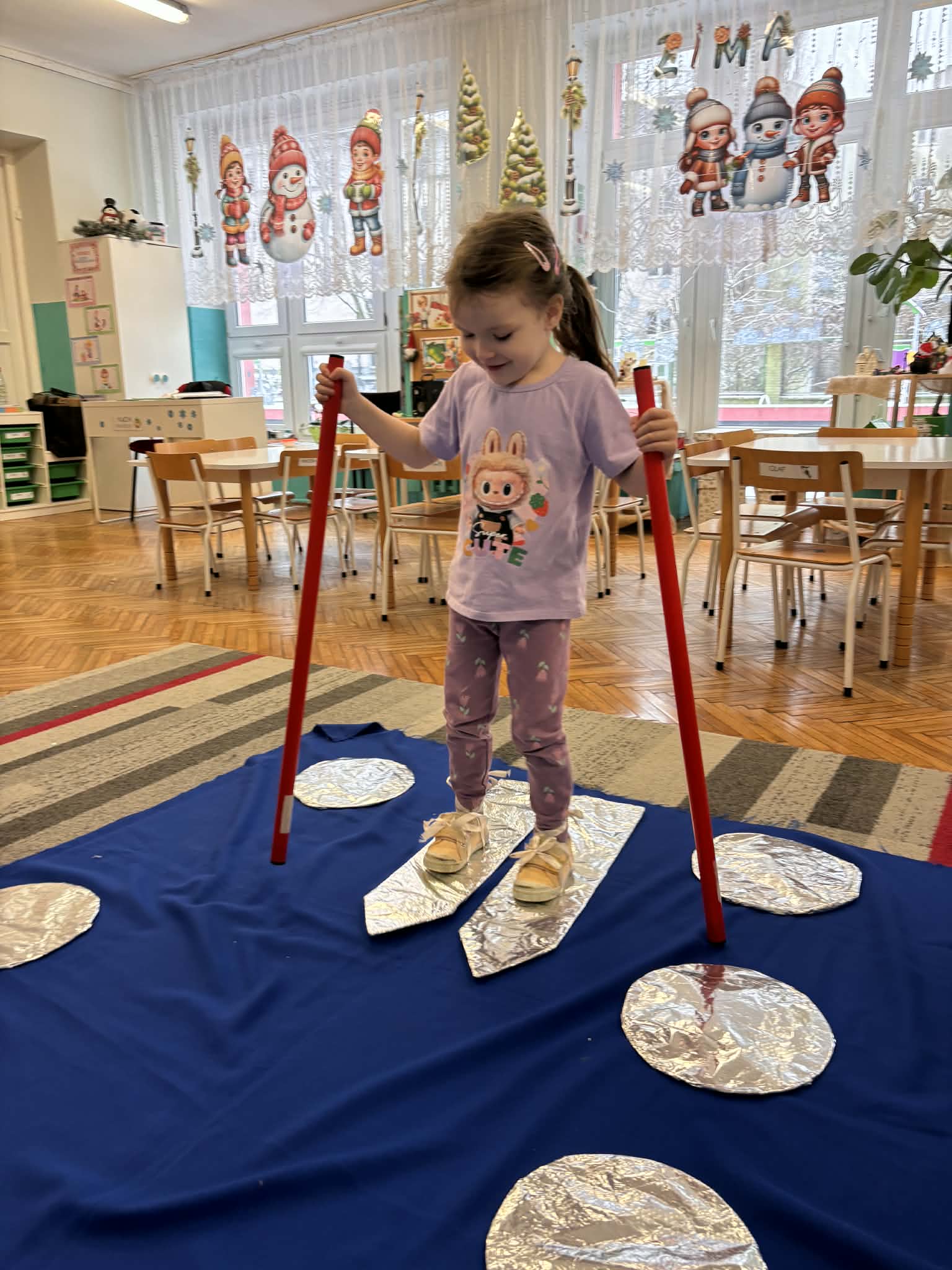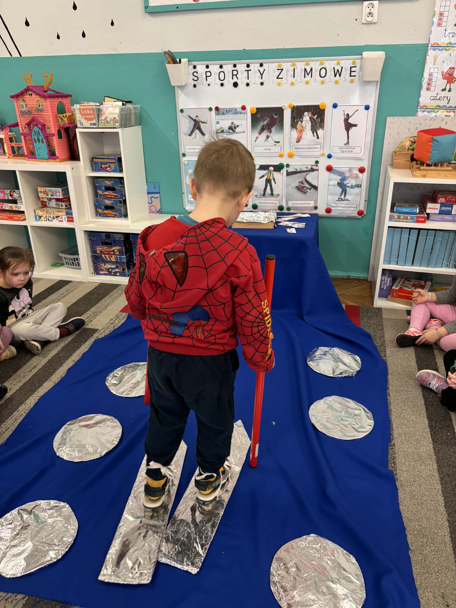 Zima to idealny czas, by porozmawiać o sportach zimowych i… spróbować ich w przedszkolnym wydaniu. nasze przedszkolaki wcieliły się w małych narciarzy. Dzieci „jeździły na nartach”, ćwicząc koordynację, równowagę i sprawność ruchową, a przy tym było mnóstwo śmiechu i dobrej zabawy. Na końcu toru czekało układanie puzzli o tematyce zimowej. Po aktywności ruchowej przyszedł czas na zadania rozwijające koncentrację i myślenie: -karty pracy – szukanie właściwej drogi oraz dopasowywanie obrazków do ich cieni.