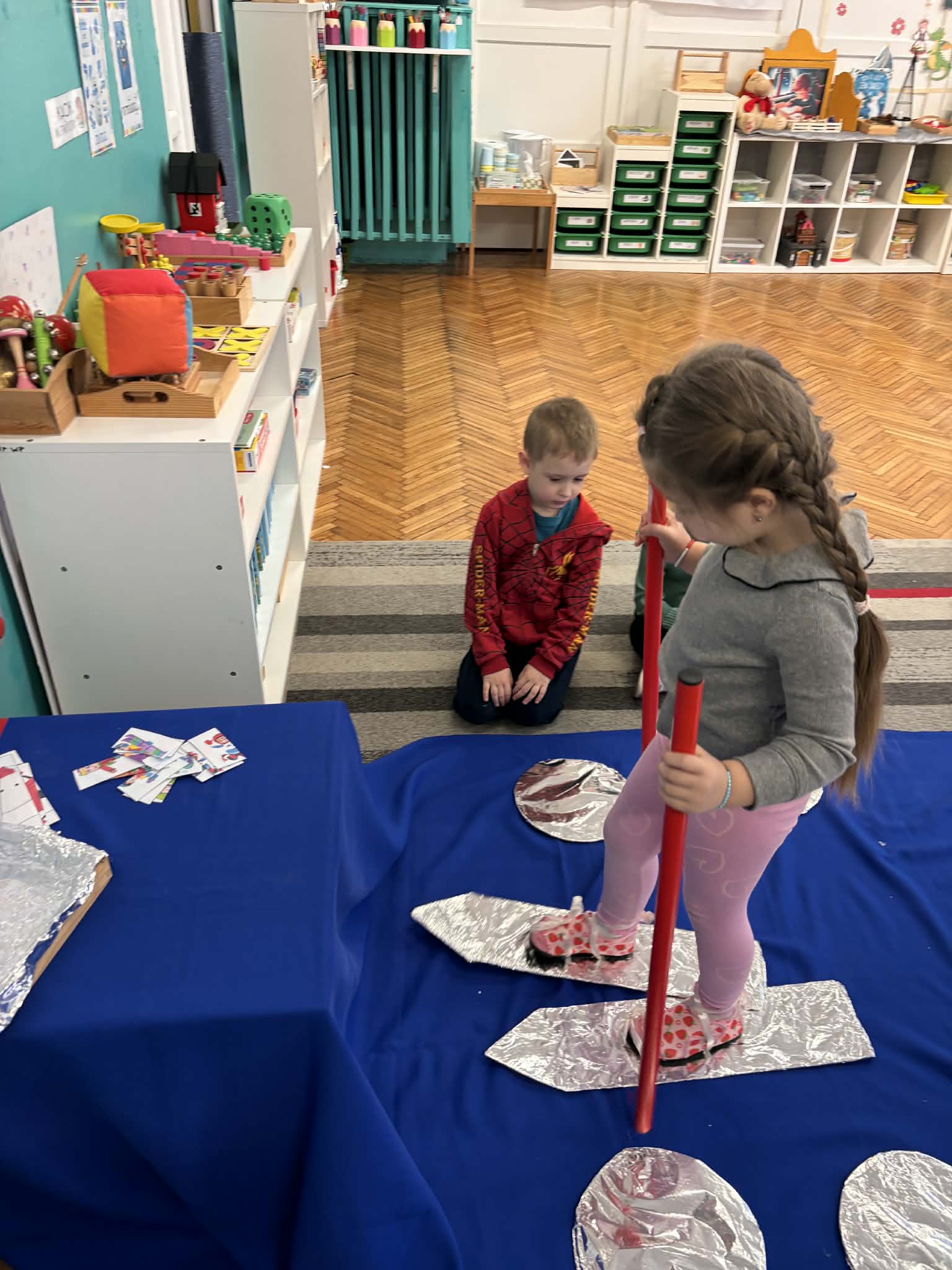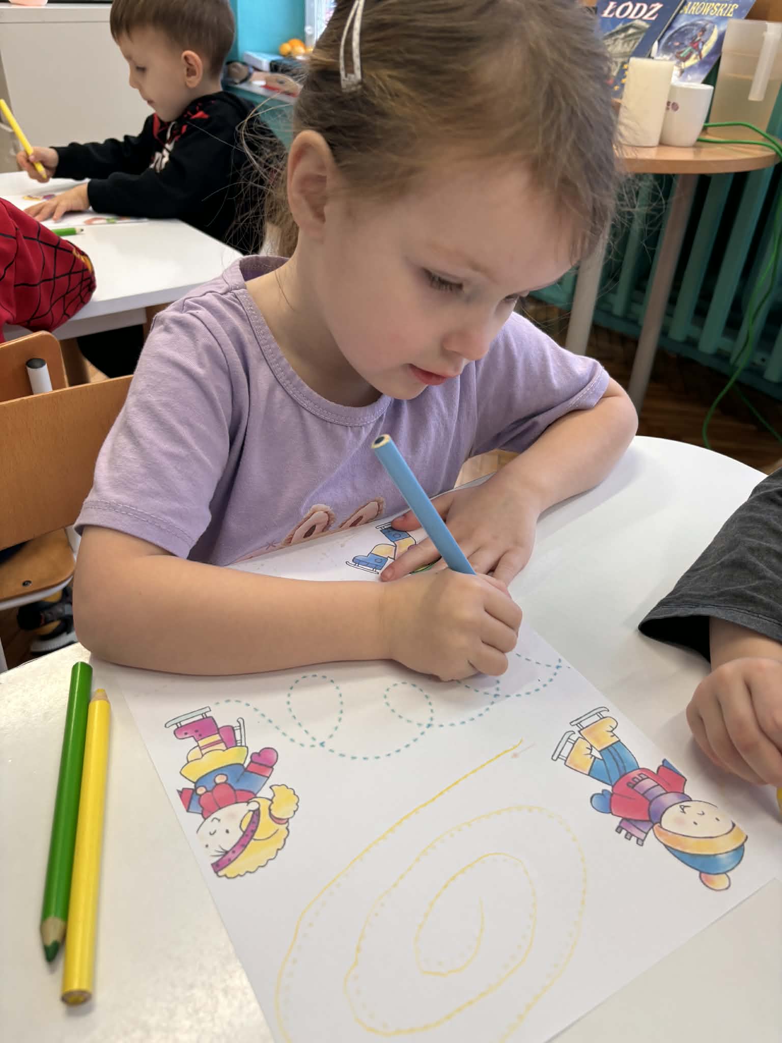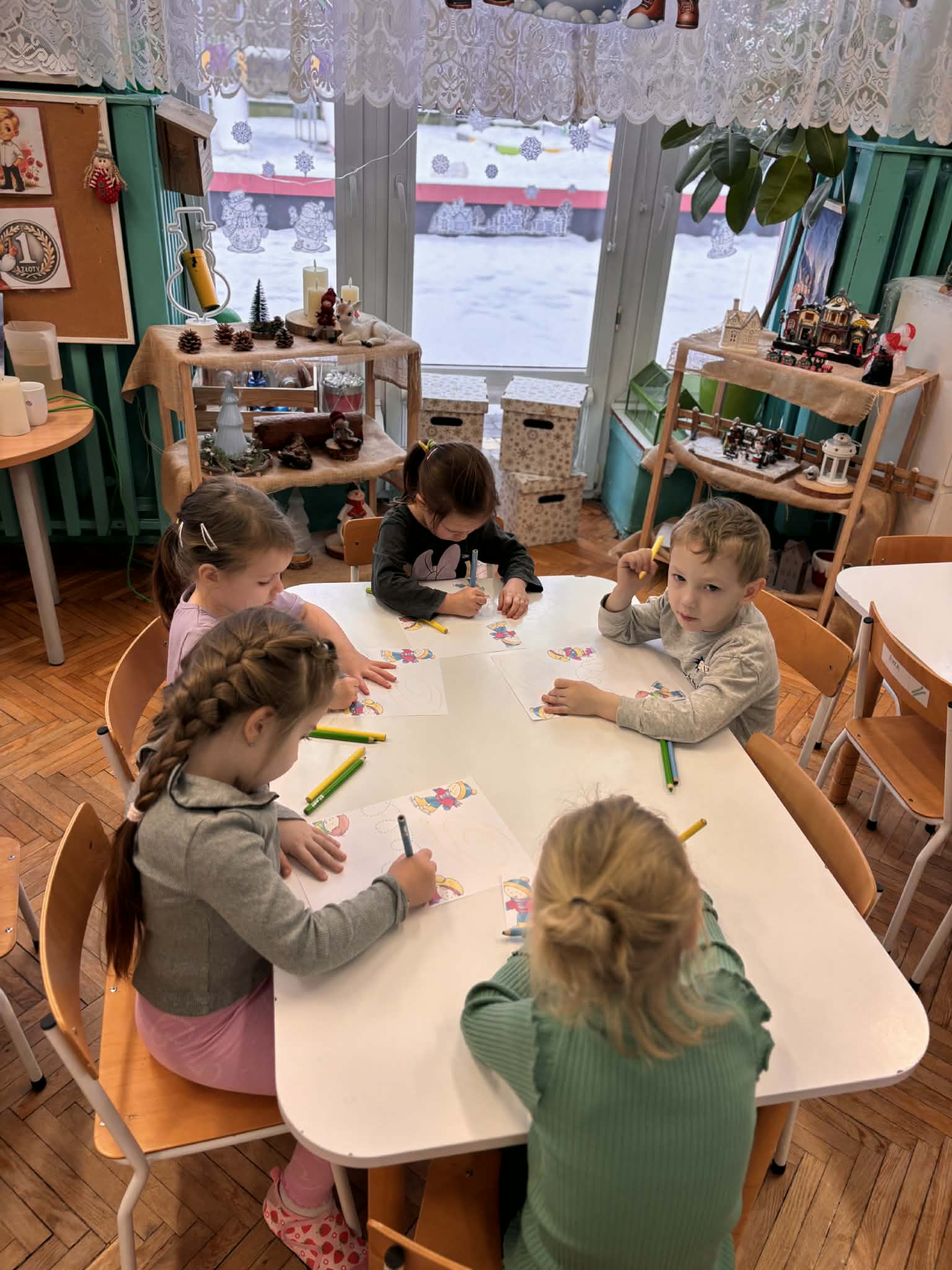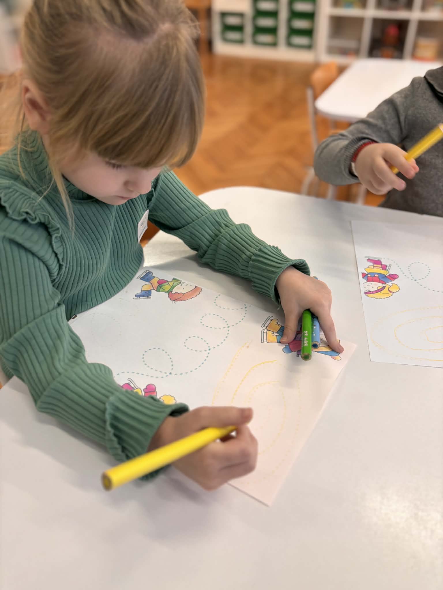 Zima to idealny czas, by porozmawiać o sportach zimowych i… spróbować ich w przedszkolnym wydaniu. nasze przedszkolaki wcieliły się w małych narciarzy. Dzieci „jeździły na nartach”, ćwicząc koordynację, równowagę i sprawność ruchową, a przy tym było mnóstwo śmiechu i dobrej zabawy. Na końcu toru czekało układanie puzzli o tematyce zimowej. Po aktywności ruchowej przyszedł czas na zadania rozwijające koncentrację i myślenie: -karty pracy – szukanie właściwej drogi oraz dopasowywanie obrazków do ich cieni.
