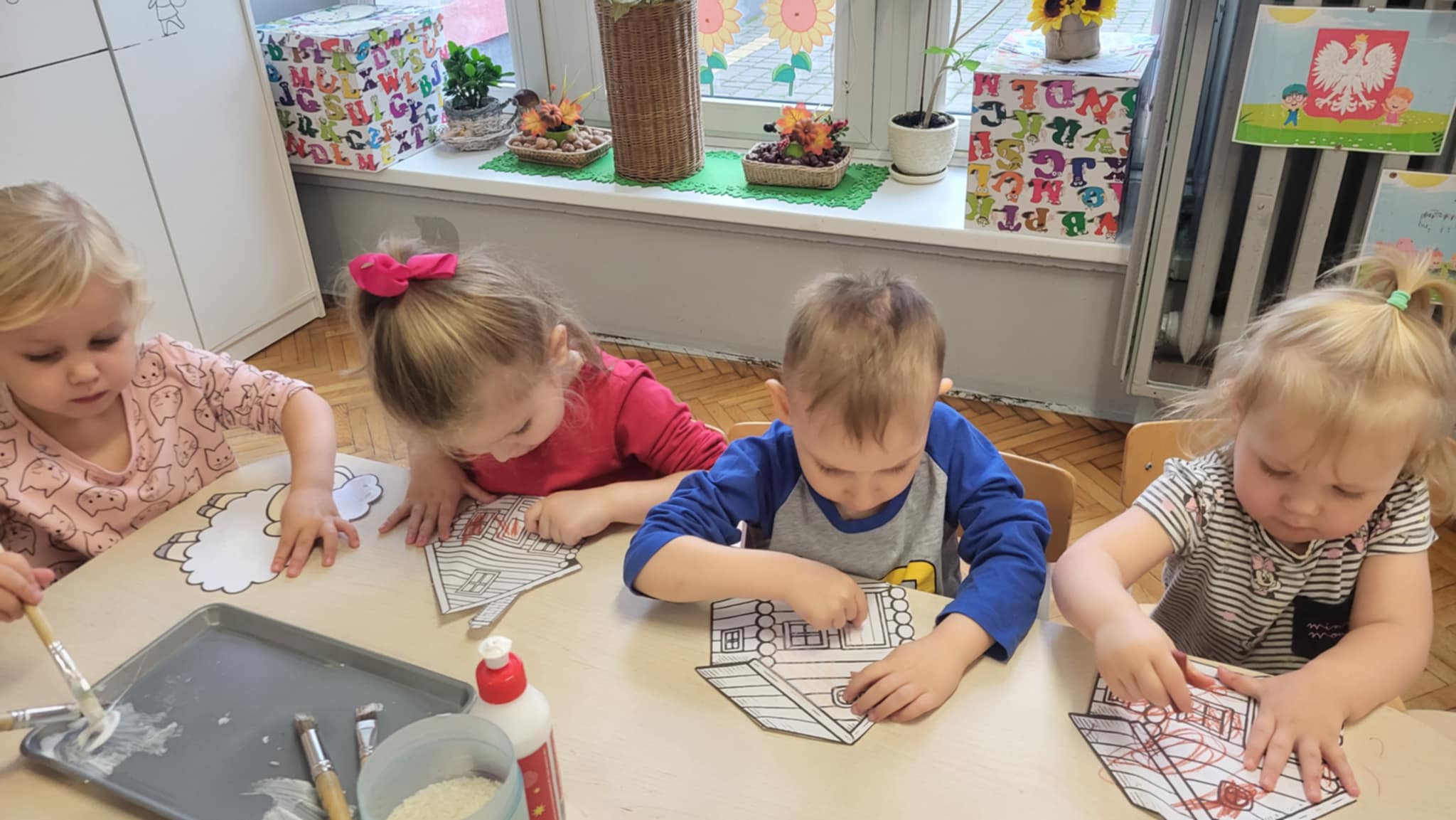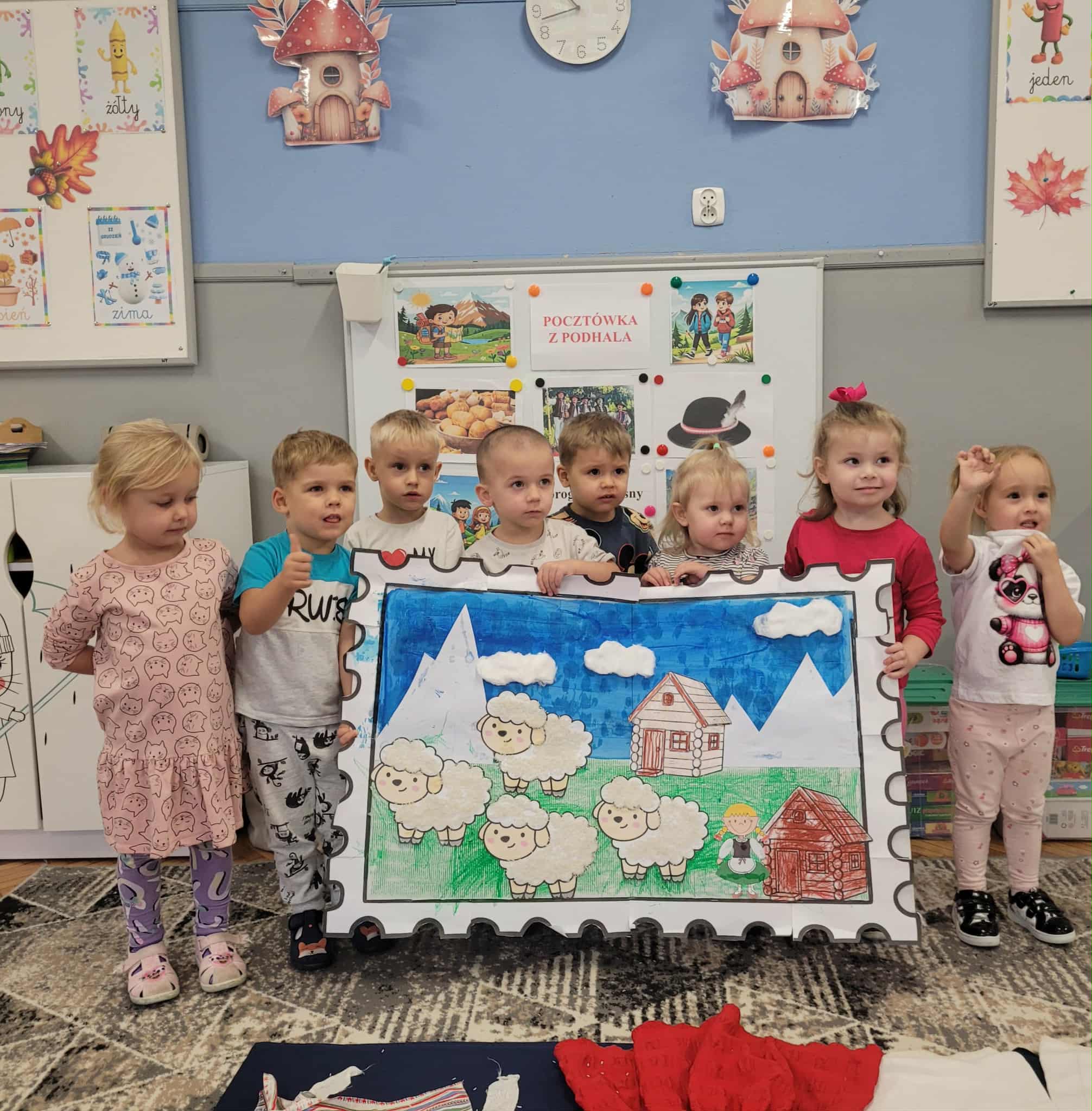 Realizując program własny "Sensoryczna podróż po Polsce" dzieci z grupy I wybrały się na Podhale. Poznały elementy stroju góralskiego, a nawet się w niego przebrały. Wiedzą, że oscypek to taki ser, który produkowany jest tylko w tym regionie Polski. Wysłuchały również nagrania z góralską muzyką. Dotykały przedmiotów miękkich, które skojarzyły z owieczkami. Po zapoznaniu się z tym regionem wykonały znaczek pocztowy.