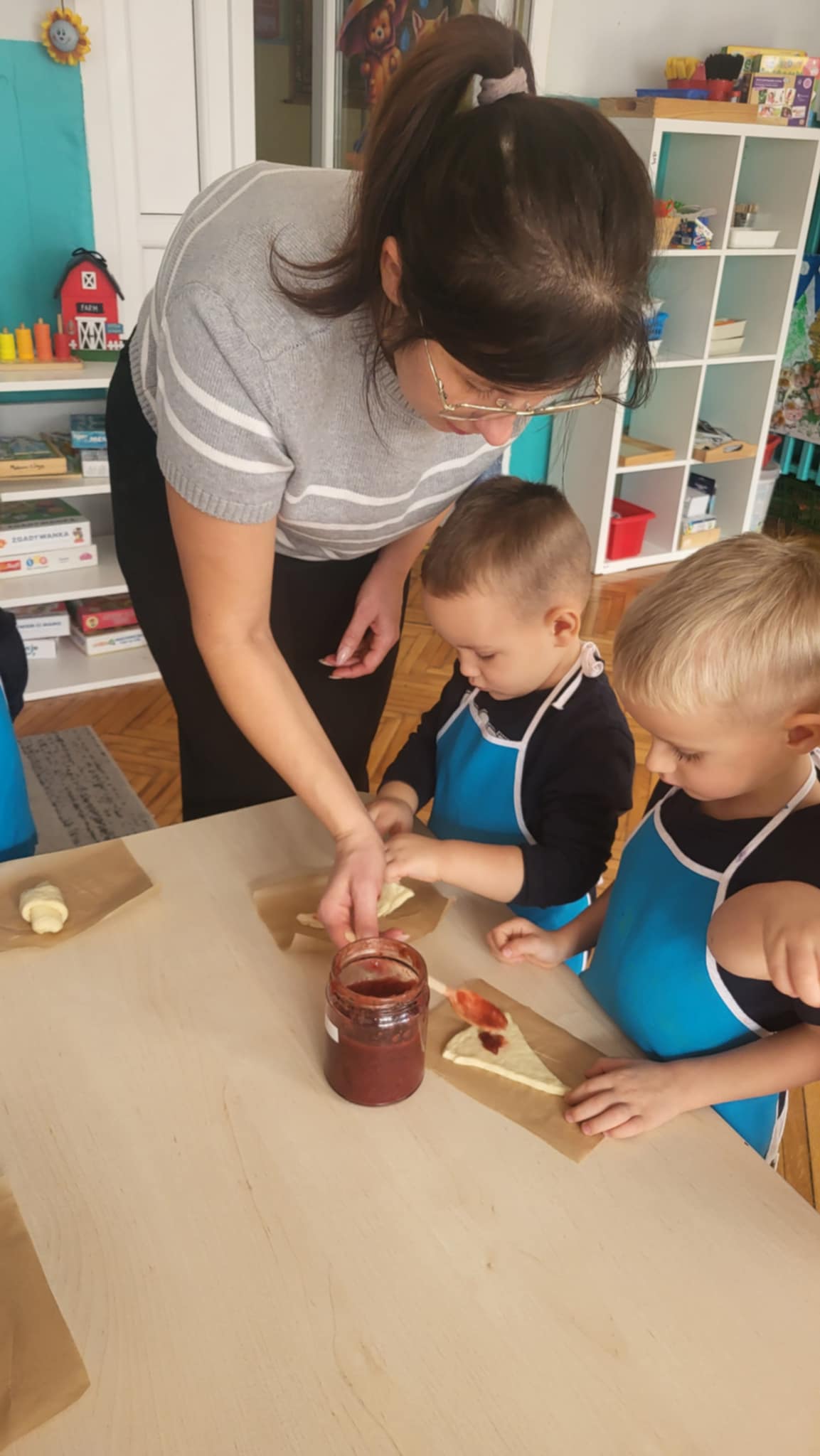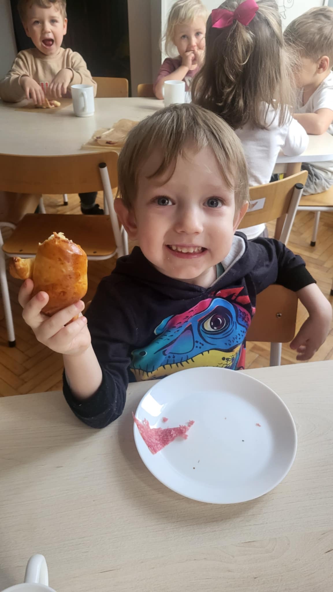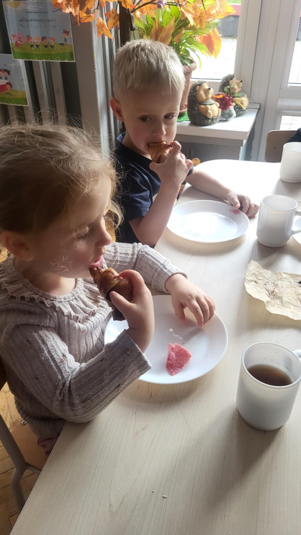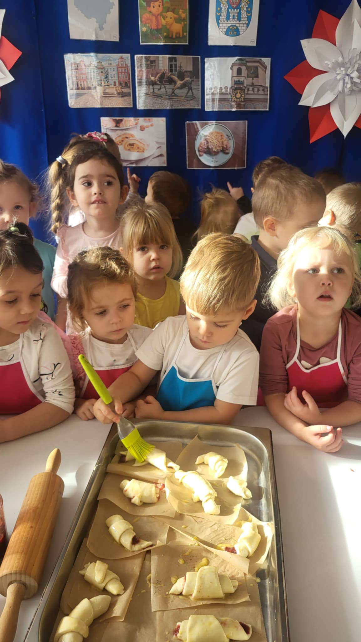 Dzieci z grupy pierwszej i drugiej wybrały się na wycieczkę do Poznania. Wysłuchały legendy o poznańskich koziolkach oraz o powstawaniu rogali świętomarcińskich. Wiedzą z jakich produktów powstaje ciasto na rogale i jakie nadzienie można w nie włożyć. Dotykały prawdziwego ciasta na rogale oraz same zawijały trójkąty z ciasta tworząc pyszne rogaliki z nadzieniem różanym.