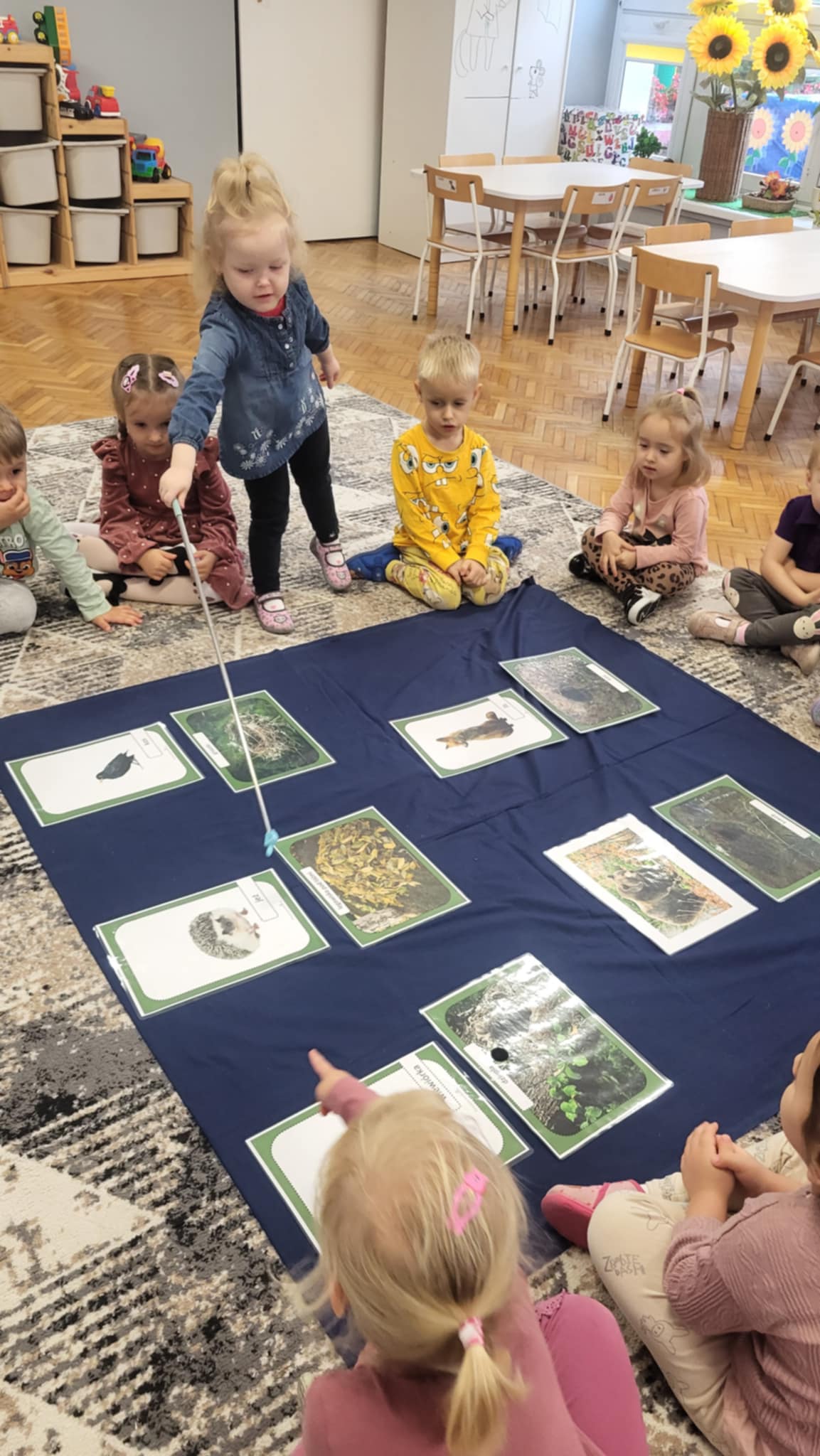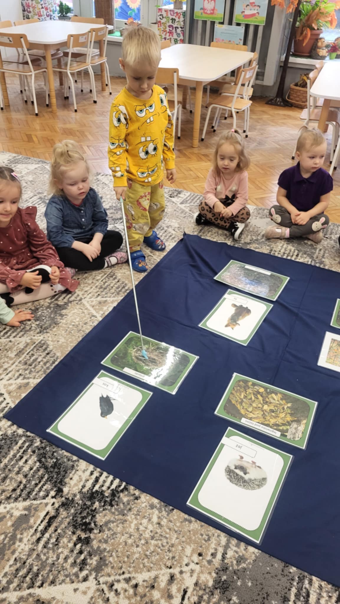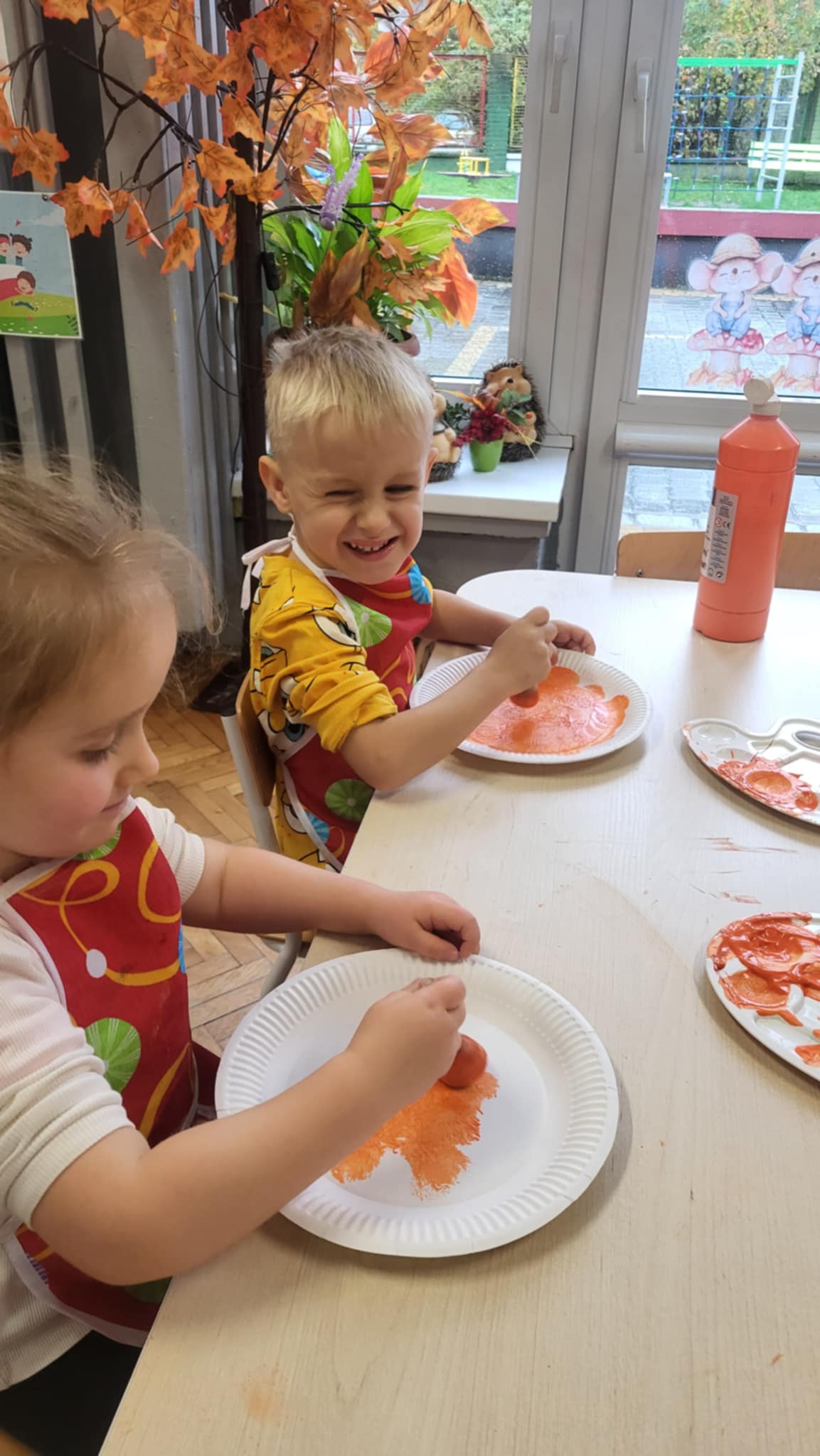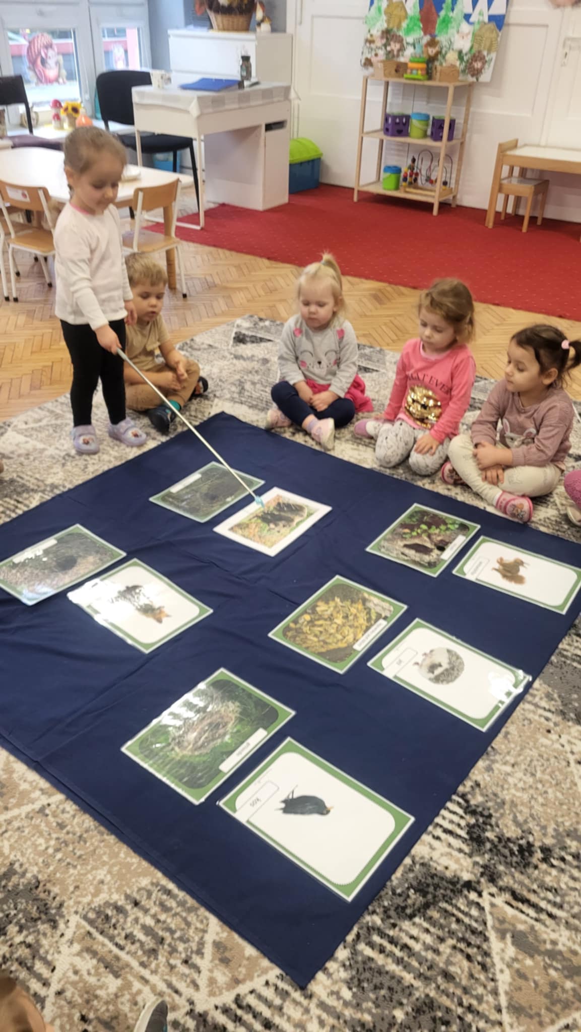 Jesień w lesie to czas przygotowań na nadchodzącą zimę, czas intensywnych zmian w życiu zwierząt. Zwierzęta leśne dostosowują się do chłodniejszych dni, gromadząc zapasy, zmieniając wygląd, a niektóre przygotowują się do migracji lub do hibernacji, tzw. "zimowego snu". Grupa pierwsza zna nazwy i wygląd wybranych zwierząt oraz miejsca, gdzie mieszkają w lesie. wykonały również pracę plastyczną "Rudy lis"
